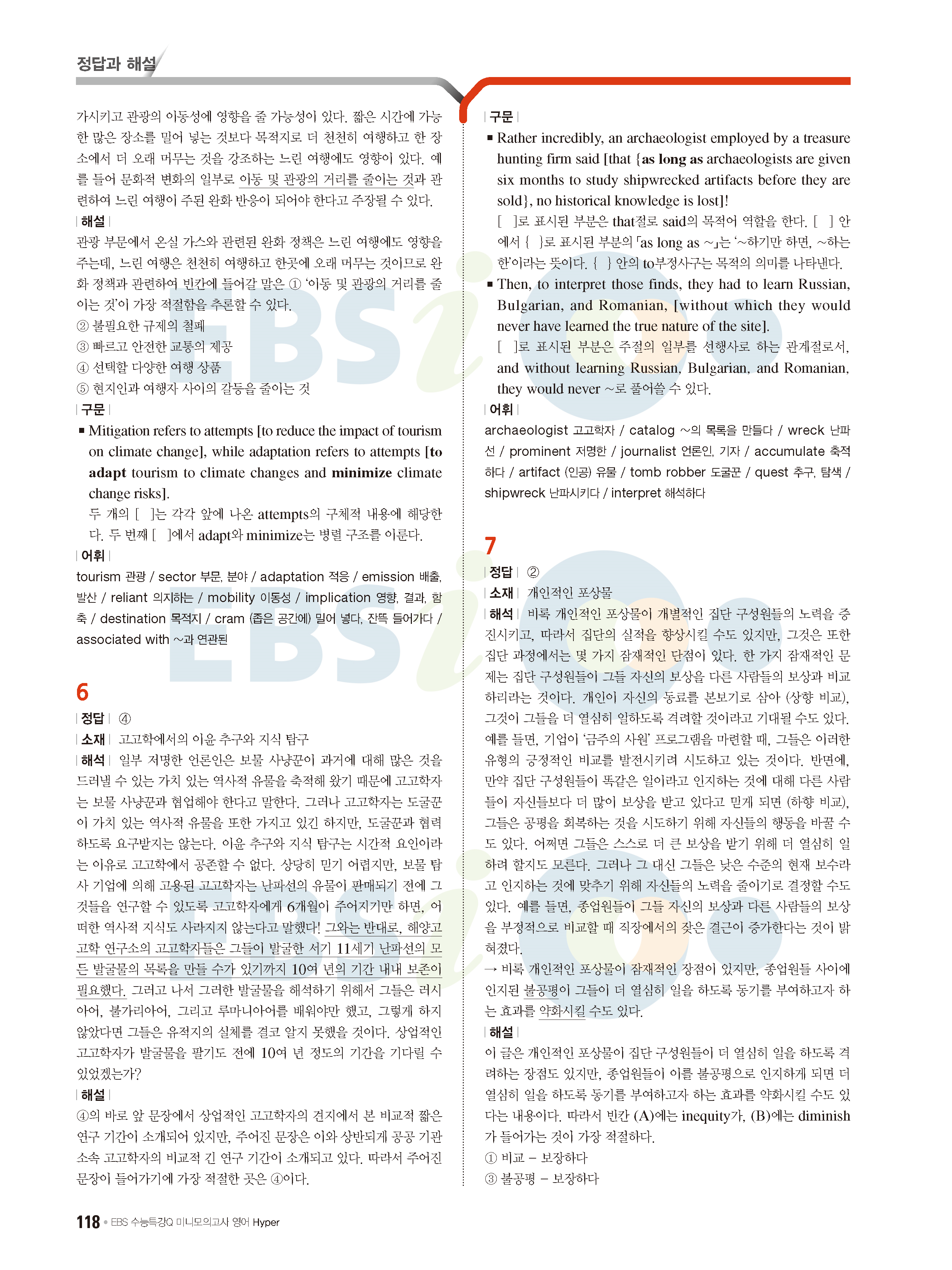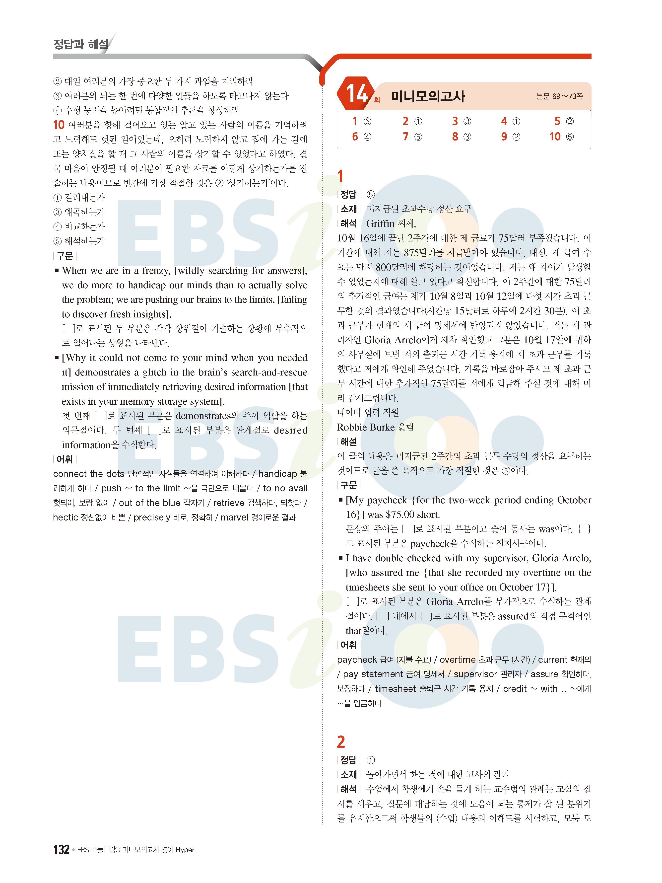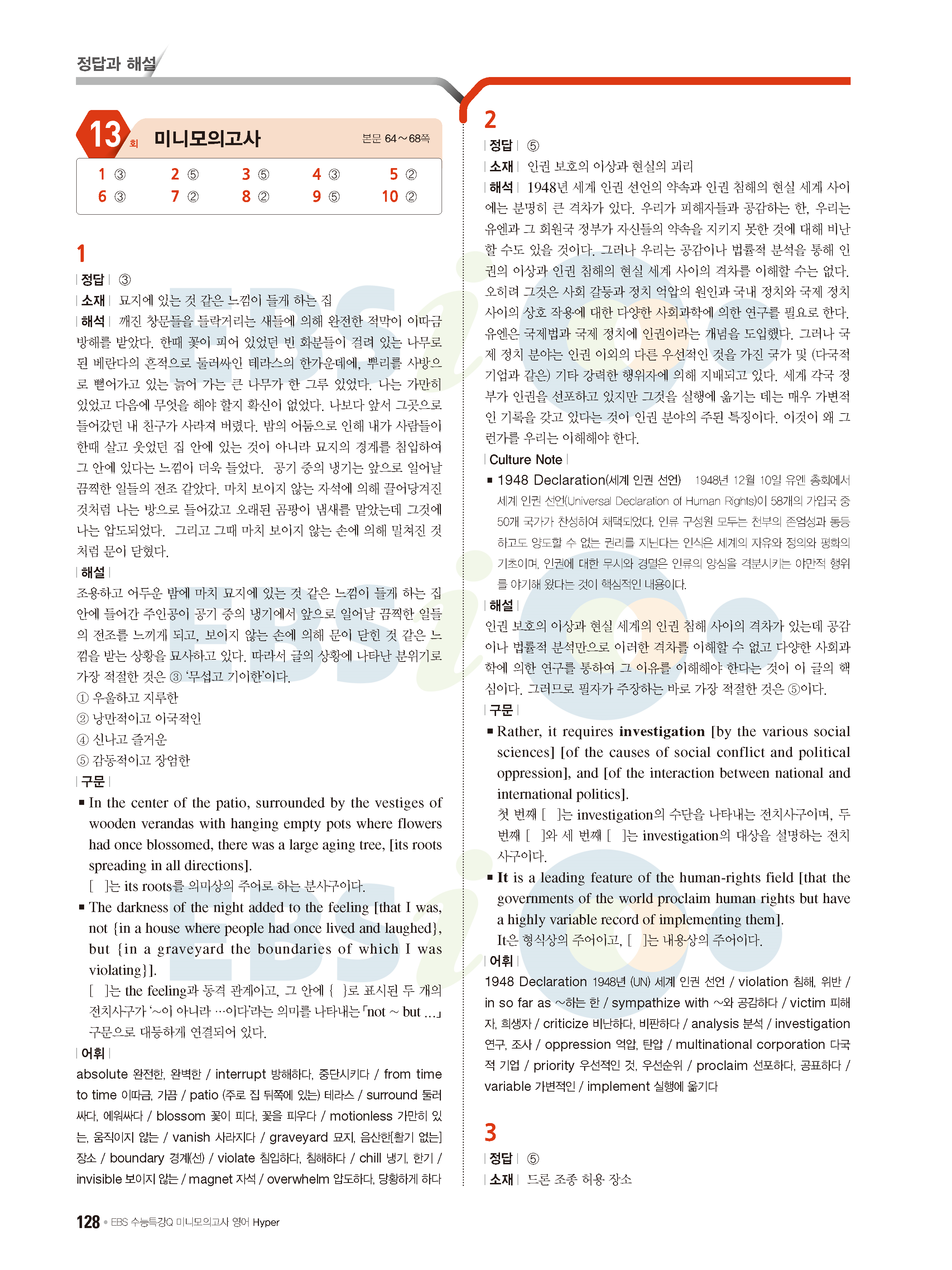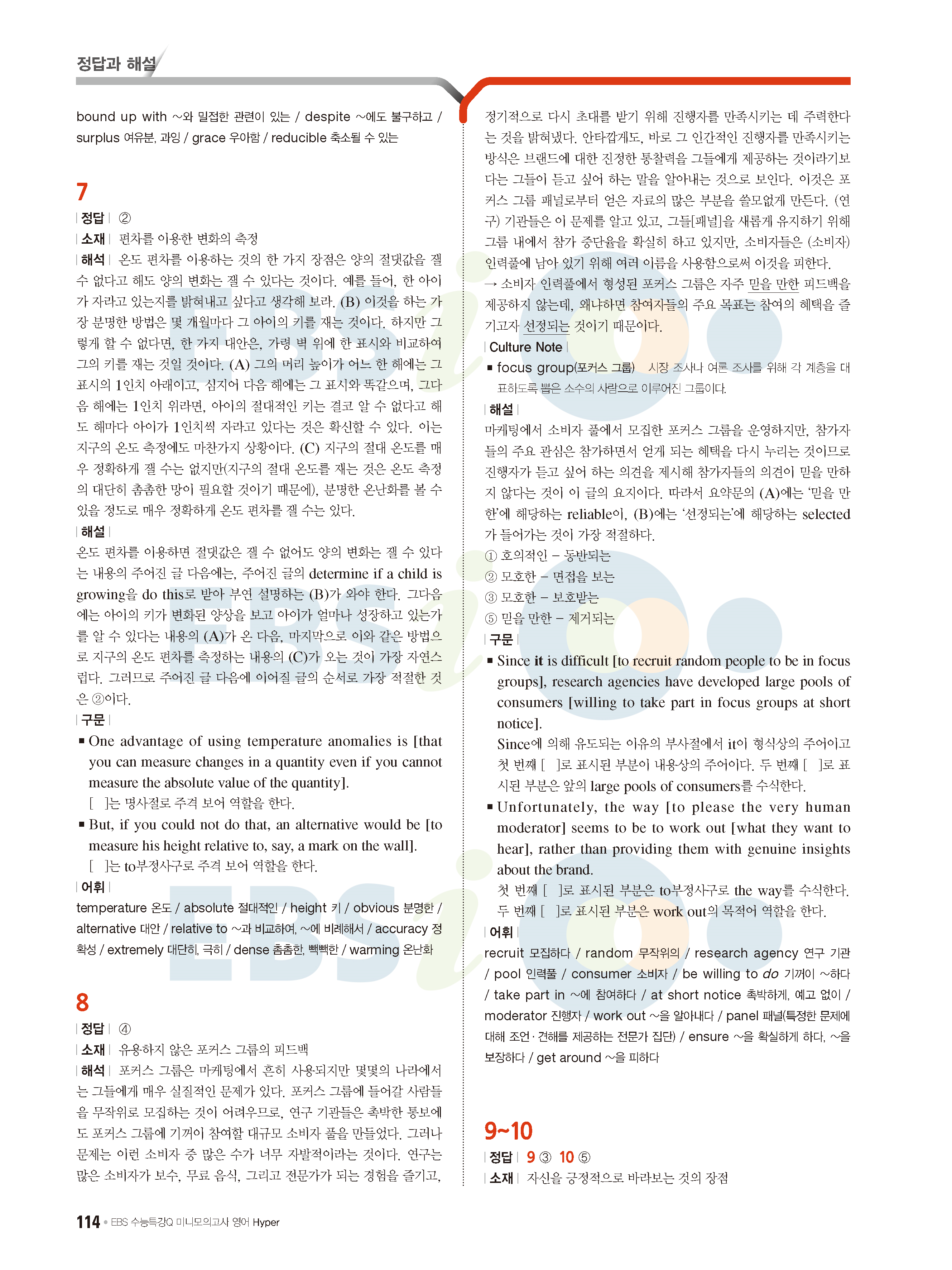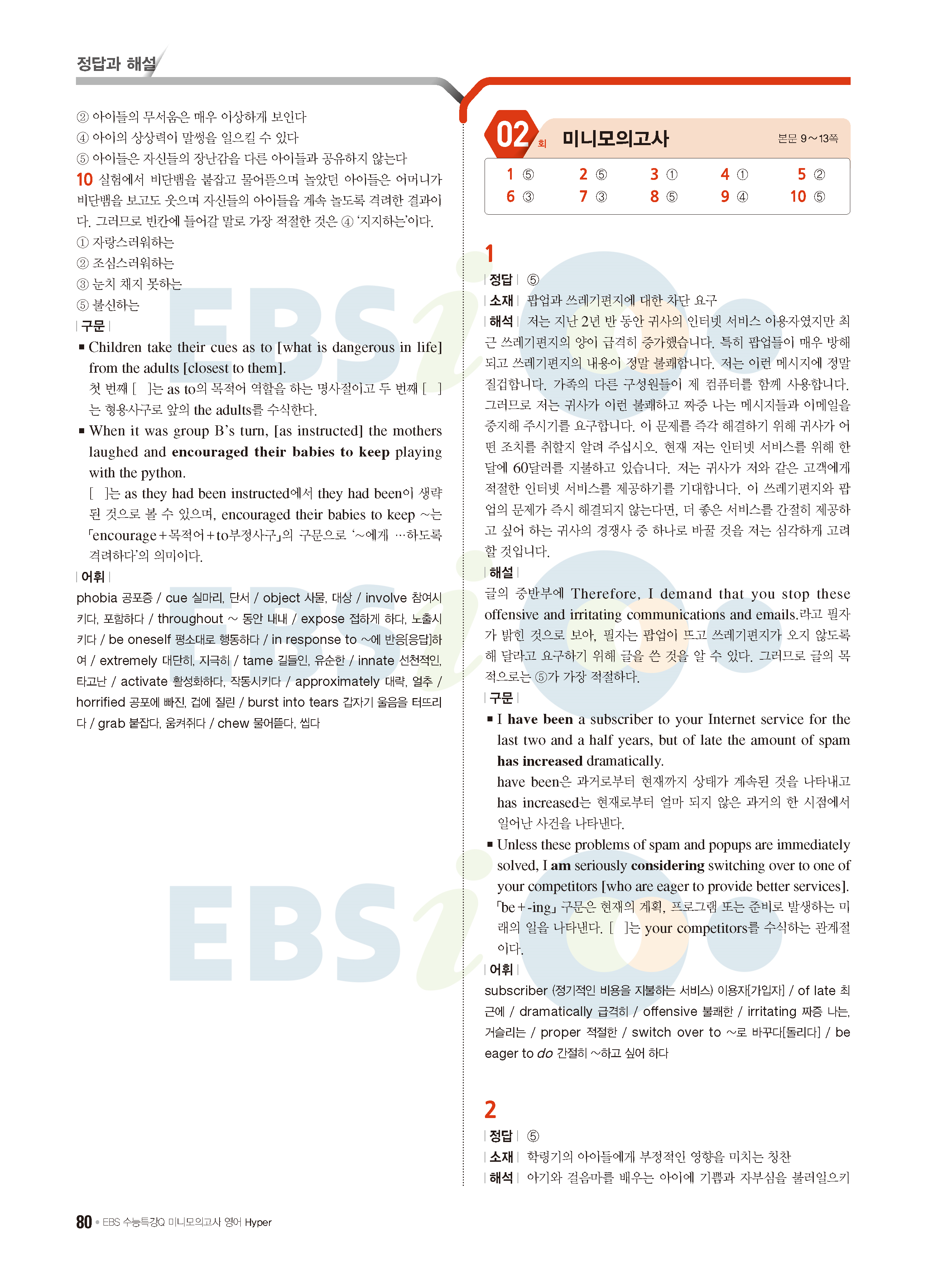 2022 EBS 수능특강큐 미니모의고사 영어 hyper 답지 해설 사진답지 모바일최적화