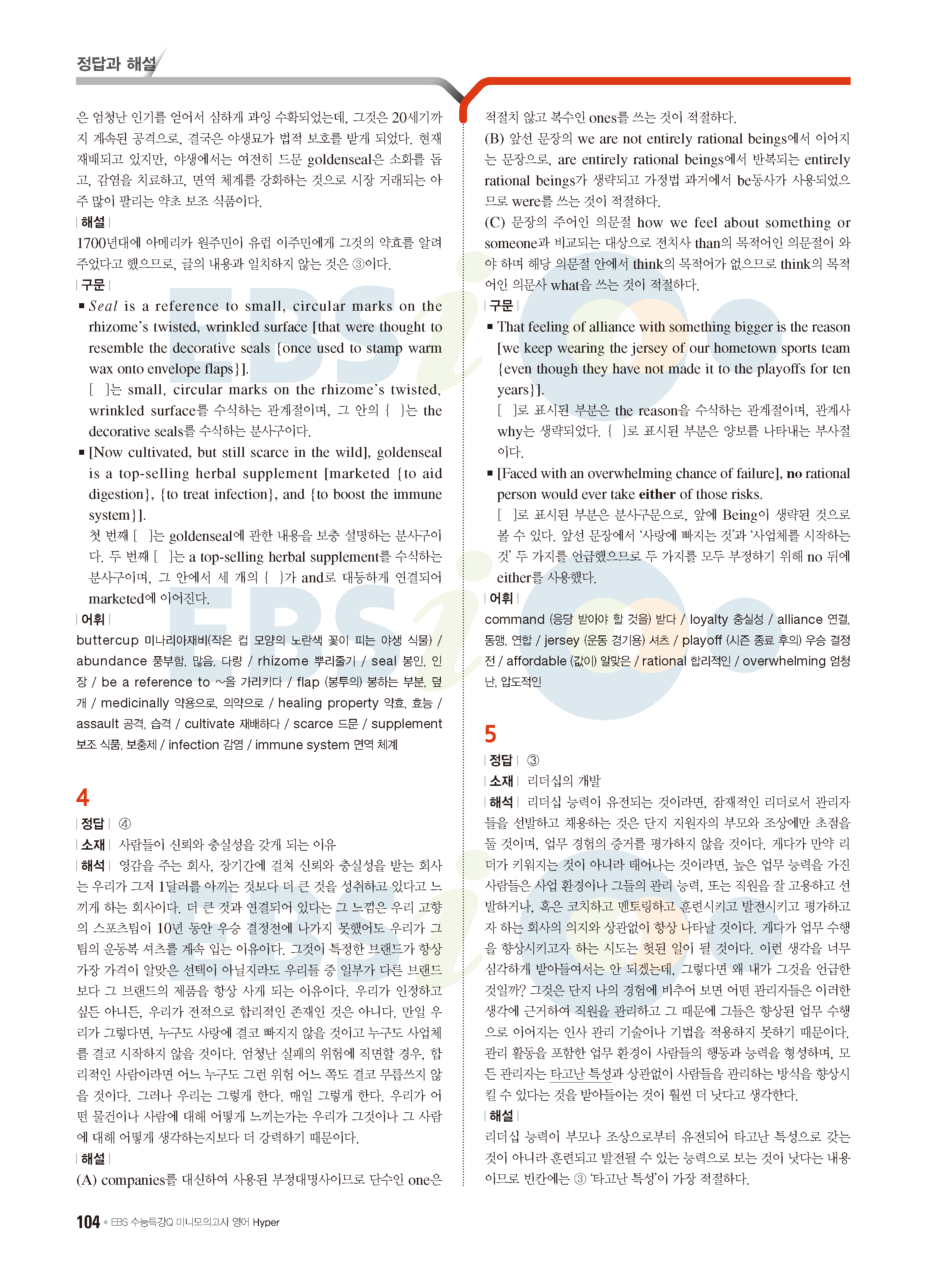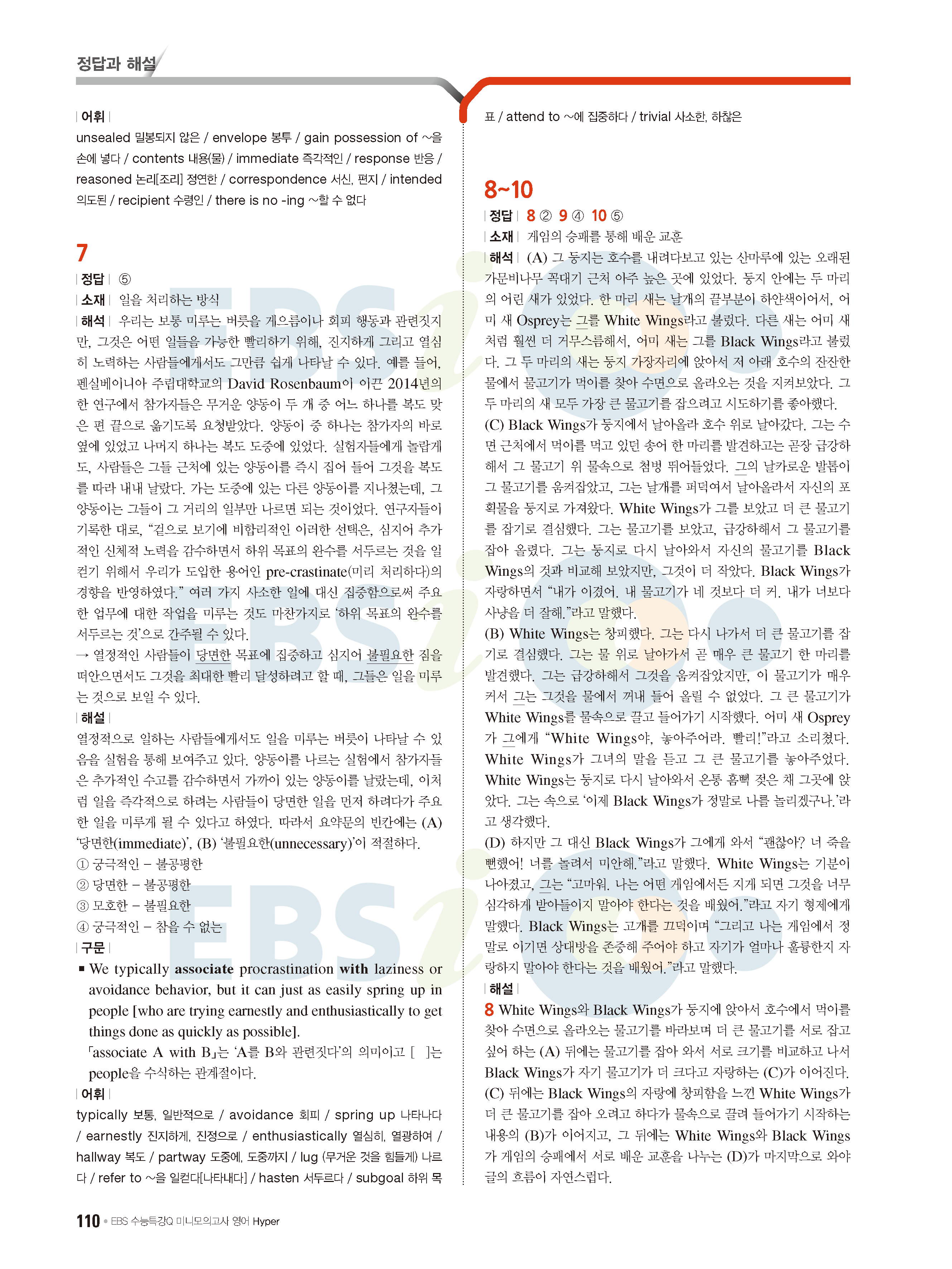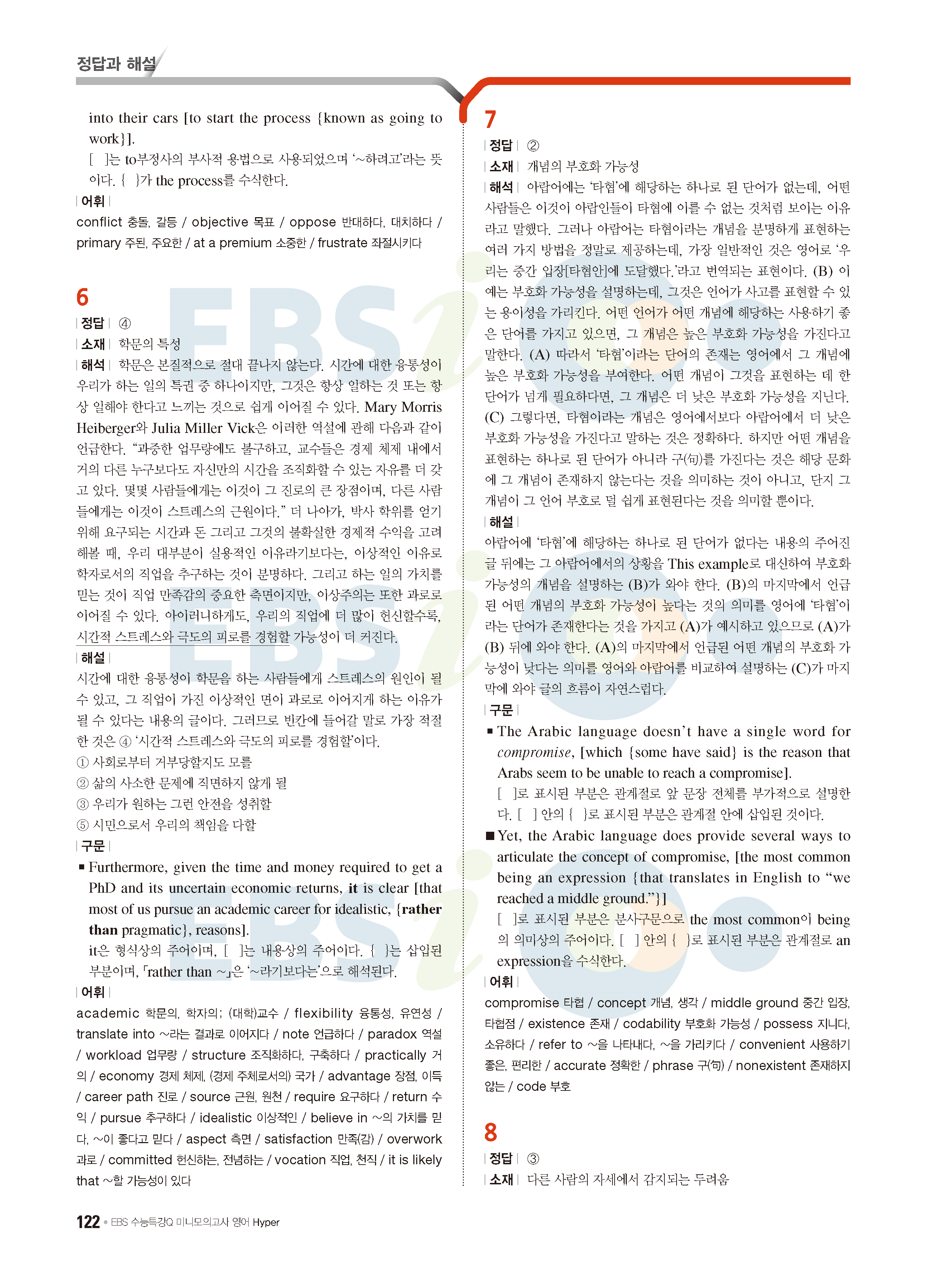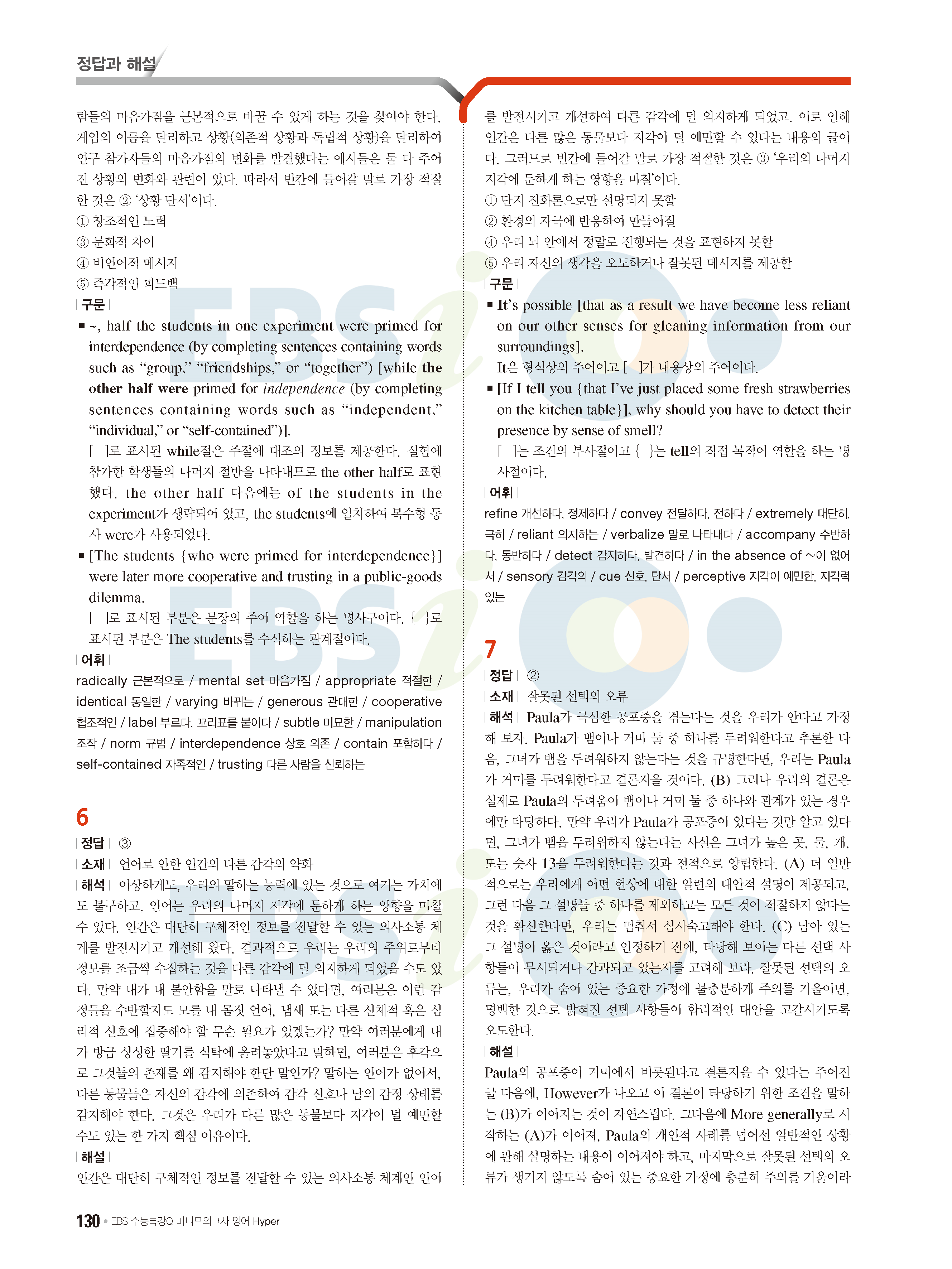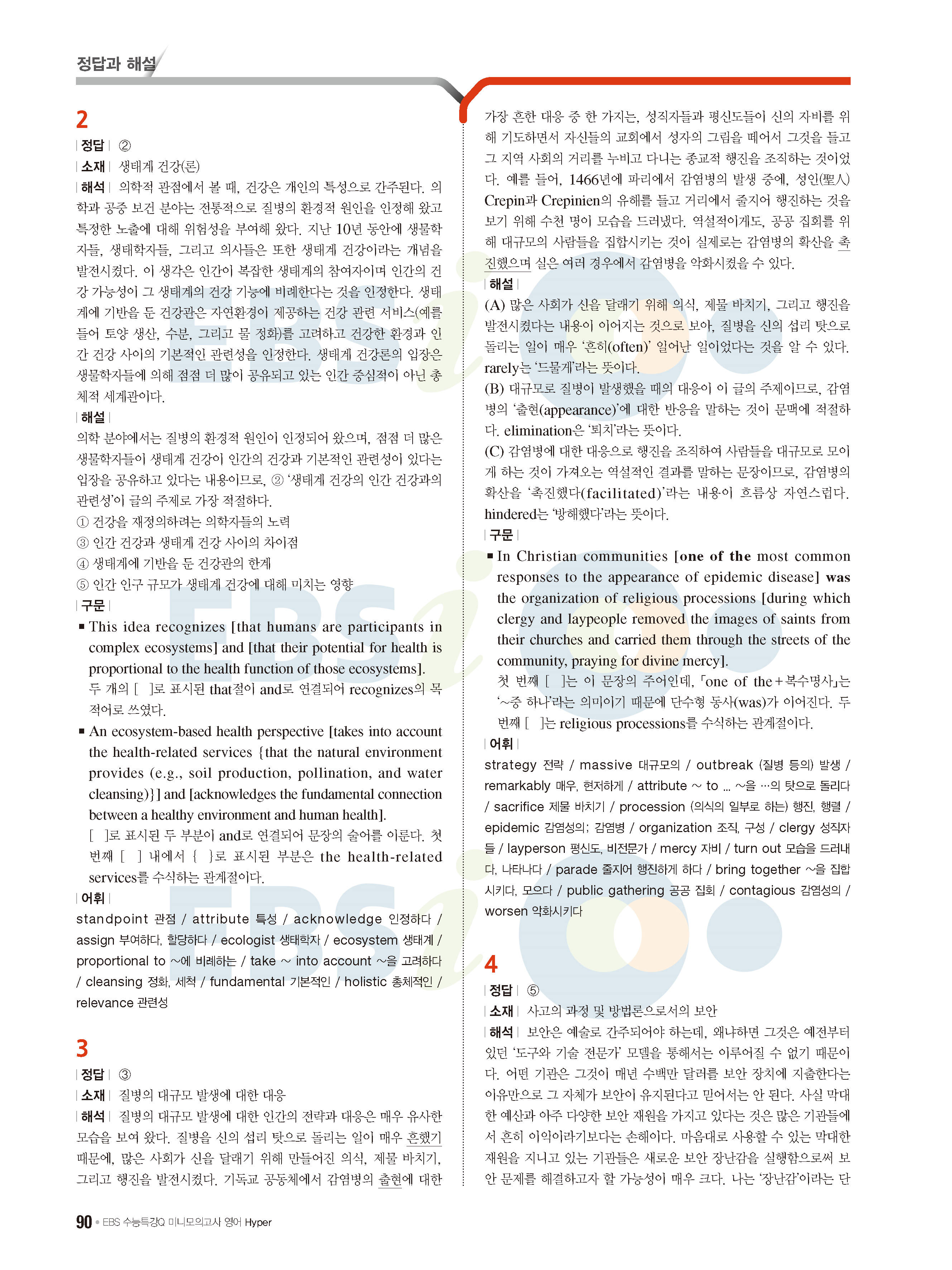2022 EBS 수능특강큐 미니모의고사 영어 hyper 답지 해설 사진답지 모바일최적화