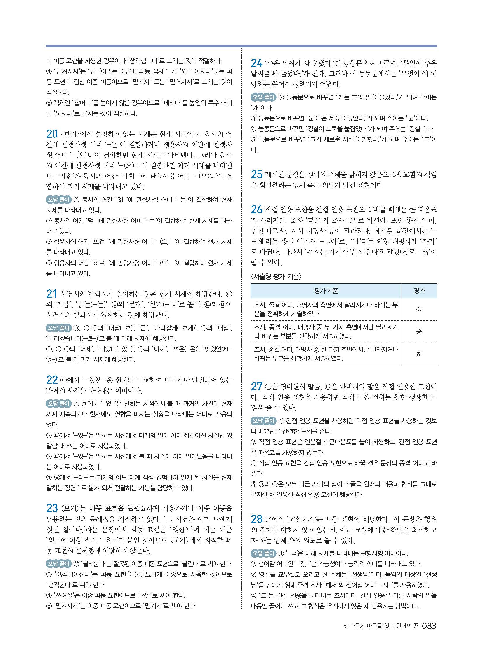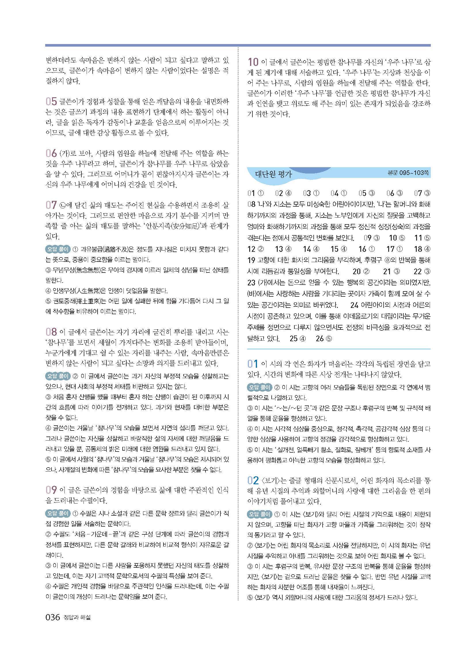 비상 평가문제집 고등국어 박영민 상 답지 해설 사진답지 빠른답지 모바일최적화