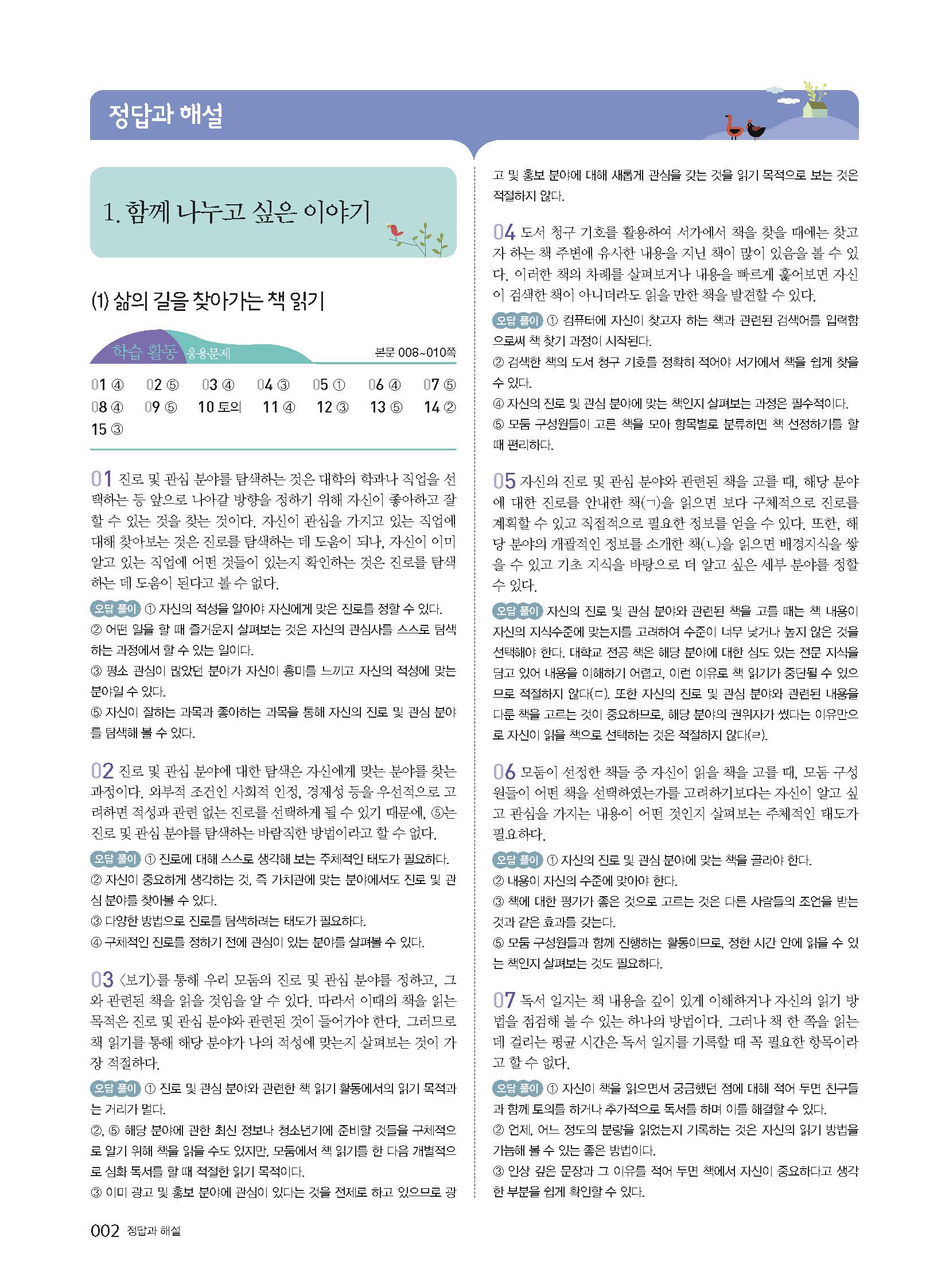 다운로드 받을필요 없이 바로 볼수 있는 모바일에 최적화된 답지 입니다