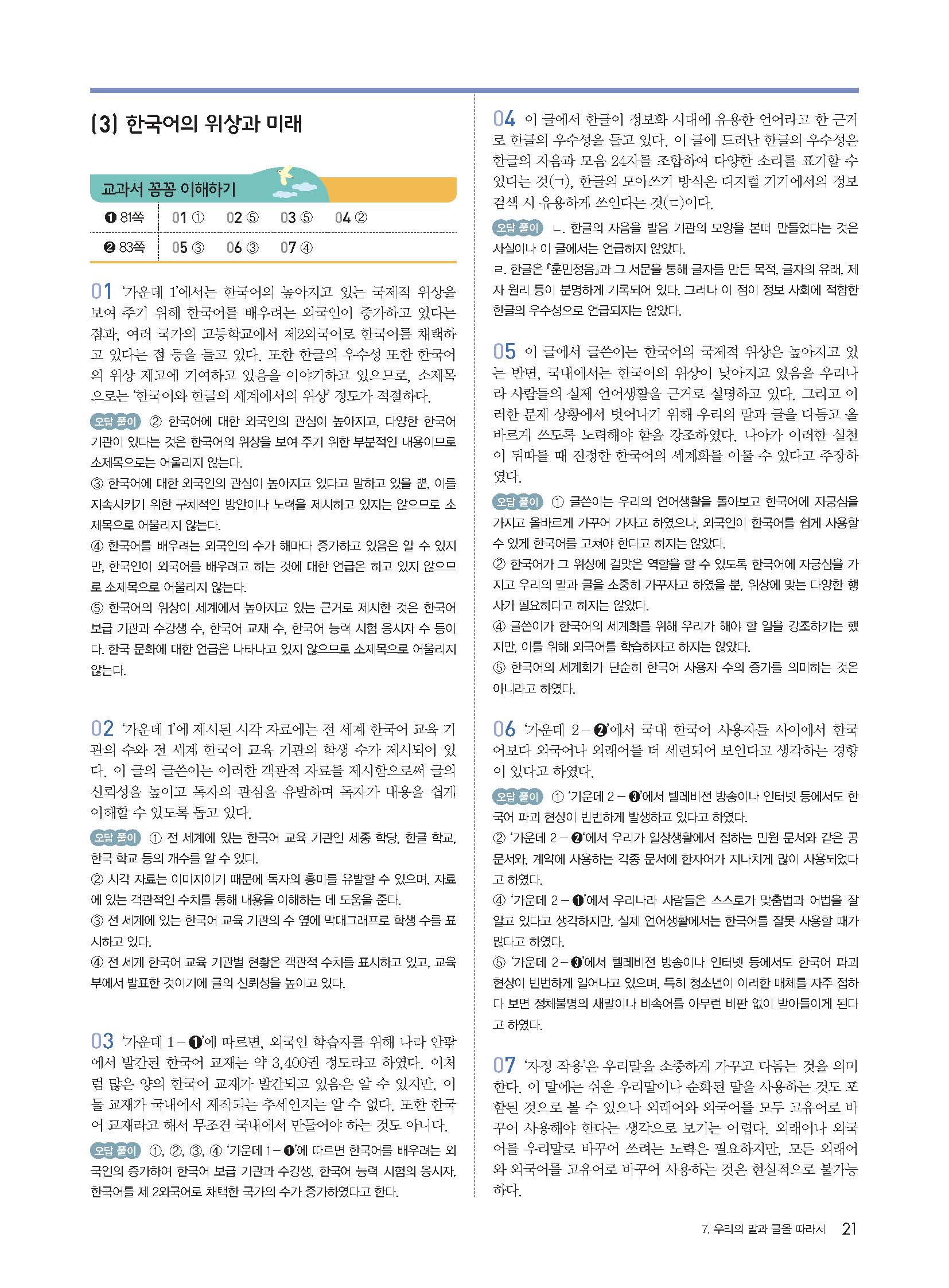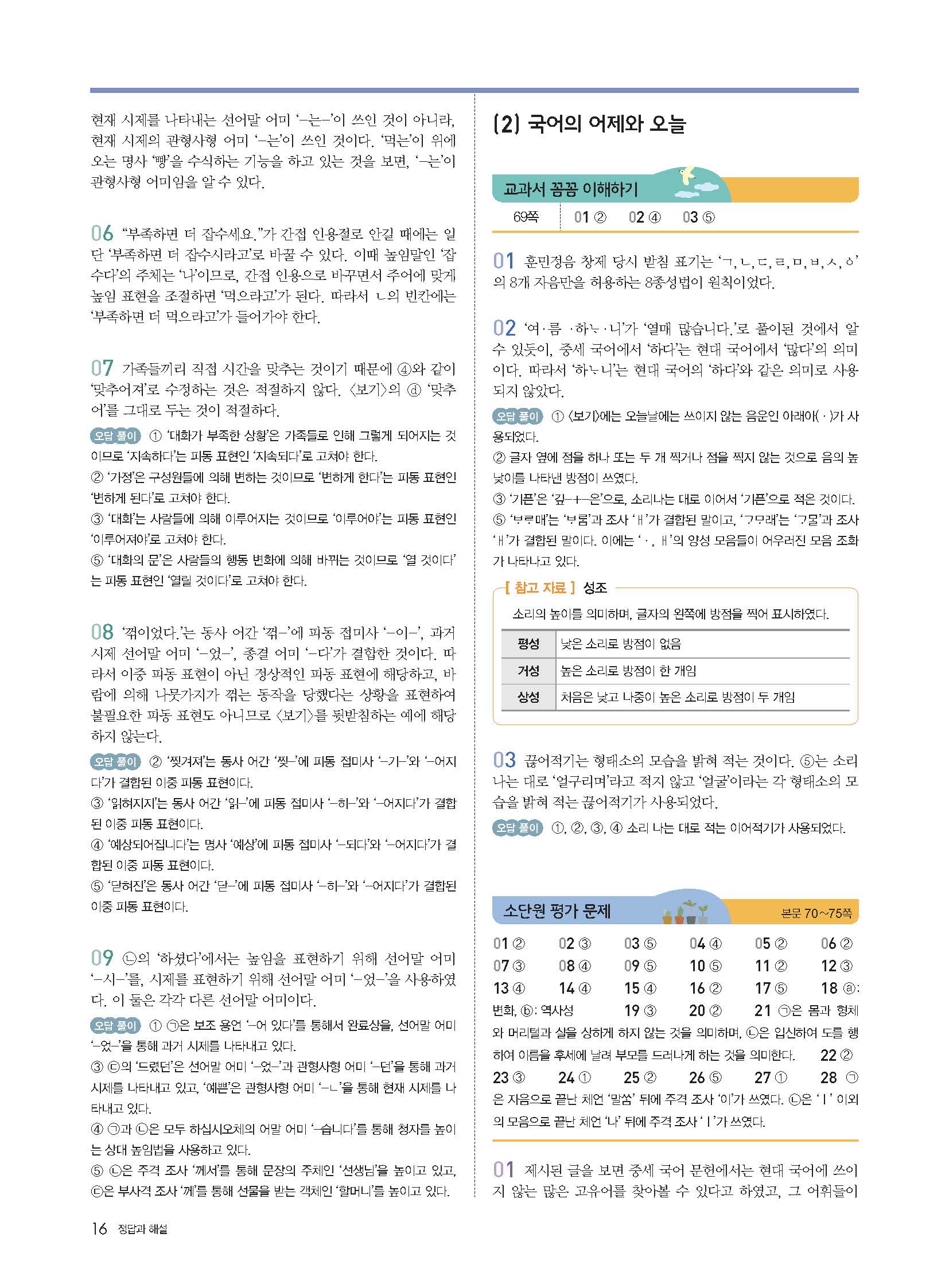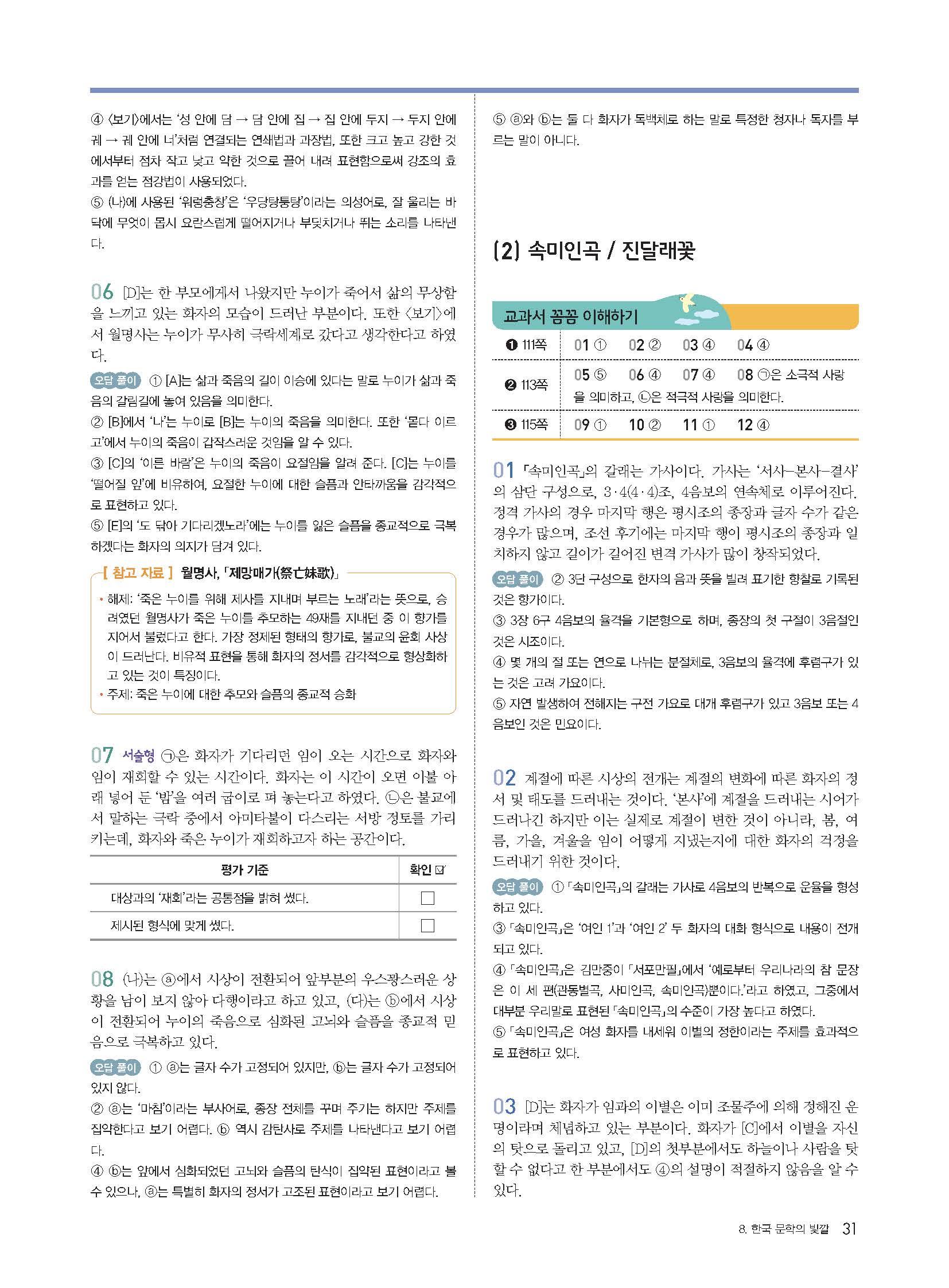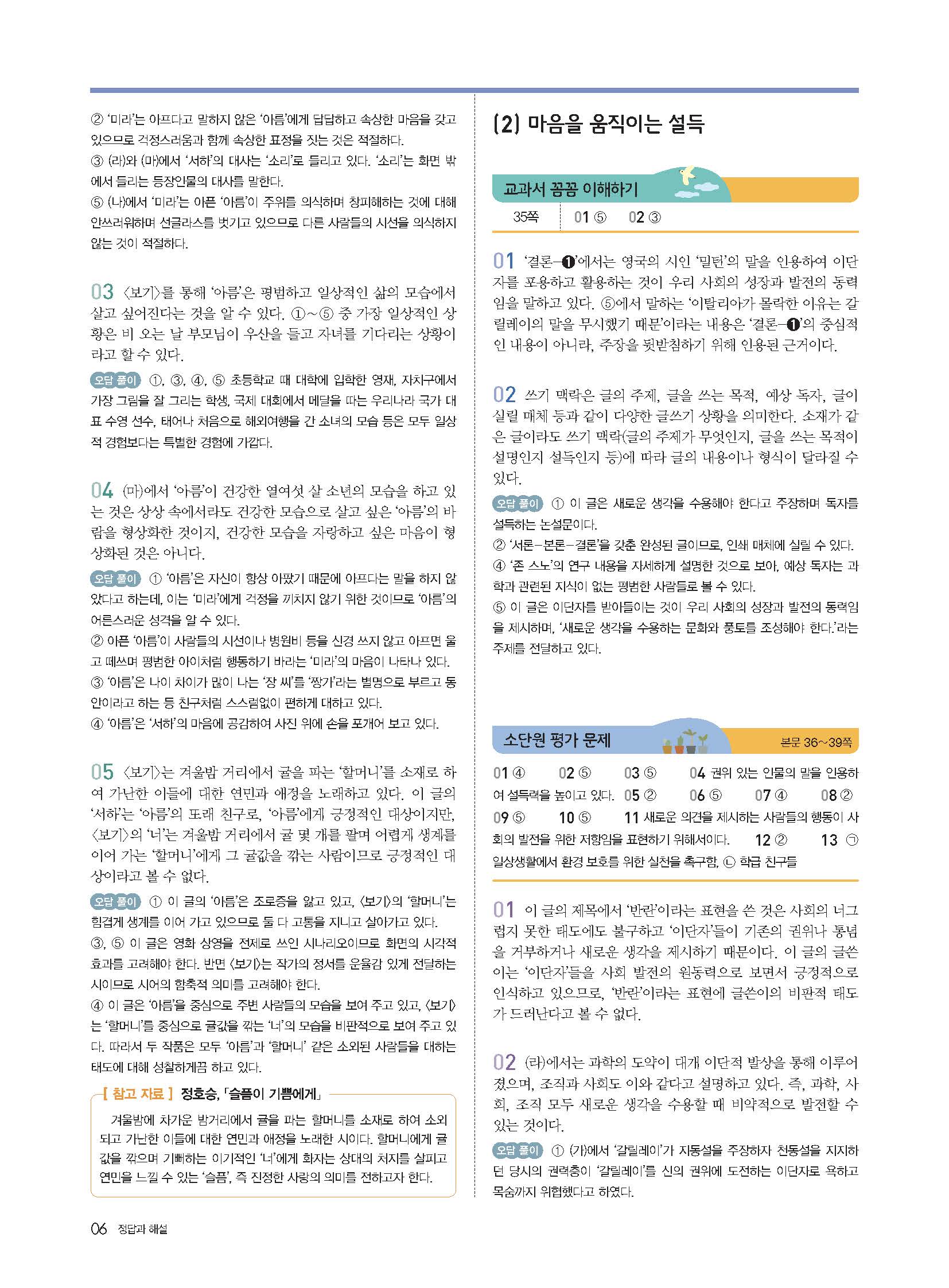 비상 평가문제집 고등국어 박안수 하 답지 해설 사진답지 빠른답지 모바일최적화