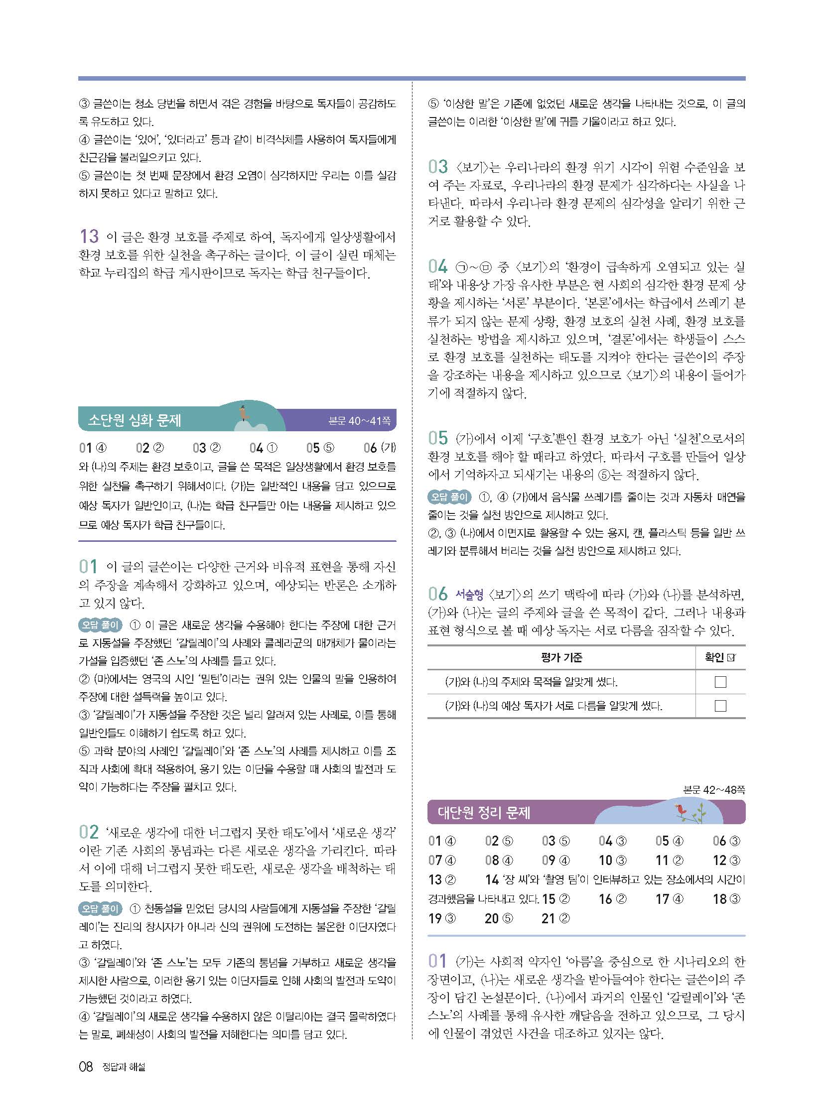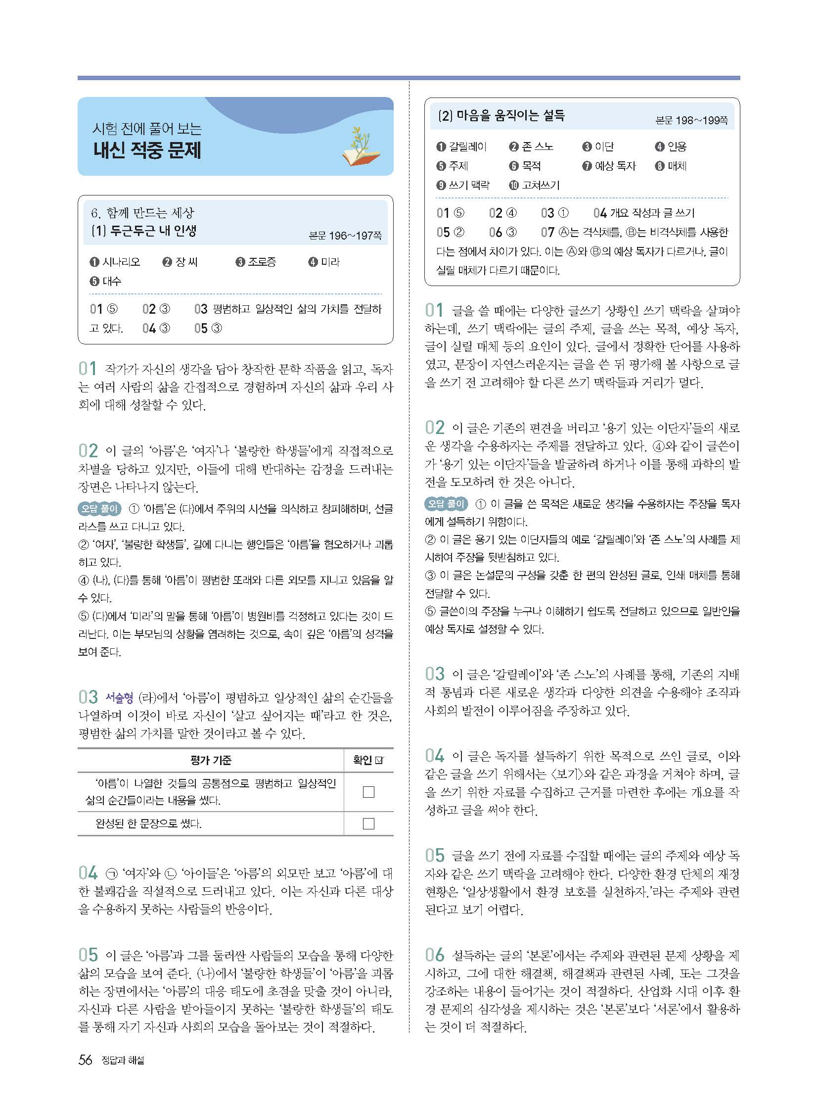 다운로드 받을필요 없이 바로 볼수 있는 모바일에 최적화된 답지 입니다