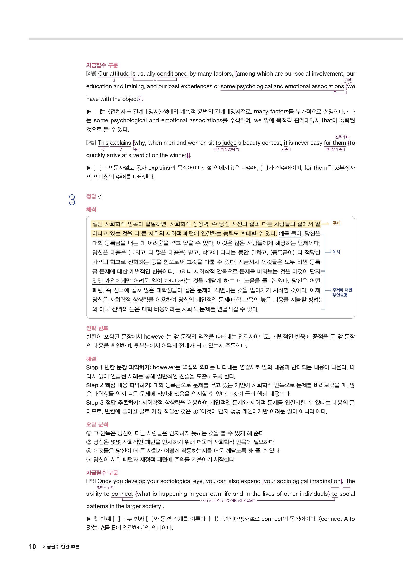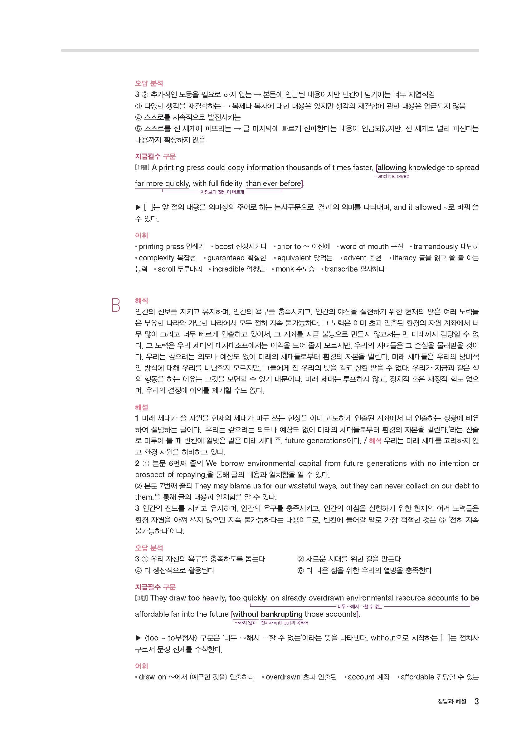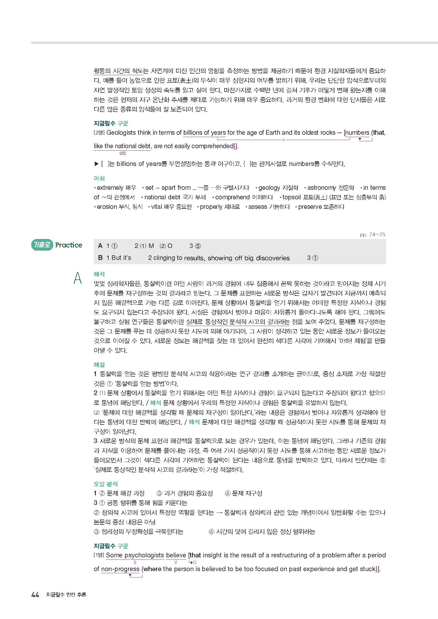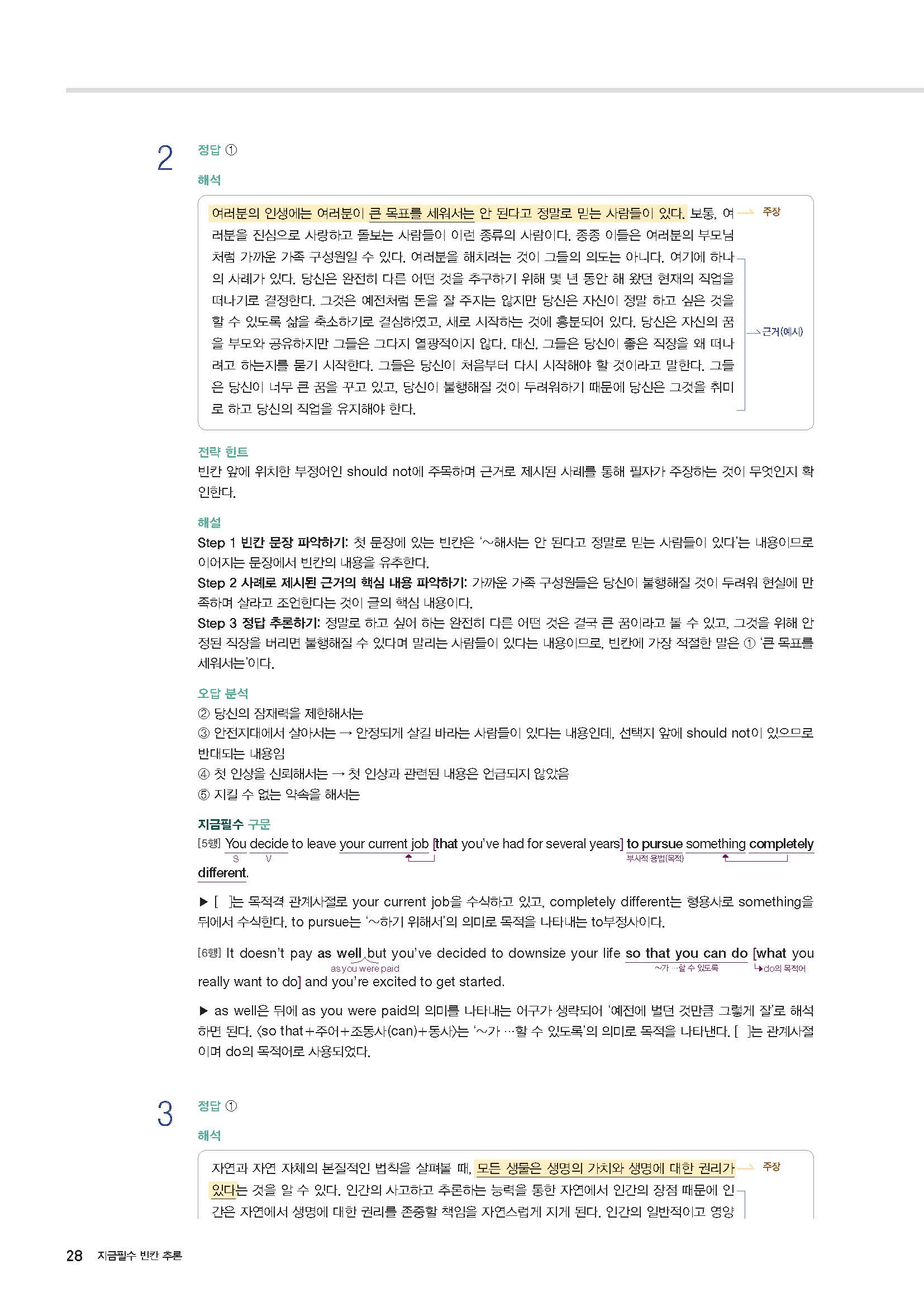 지금필수 영어영역 빈칸추론 답지 해설 사진답지 빠른답지 모바일최적화
