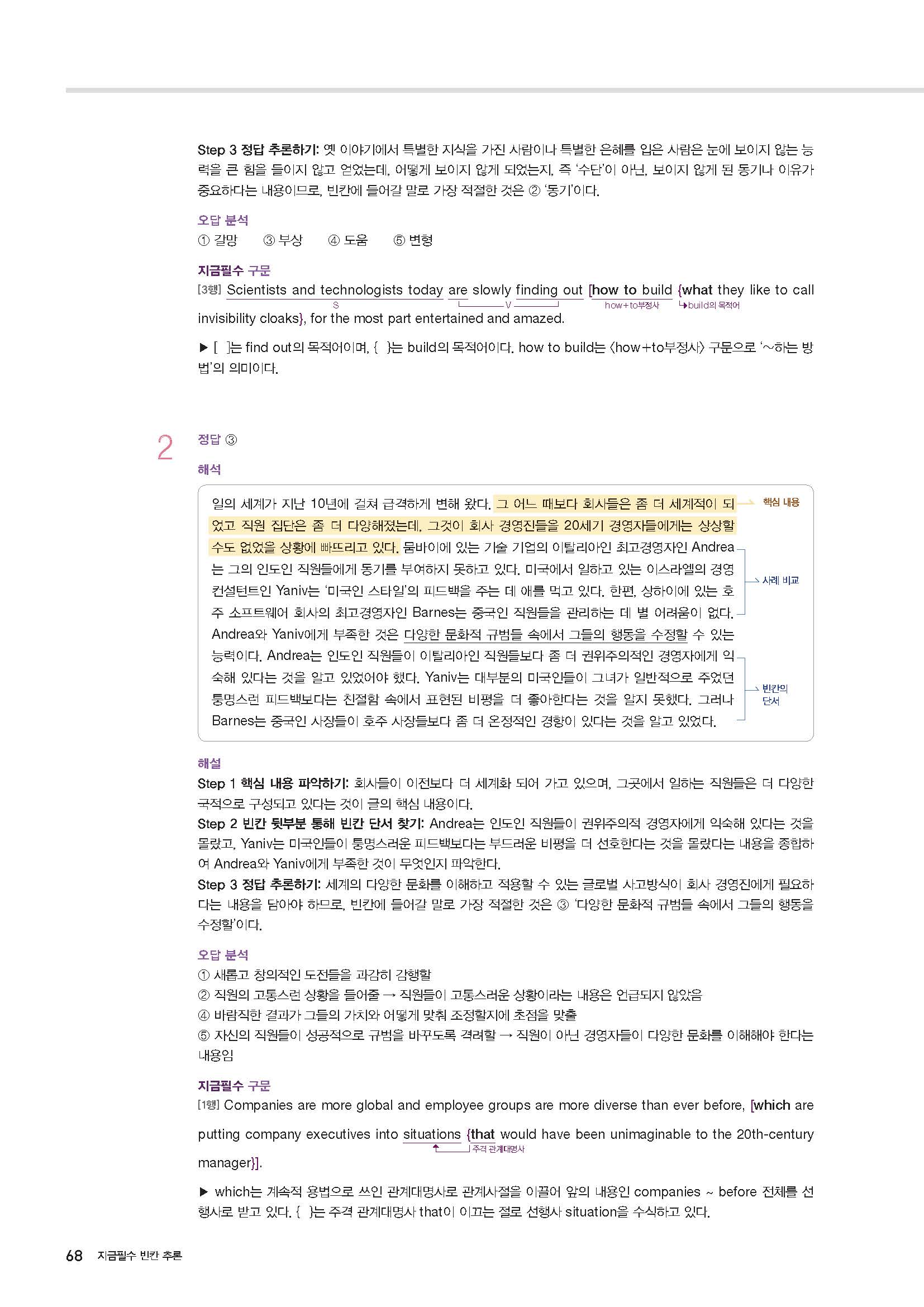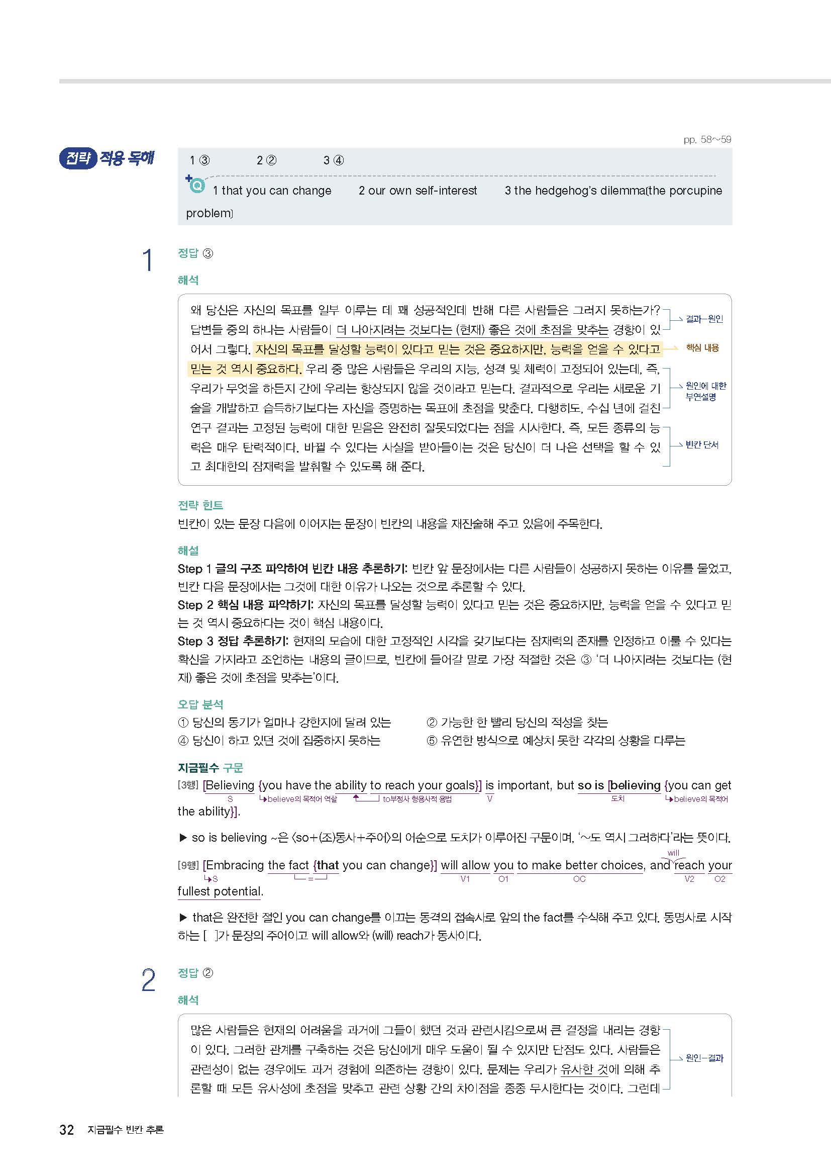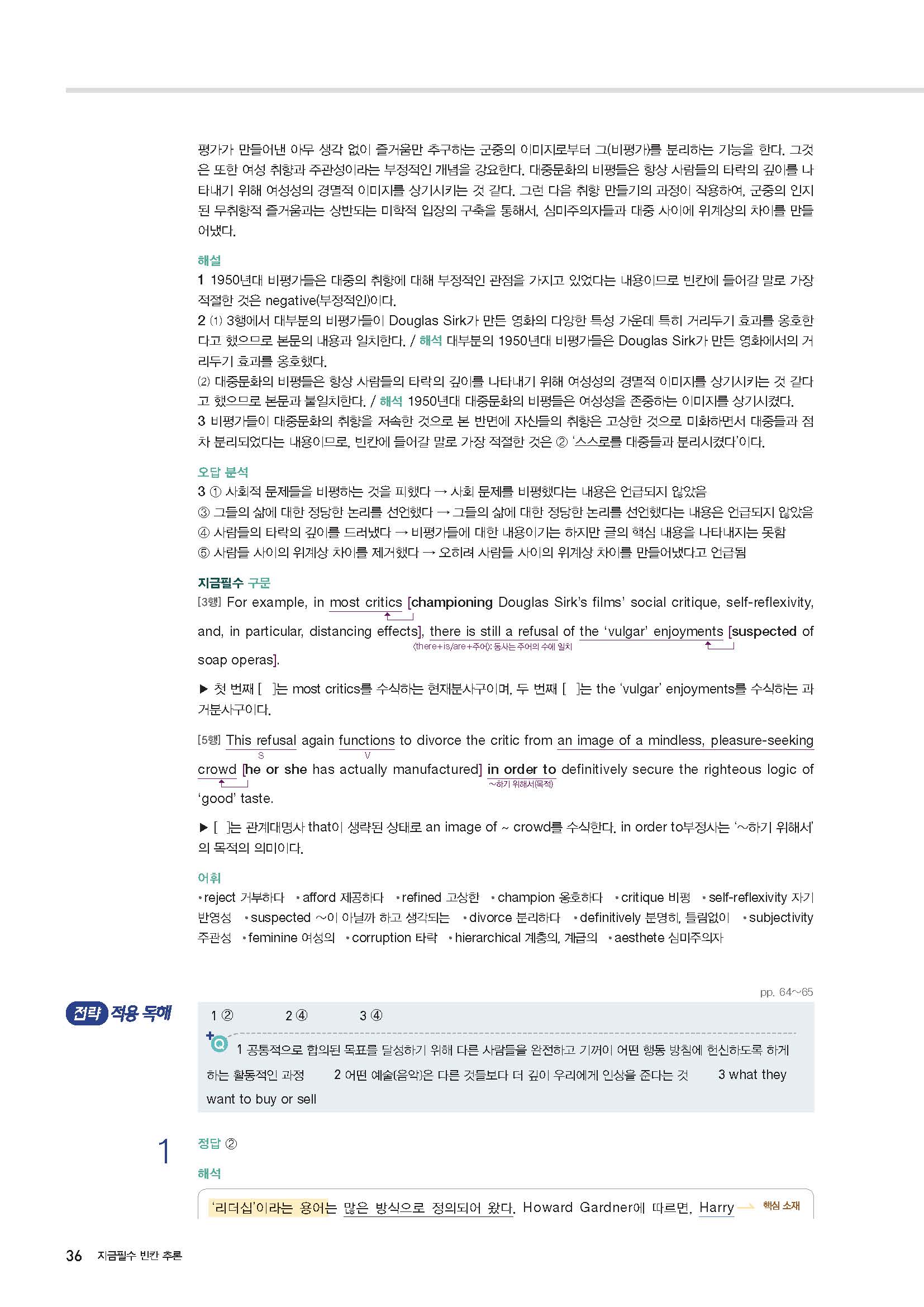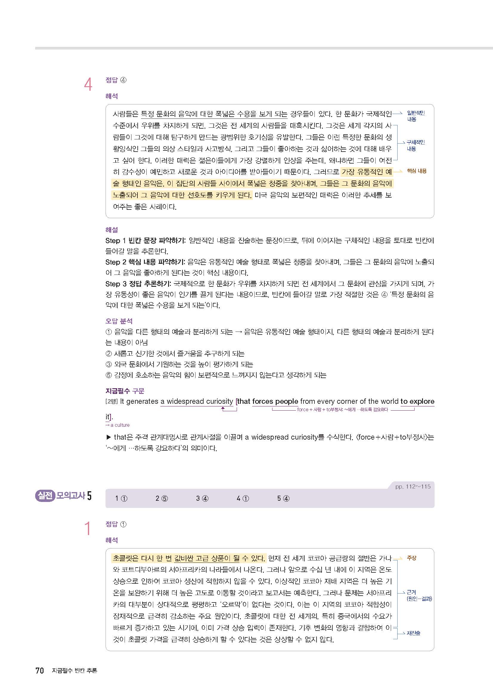 지금필수 영어영역 빈칸추론 답지 해설 사진답지 빠른답지 모바일최적화