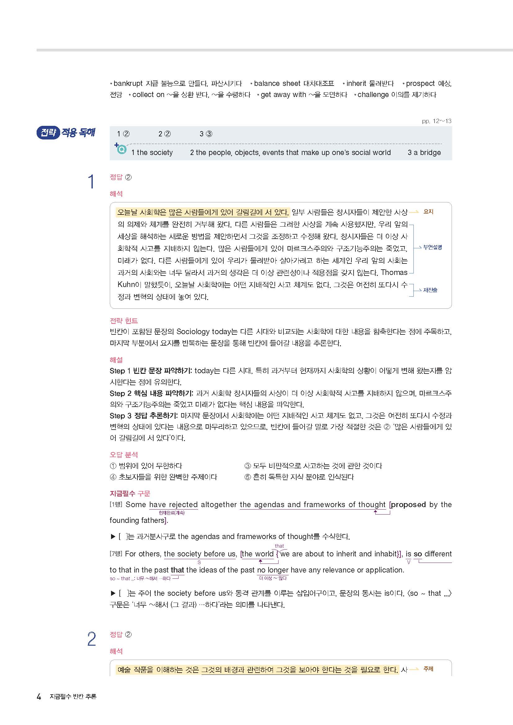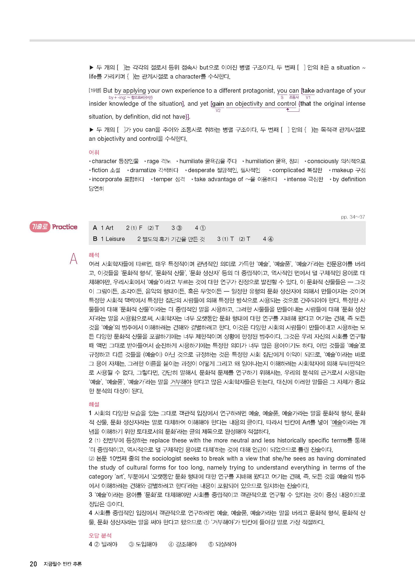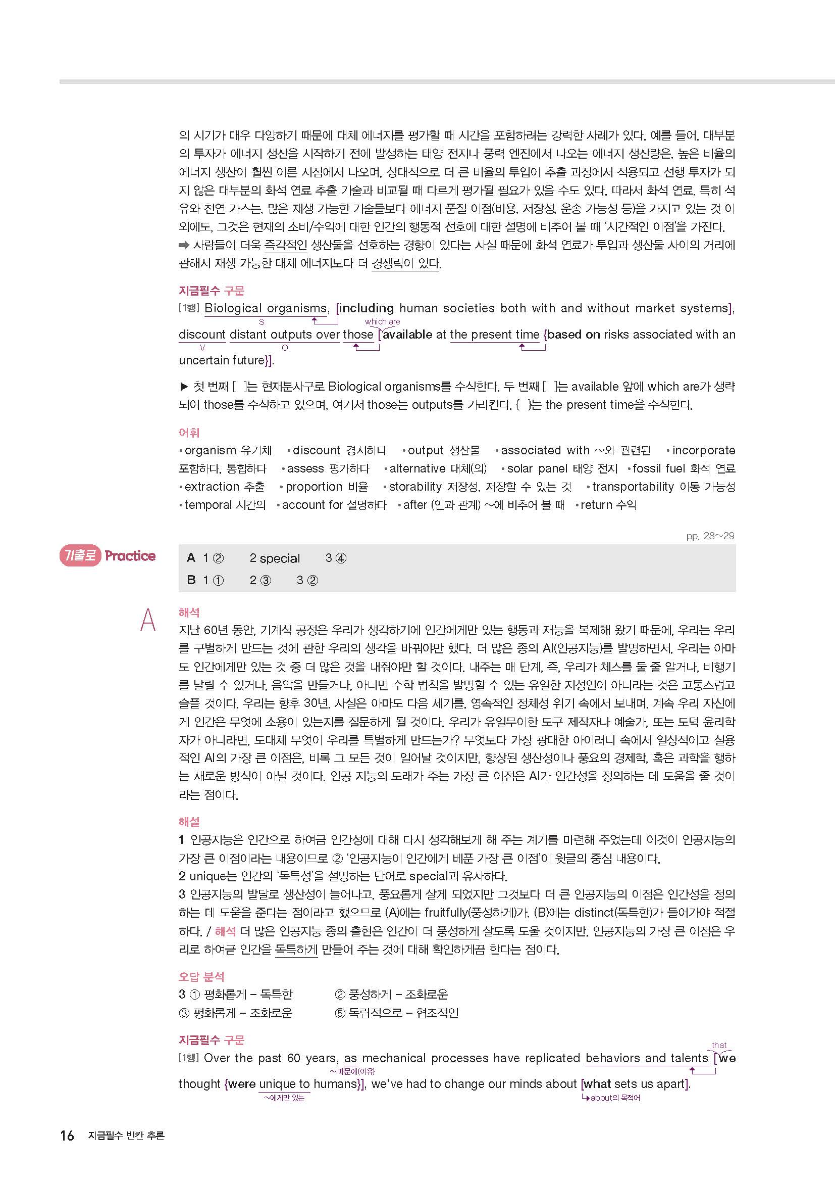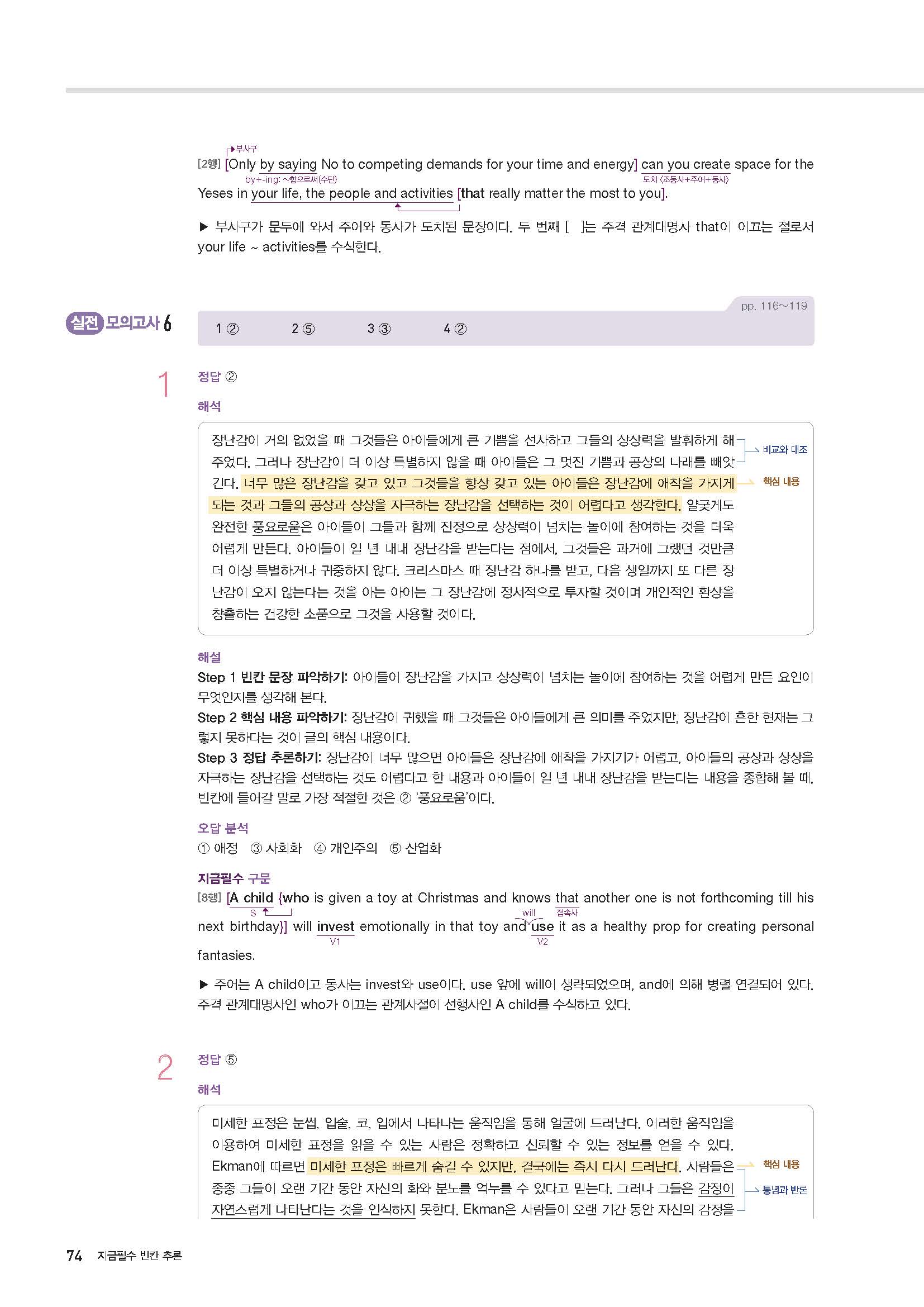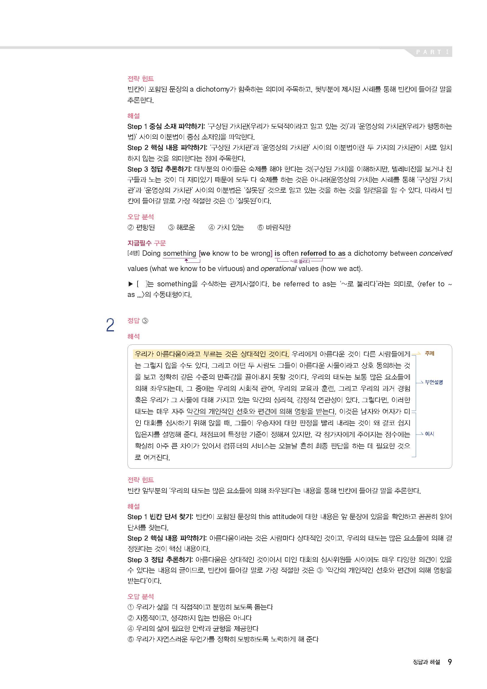 지금필수 영어영역 빈칸추론 답지 해설 사진답지 빠른답지 모바일최적화