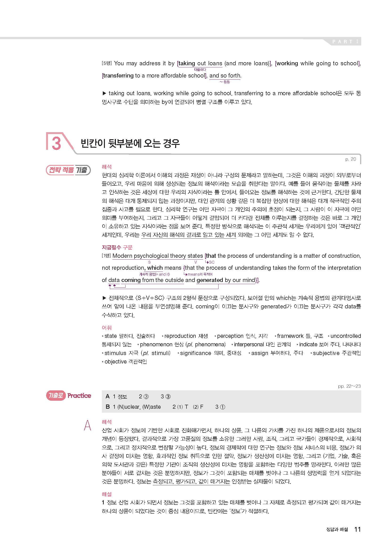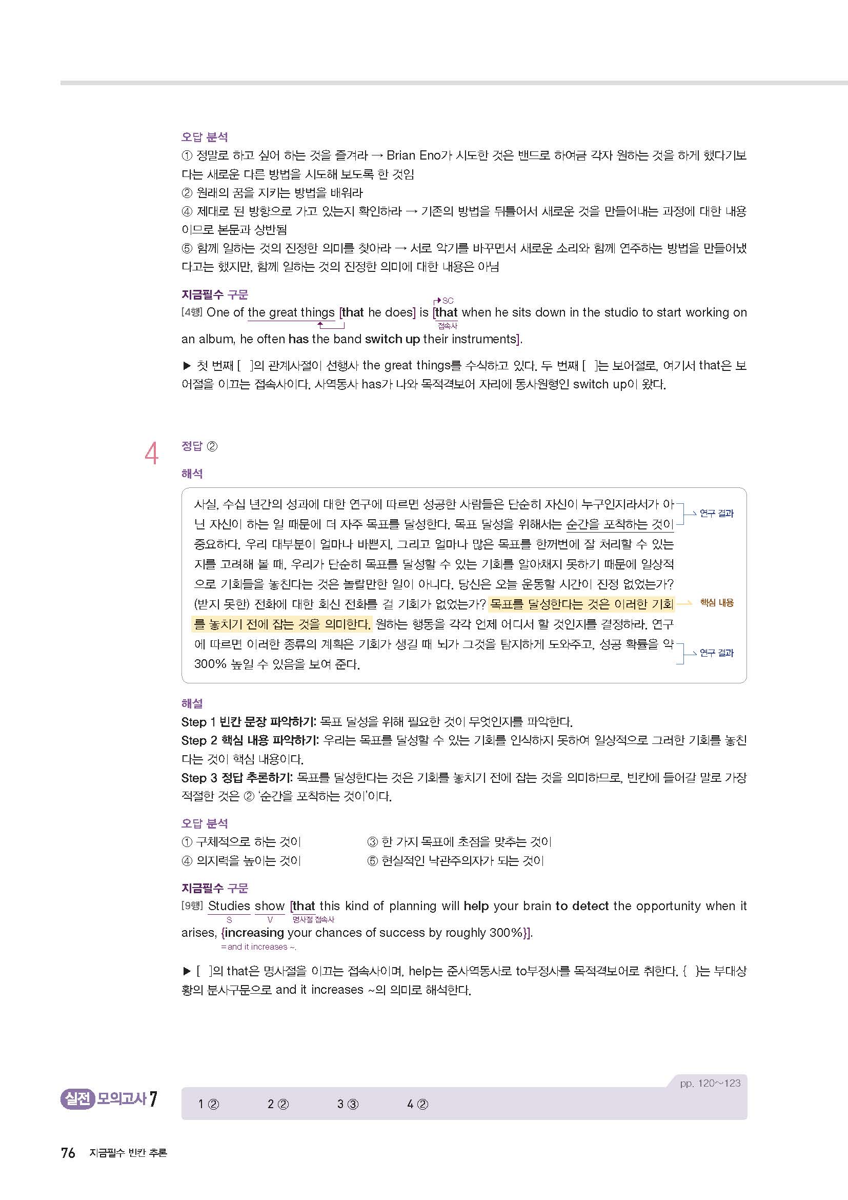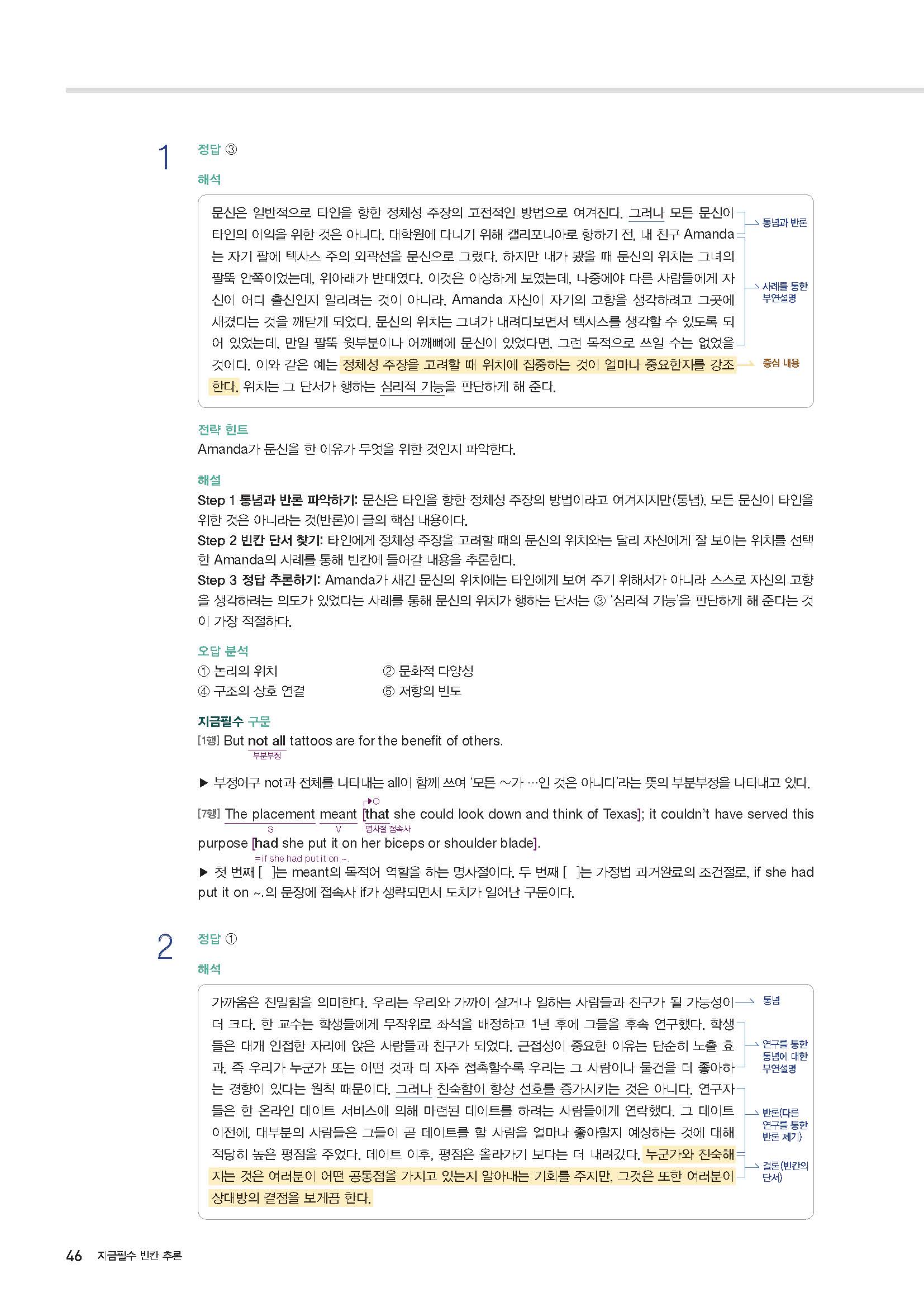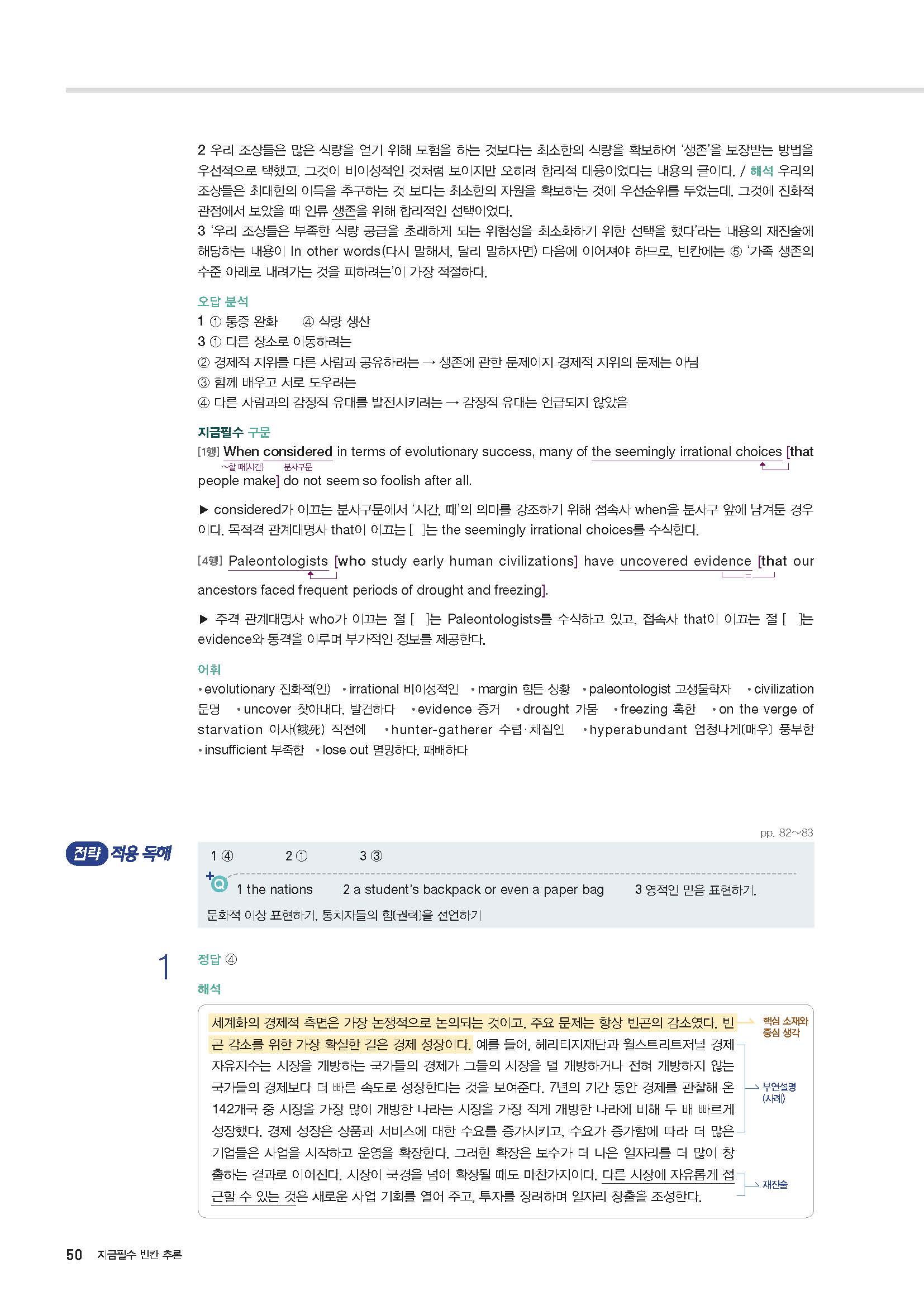 지금필수 영어영역 빈칸추론 답지 해설 사진답지 빠른답지 모바일최적화