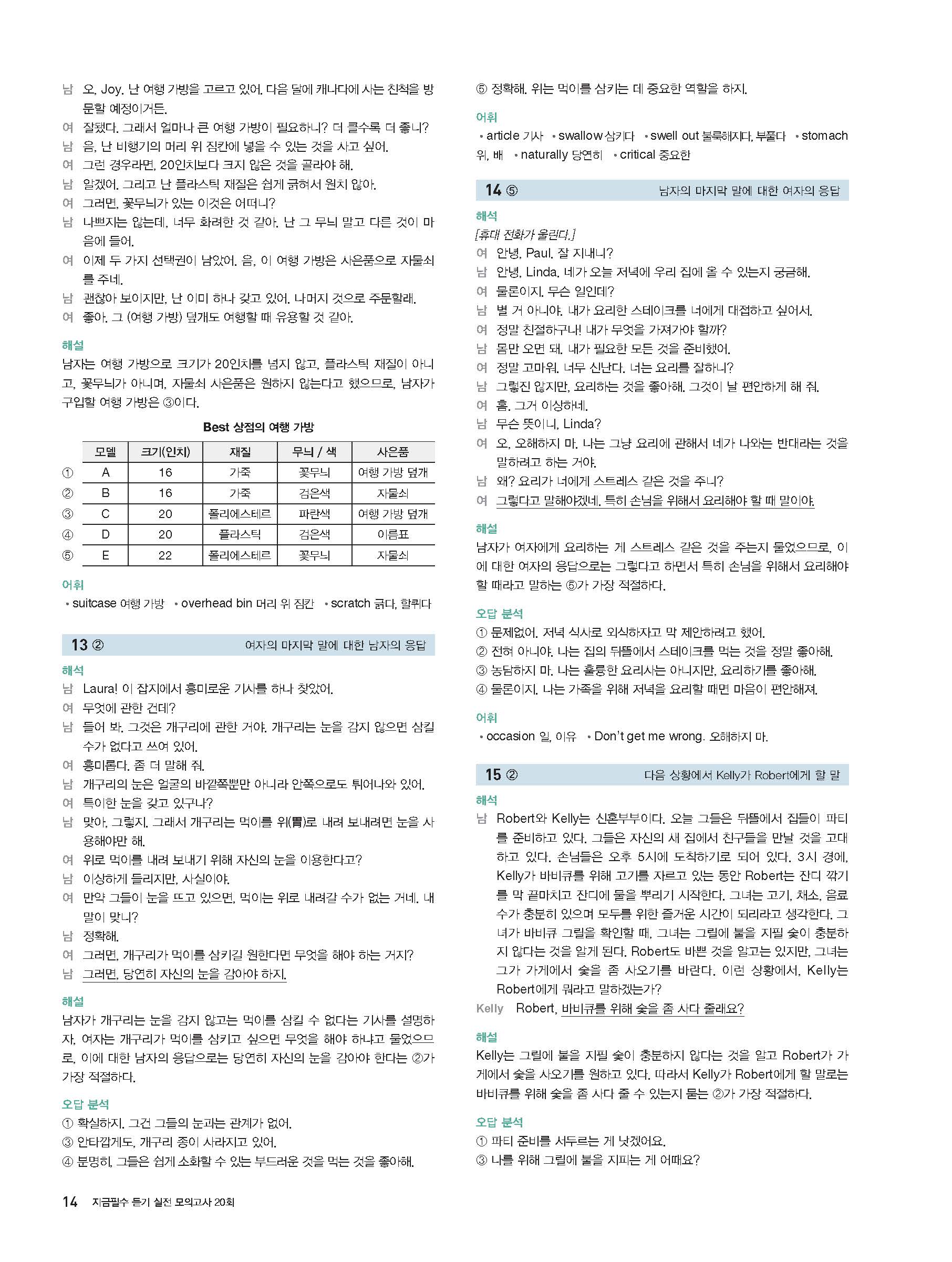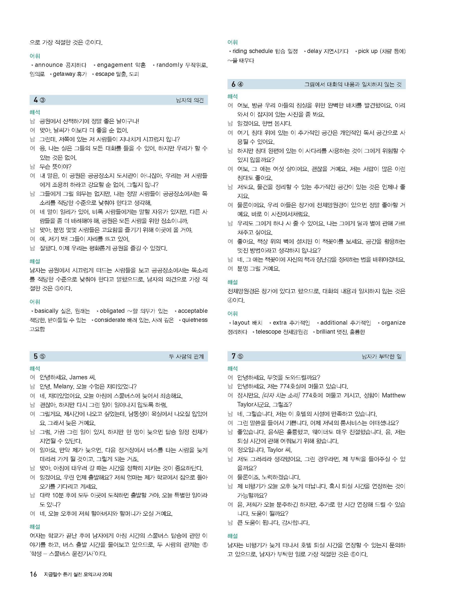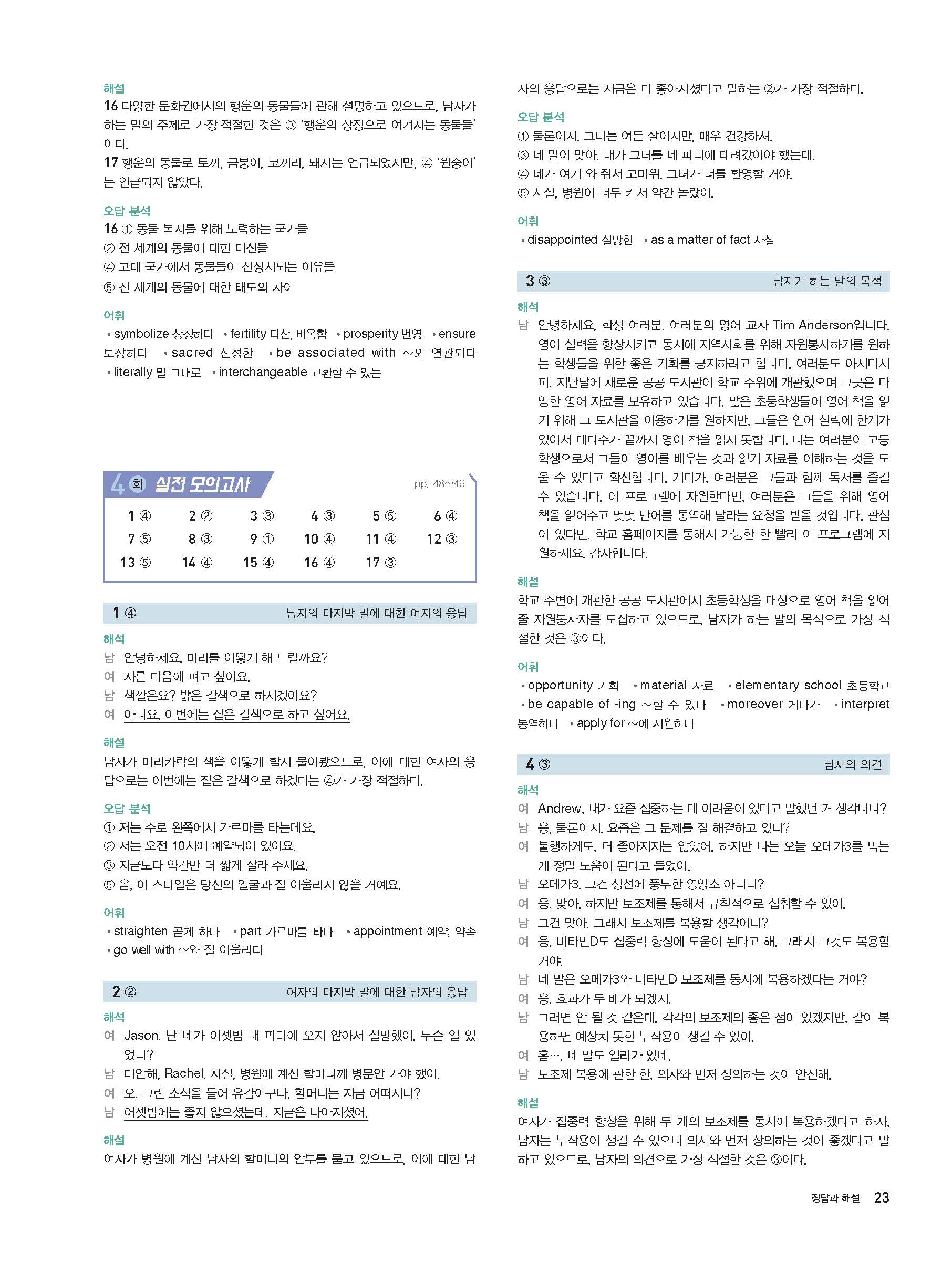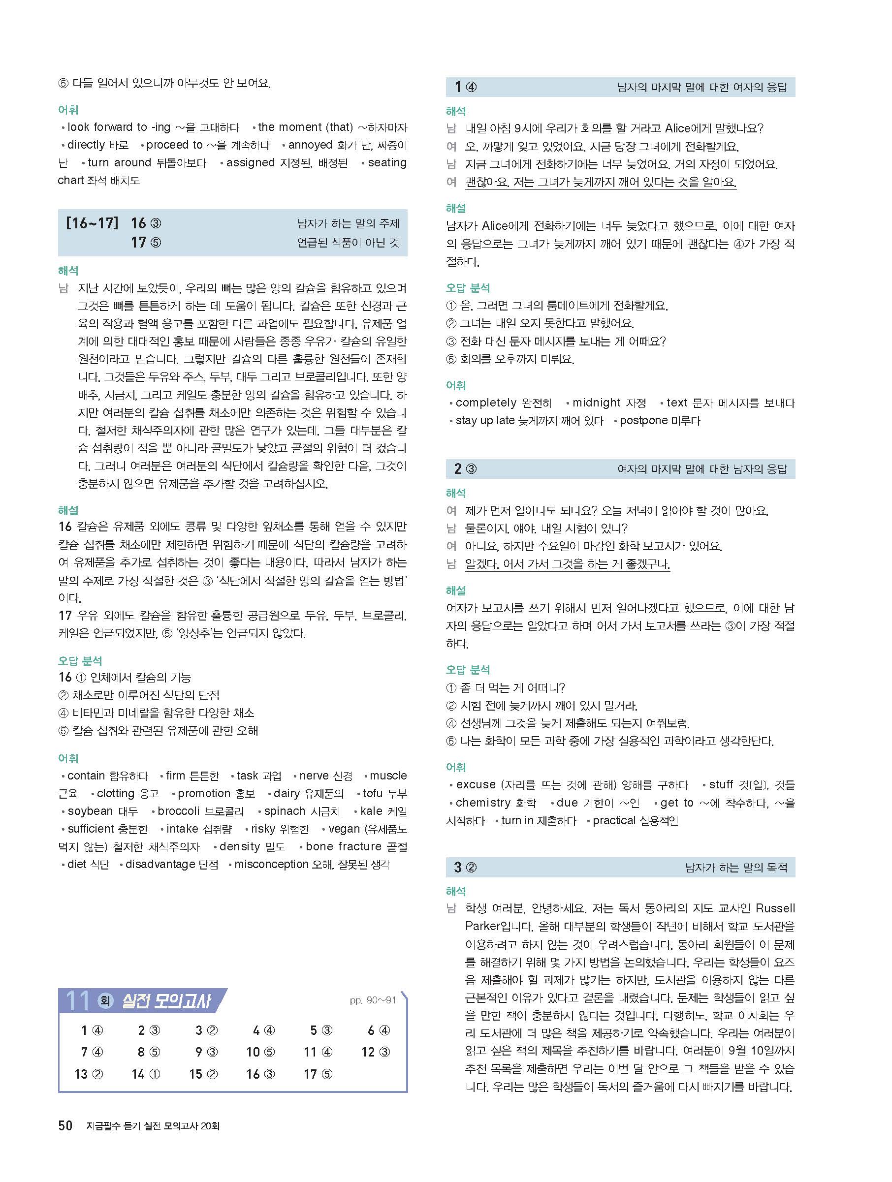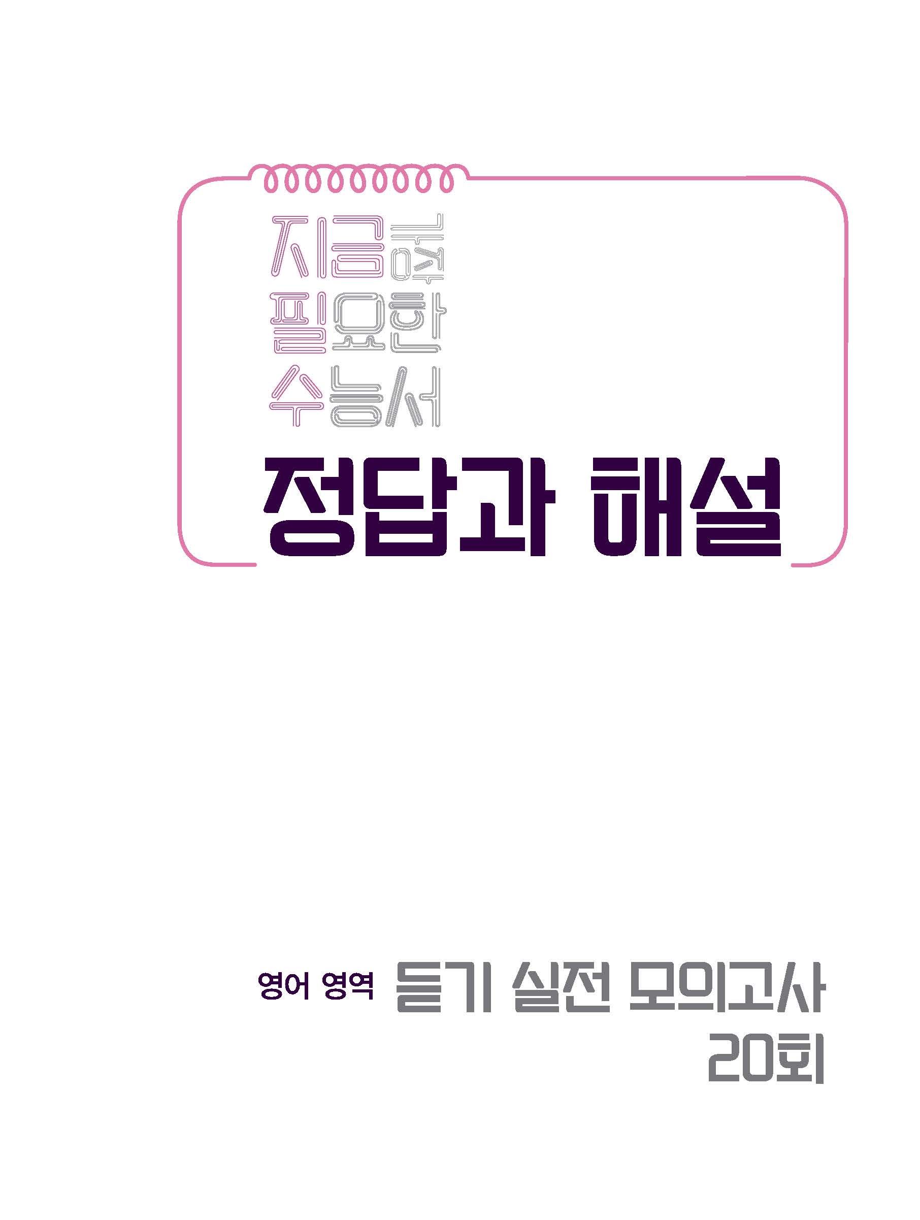 지금필수 영어영역 듣기실전모의고사 20회 답지 해설 사진답지 빠른답지 모바일최적화