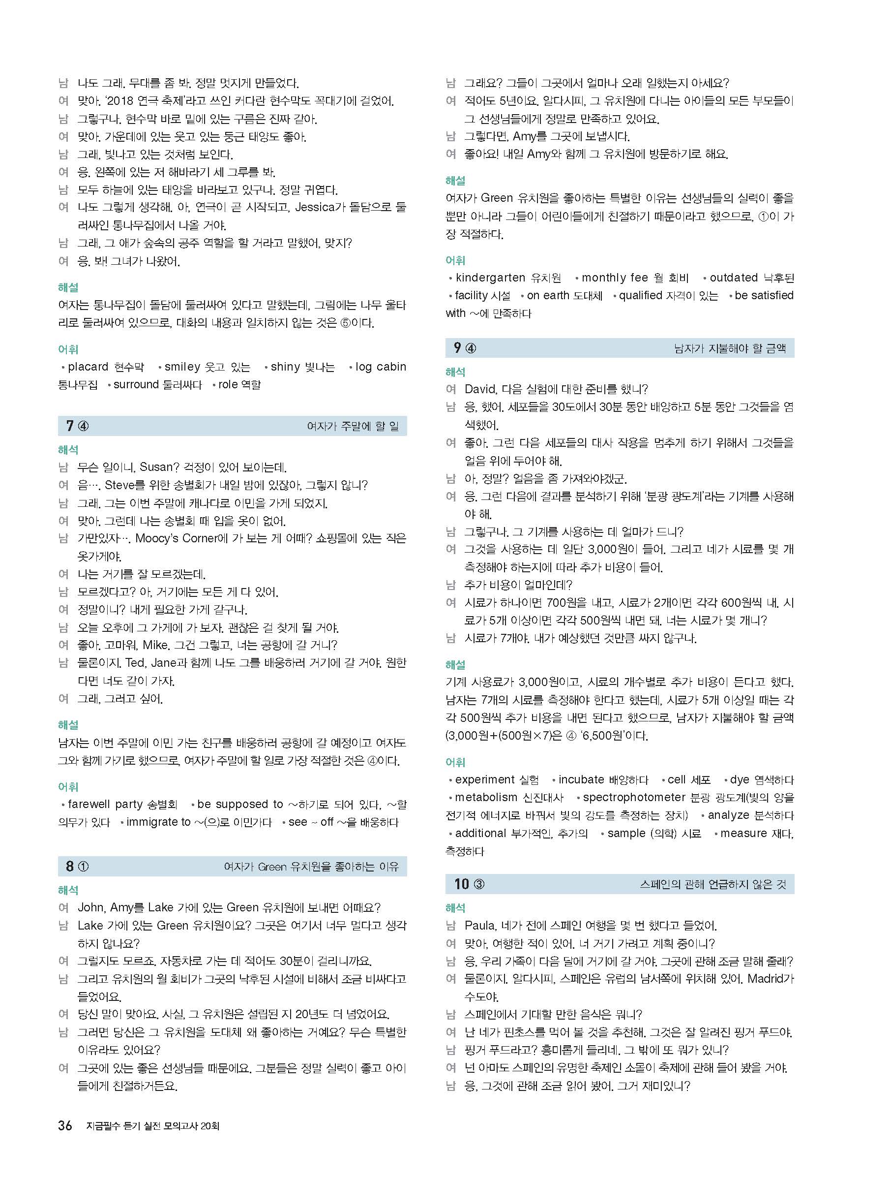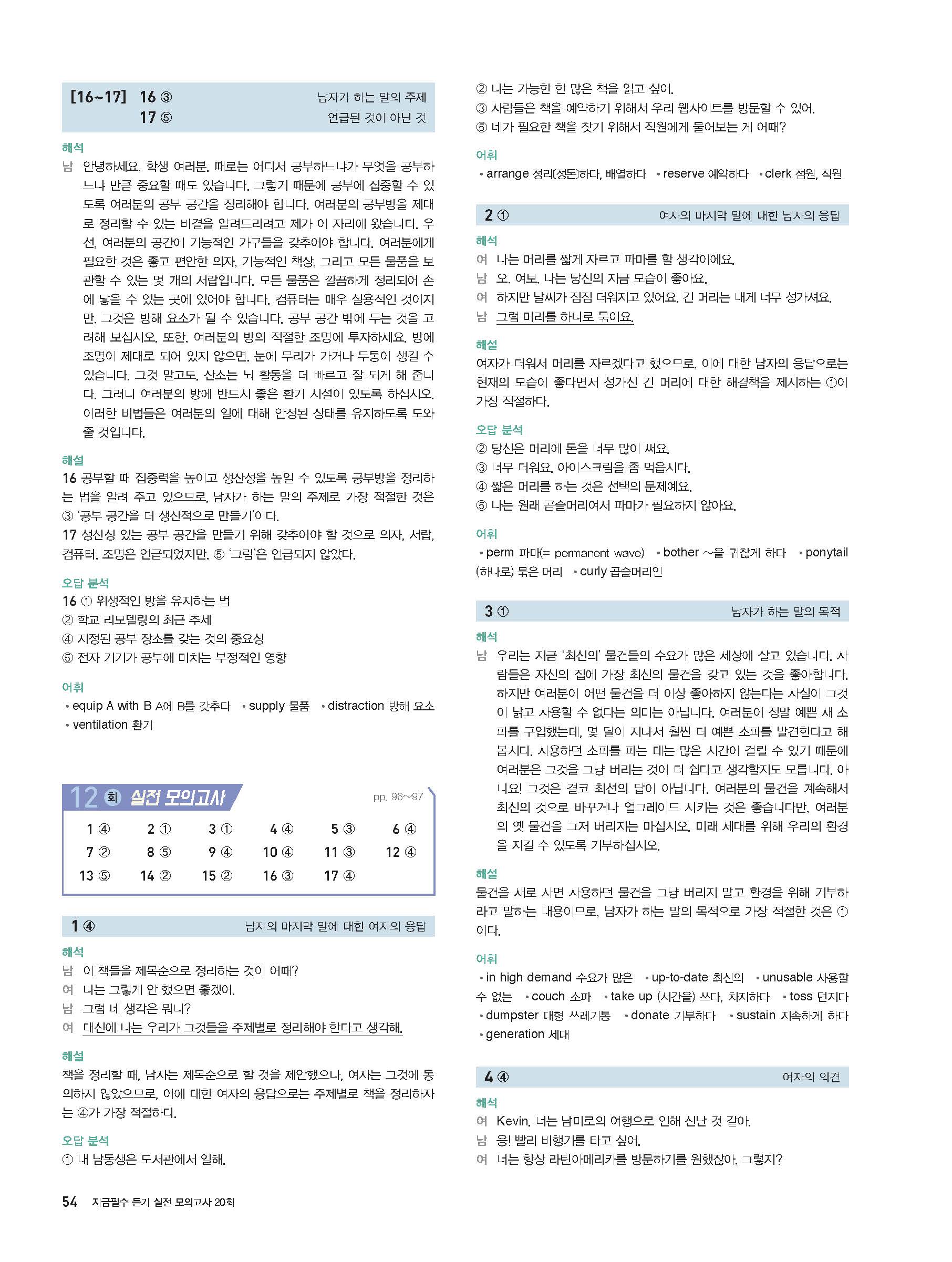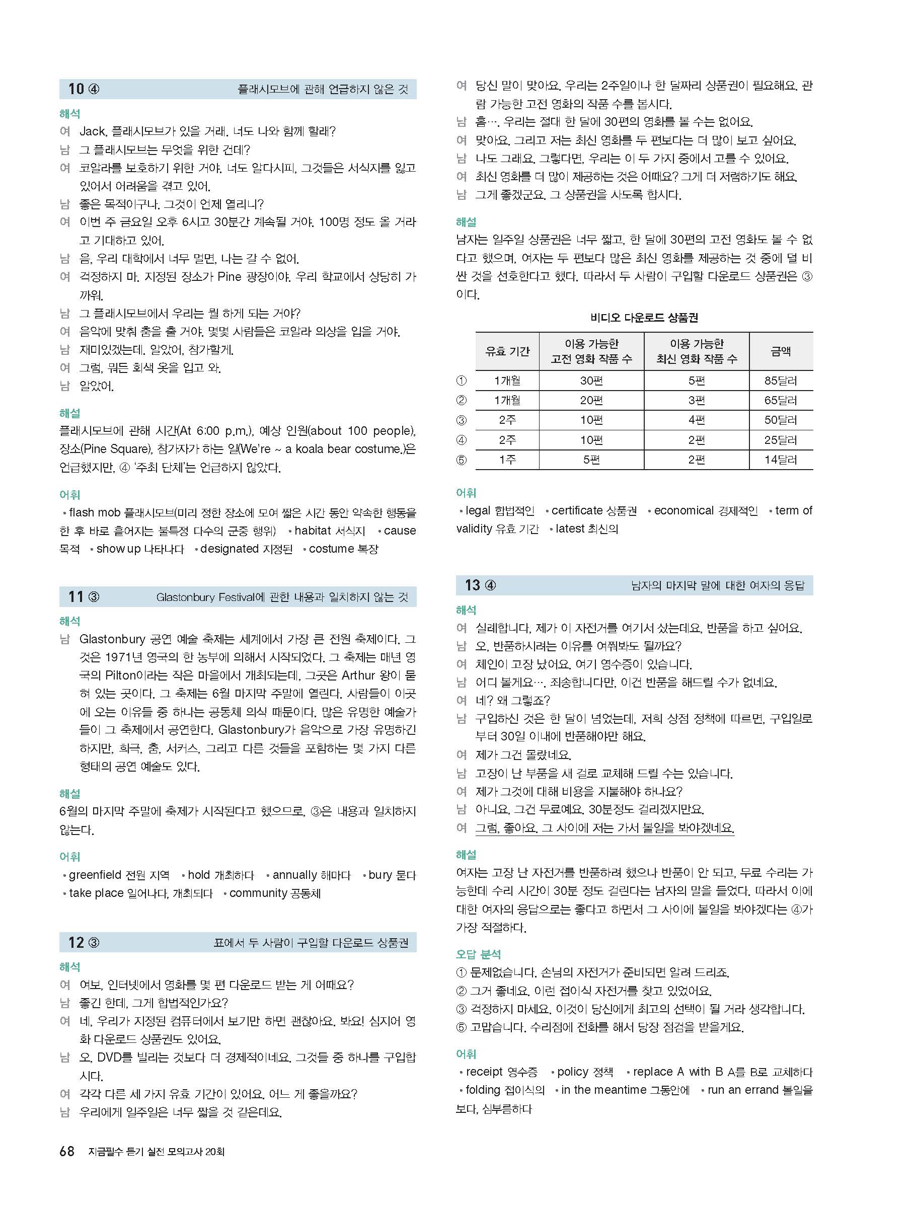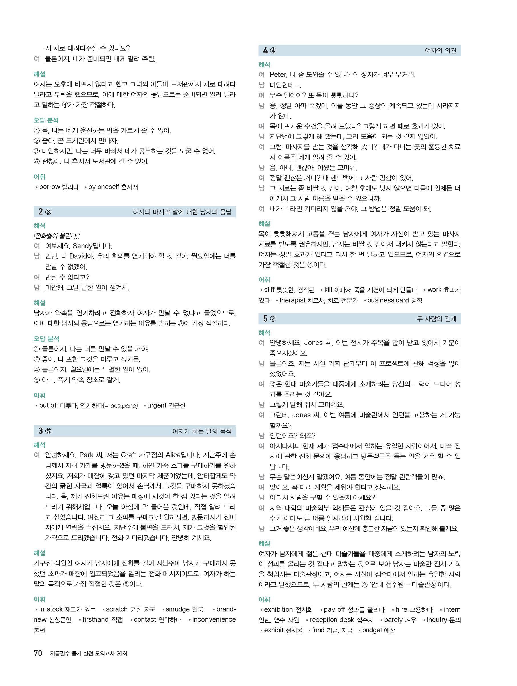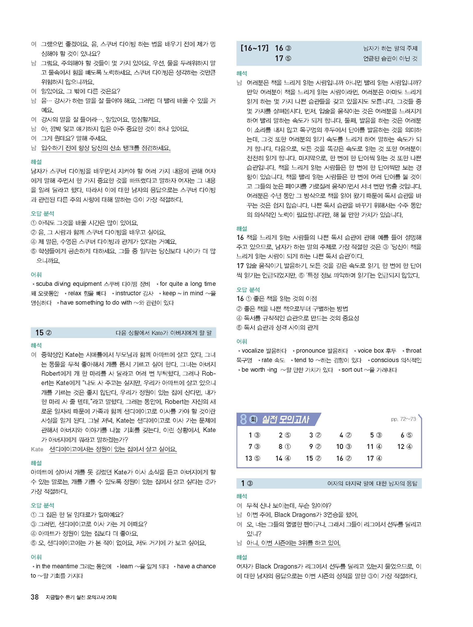 지금필수 영어영역 듣기실전모의고사 20회 답지 해설 사진답지 빠른답지 모바일최적화