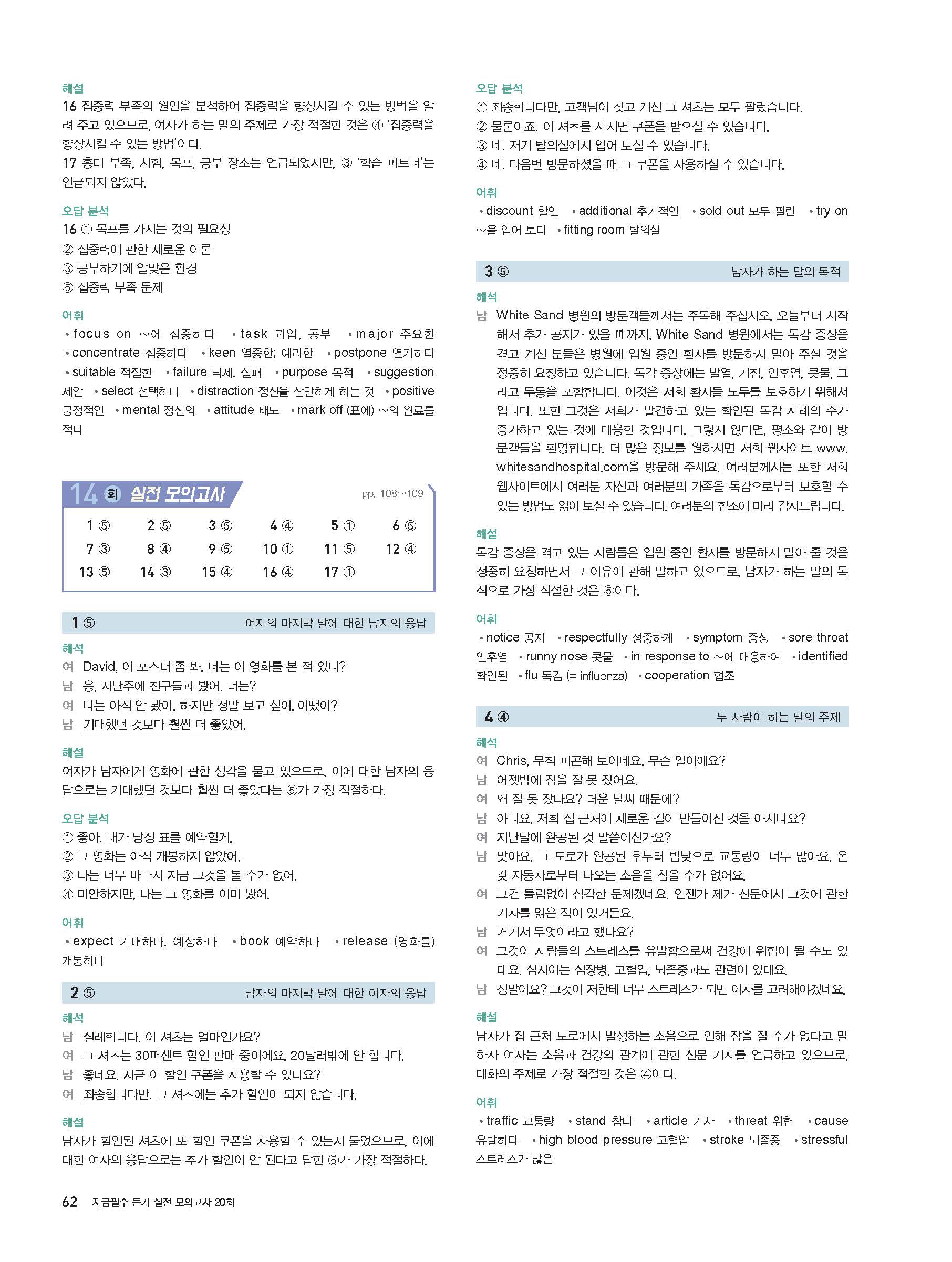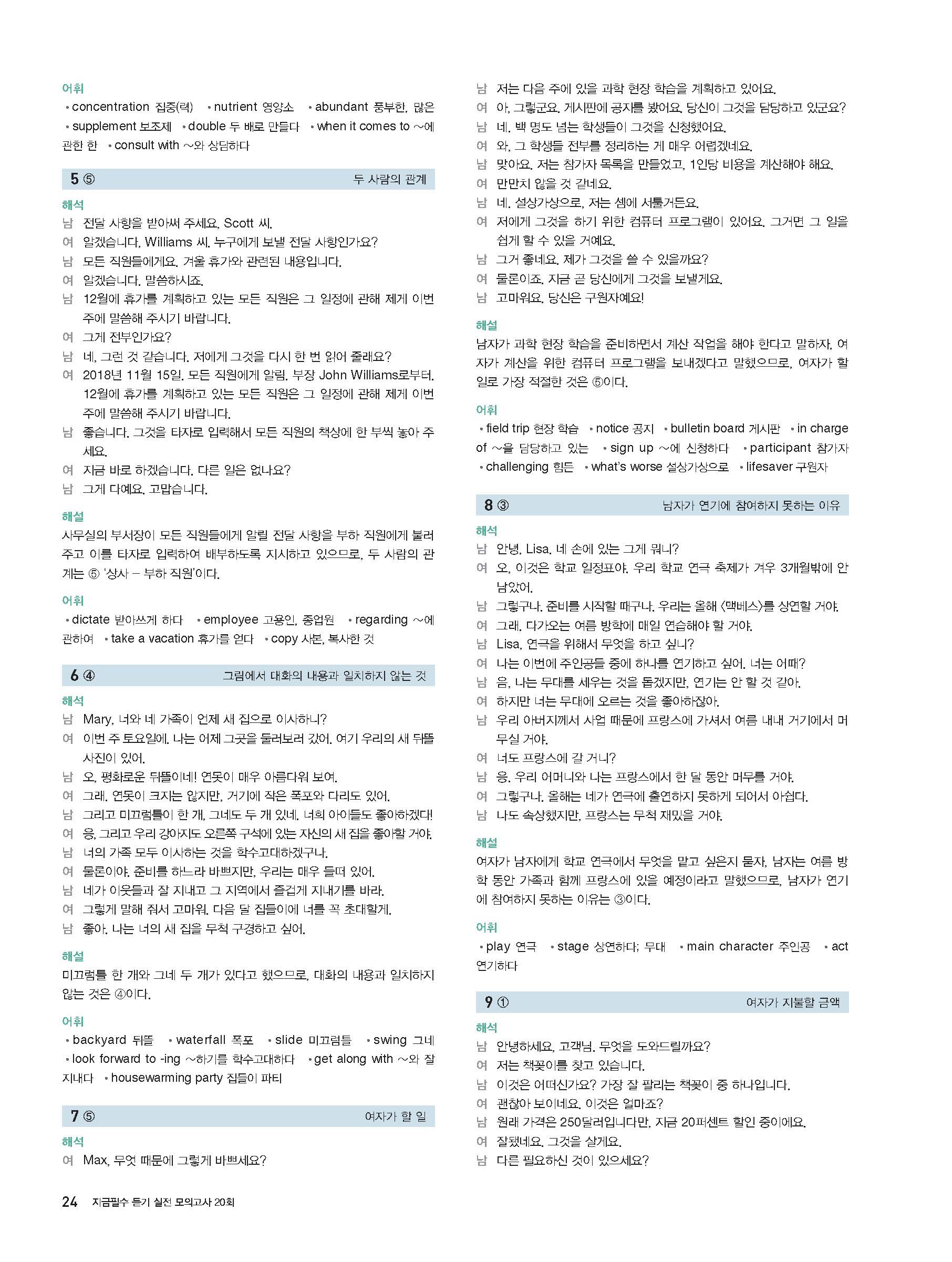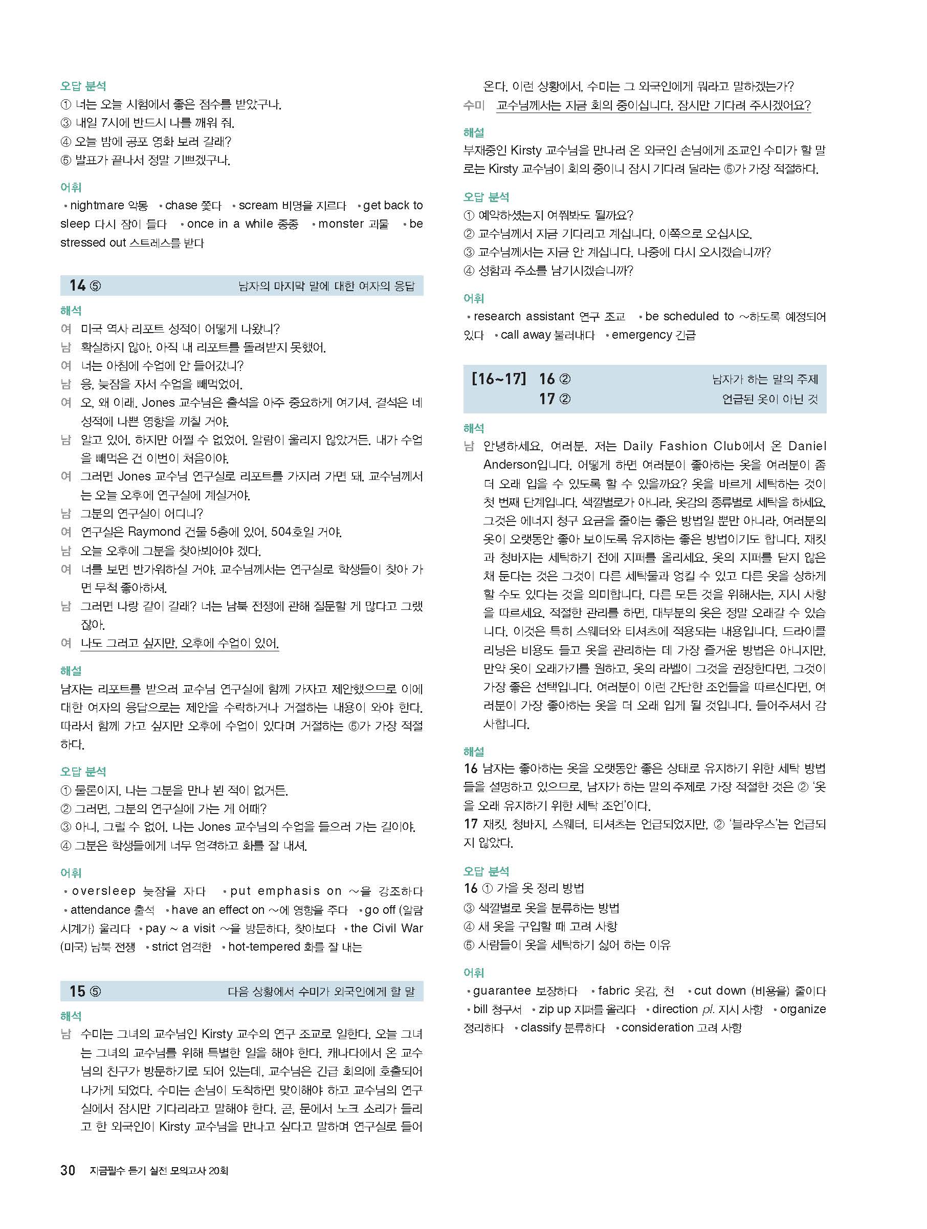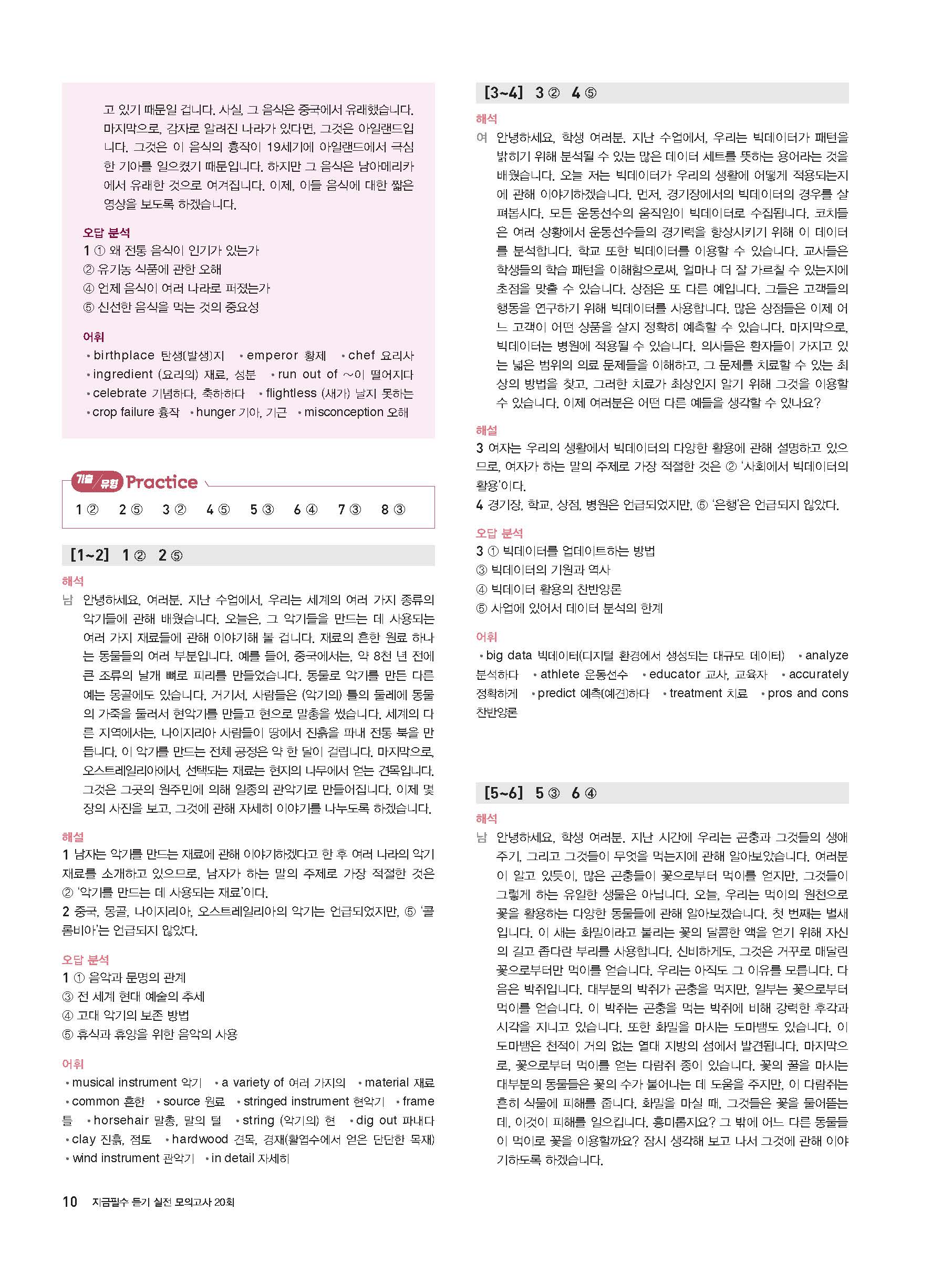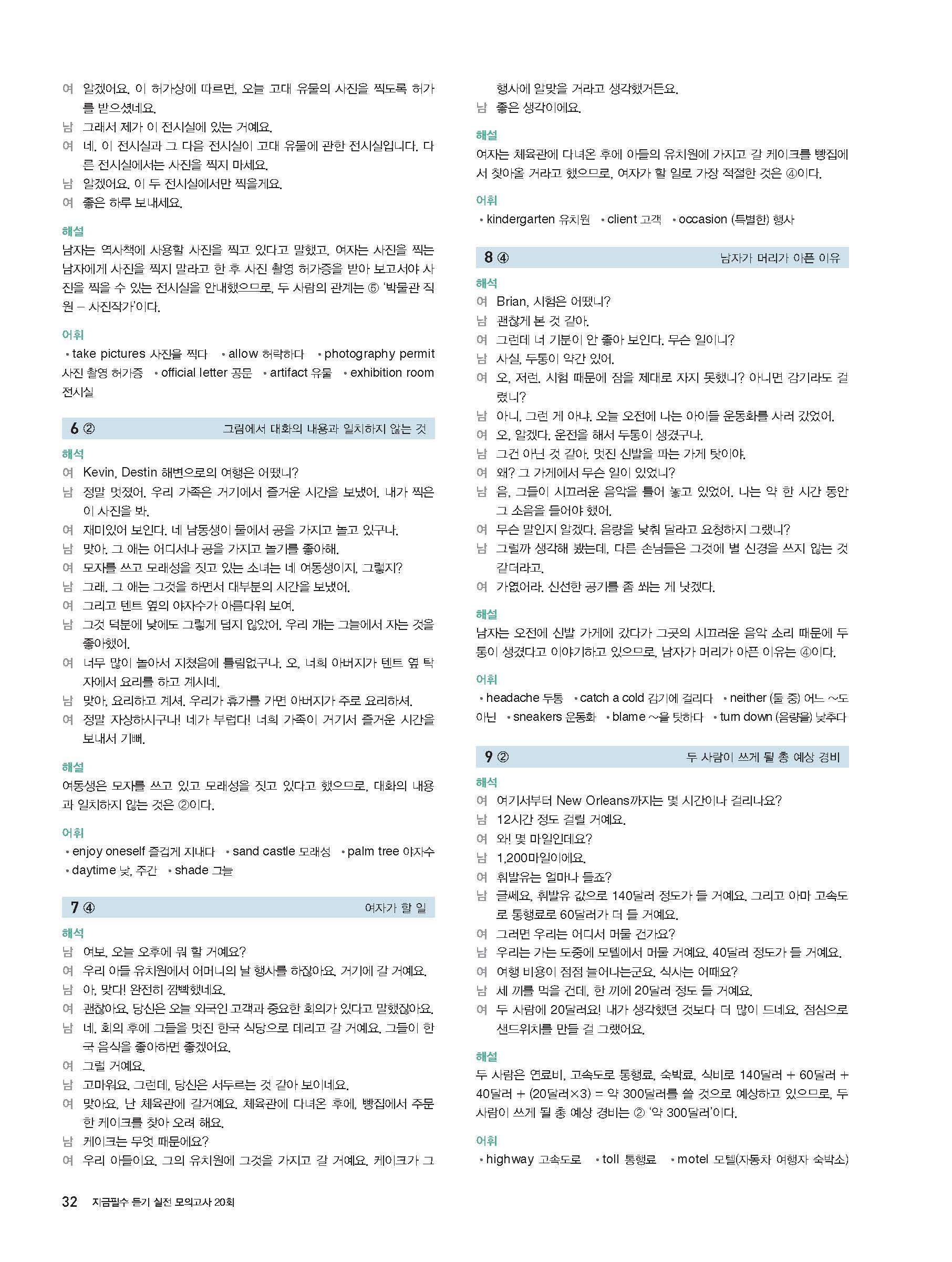 지금필수 영어영역 듣기실전모의고사 20회 답지 해설 사진답지 빠른답지 모바일최적화