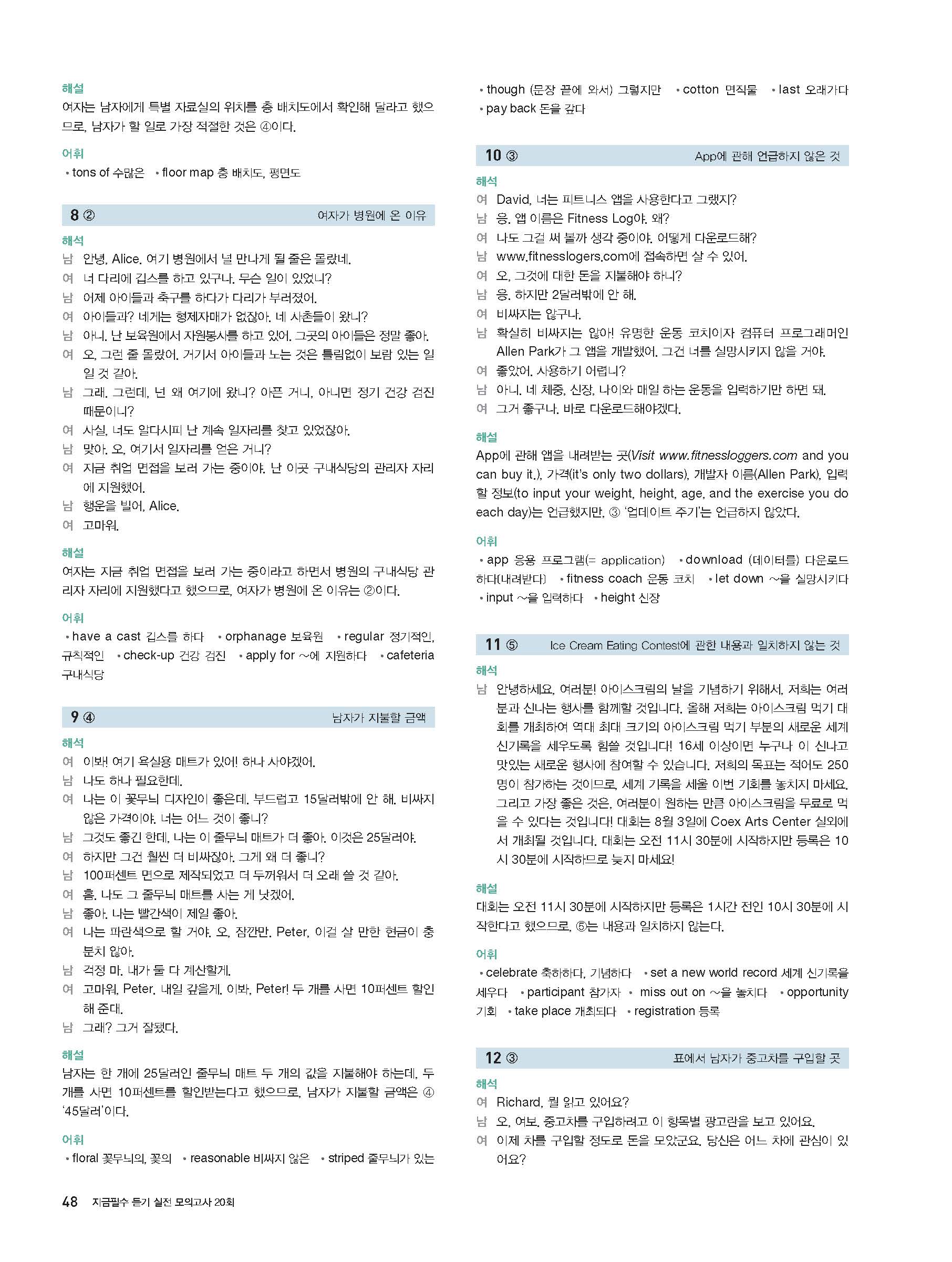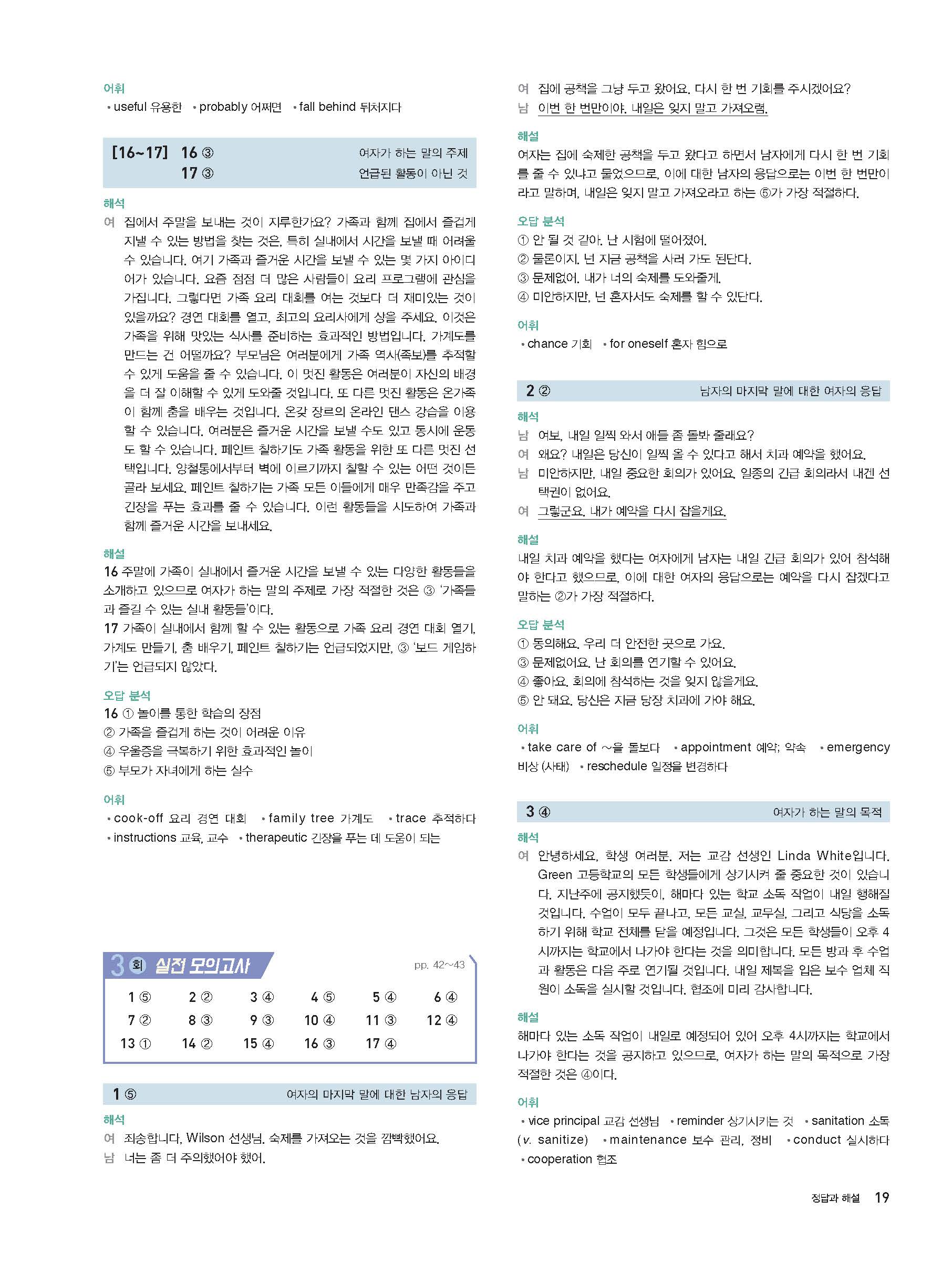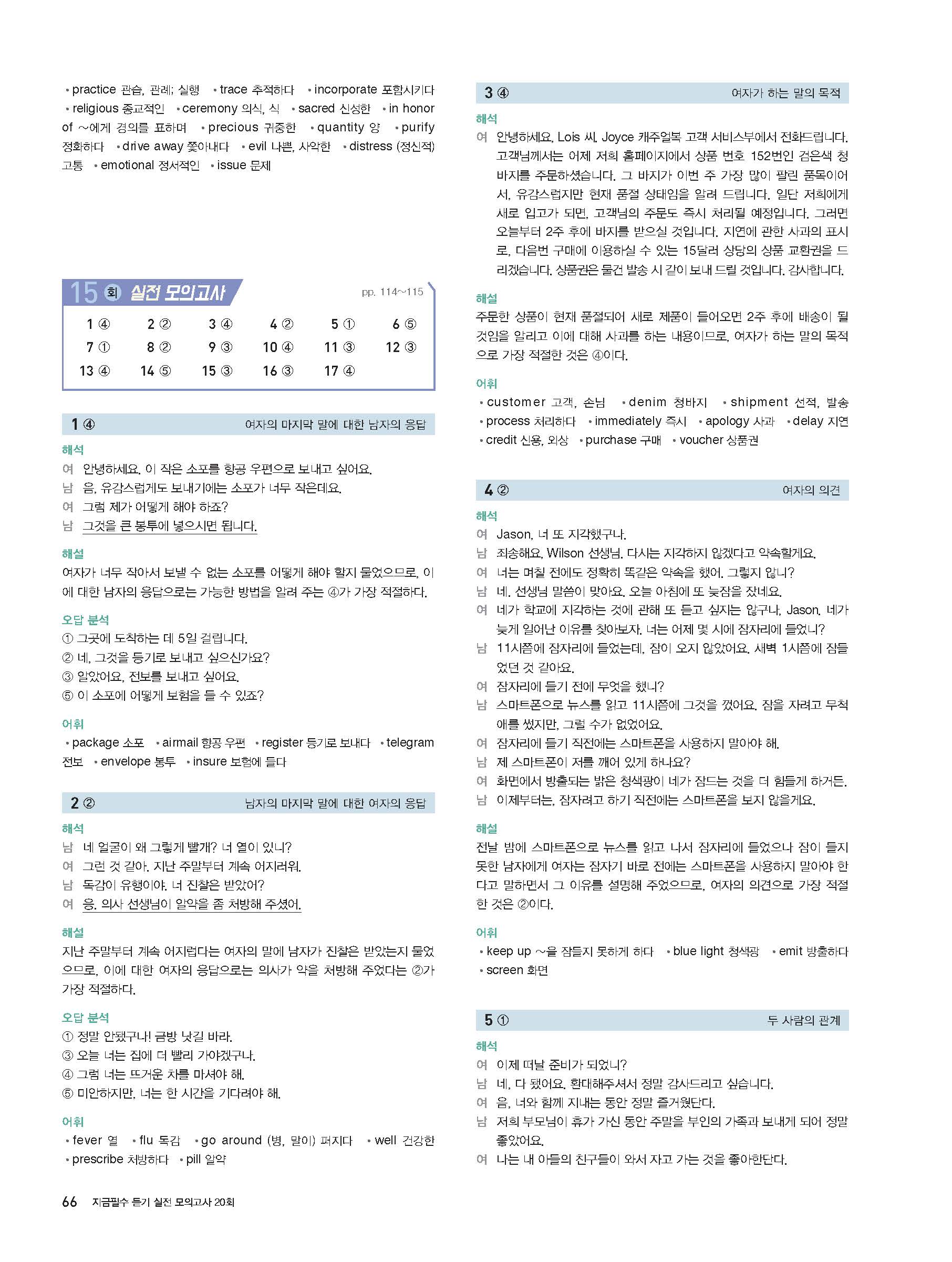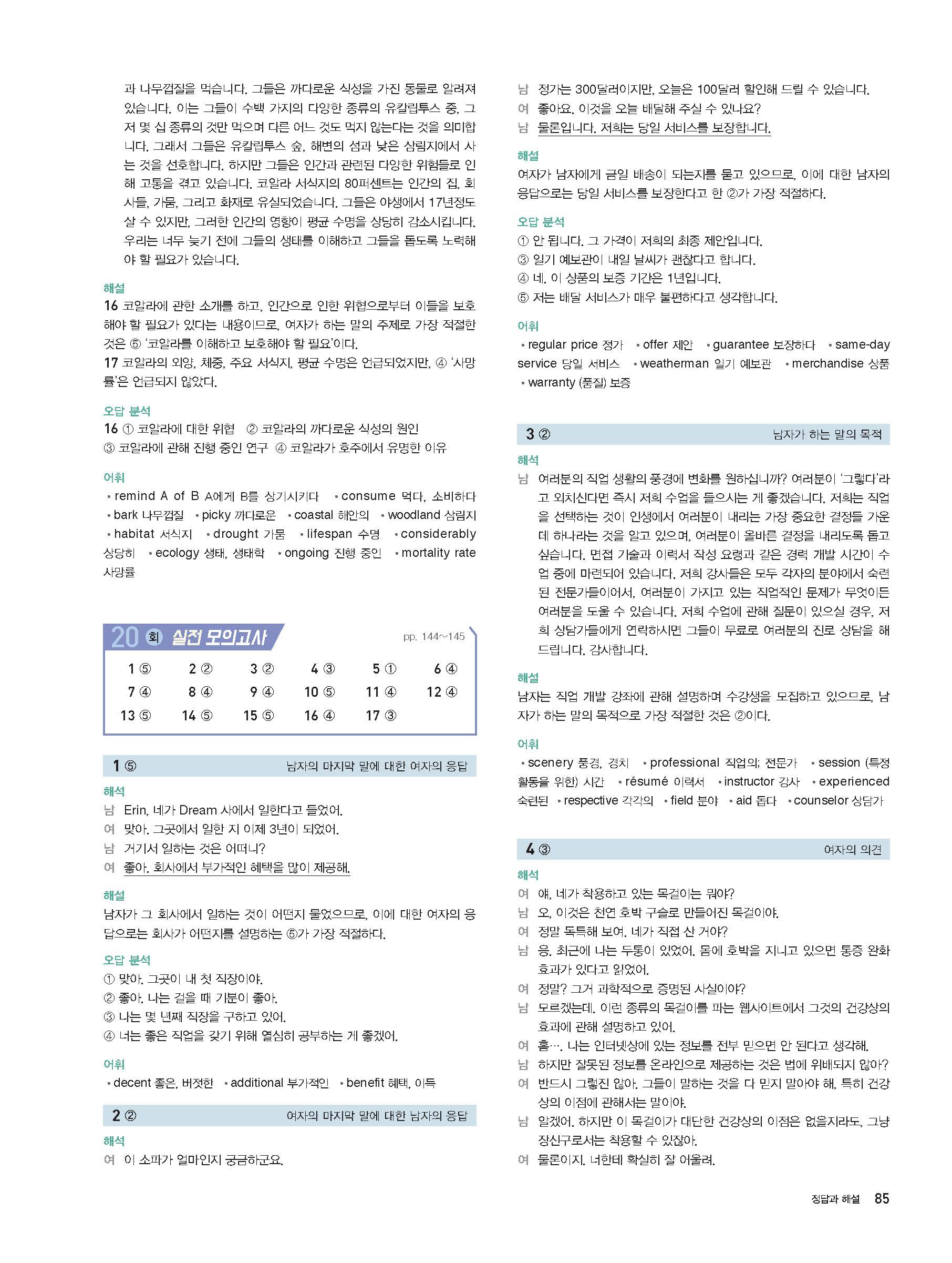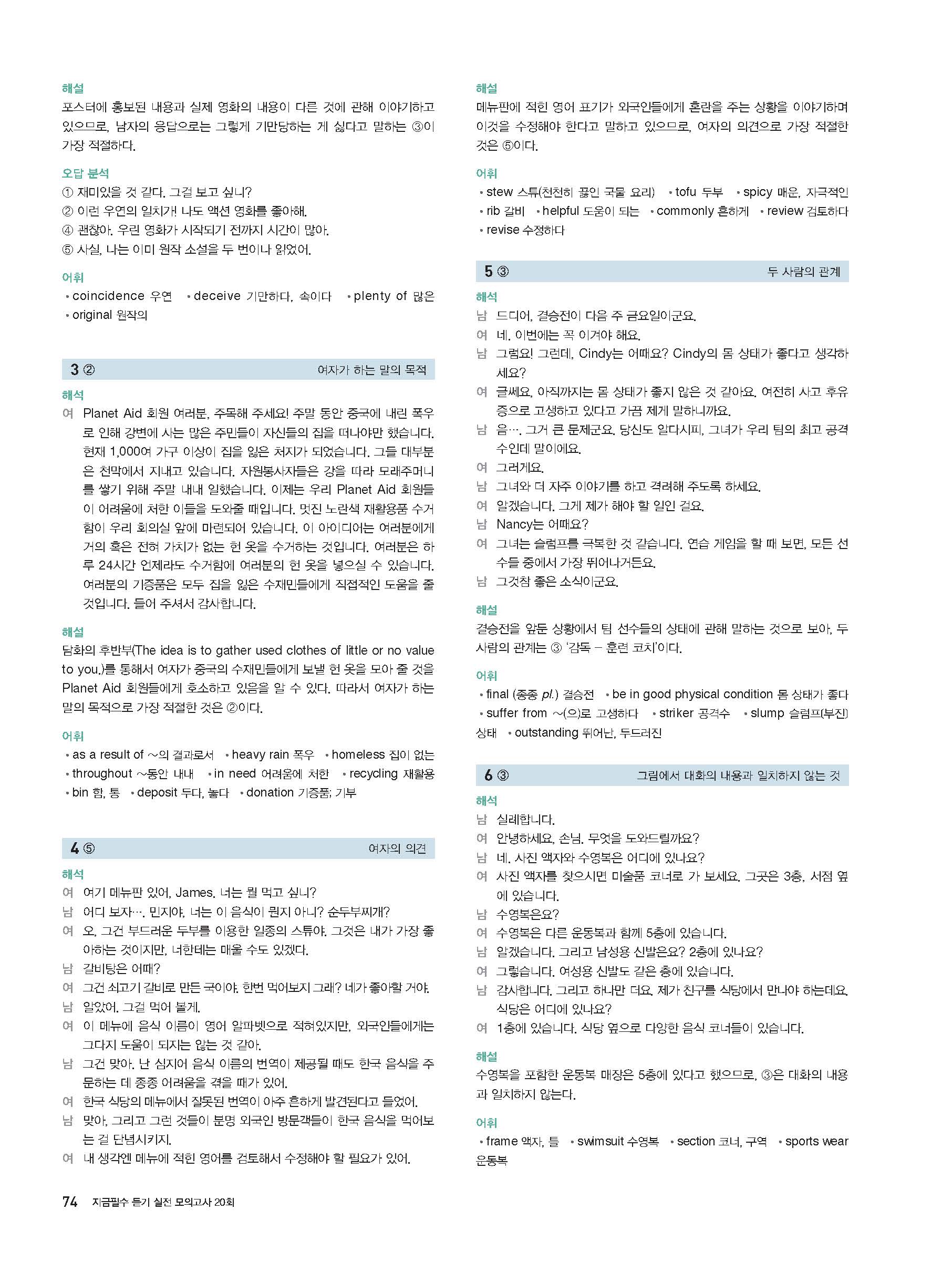 지금필수 영어영역 듣기실전모의고사 20회 답지 해설 사진답지 빠른답지 모바일최적화