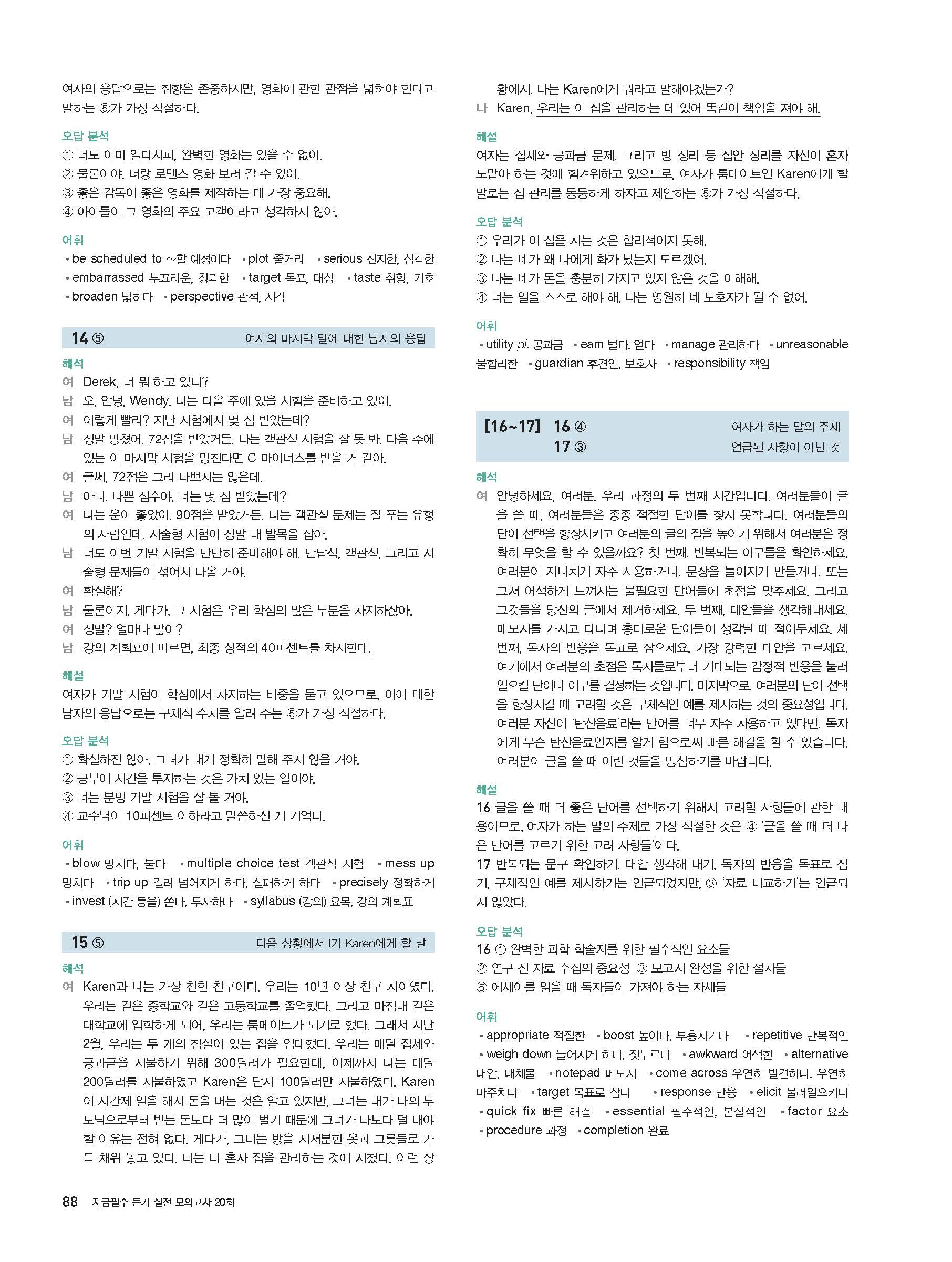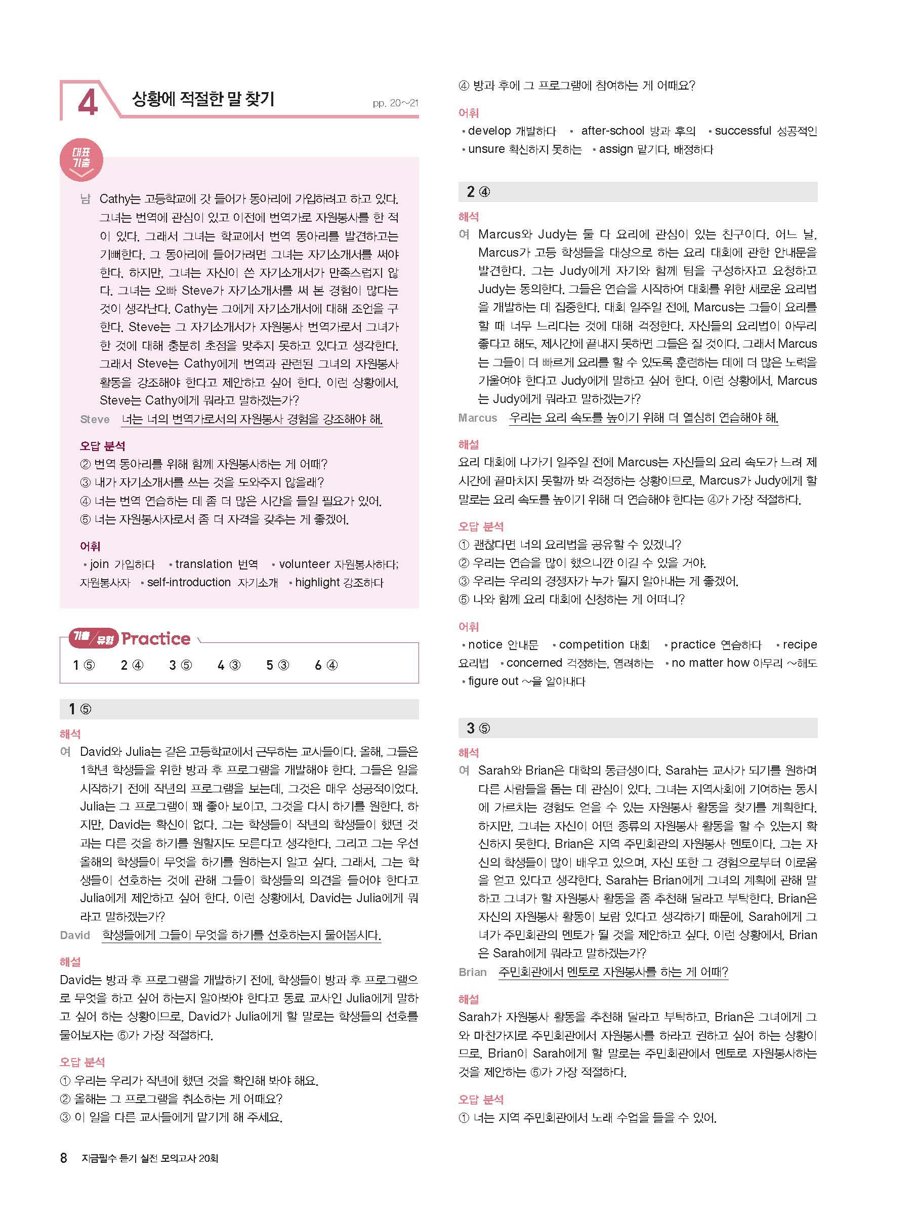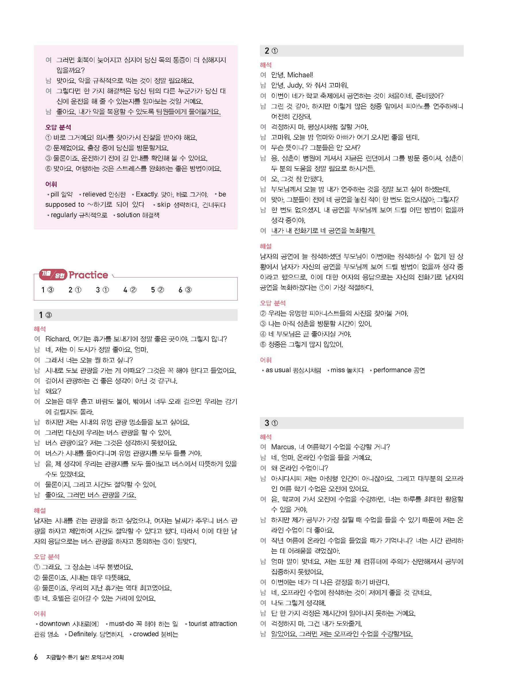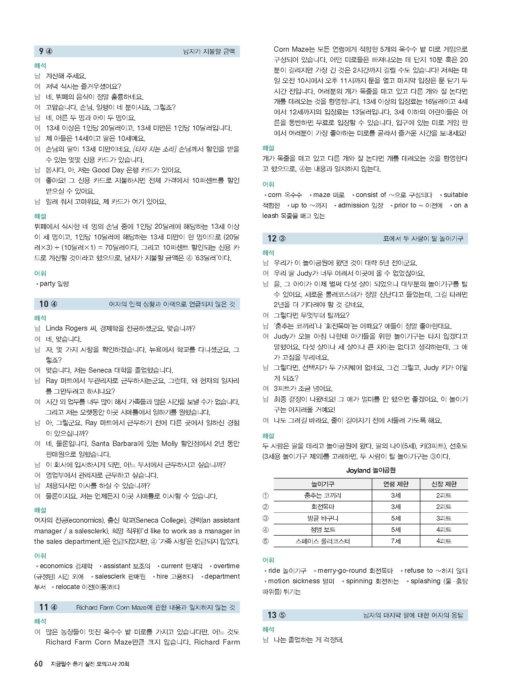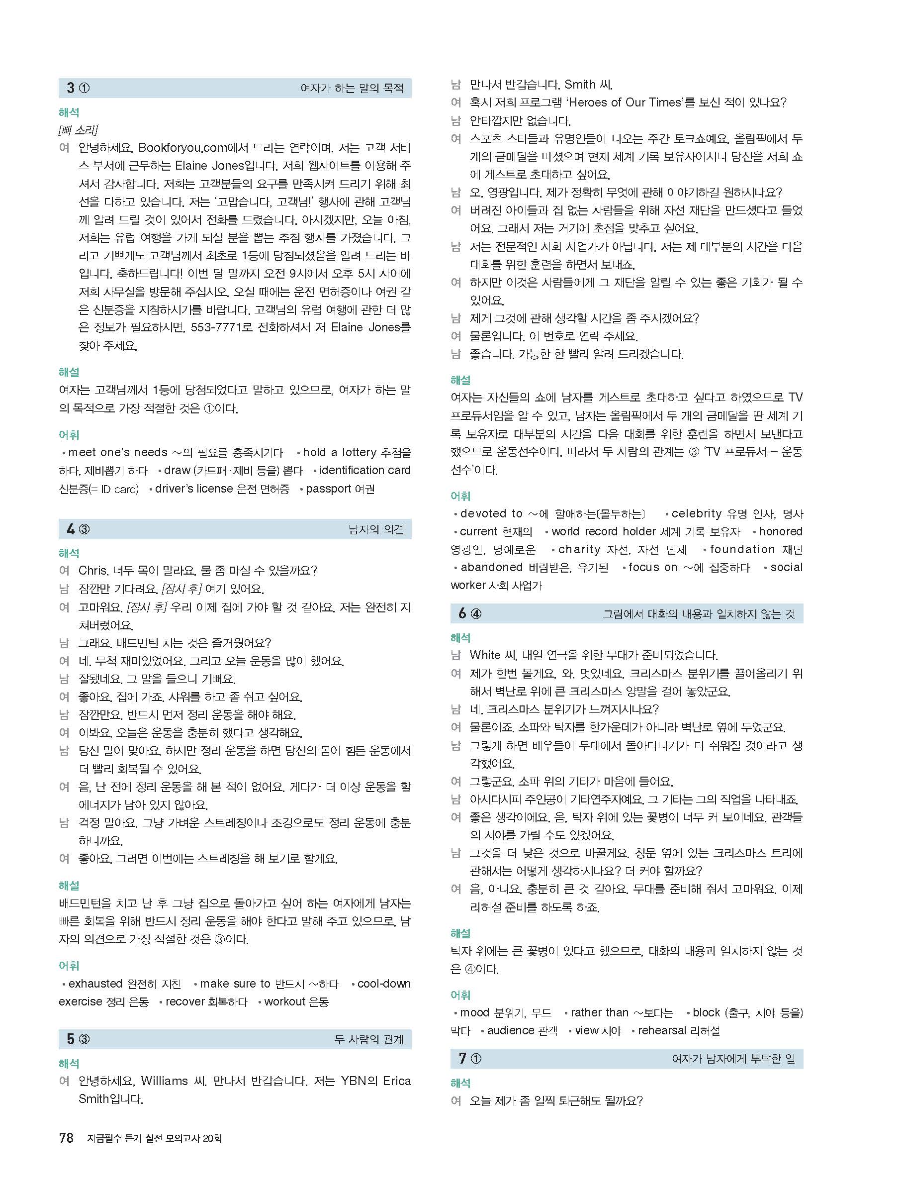 지금필수 영어영역 듣기실전모의고사 20회 답지 해설 사진답지 빠른답지 모바일최적화