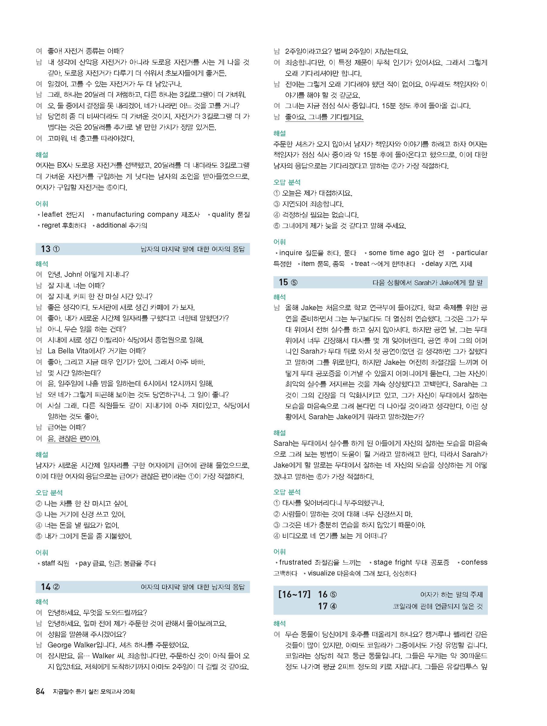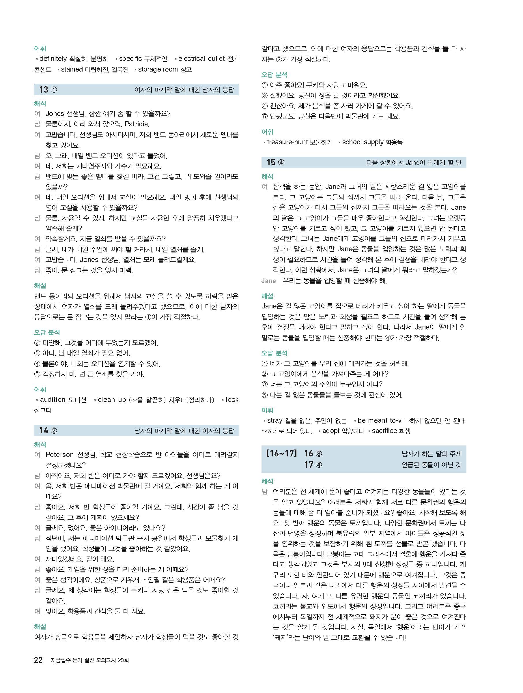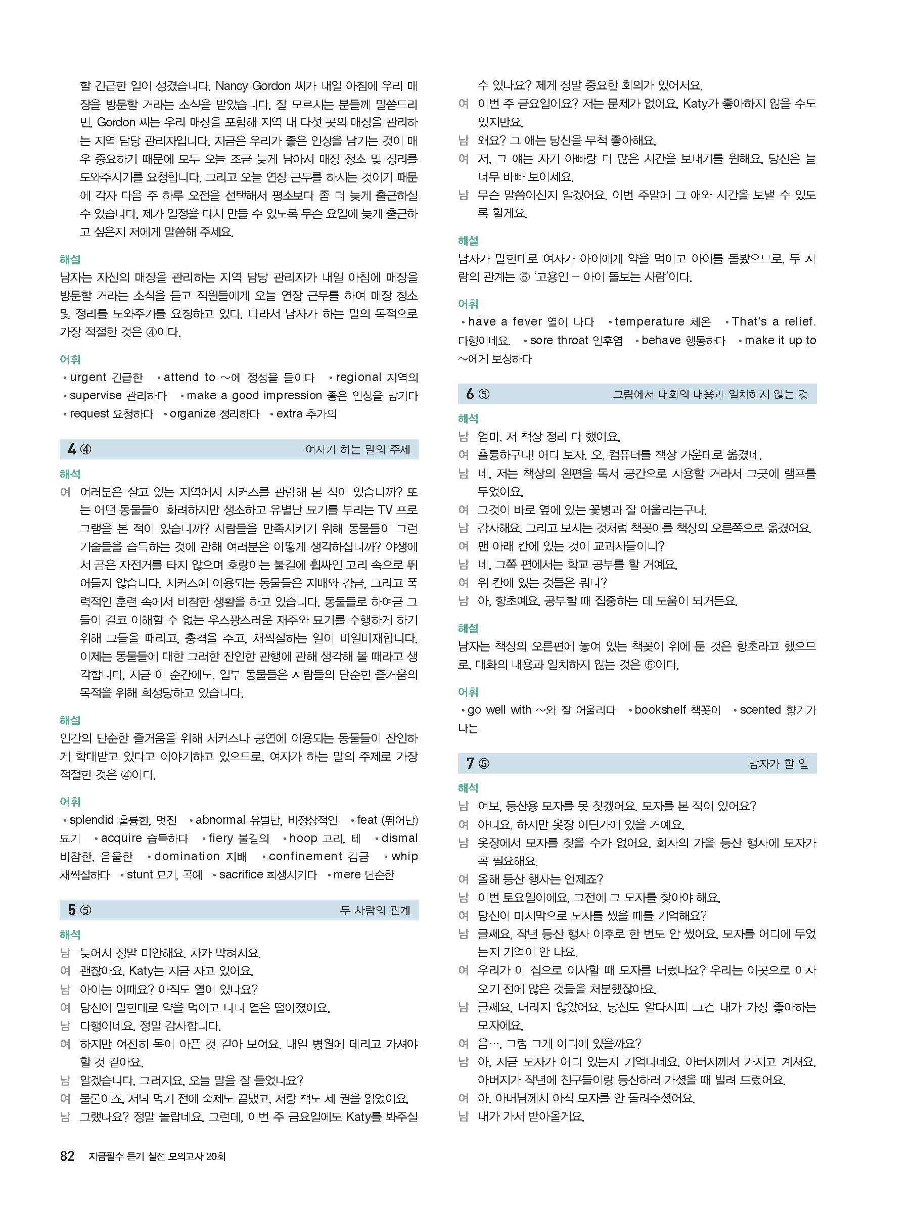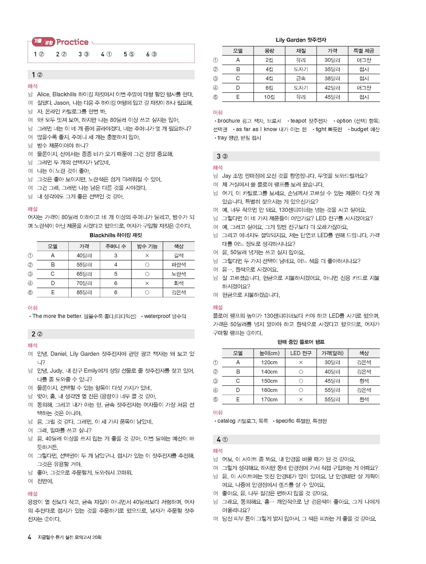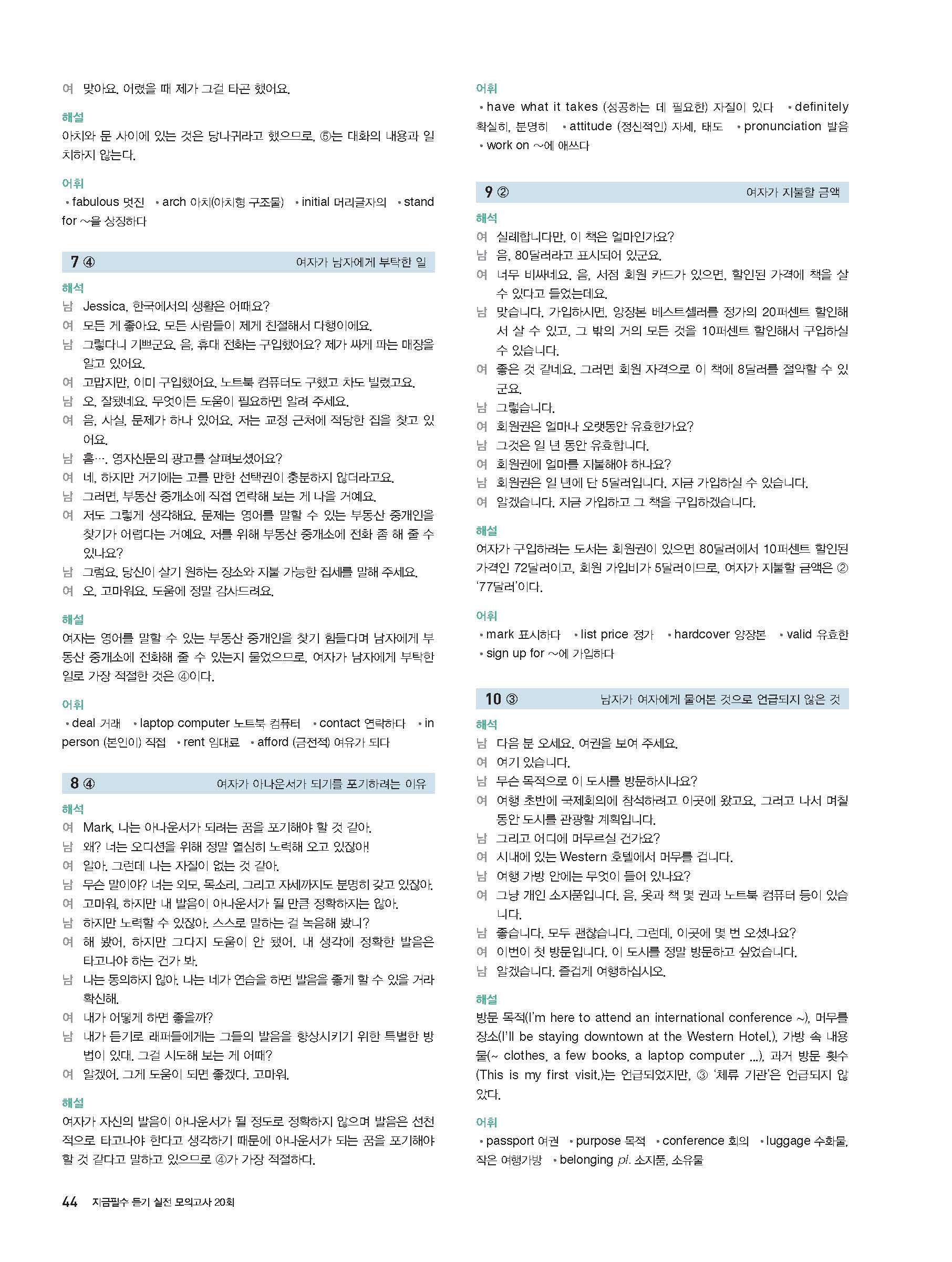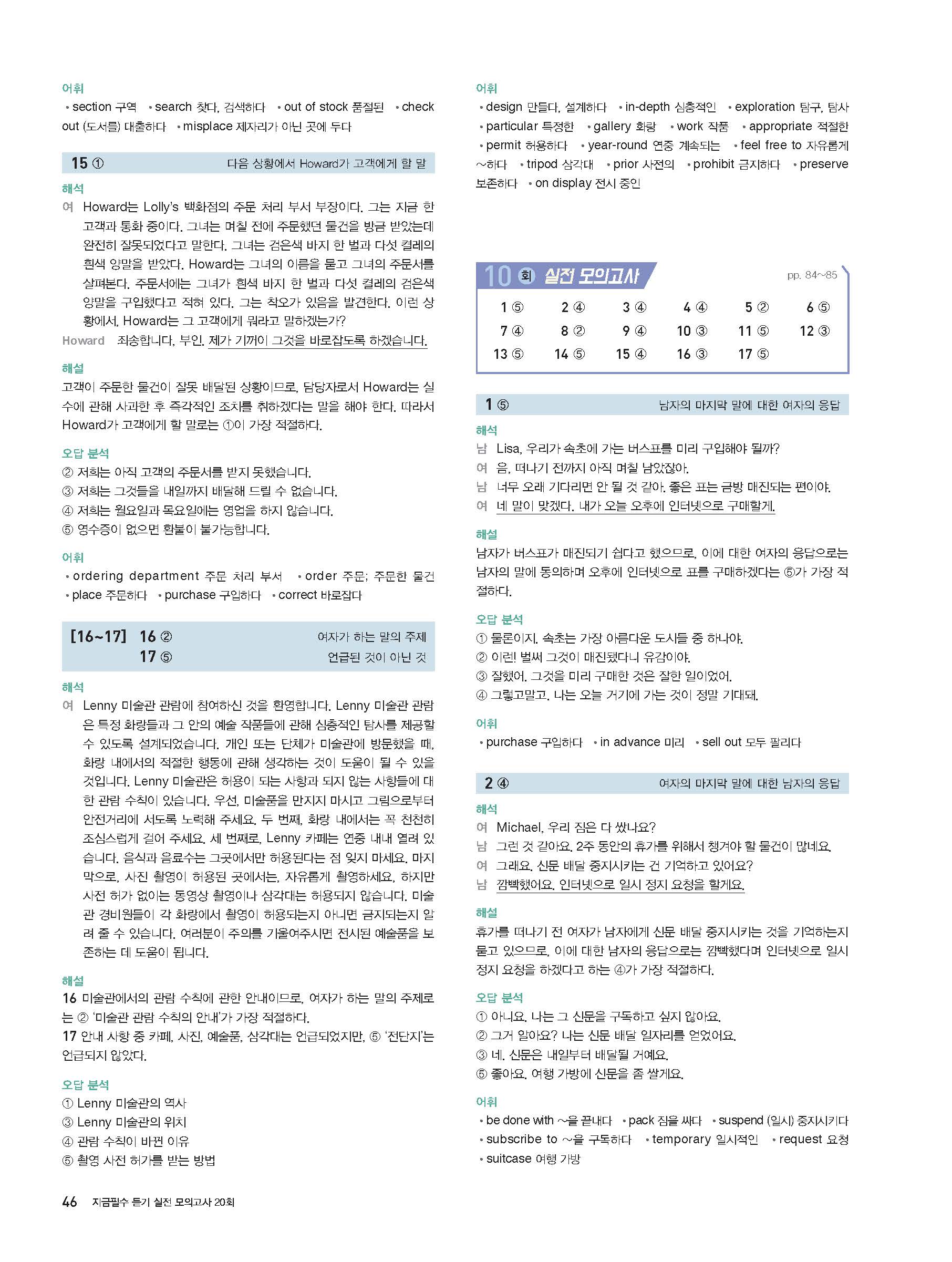 지금필수 영어영역 듣기실전모의고사 20회 답지 해설 사진답지 빠른답지 모바일최적화