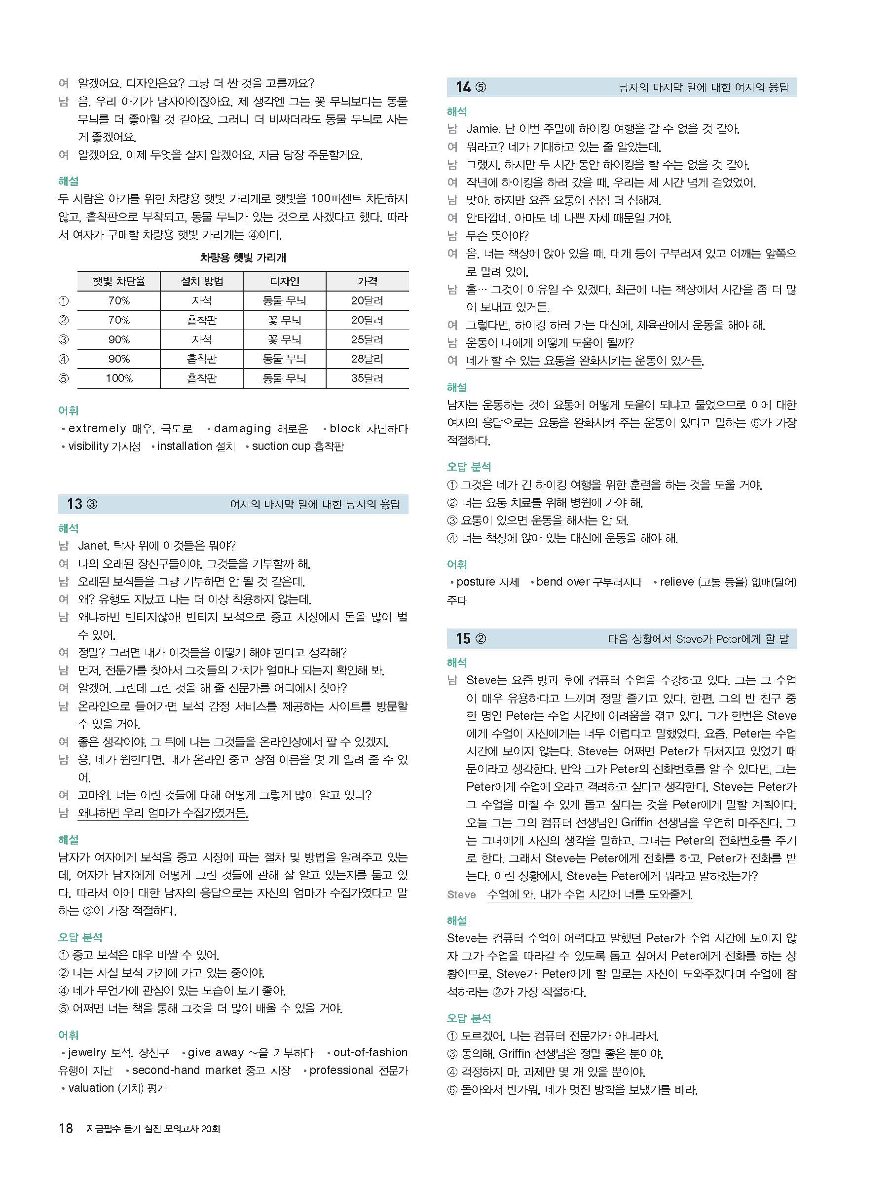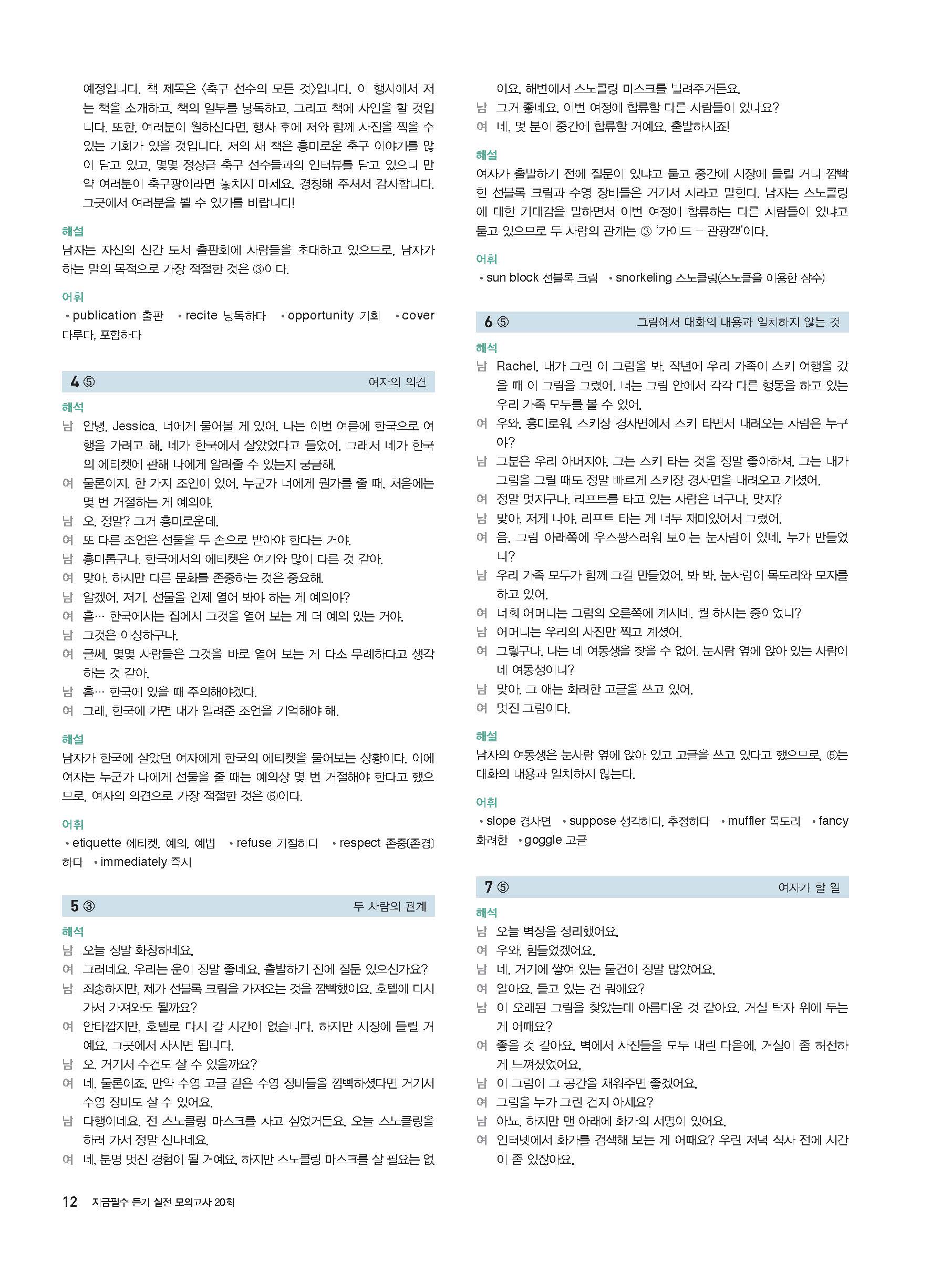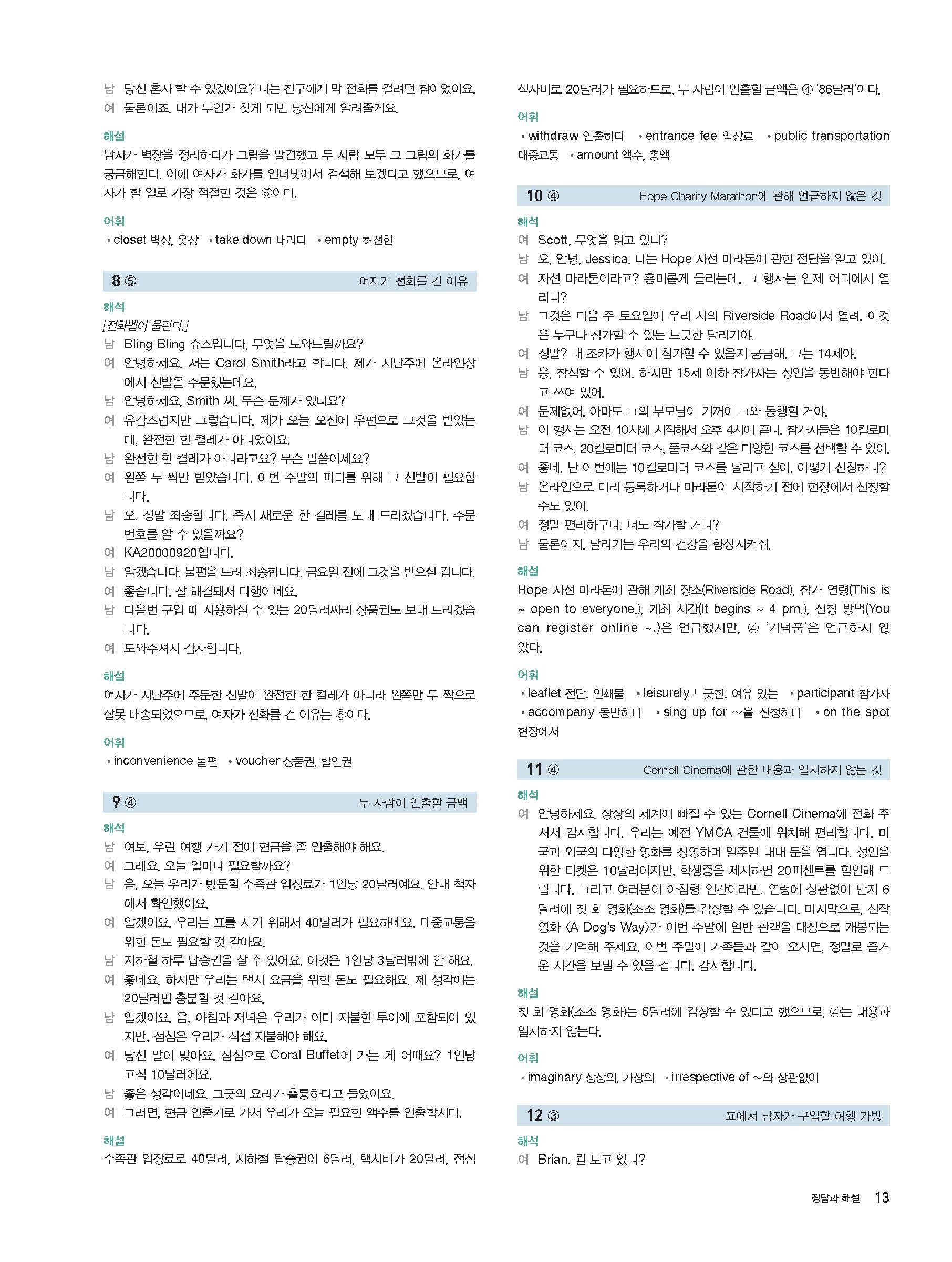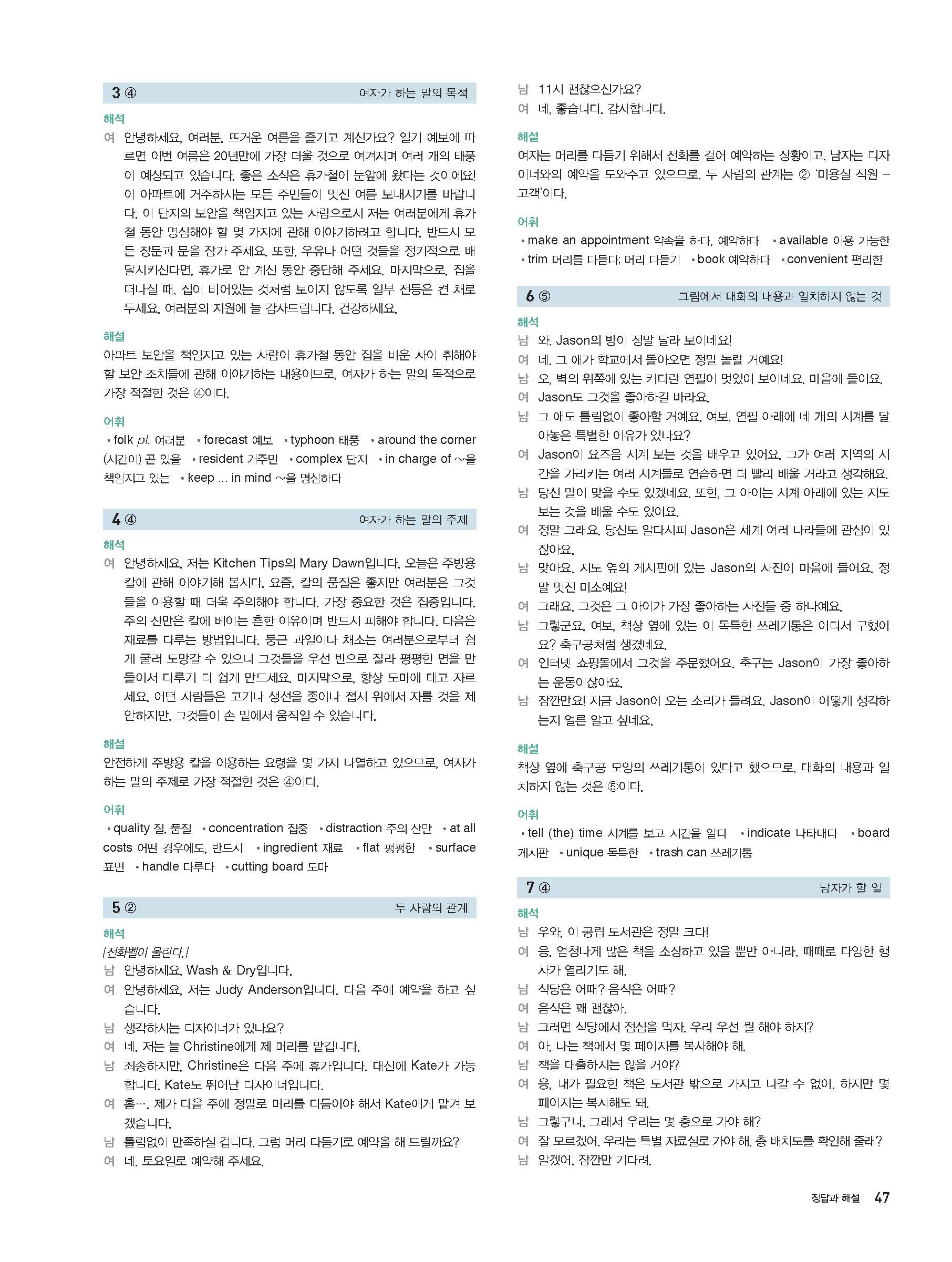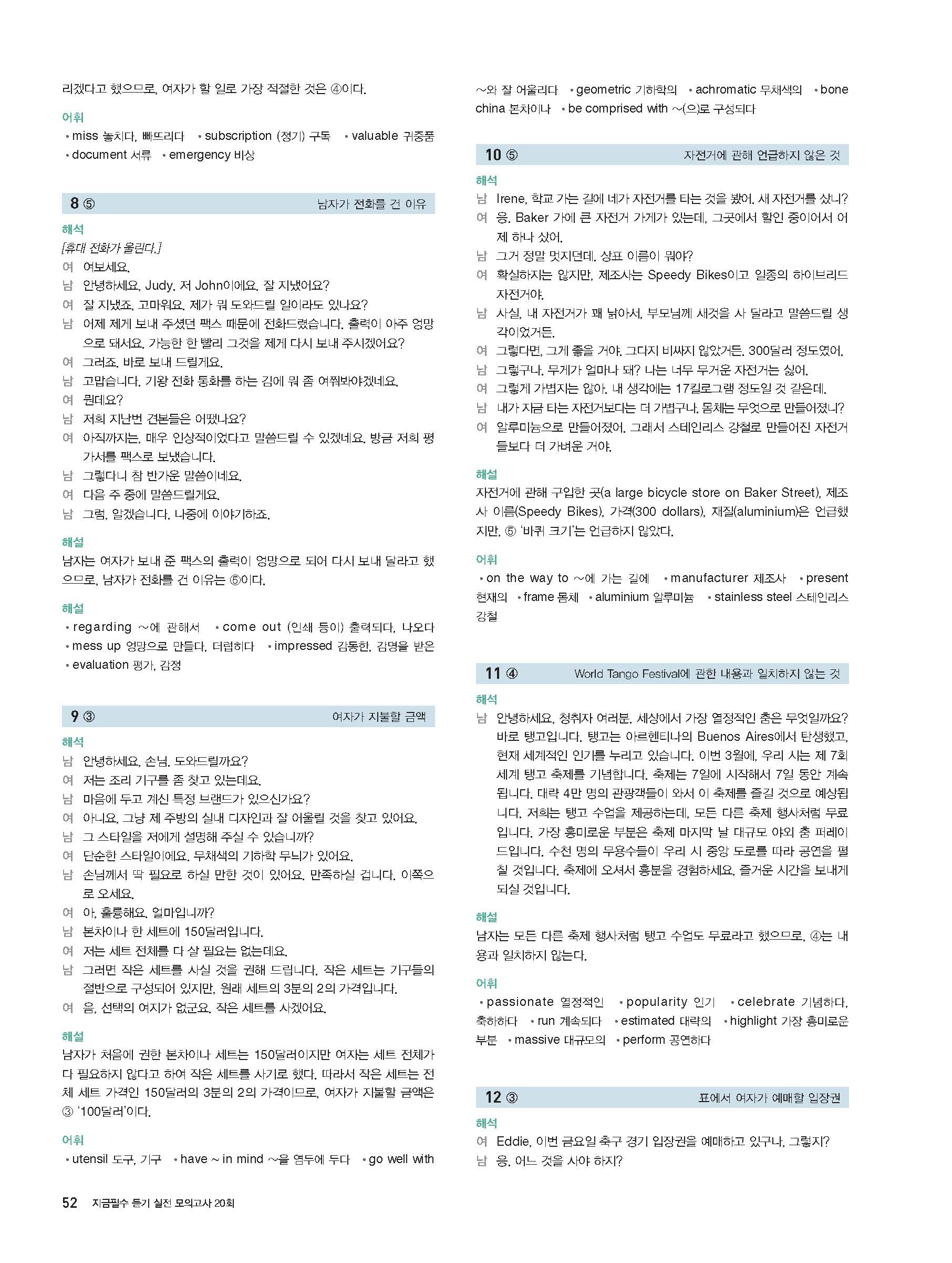 지금필수 영어영역 듣기실전모의고사 20회 답지 해설 사진답지 빠른답지 모바일최적화