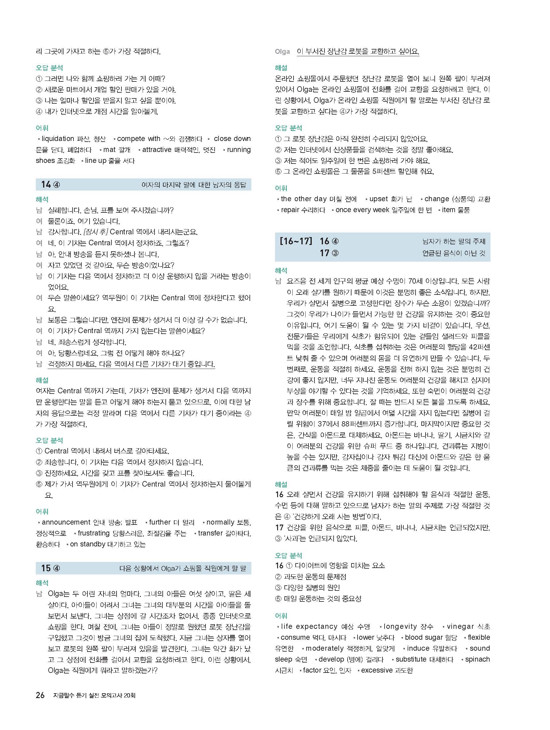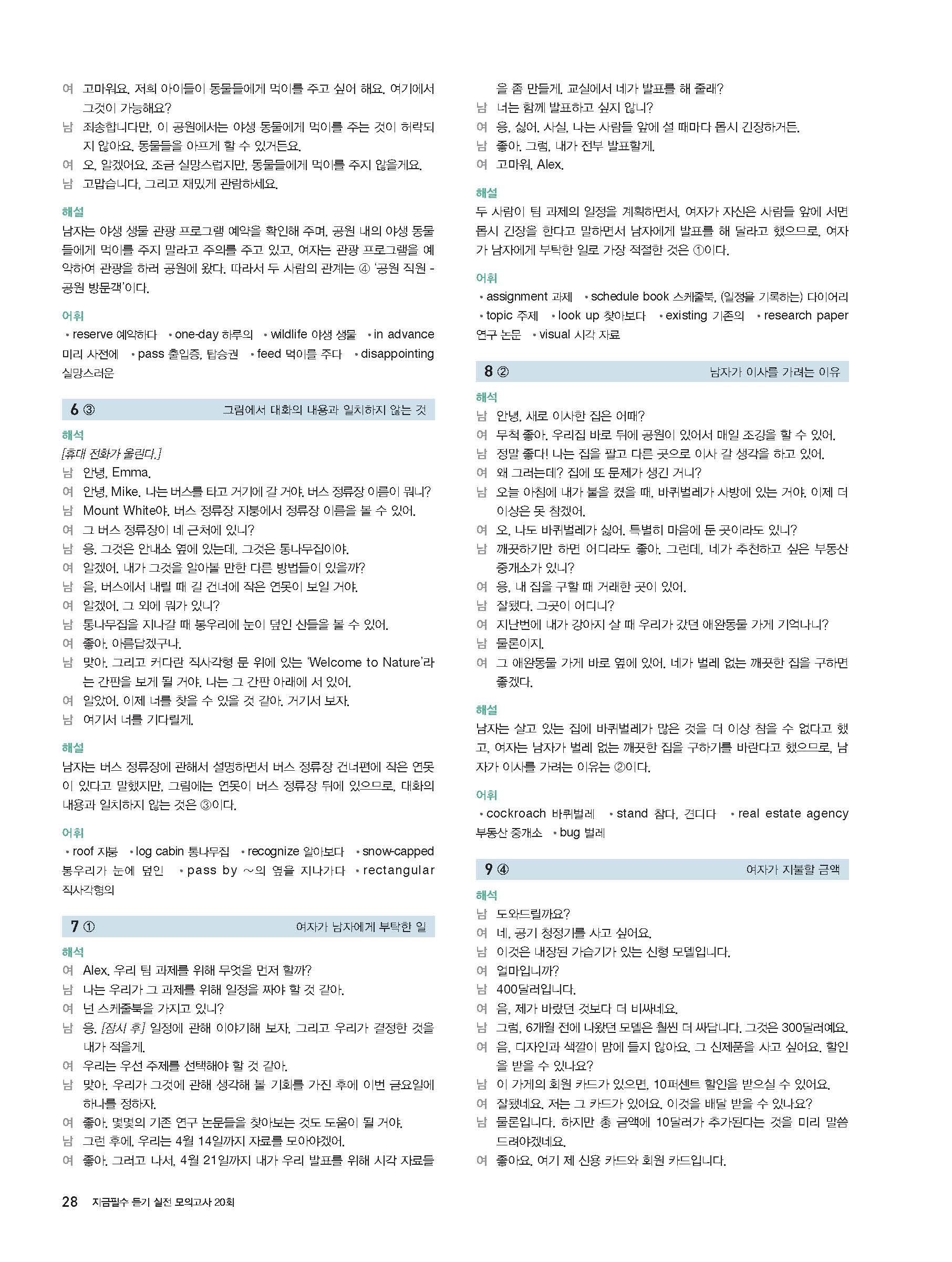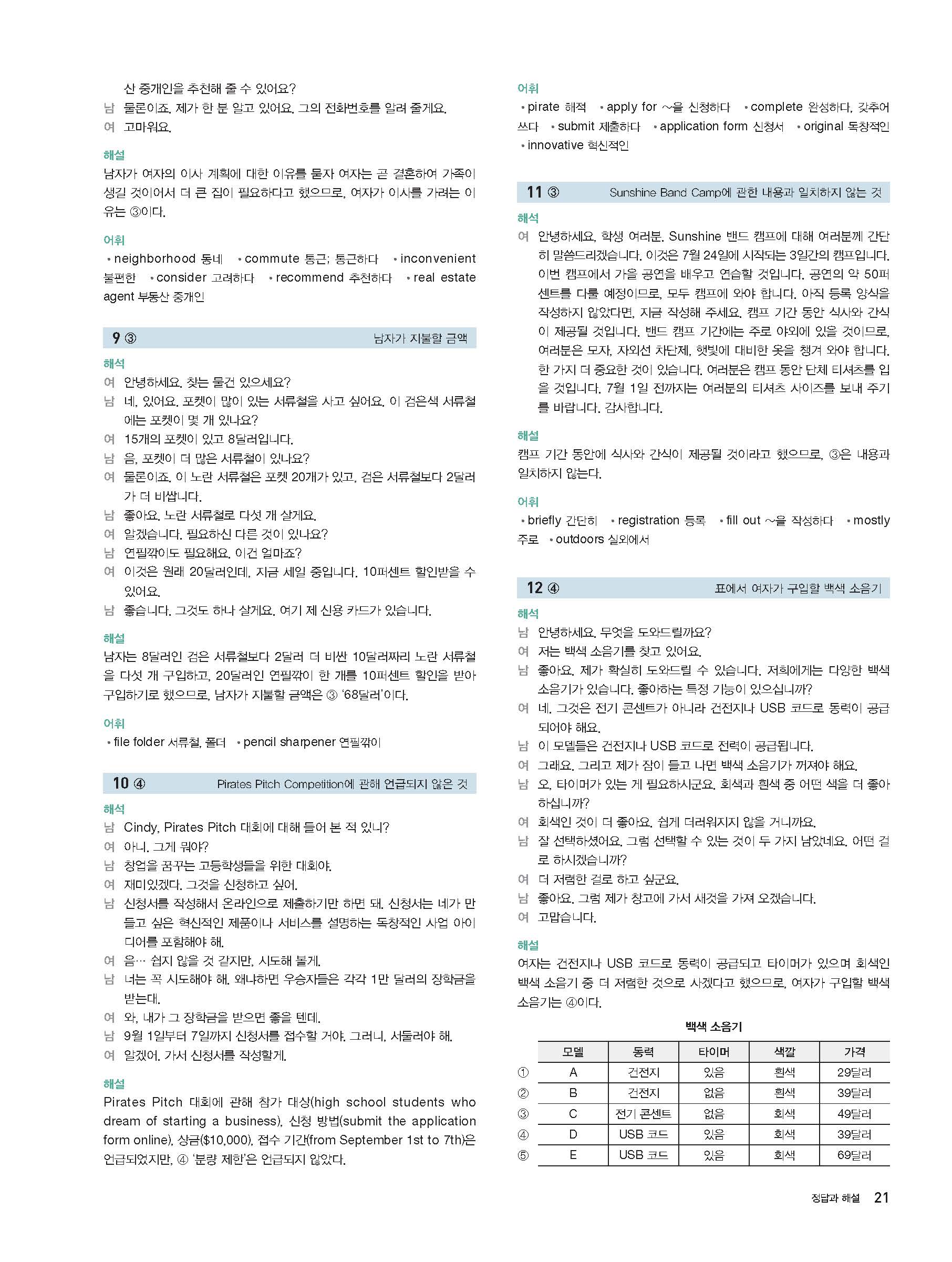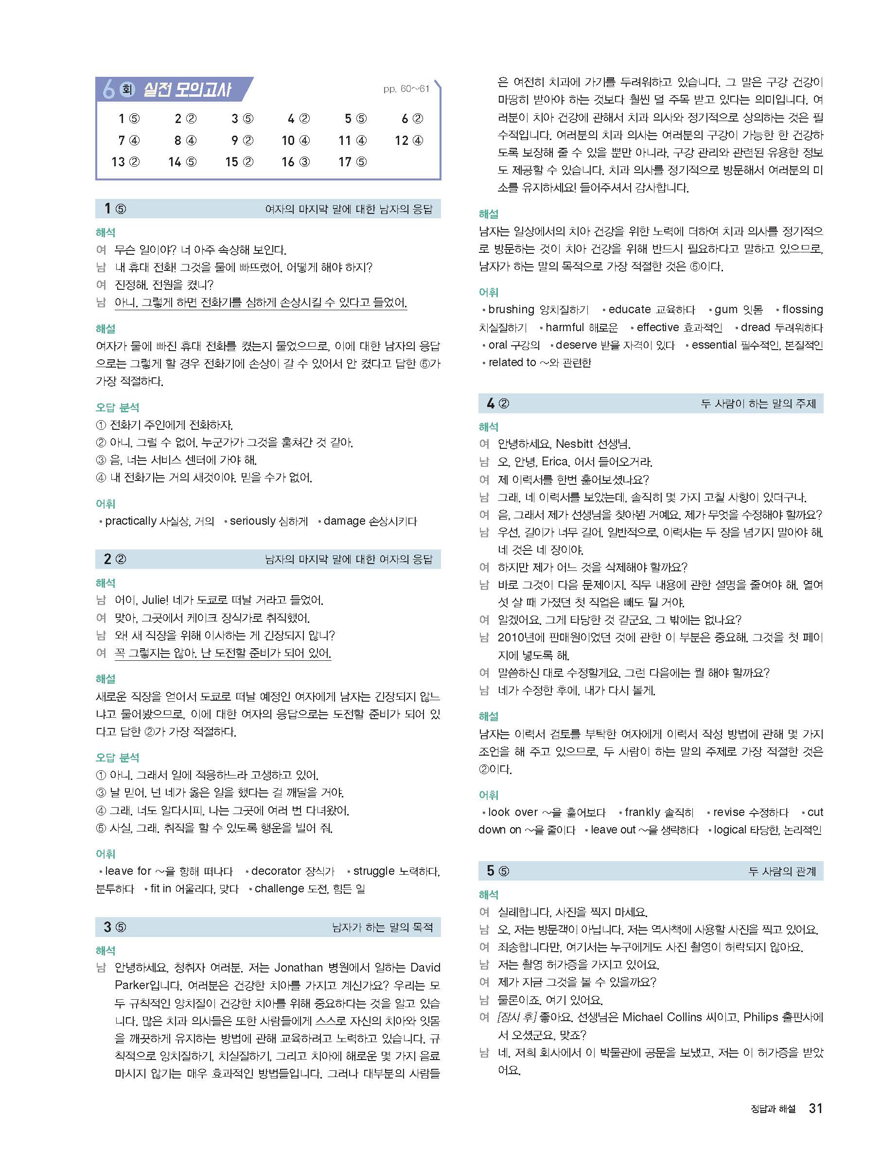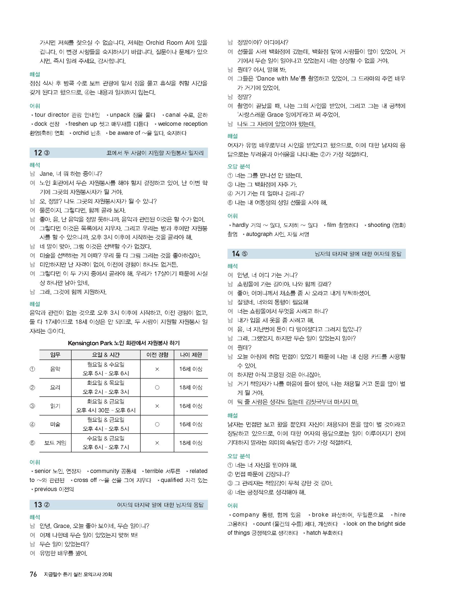 지금필수 영어영역 듣기실전모의고사 20회 답지 해설 사진답지 빠른답지 모바일최적화