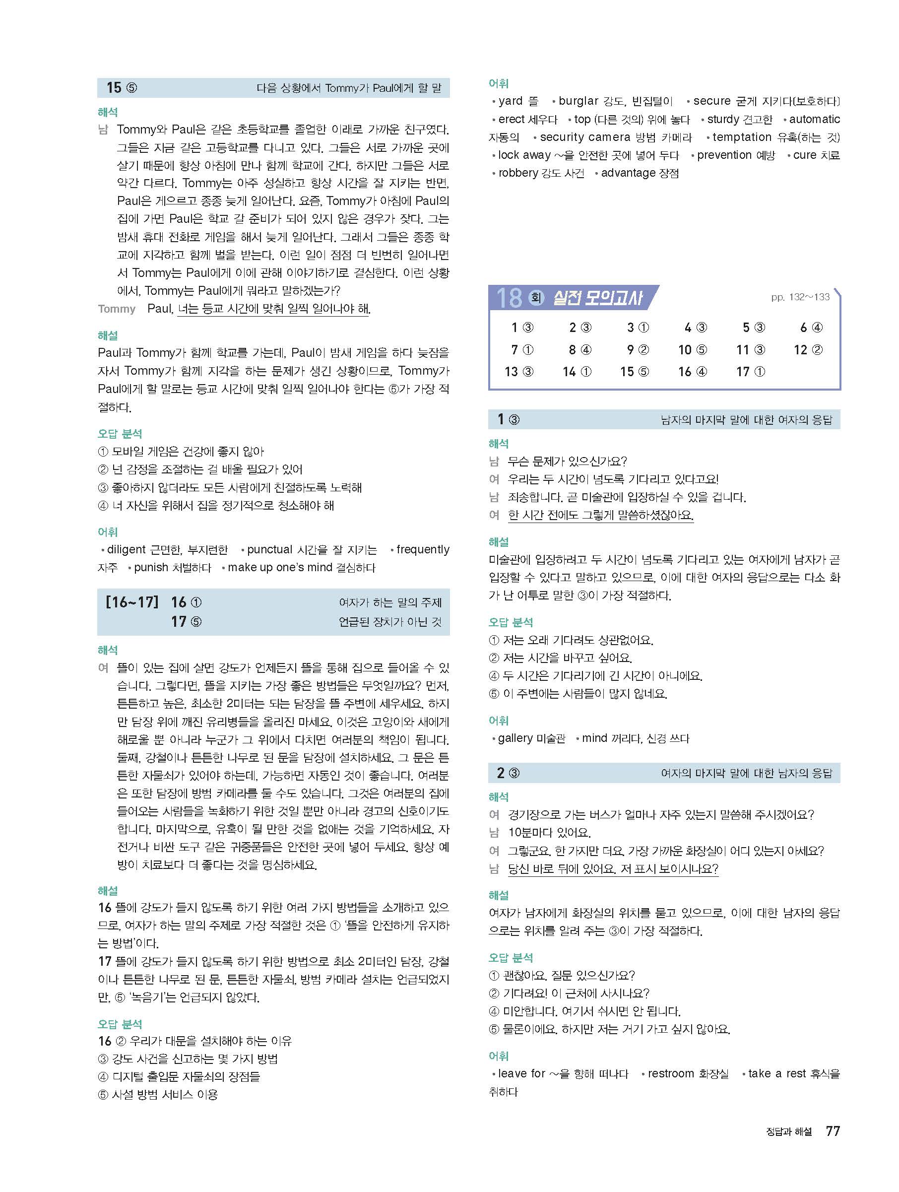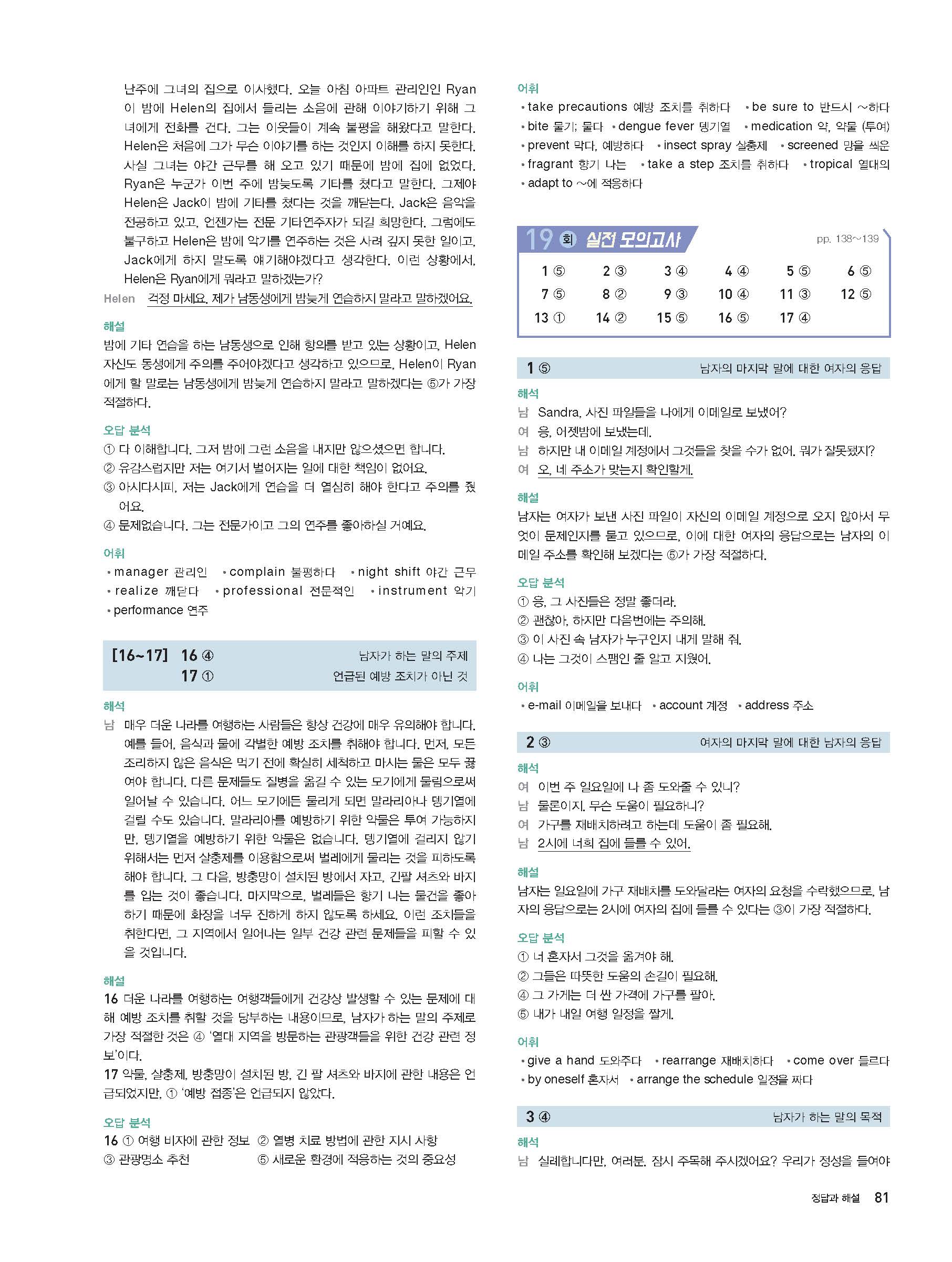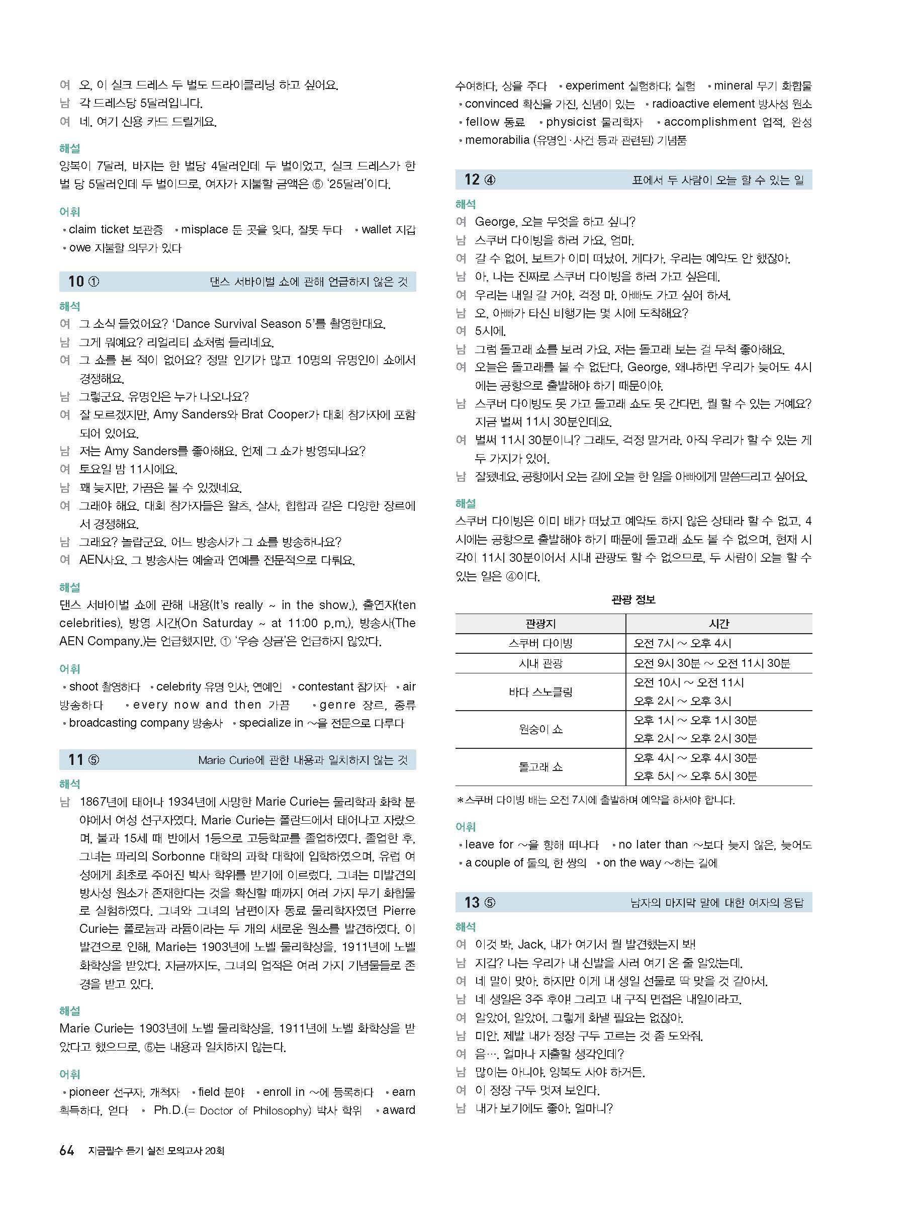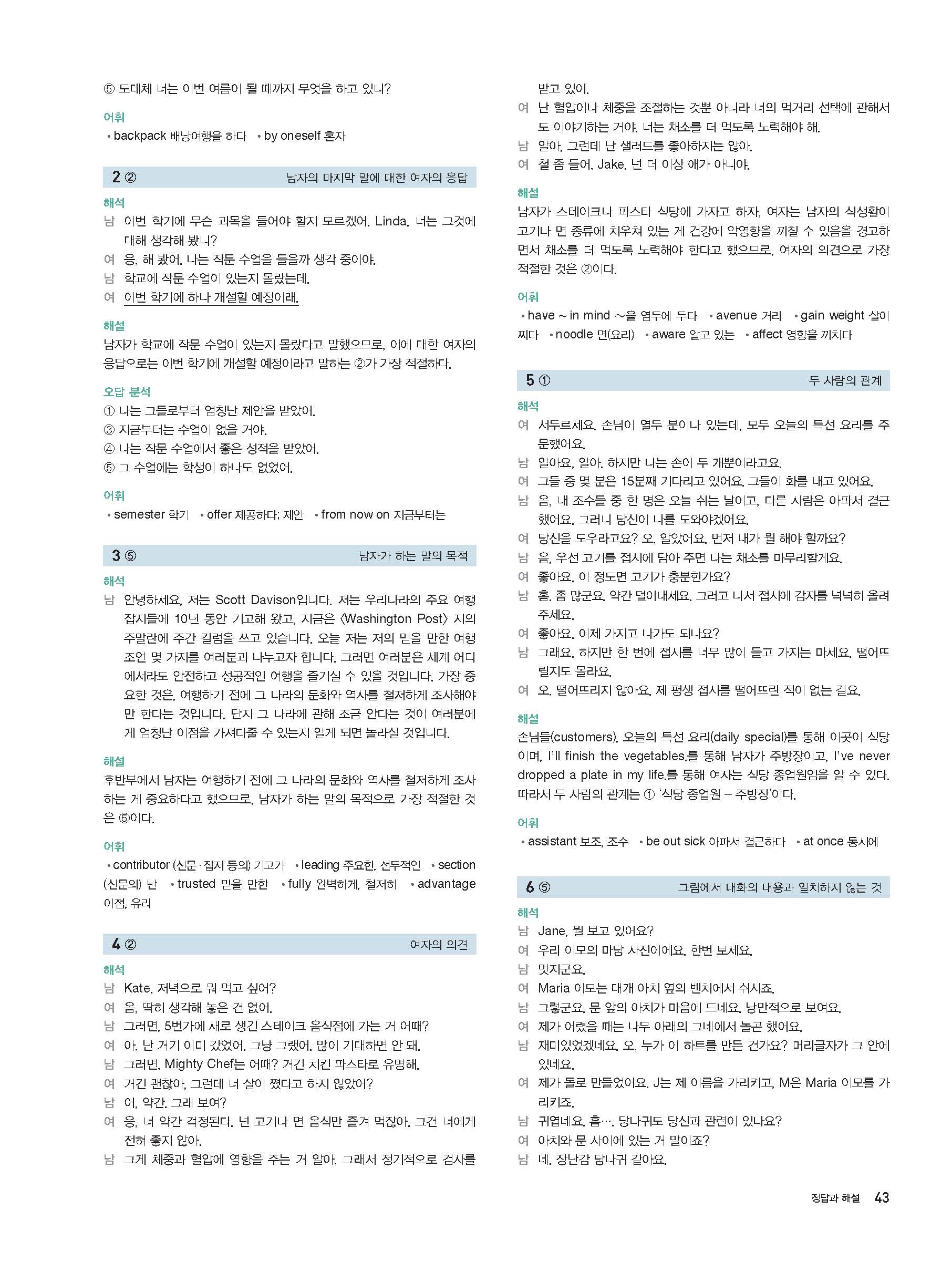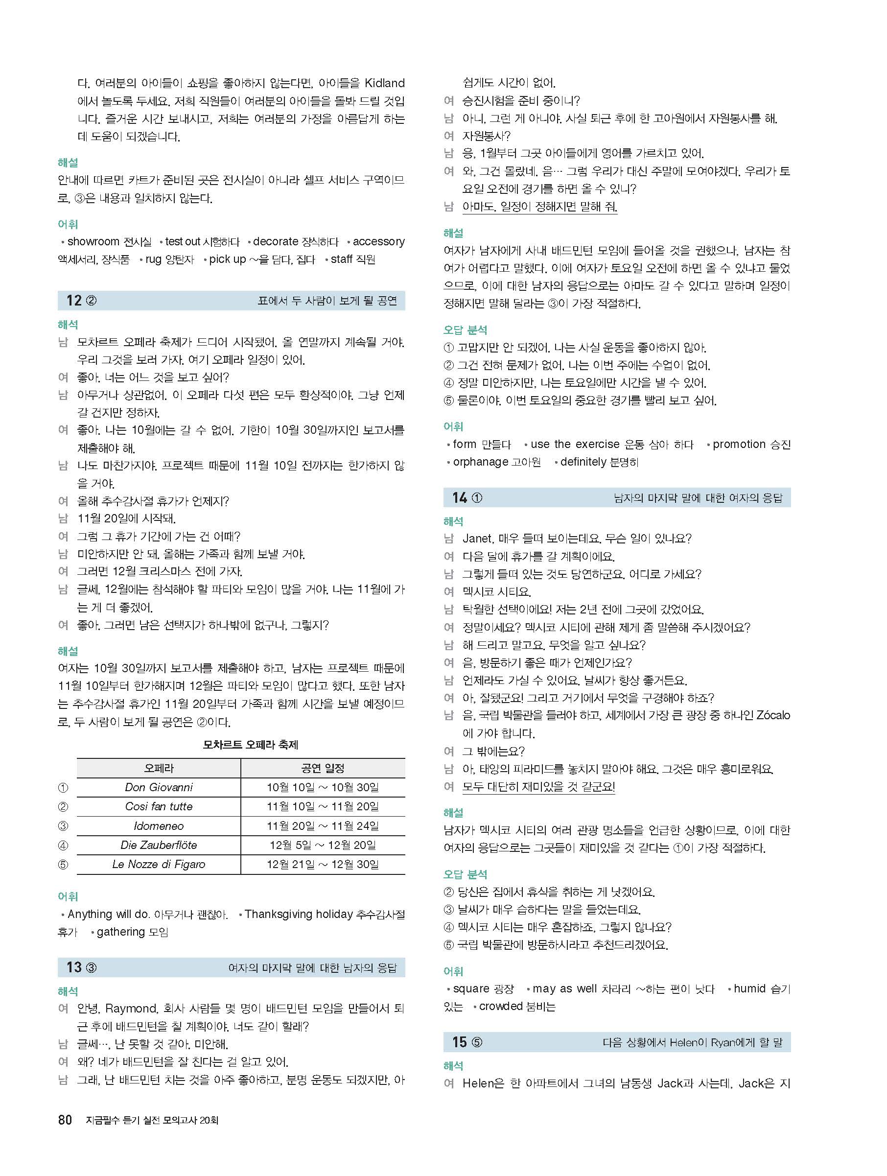 지금필수 영어영역 듣기실전모의고사 20회 답지 해설 사진답지 빠른답지 모바일최적화