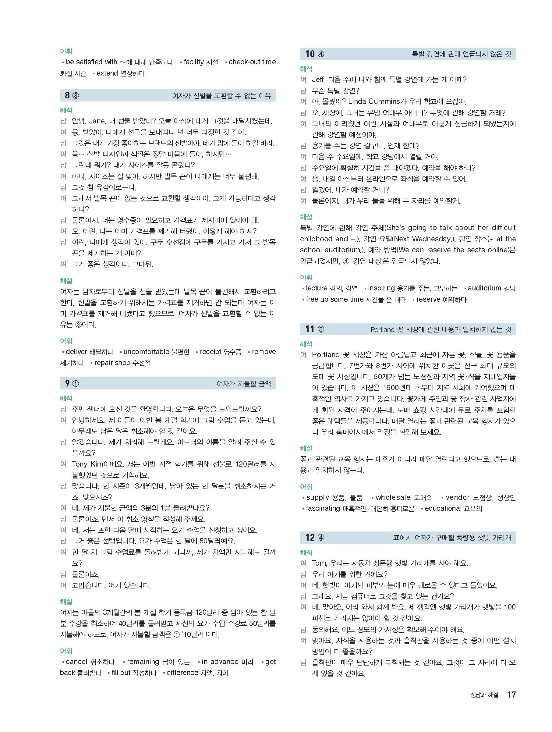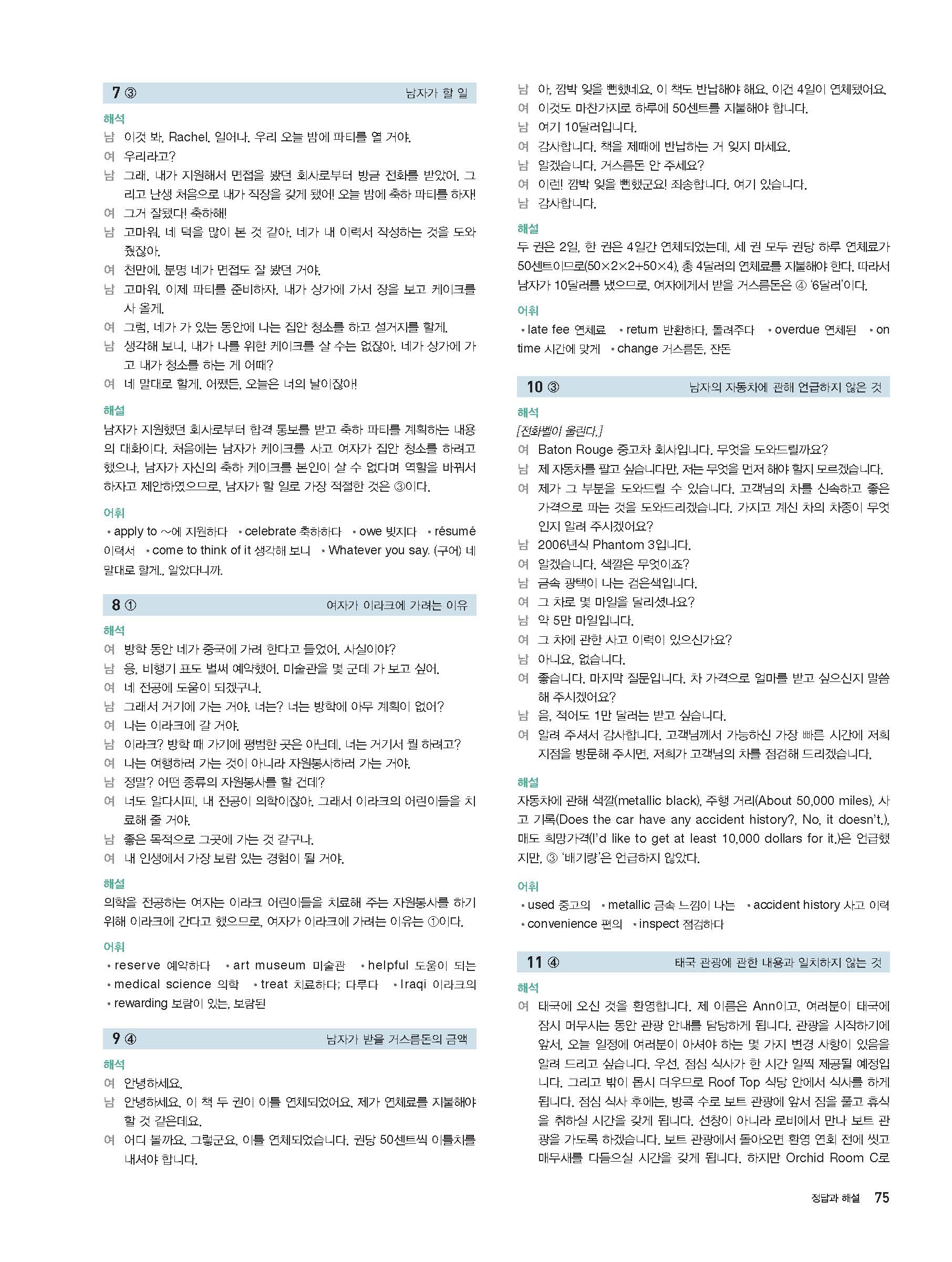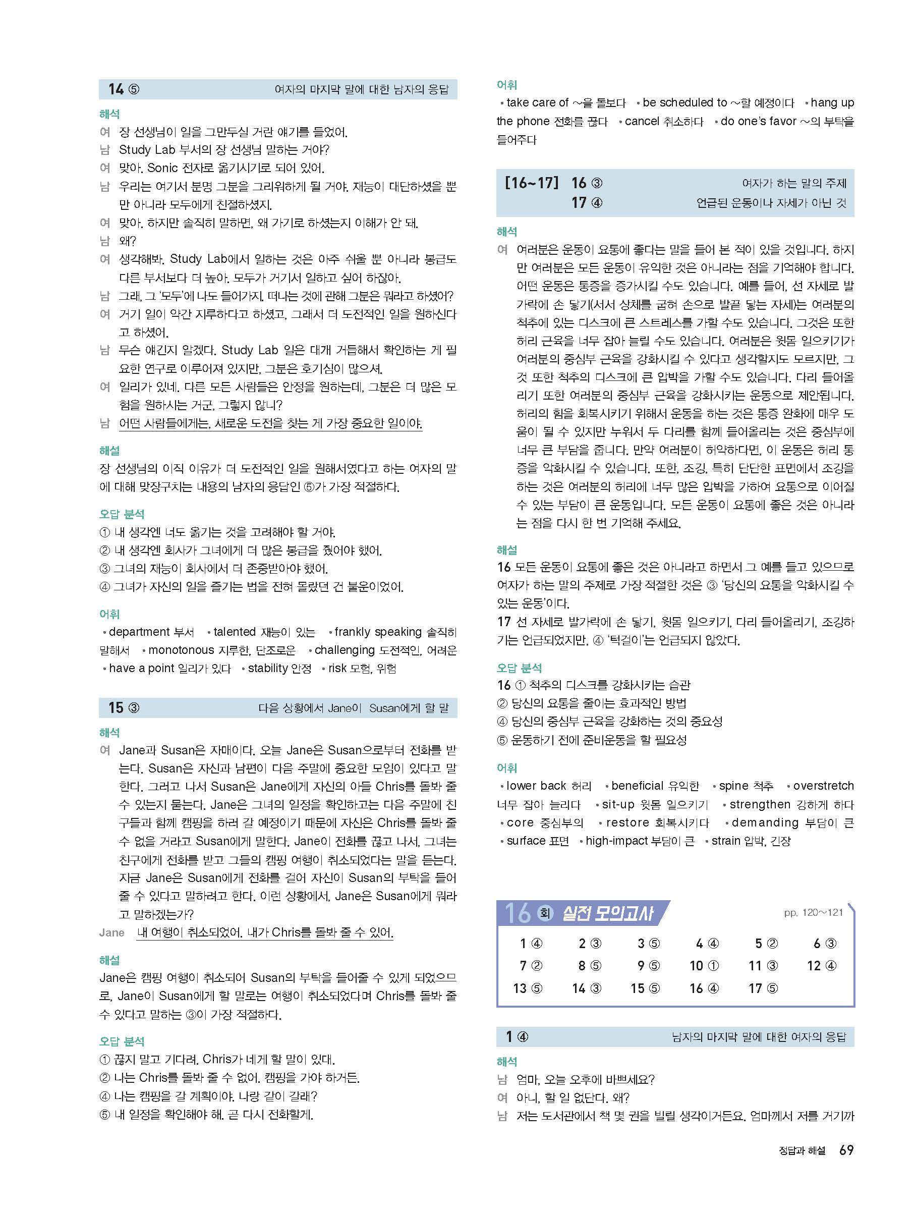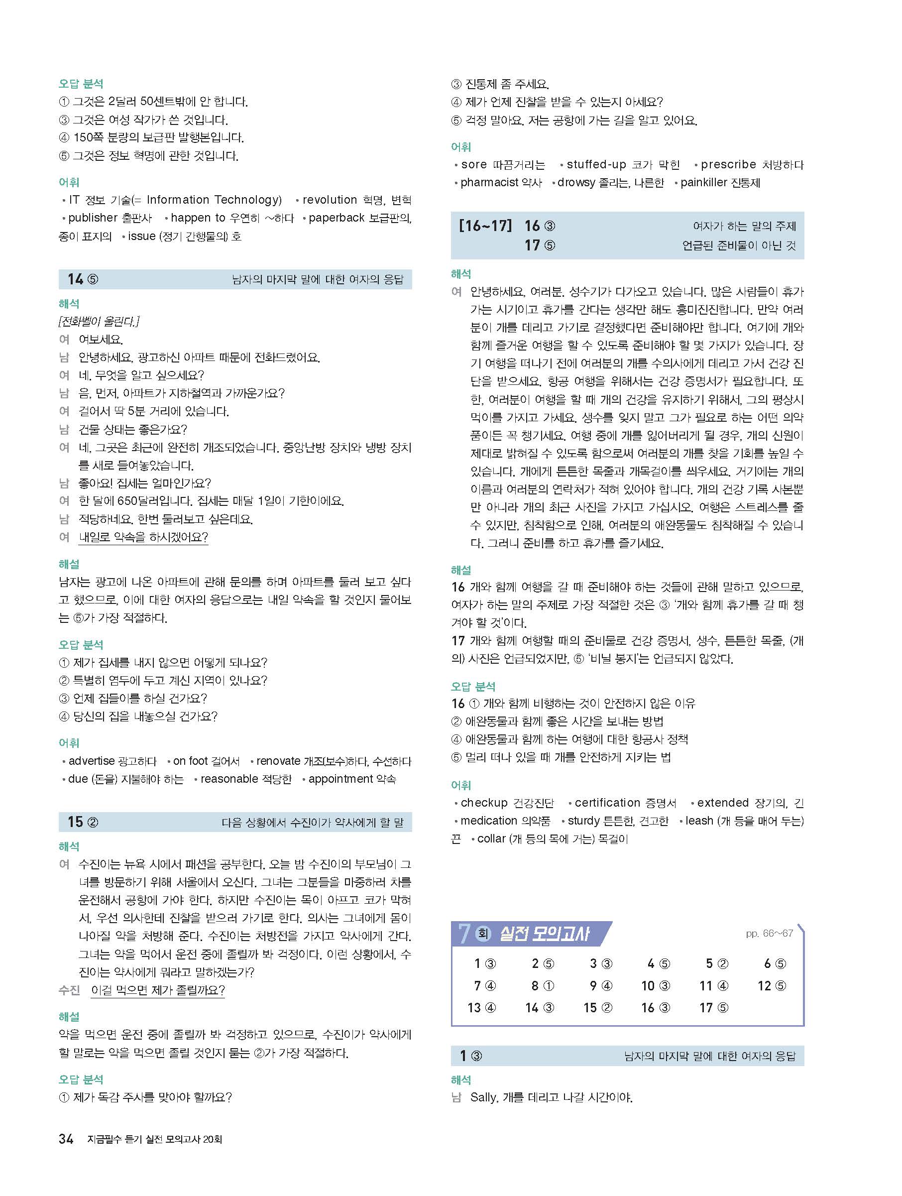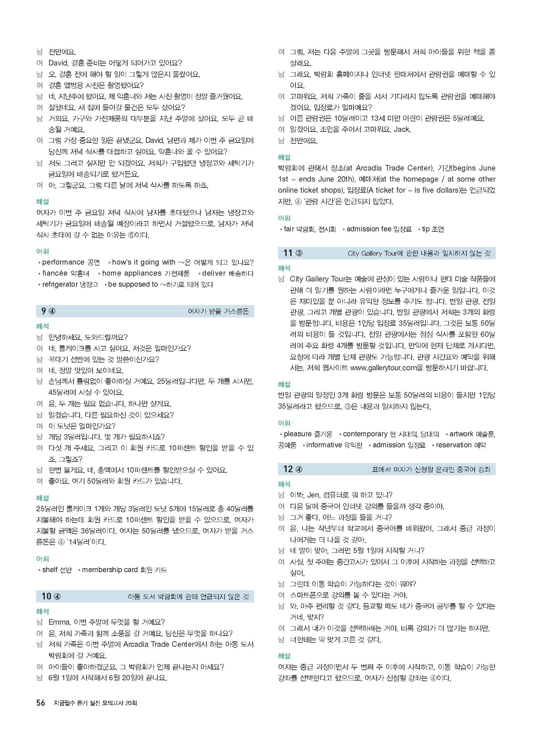 지금필수 영어영역 듣기실전모의고사 20회 답지 해설 사진답지 빠른답지 모바일최적화