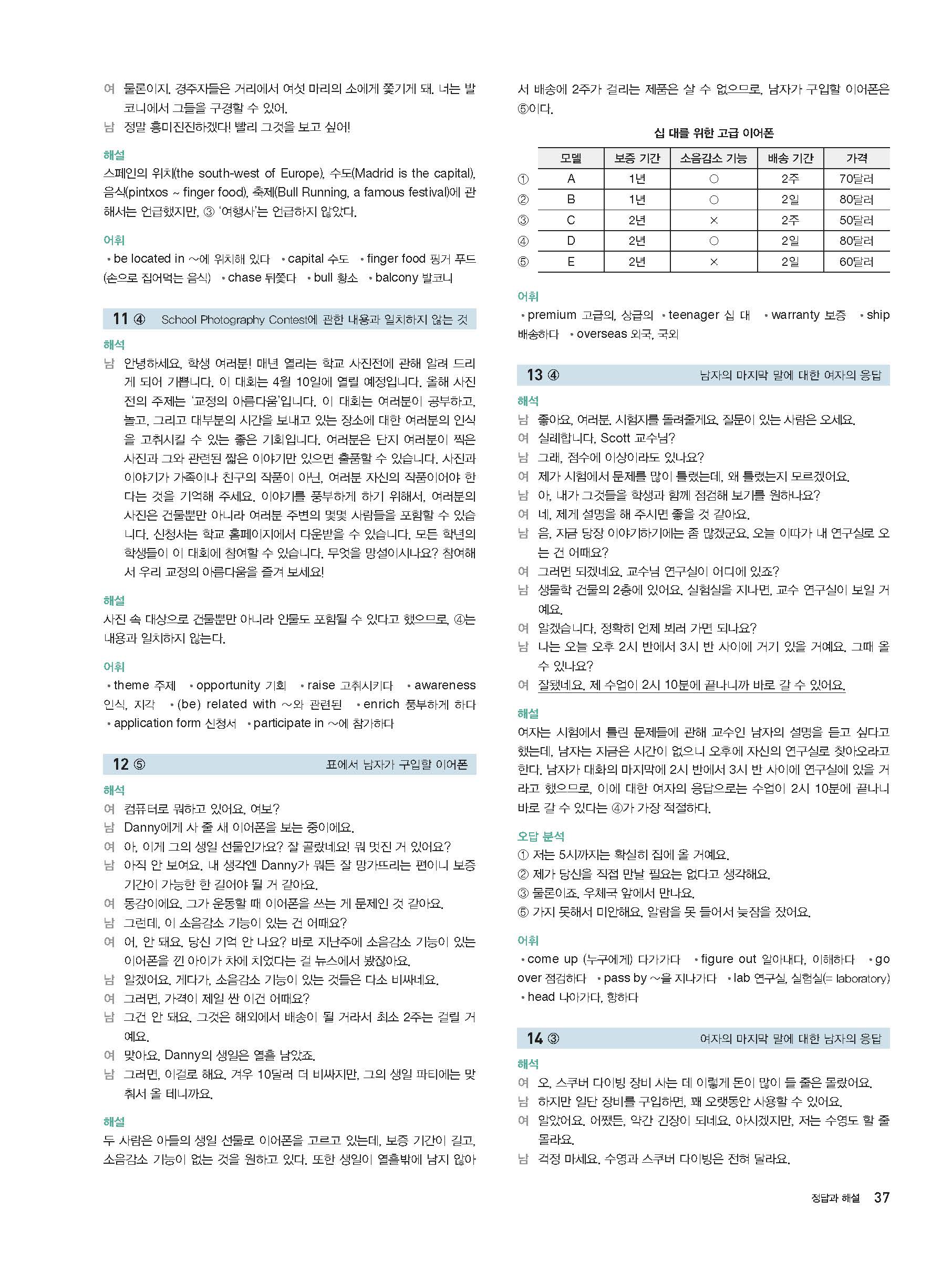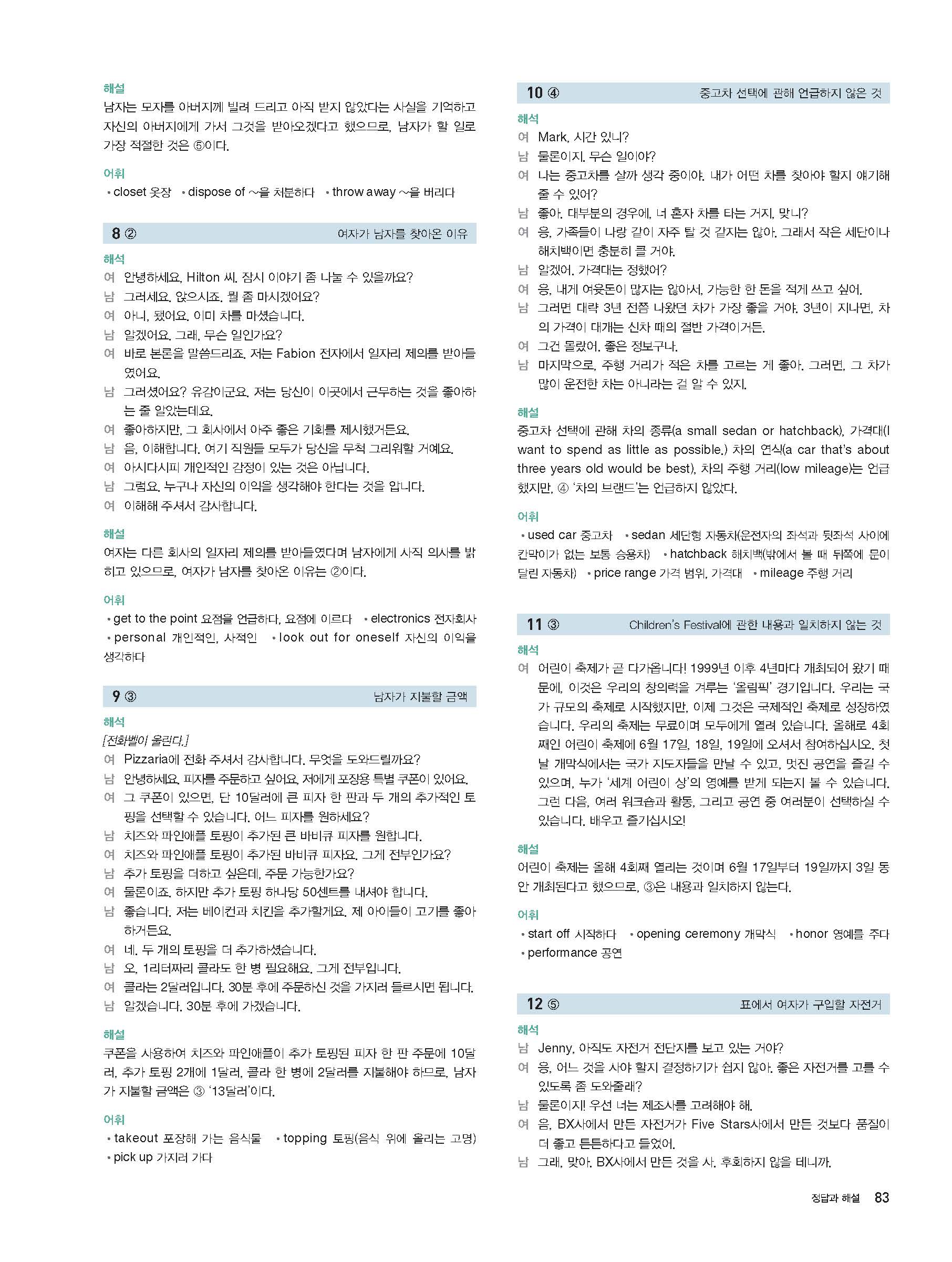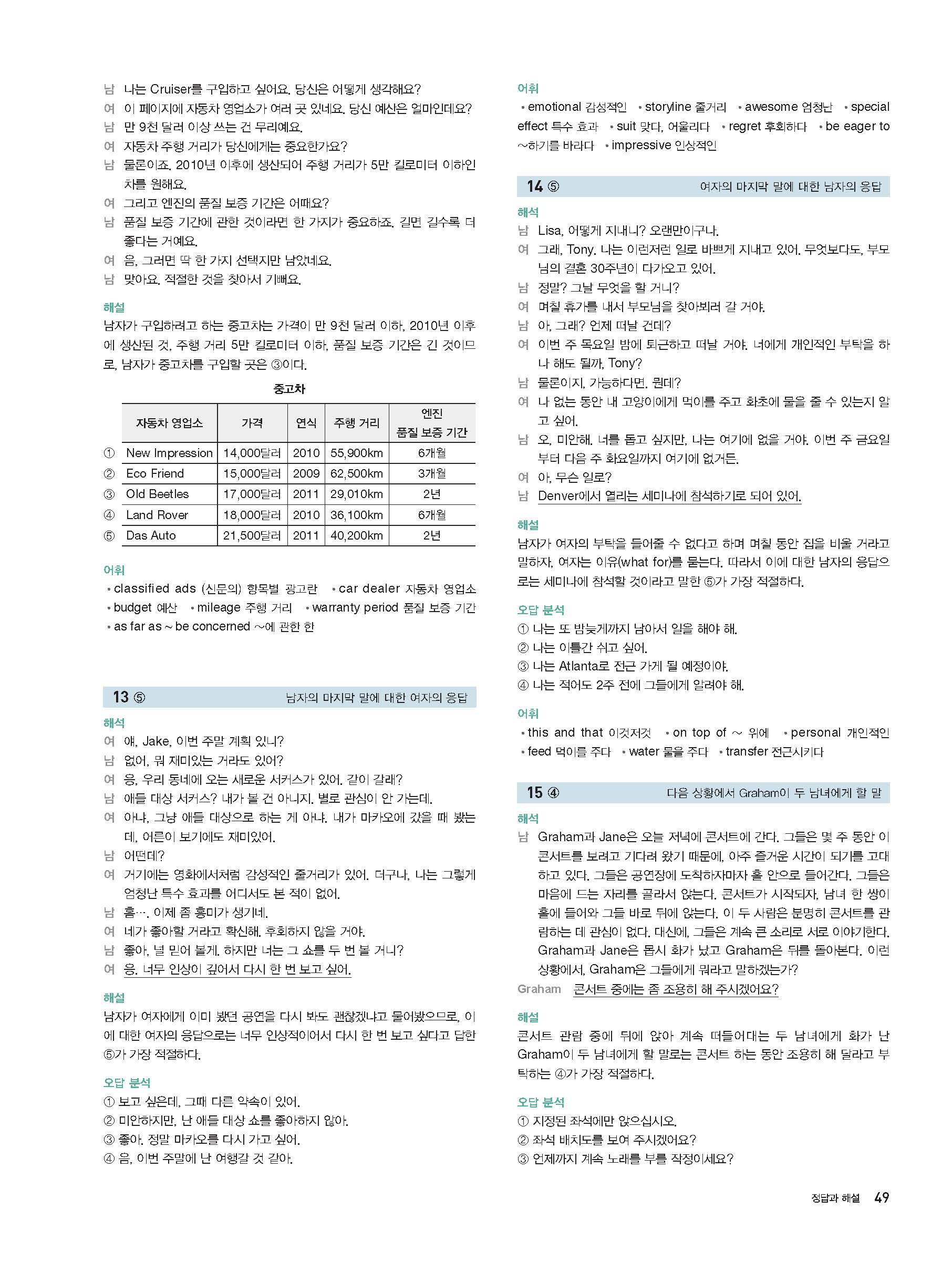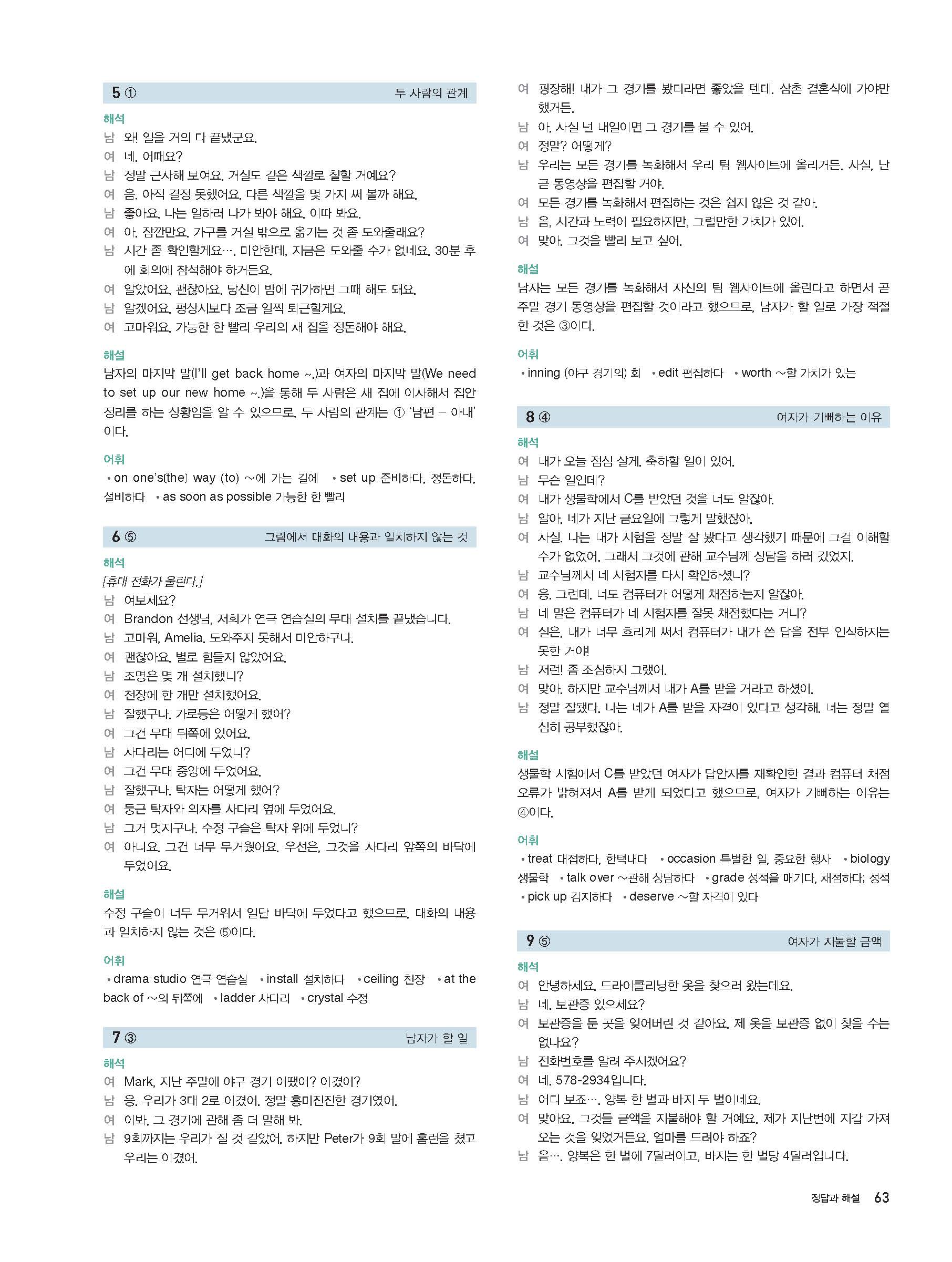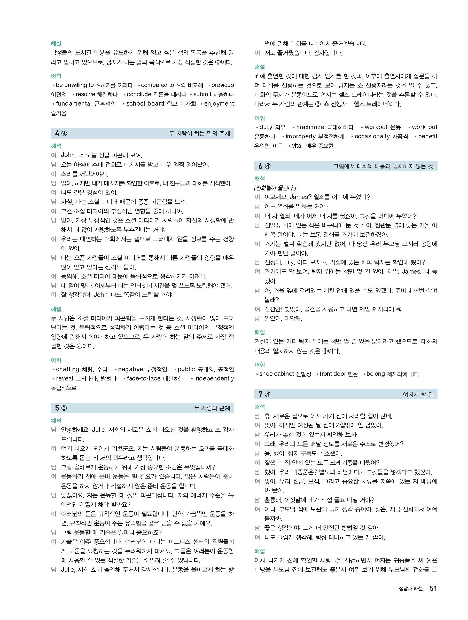 지금필수 영어영역 듣기실전모의고사 20회 답지 해설 사진답지 빠른답지 모바일최적화