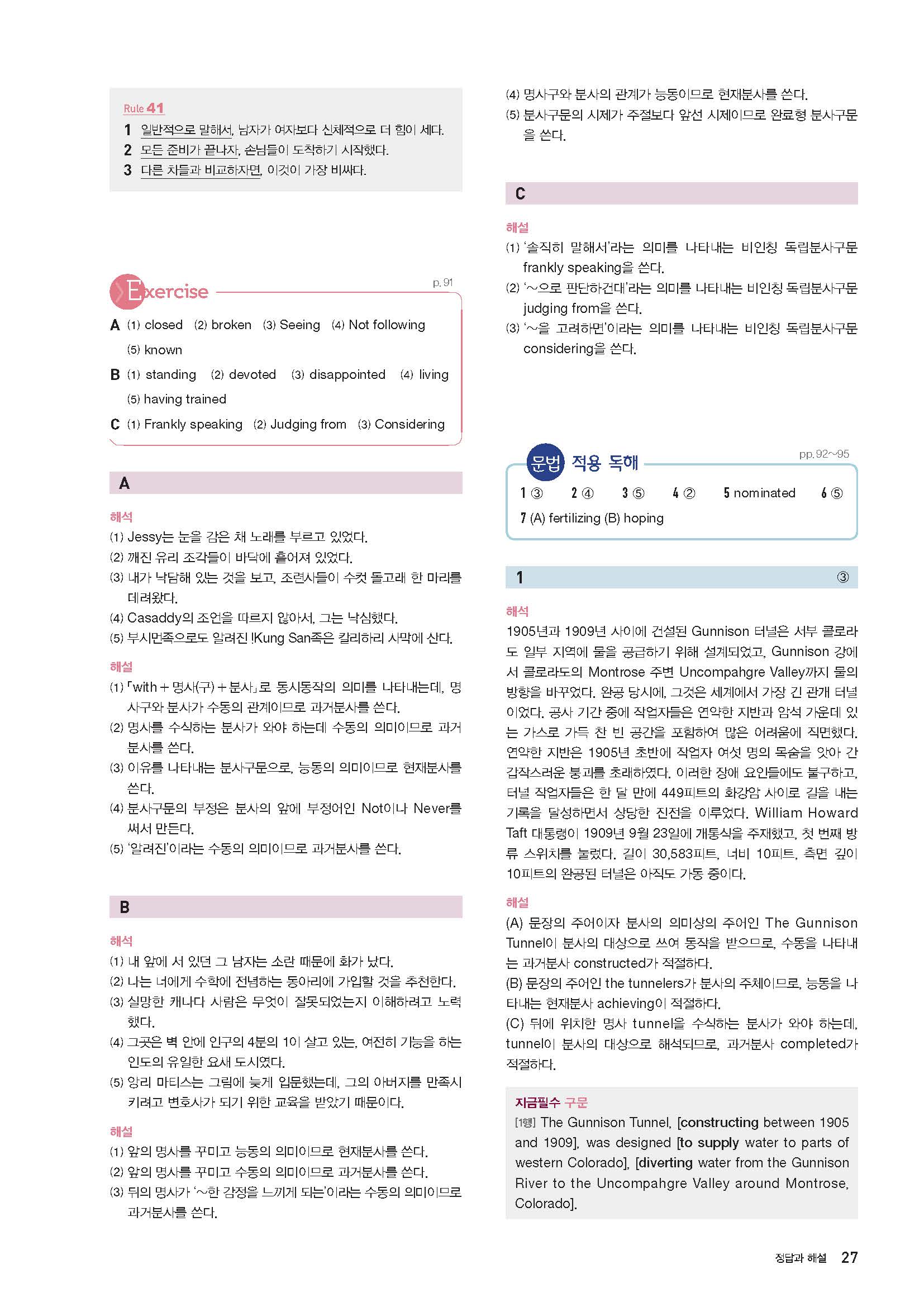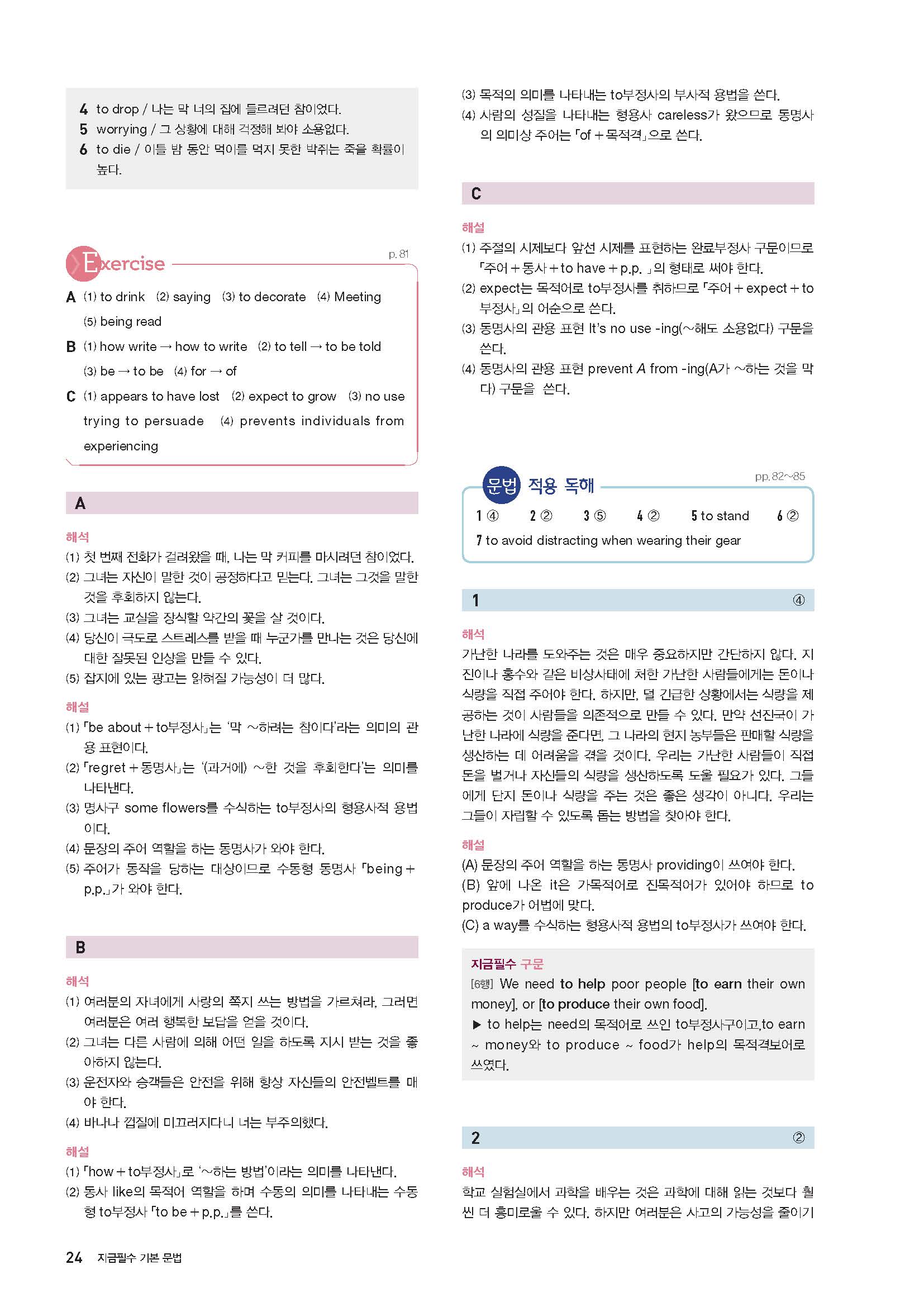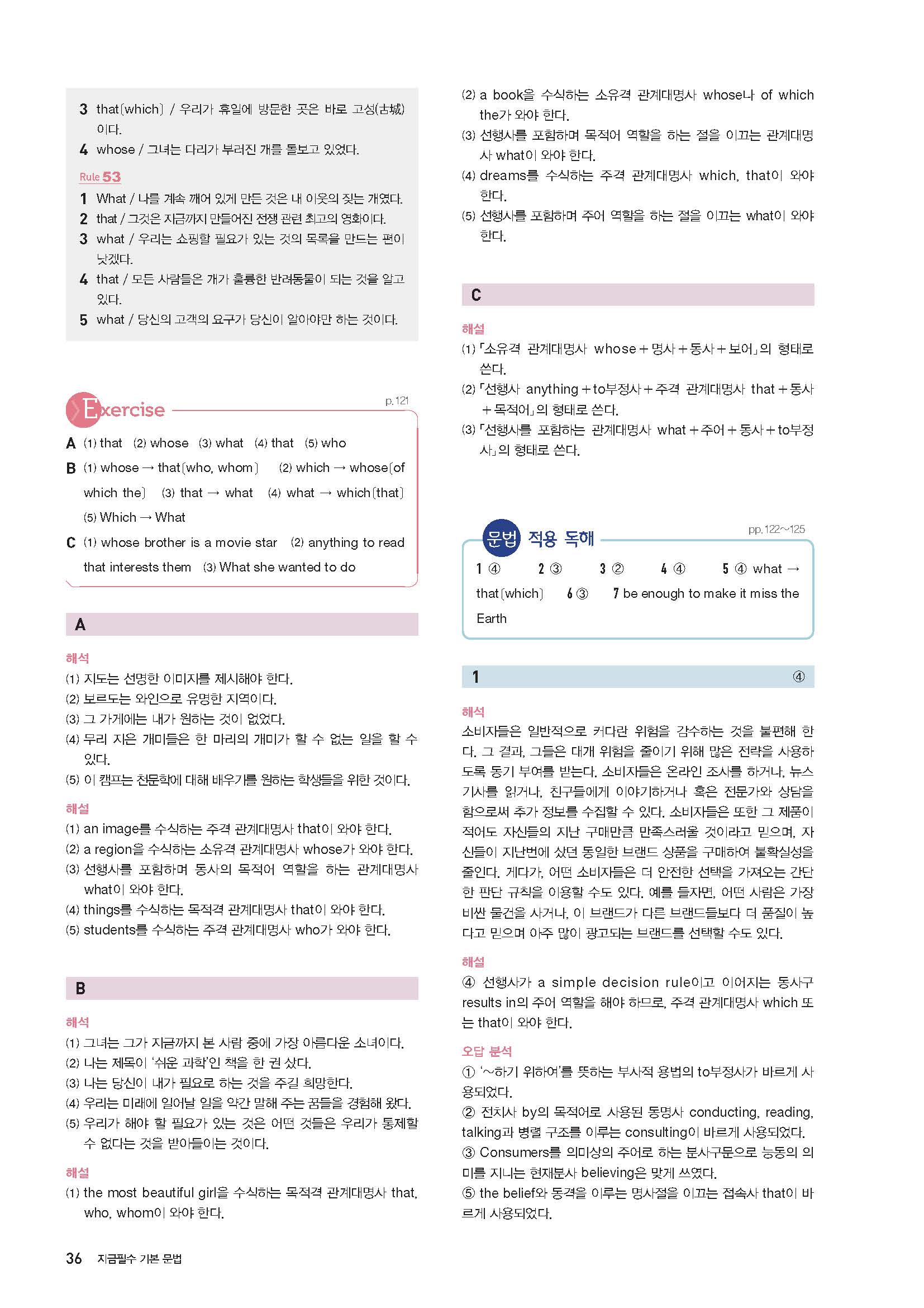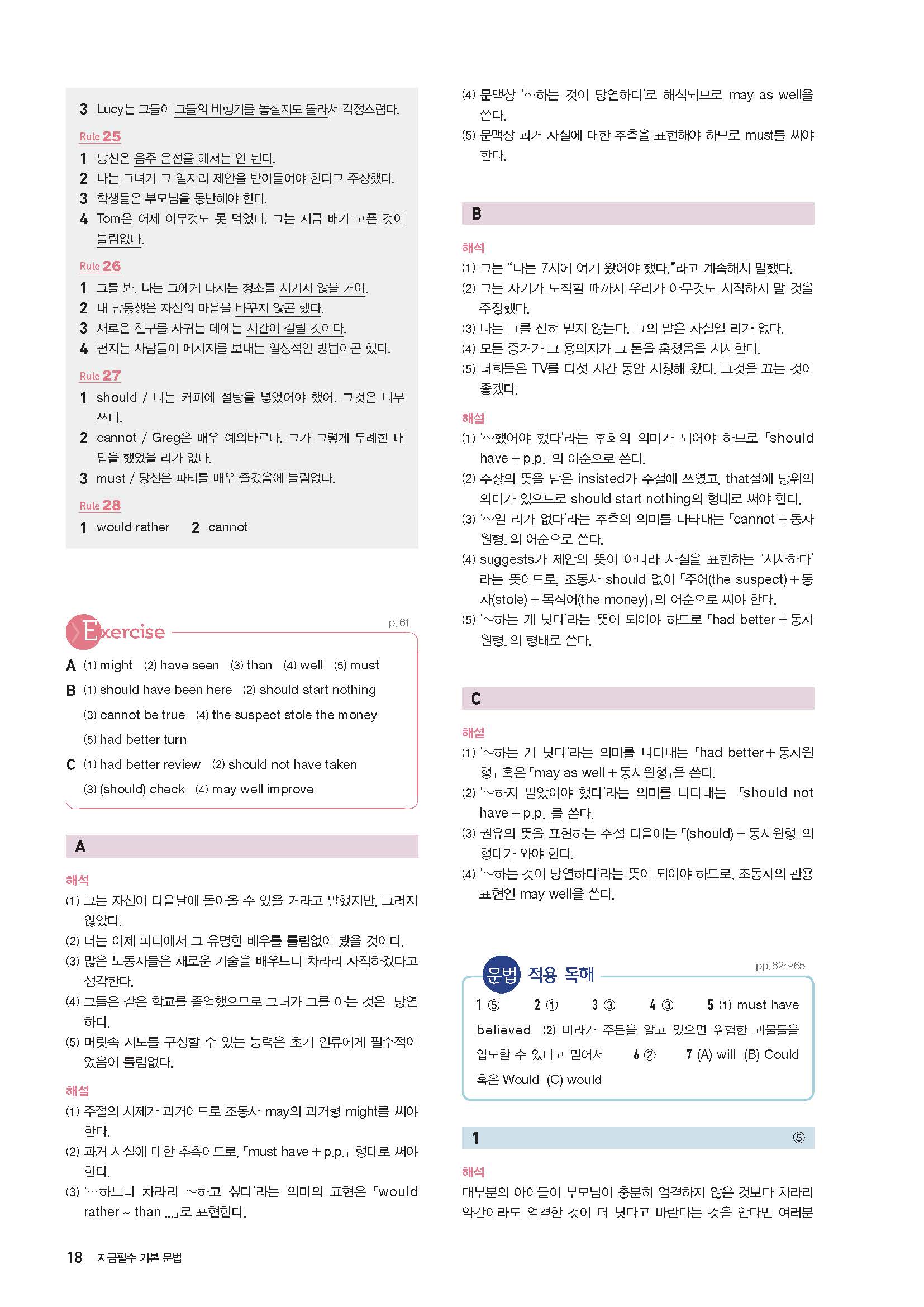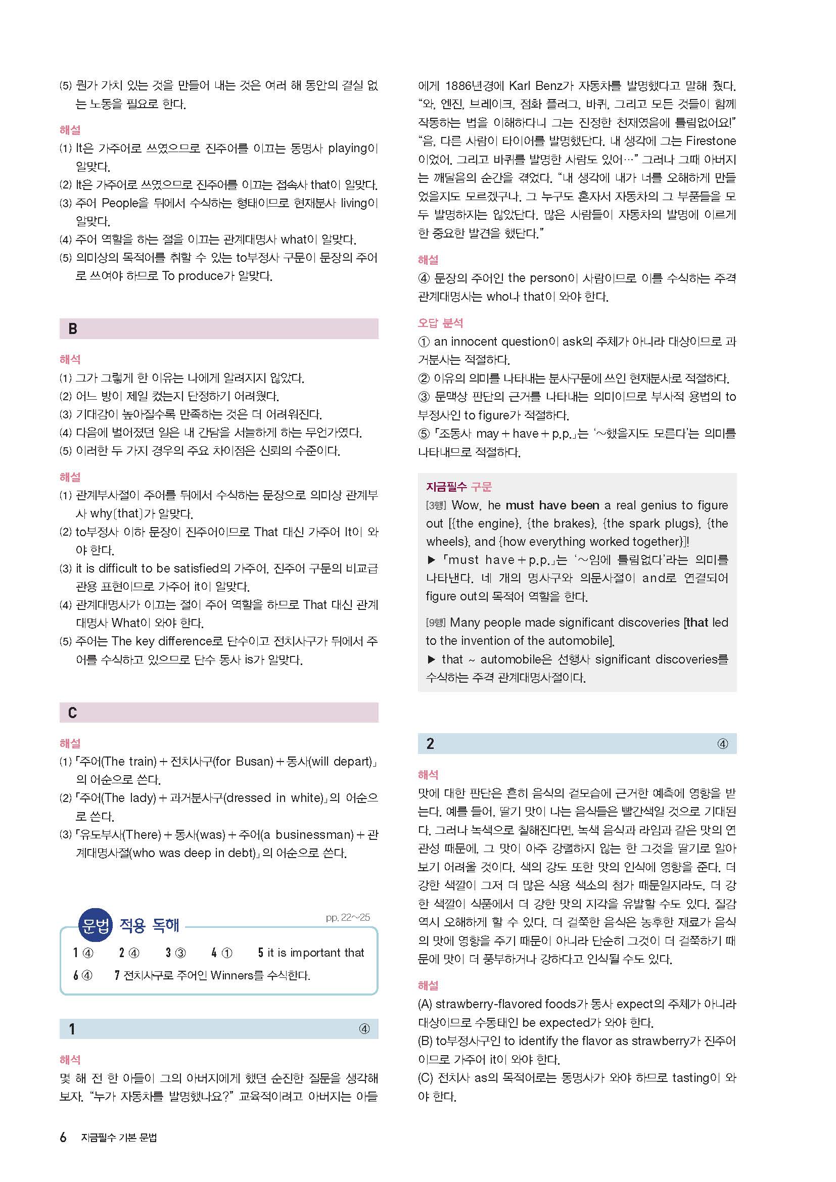 지금필수 영어영역 기본문법 답지 해설 사진답지 빠른답지 모바일최적화