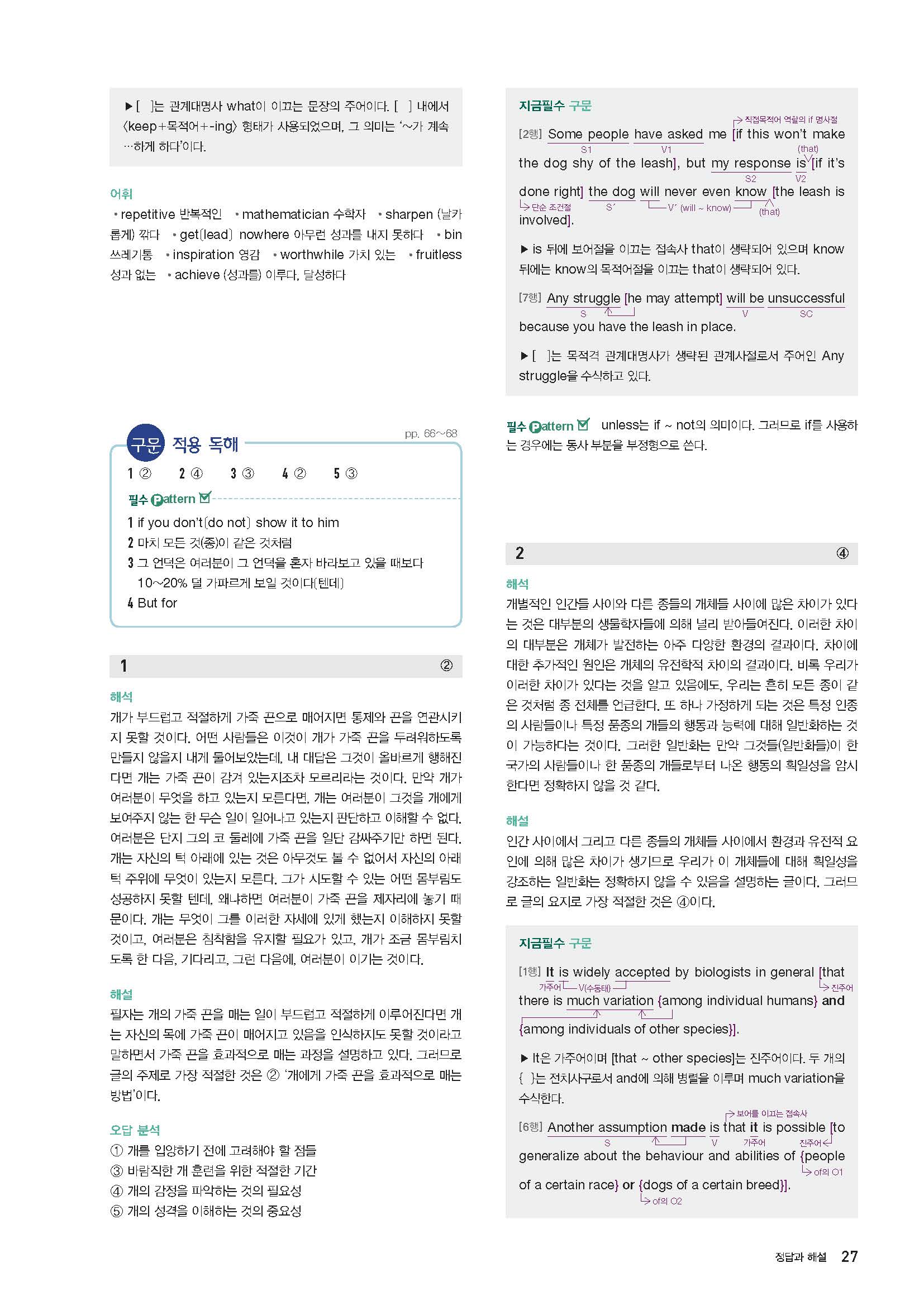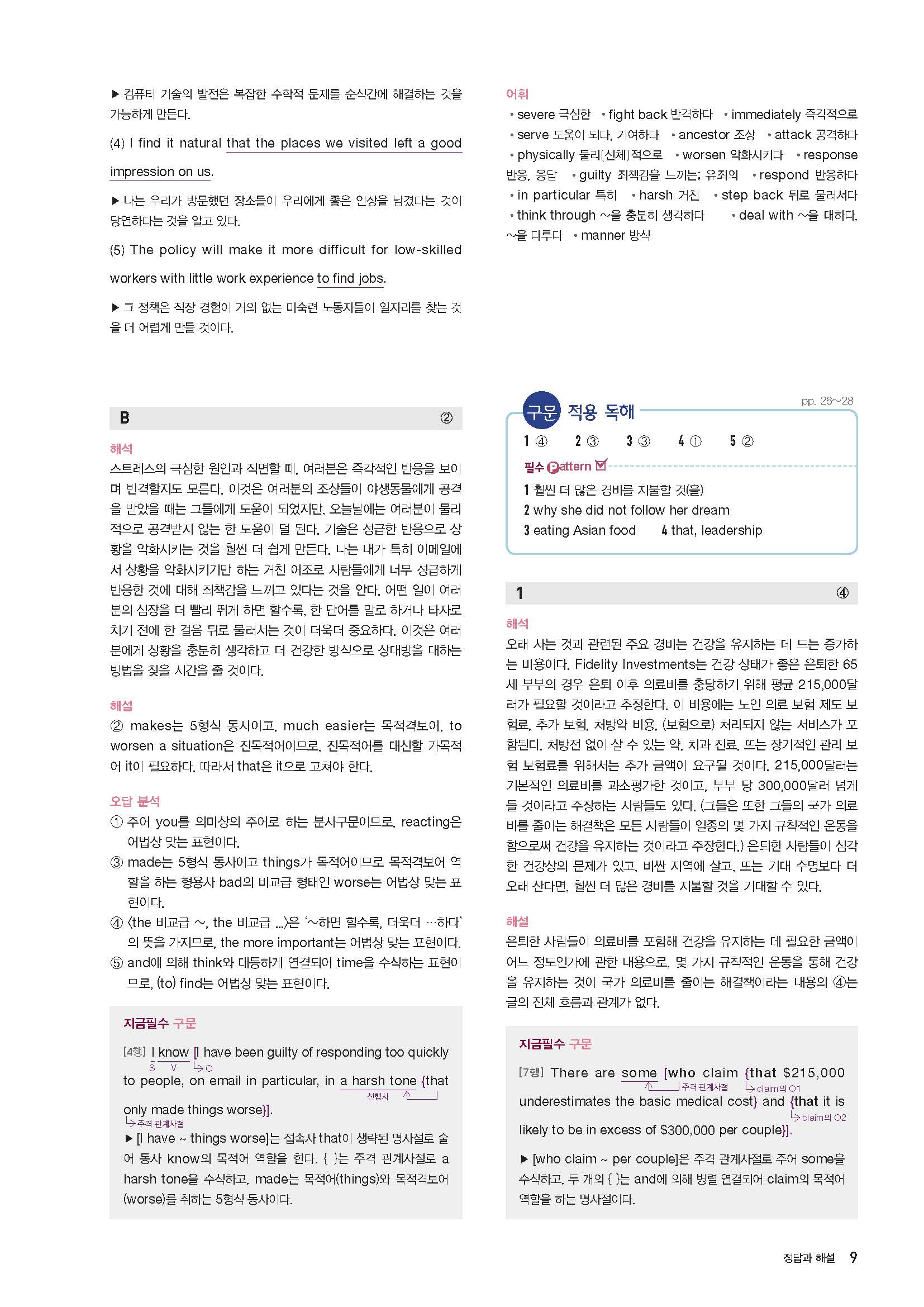 지금필수 영어영역 구문독해 답지 해설 사진답지 빠른답지 모바일최적화