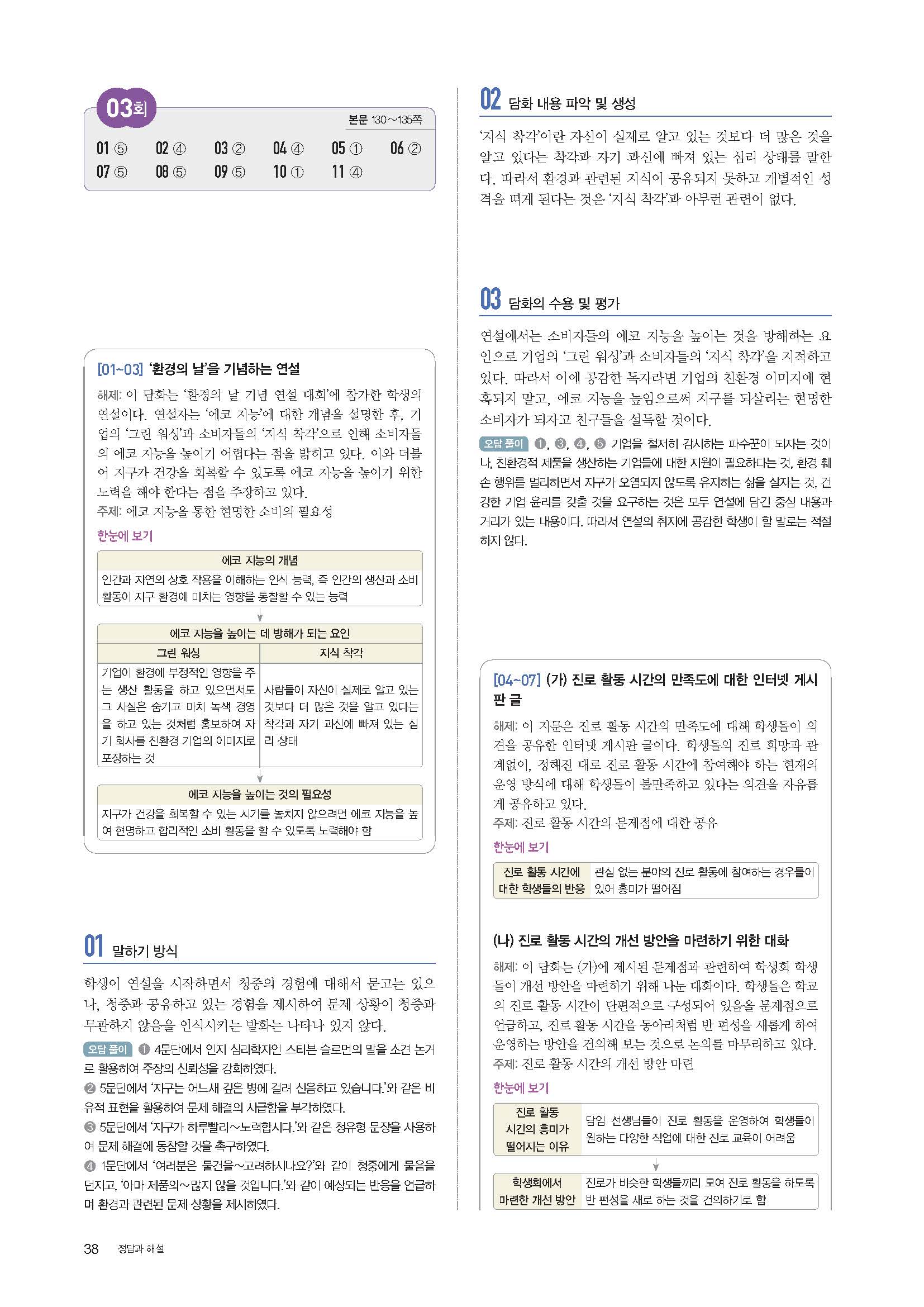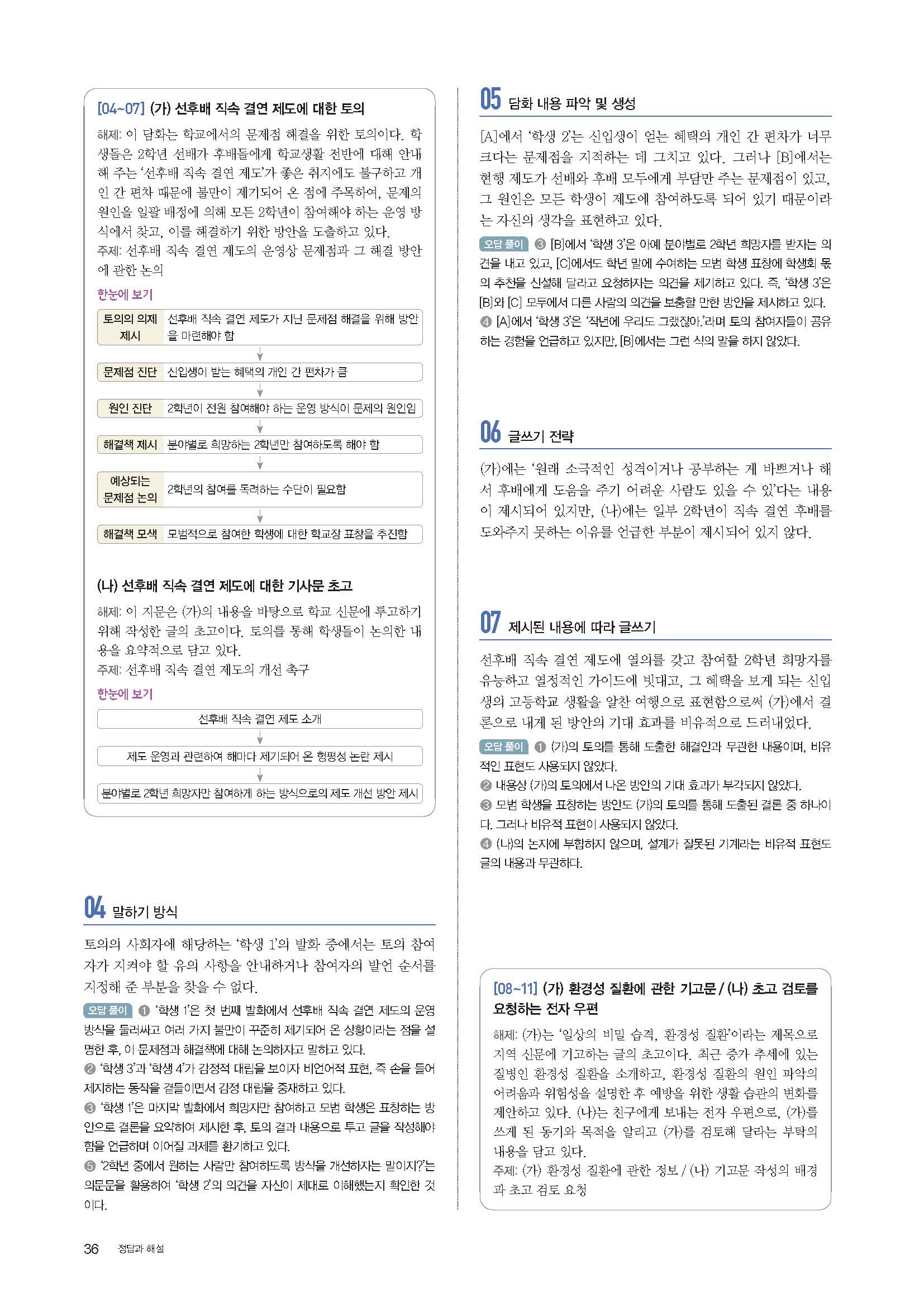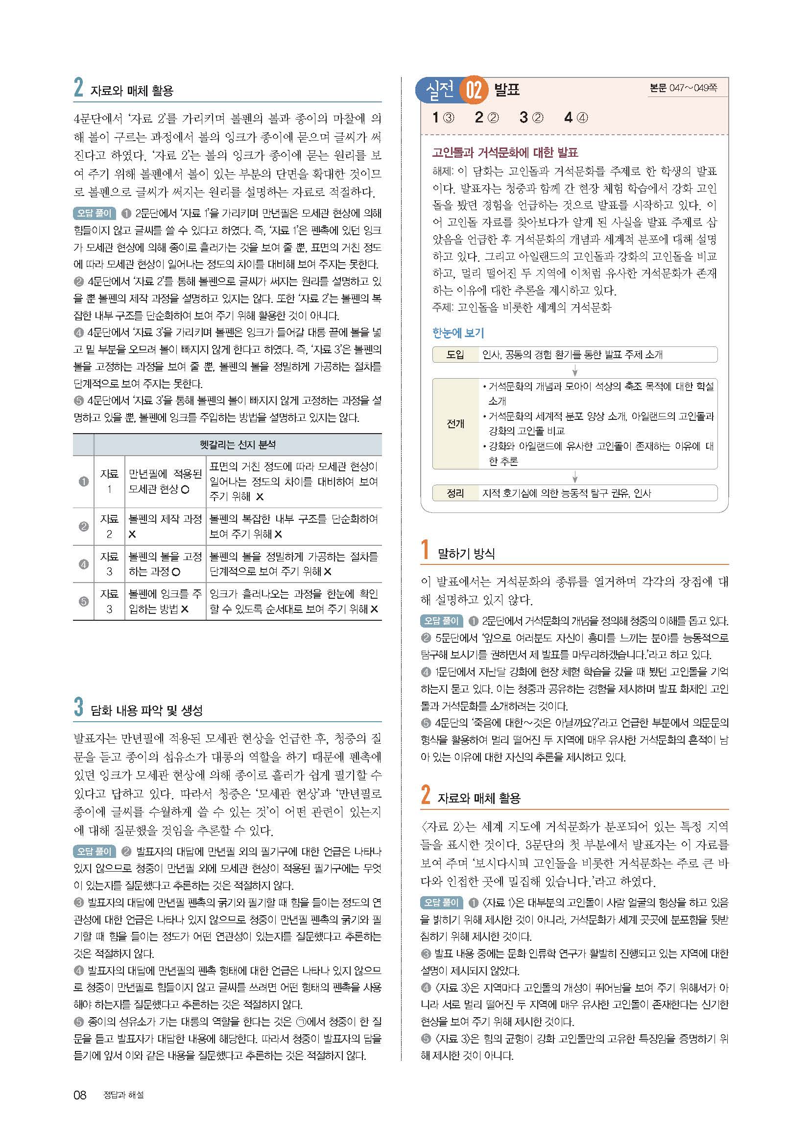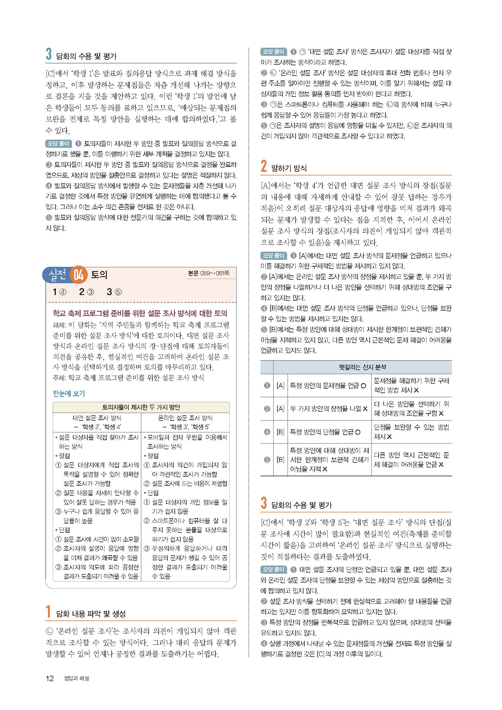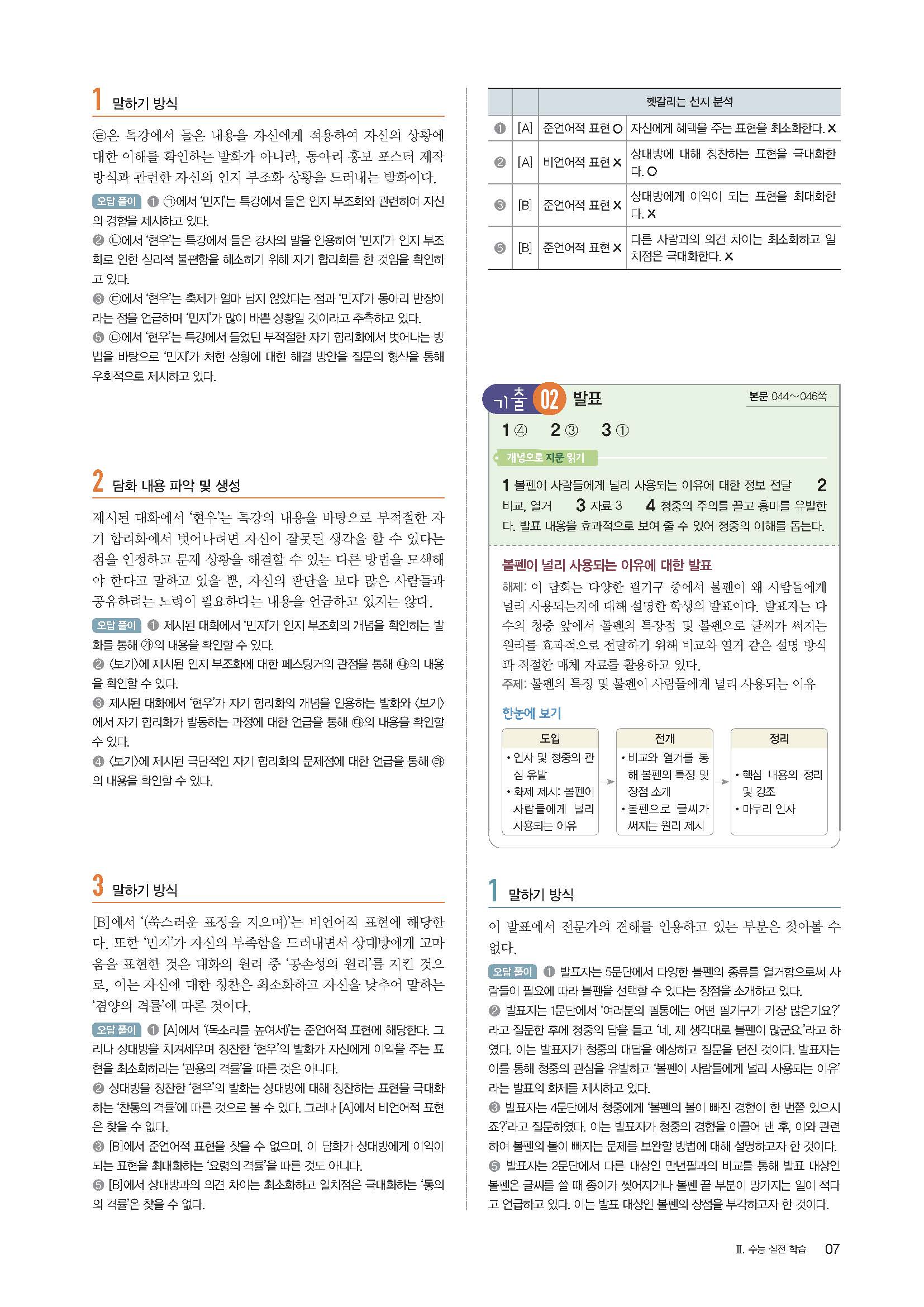 지금필수 국어영역 화법과작문 답지 해설 사진답지 빠른답지 모바일최적화