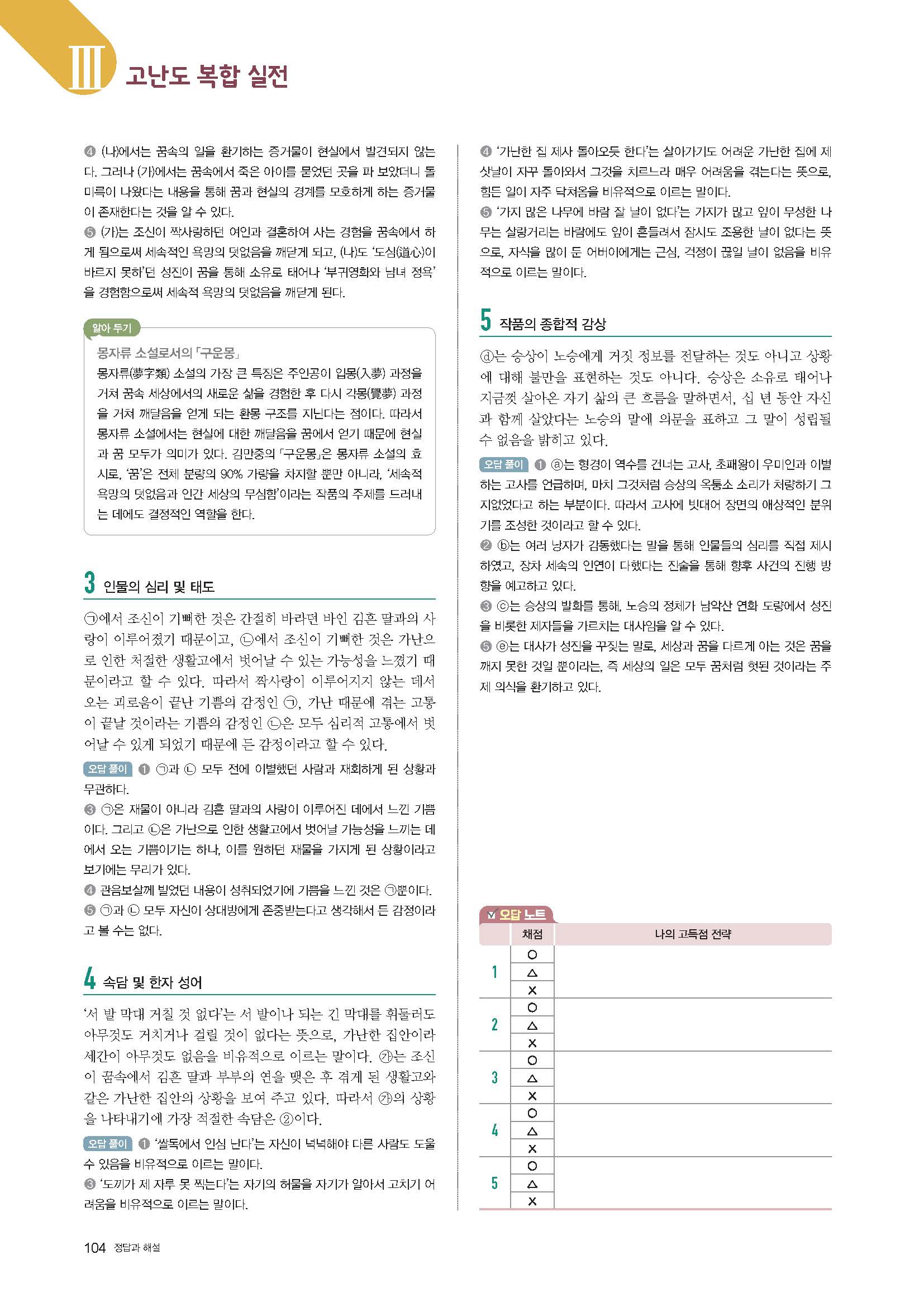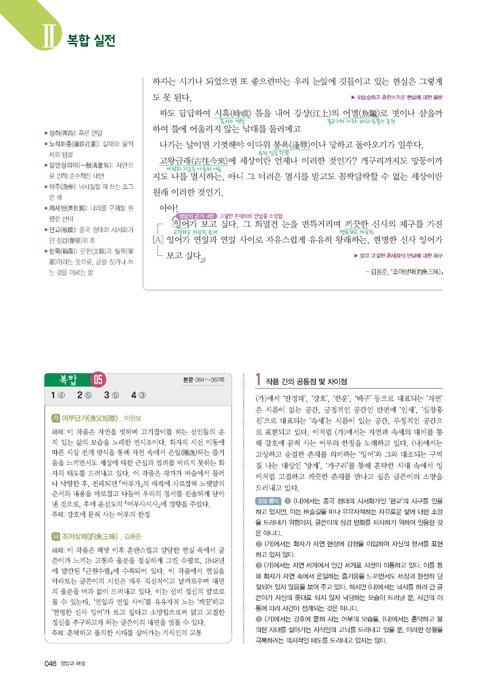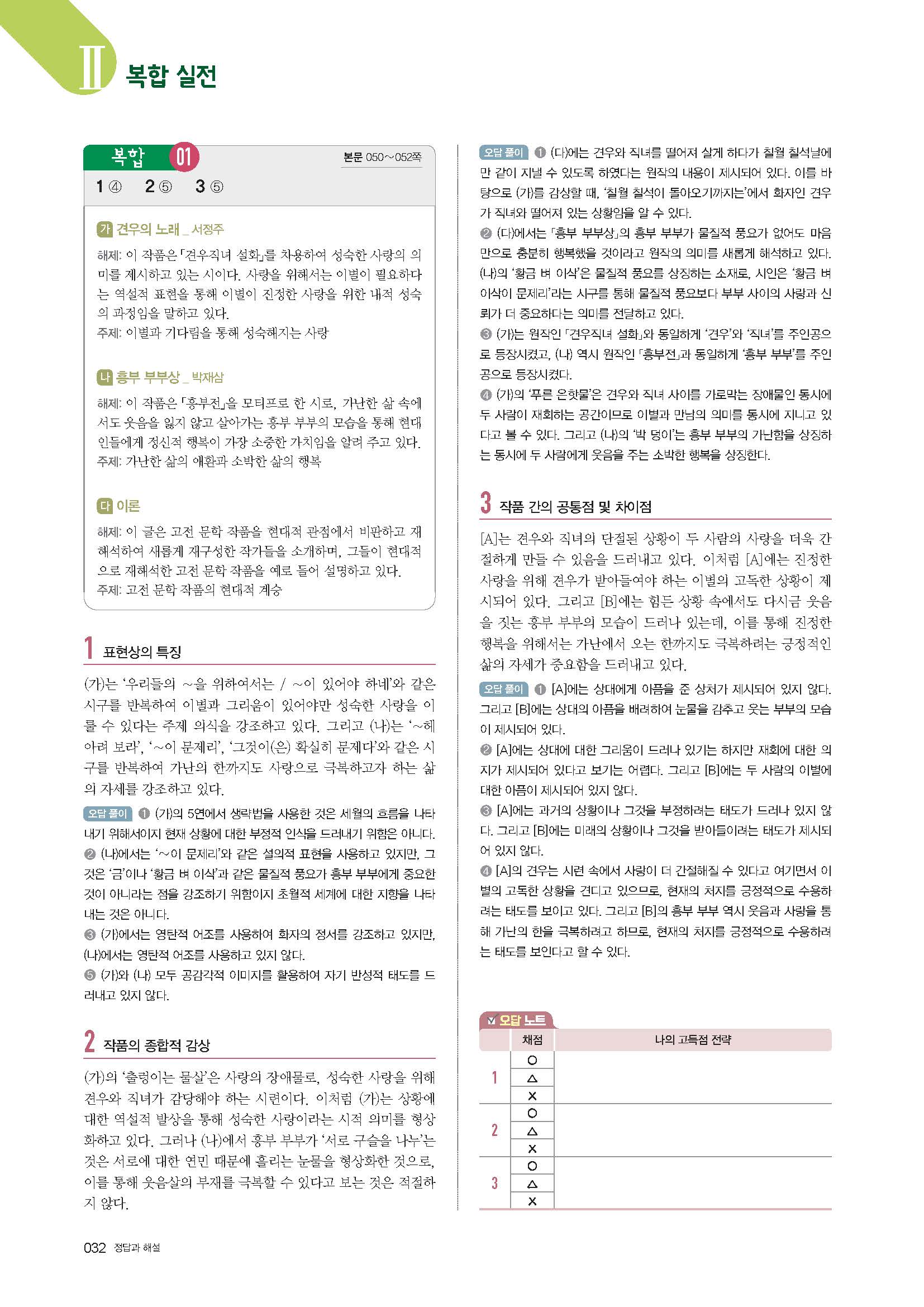 지금필수 국어영역 고난도문학 답지 해설 사진답지 빠른답지 모바일최적화