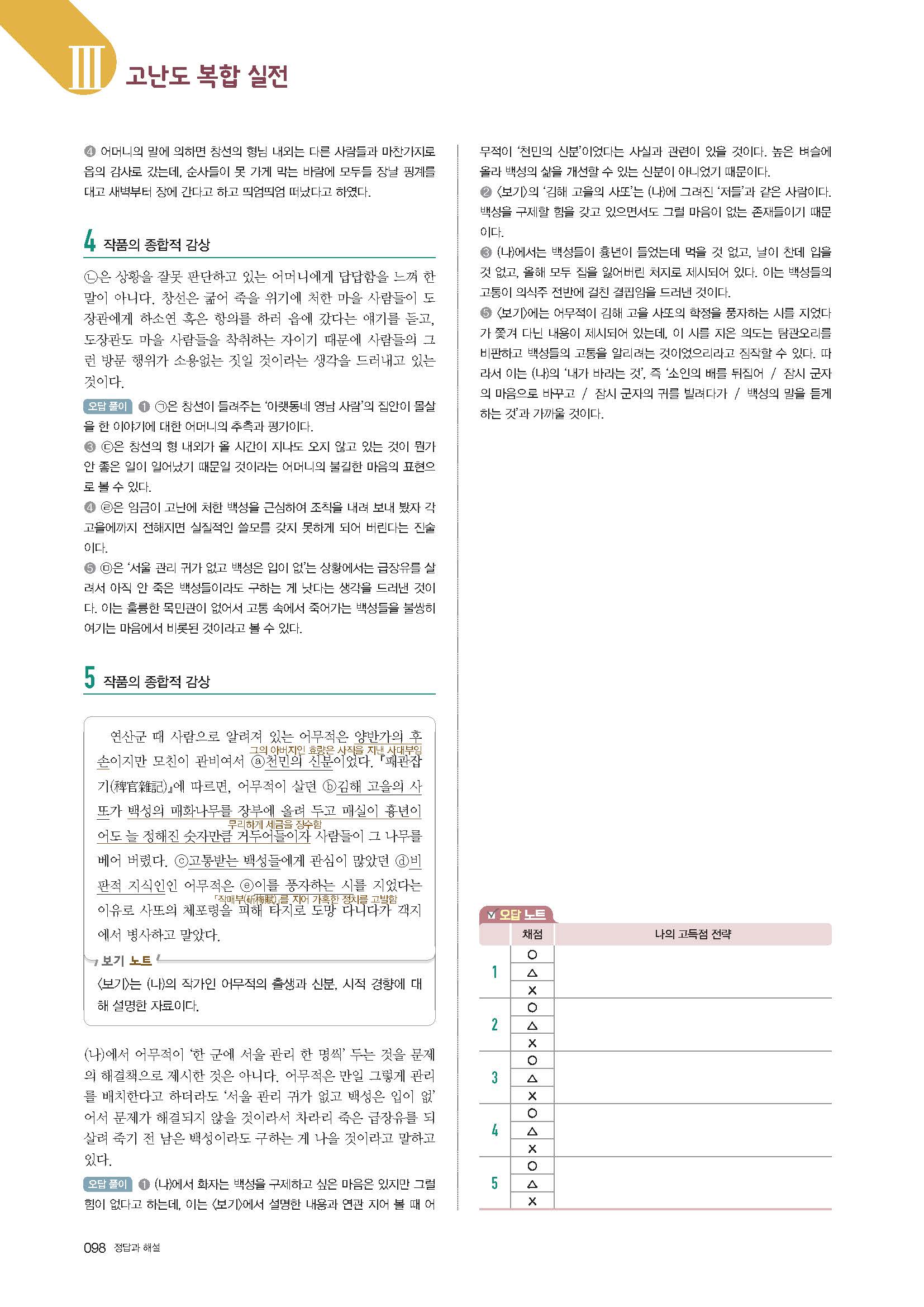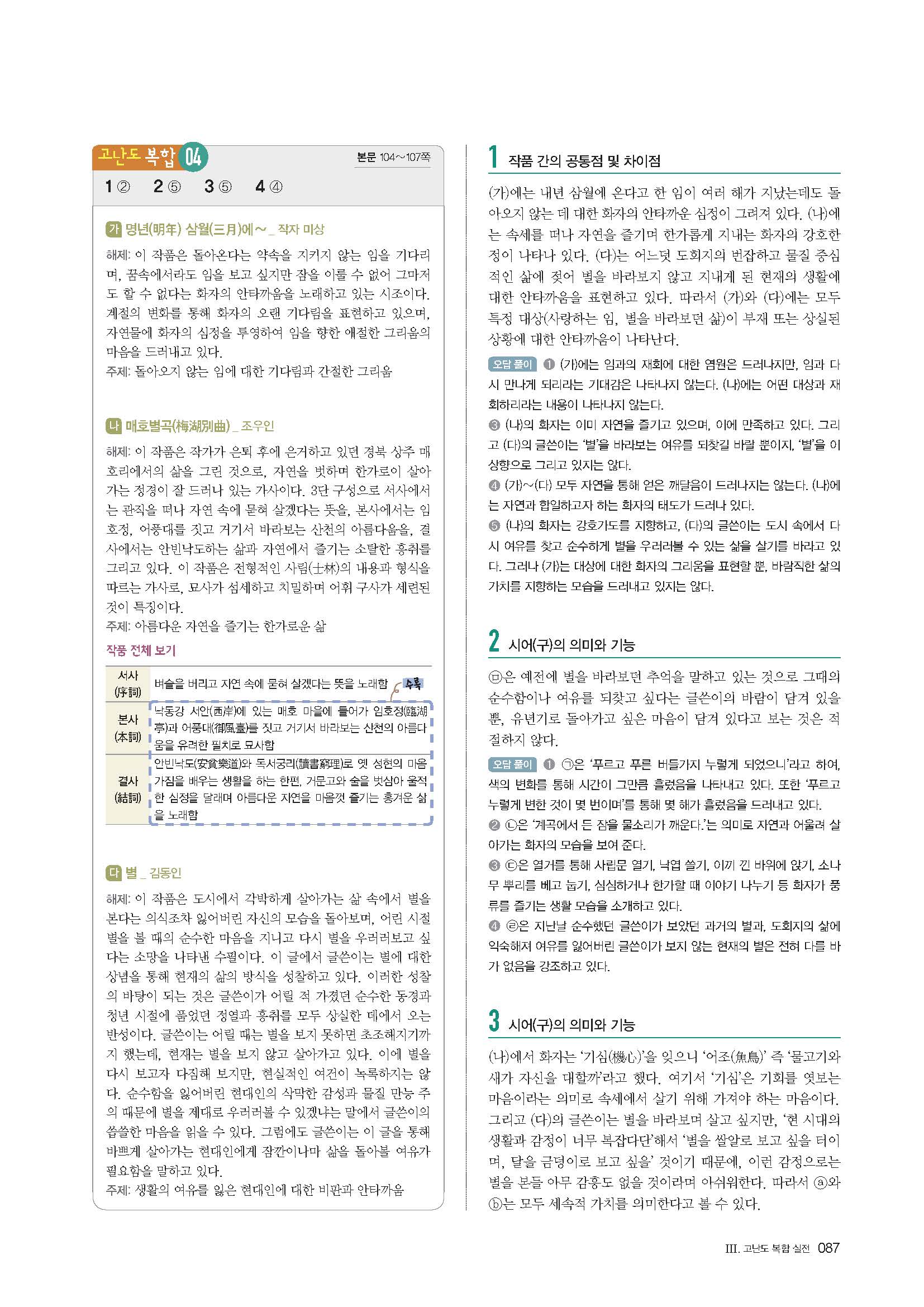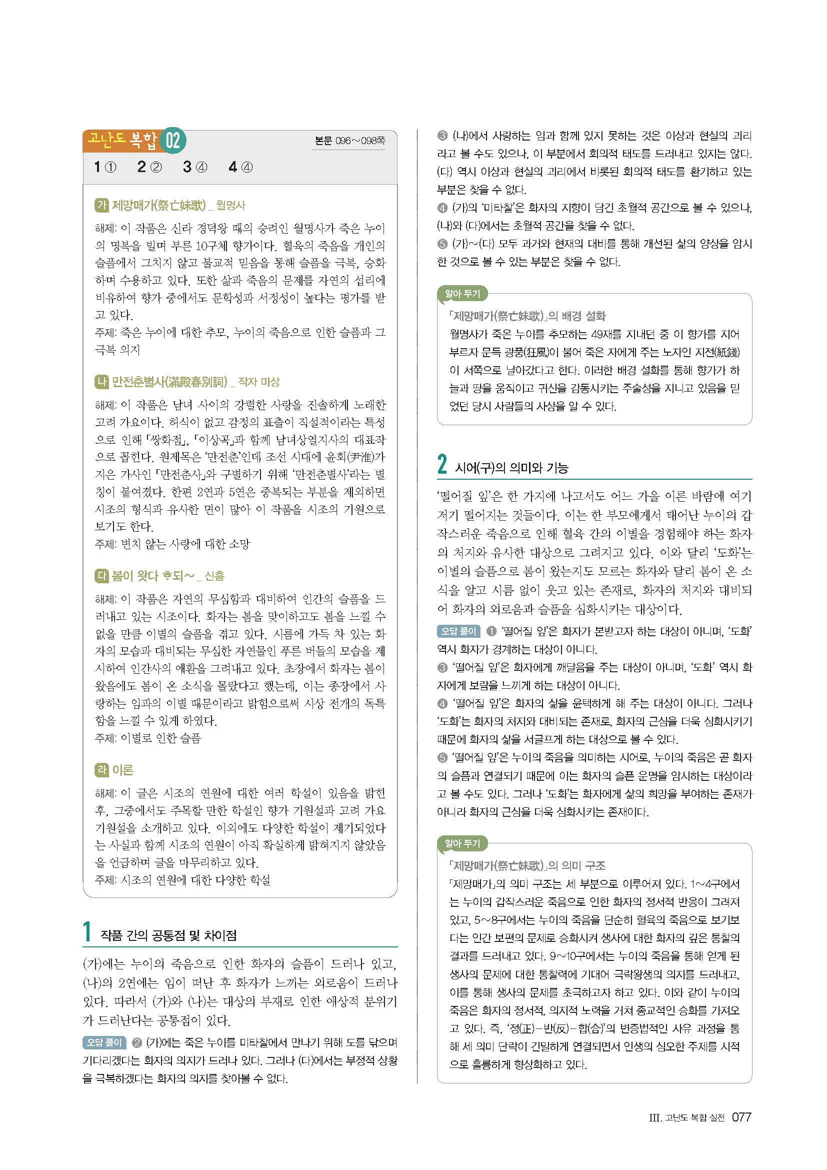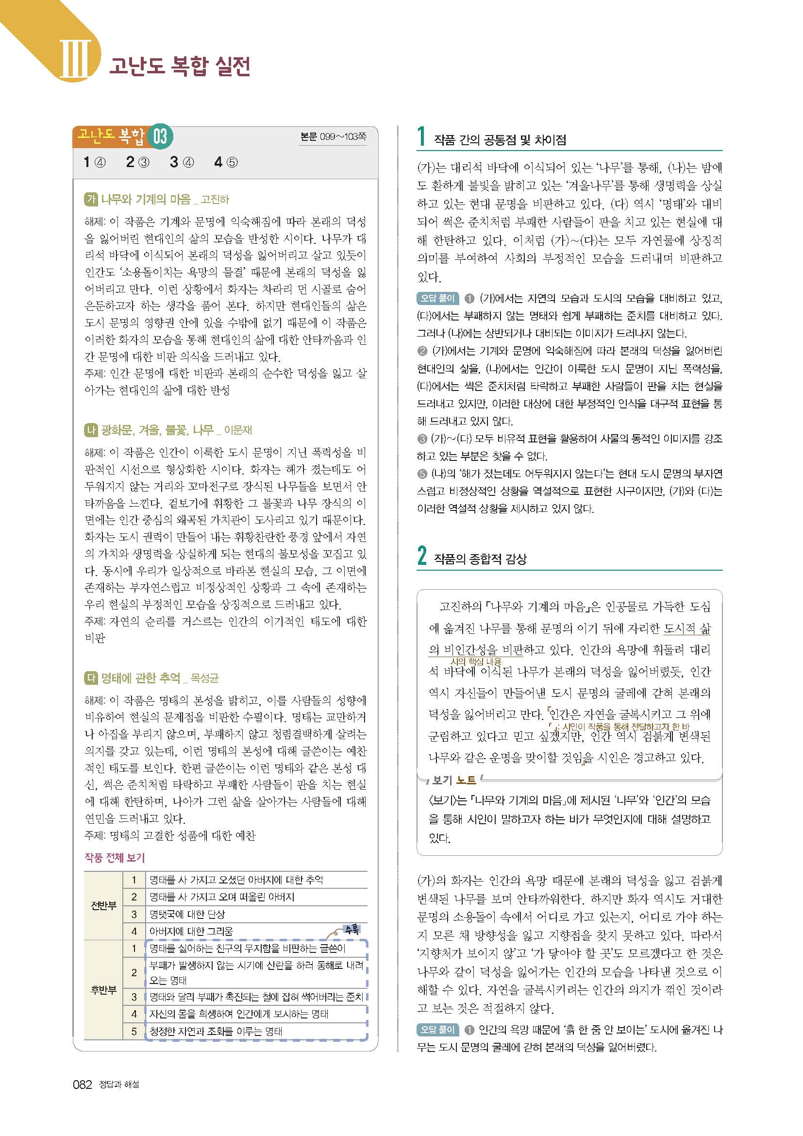 지금필수 국어영역 고난도문학 답지 해설 사진답지 빠른답지 모바일최적화