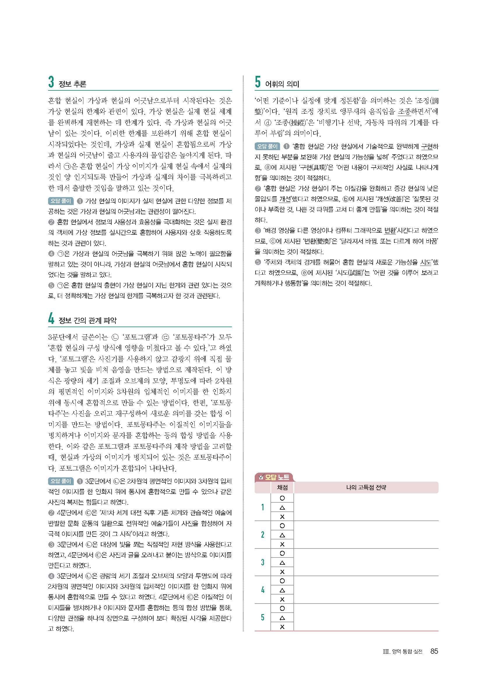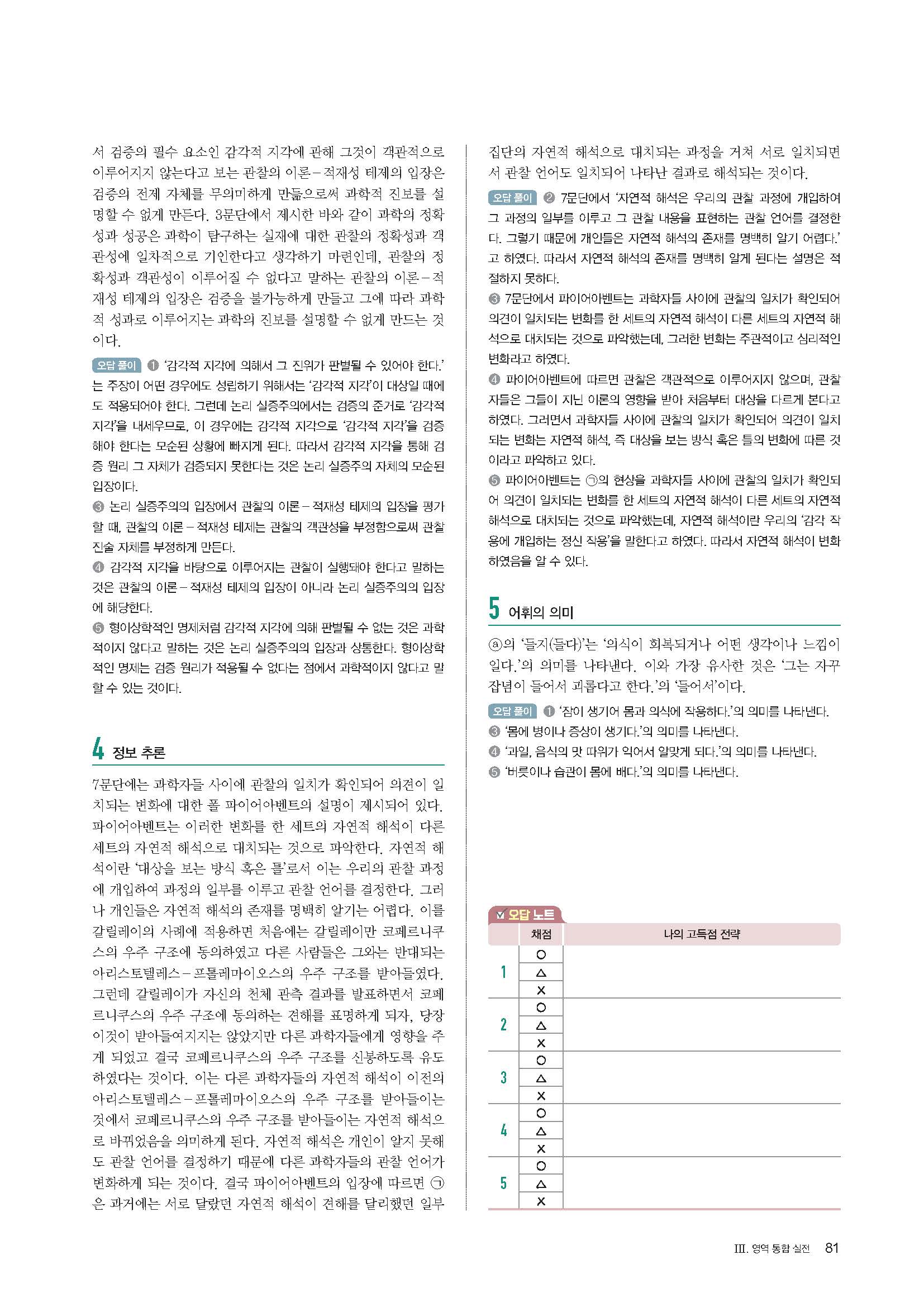 지금필수 국어영역 고난도독서 답지 해설 사진답지 빠른답지 모바일최적화