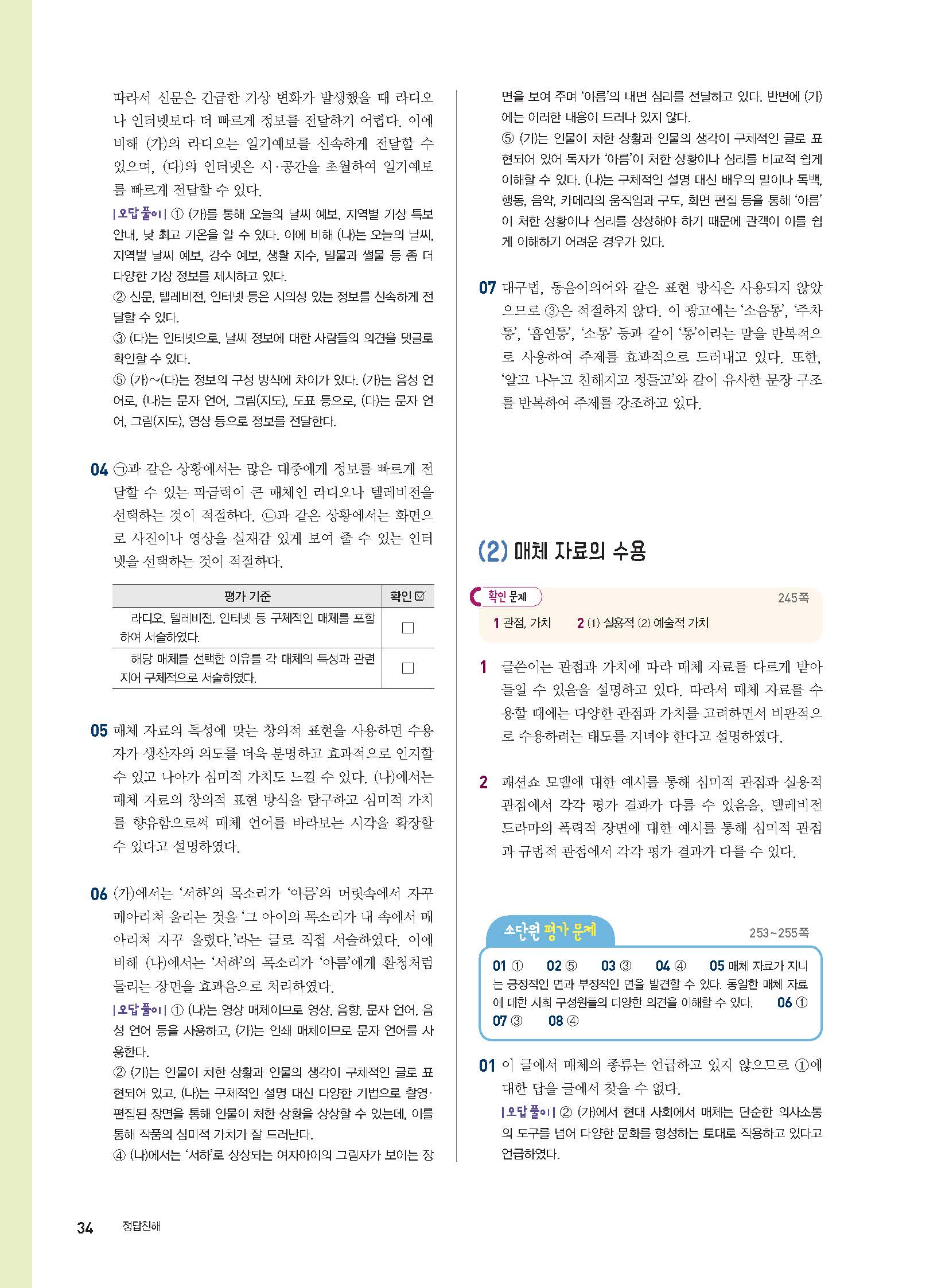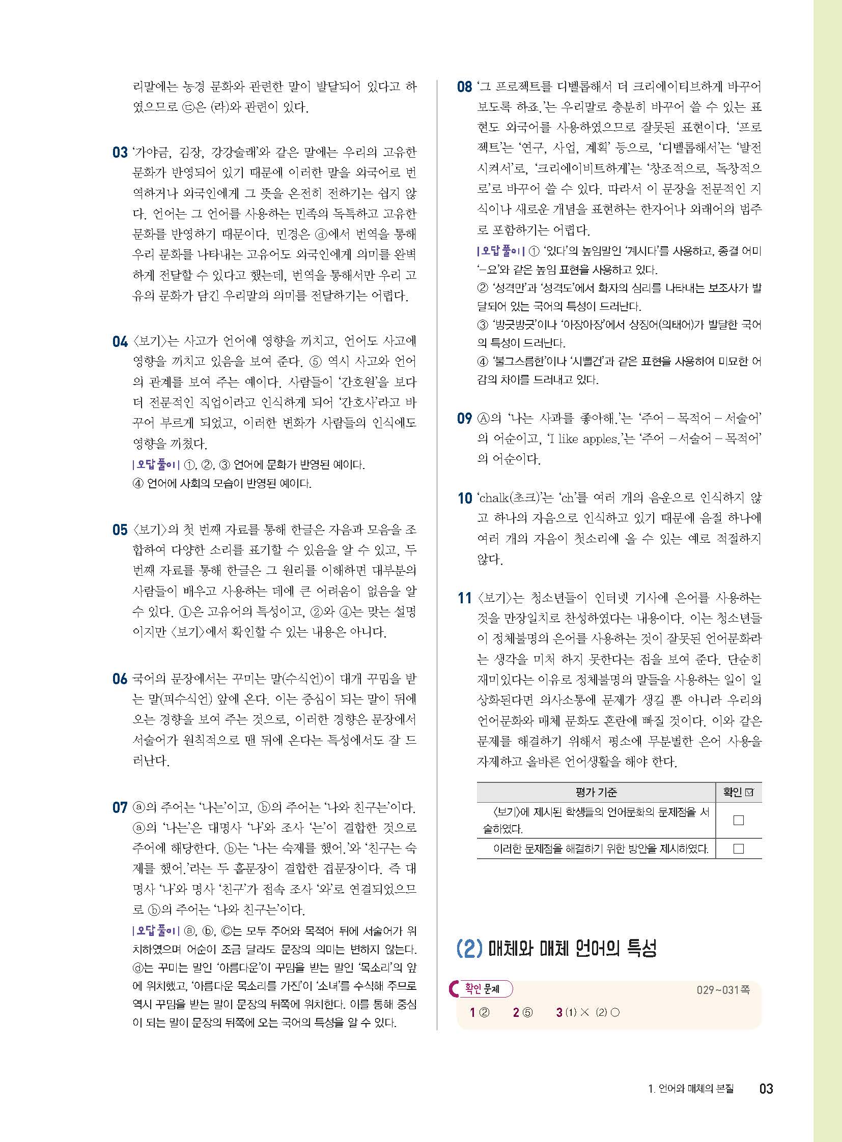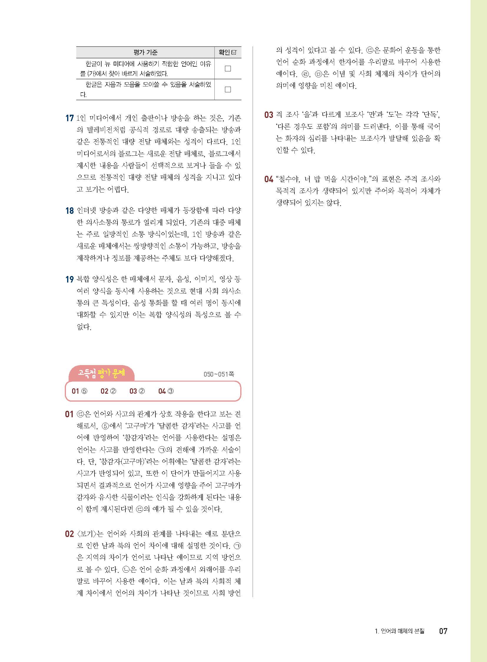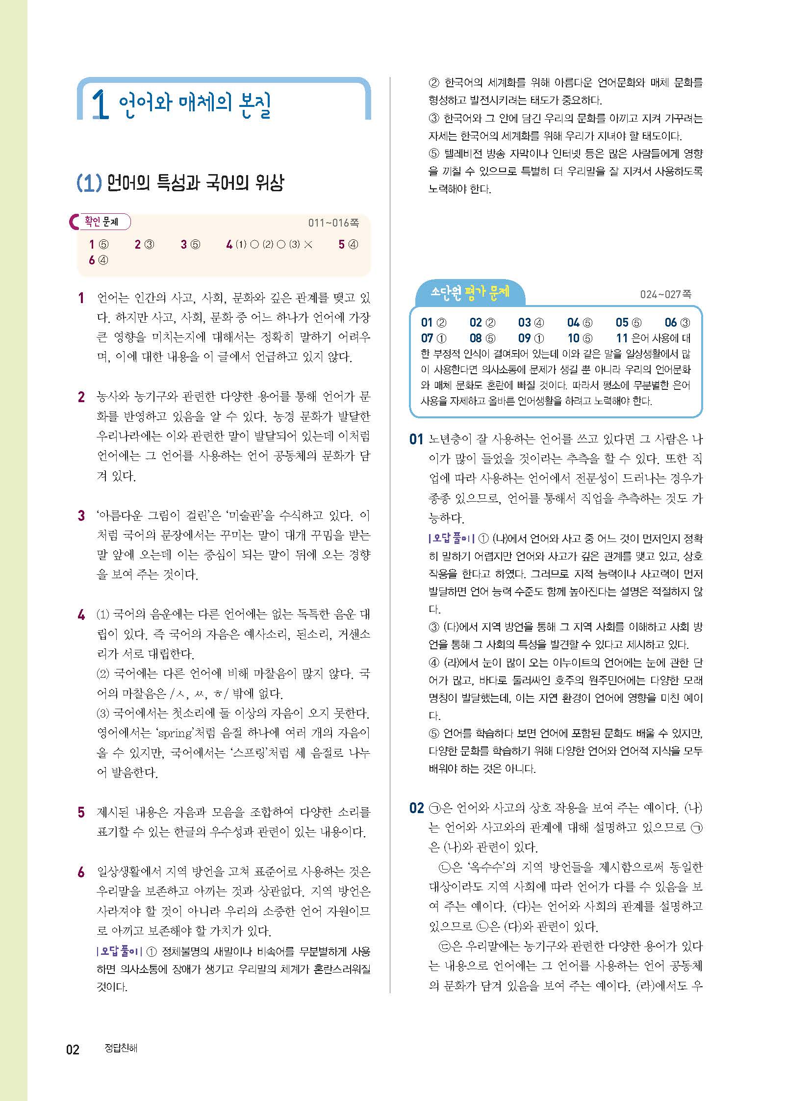 비상 자습서 언어와매체 답지 해설 사진답지 빠른답지 모바일최적화