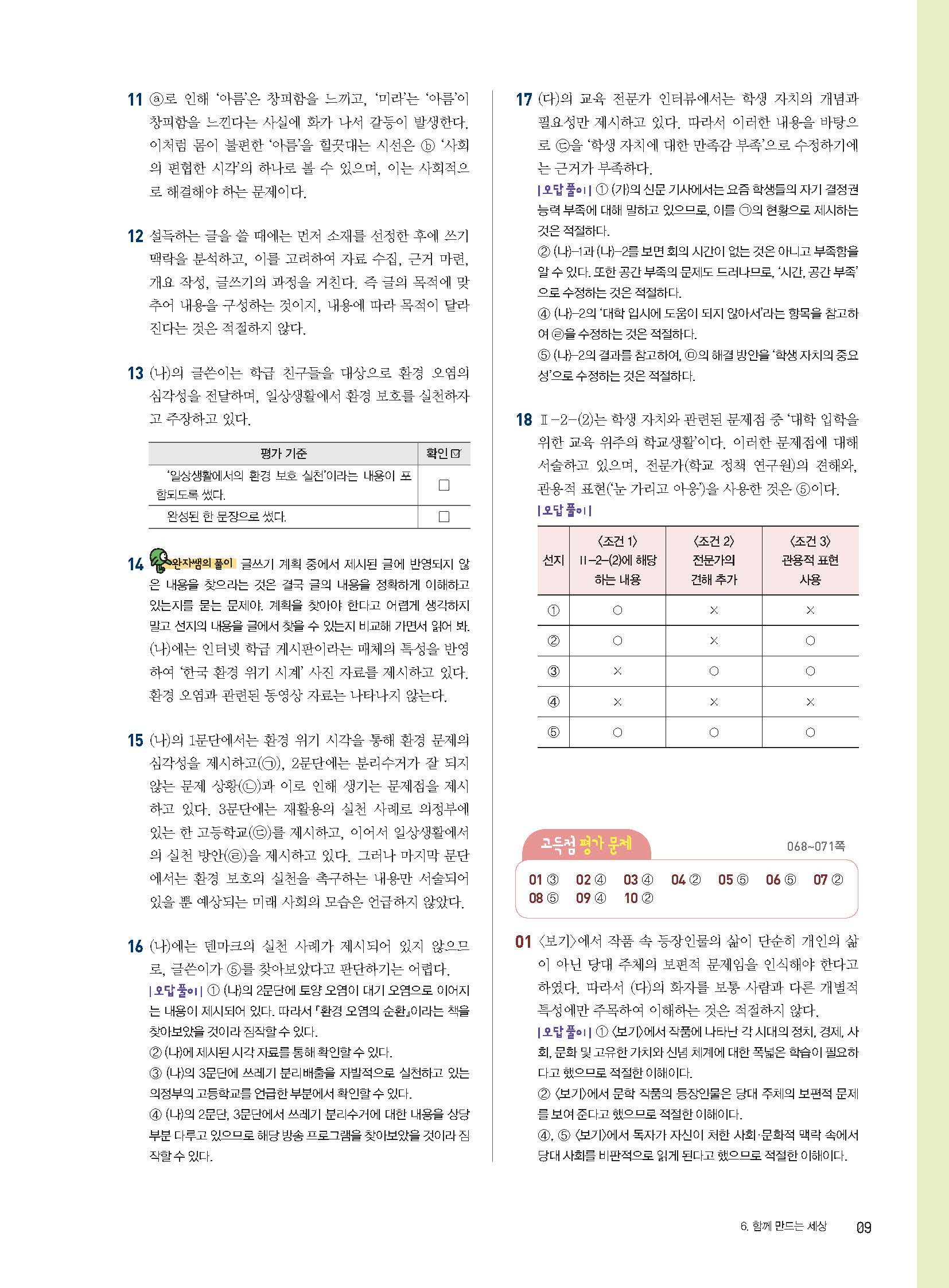 완자 자습서 고등국어 박안수하 답지 해설 사진답지 빠른답지 모바일최적화