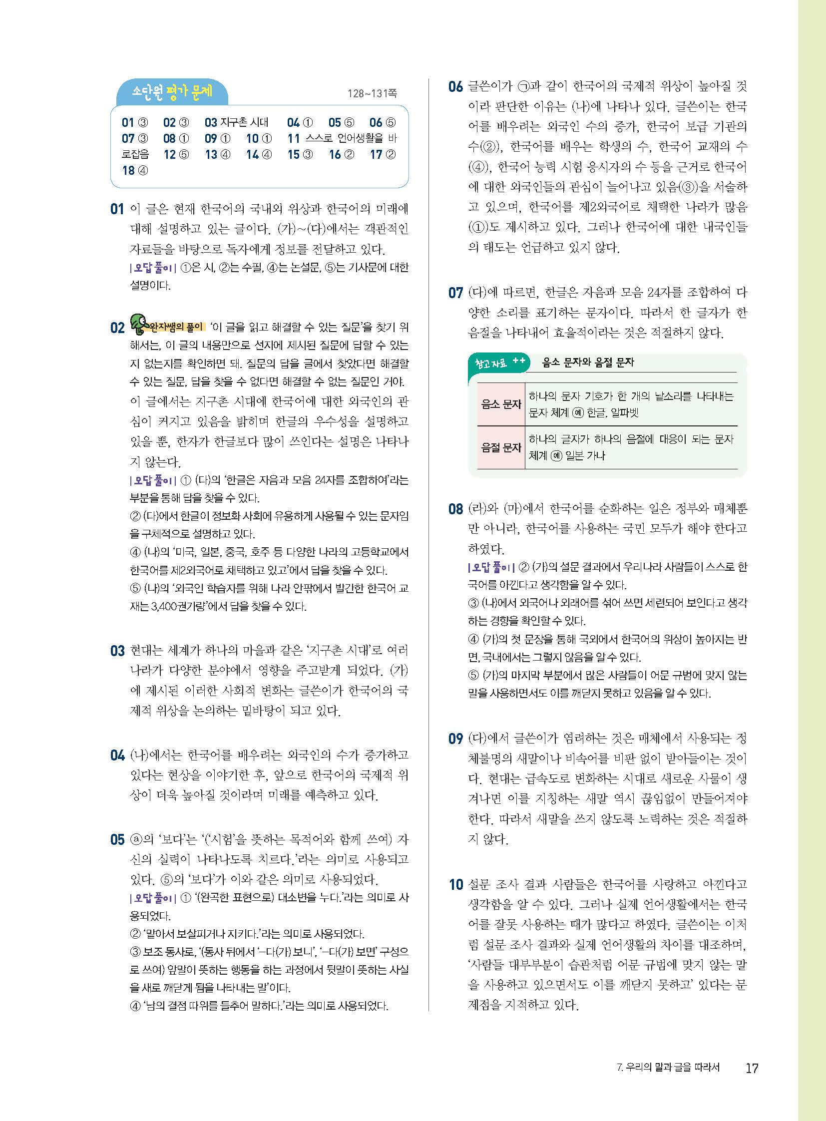 다운로드 받을필요 없이 바로 볼수 있는 모바일에 최적화된 답지 입니다