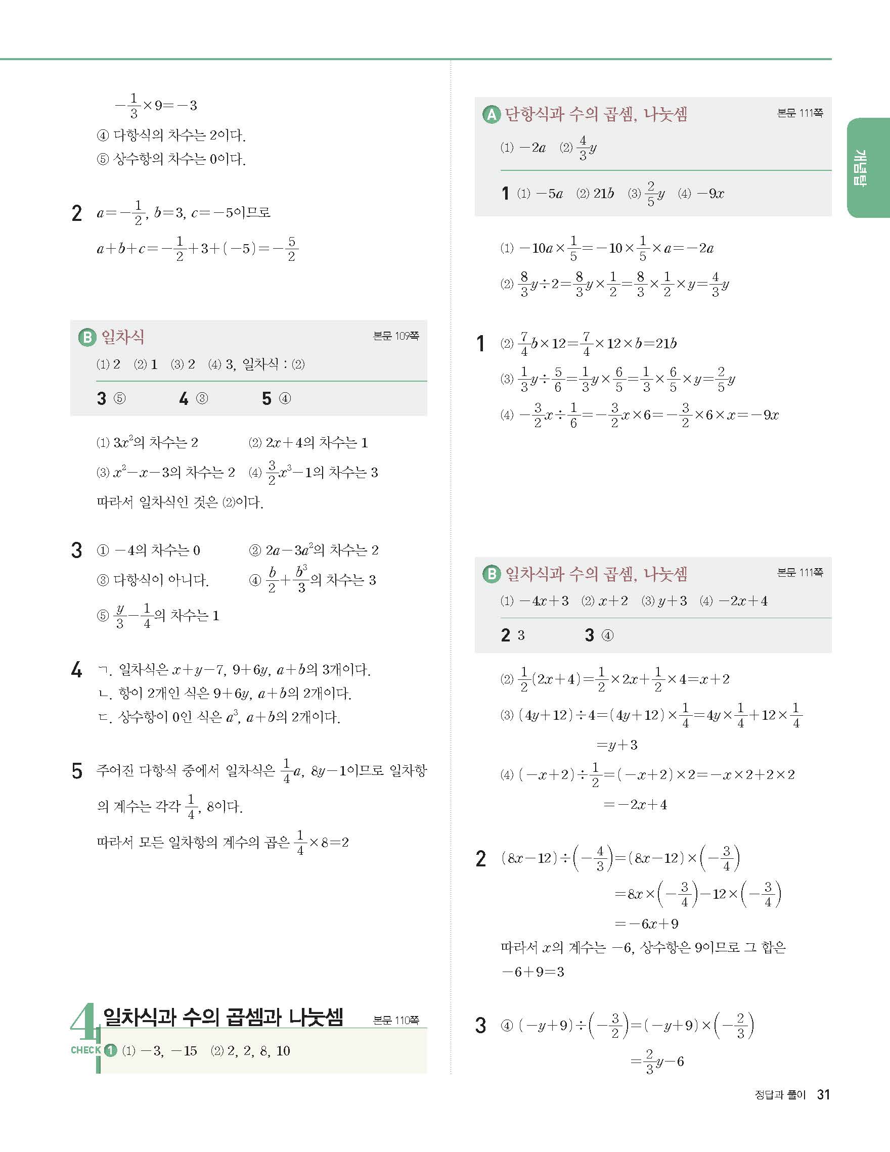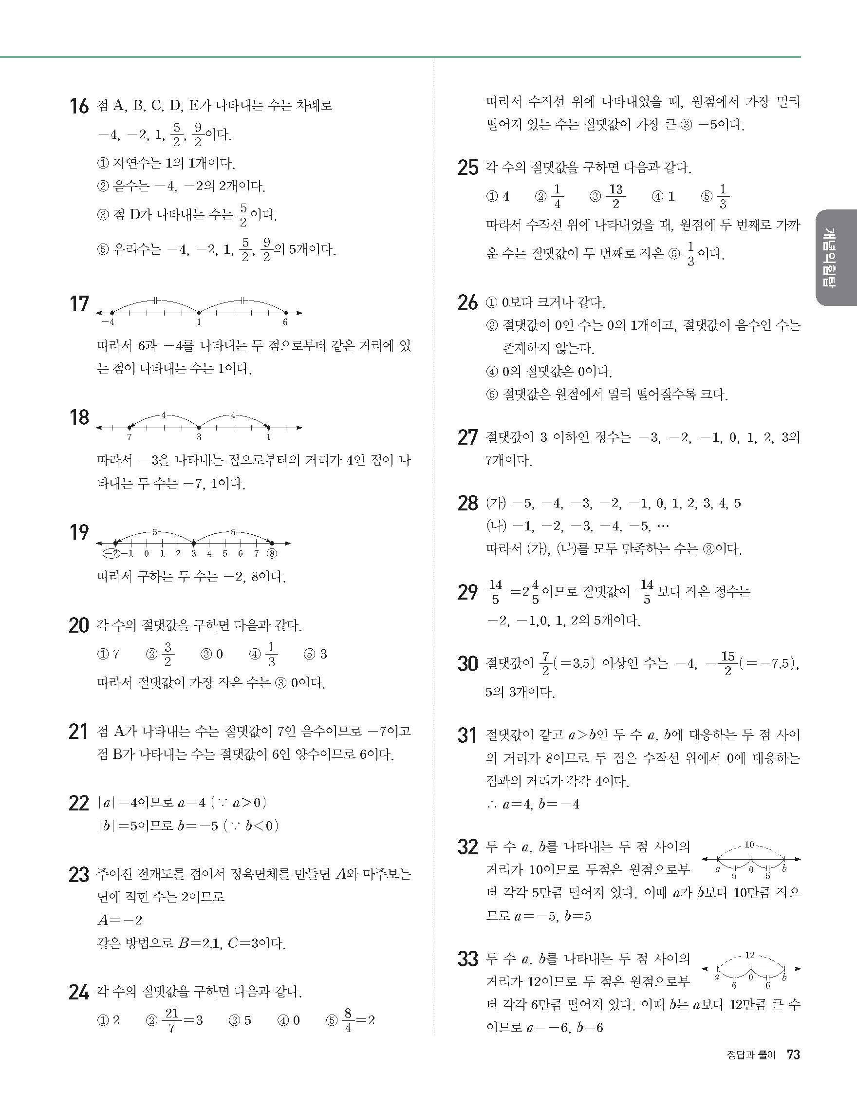 투탑 중등수학 중1상 1-1 답지 해설 사진답지 빠른답지 모바일최적화