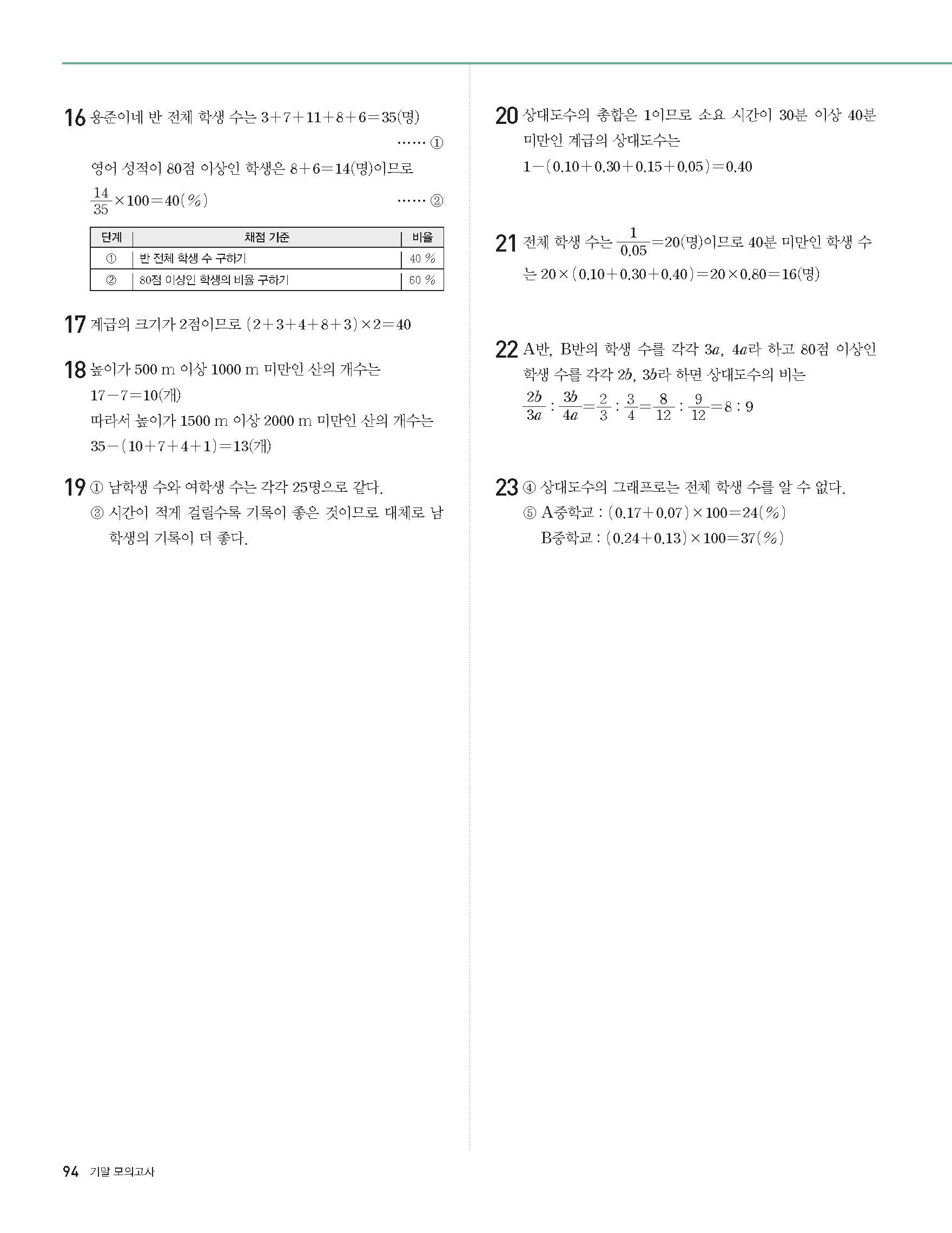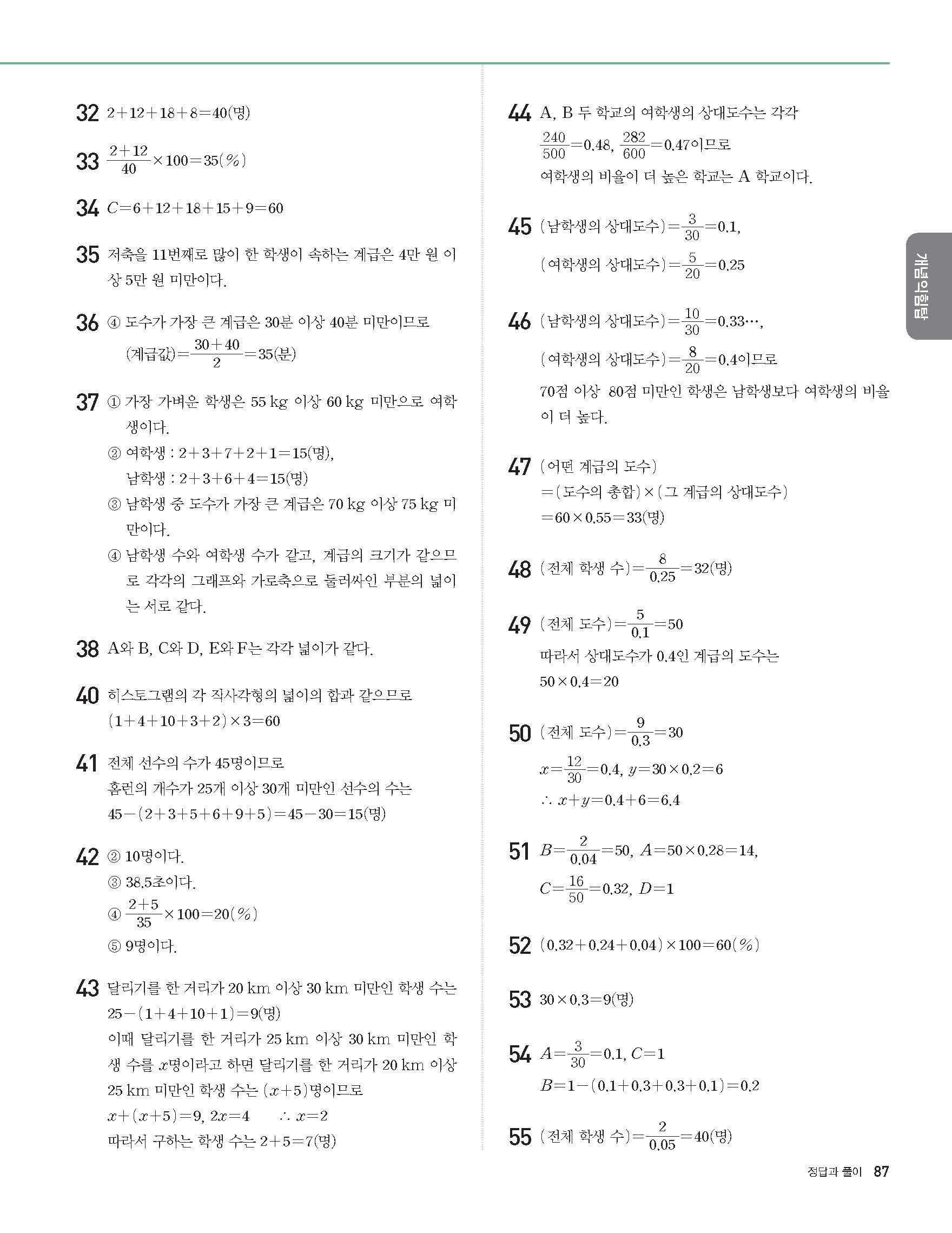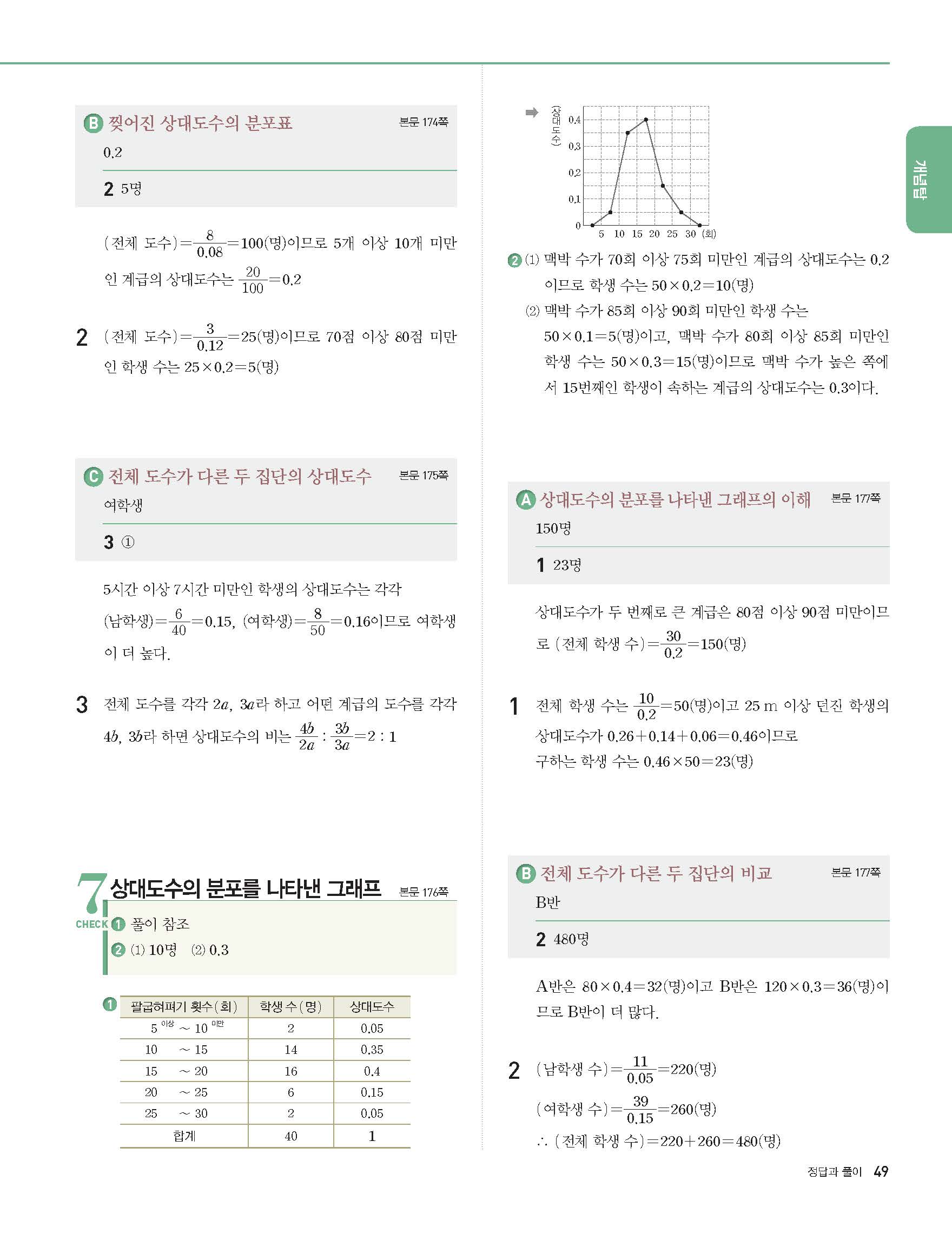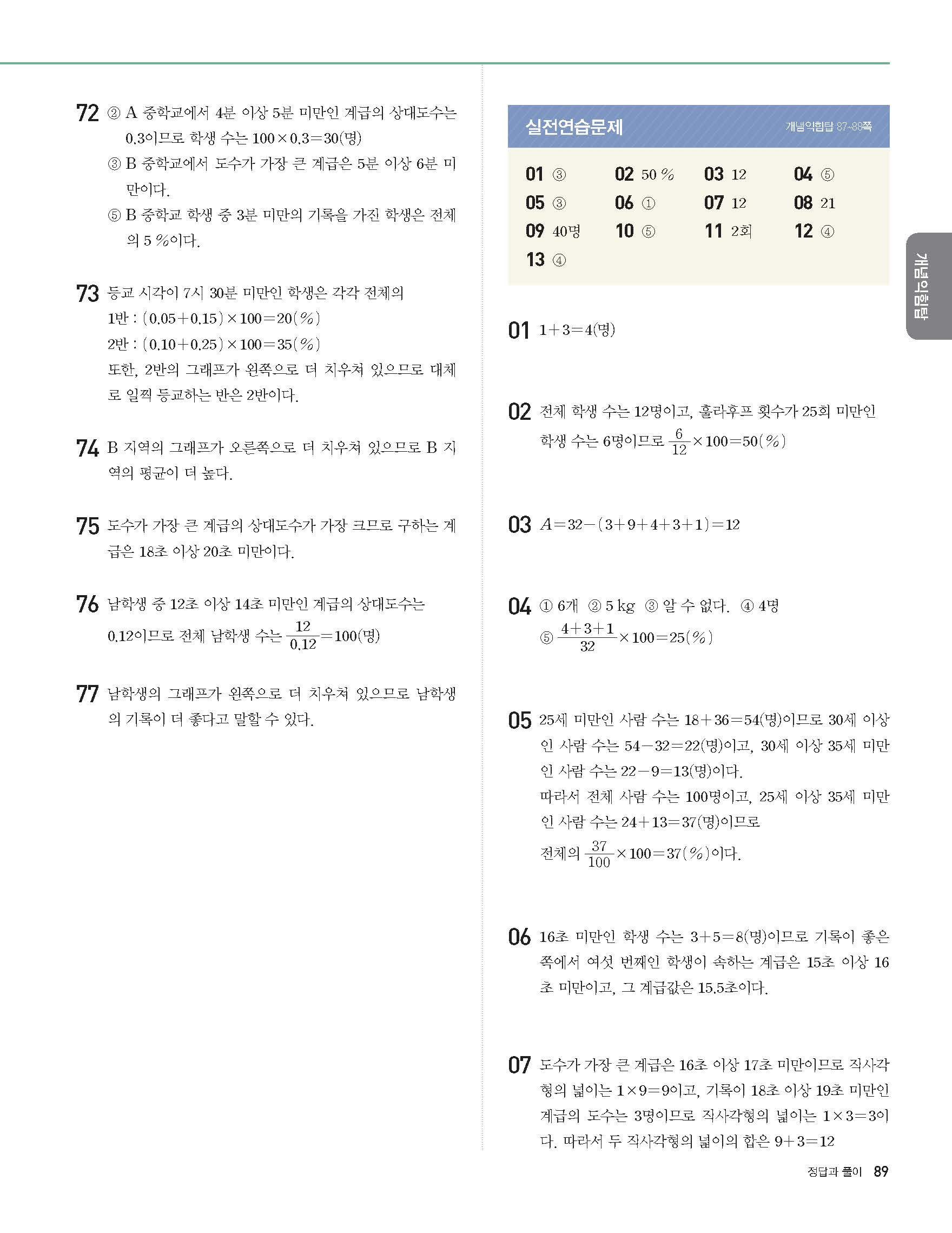 투탑 중등수학 중1하 1-2 답지 해설 사진답지 빠른답지 모바일최적화