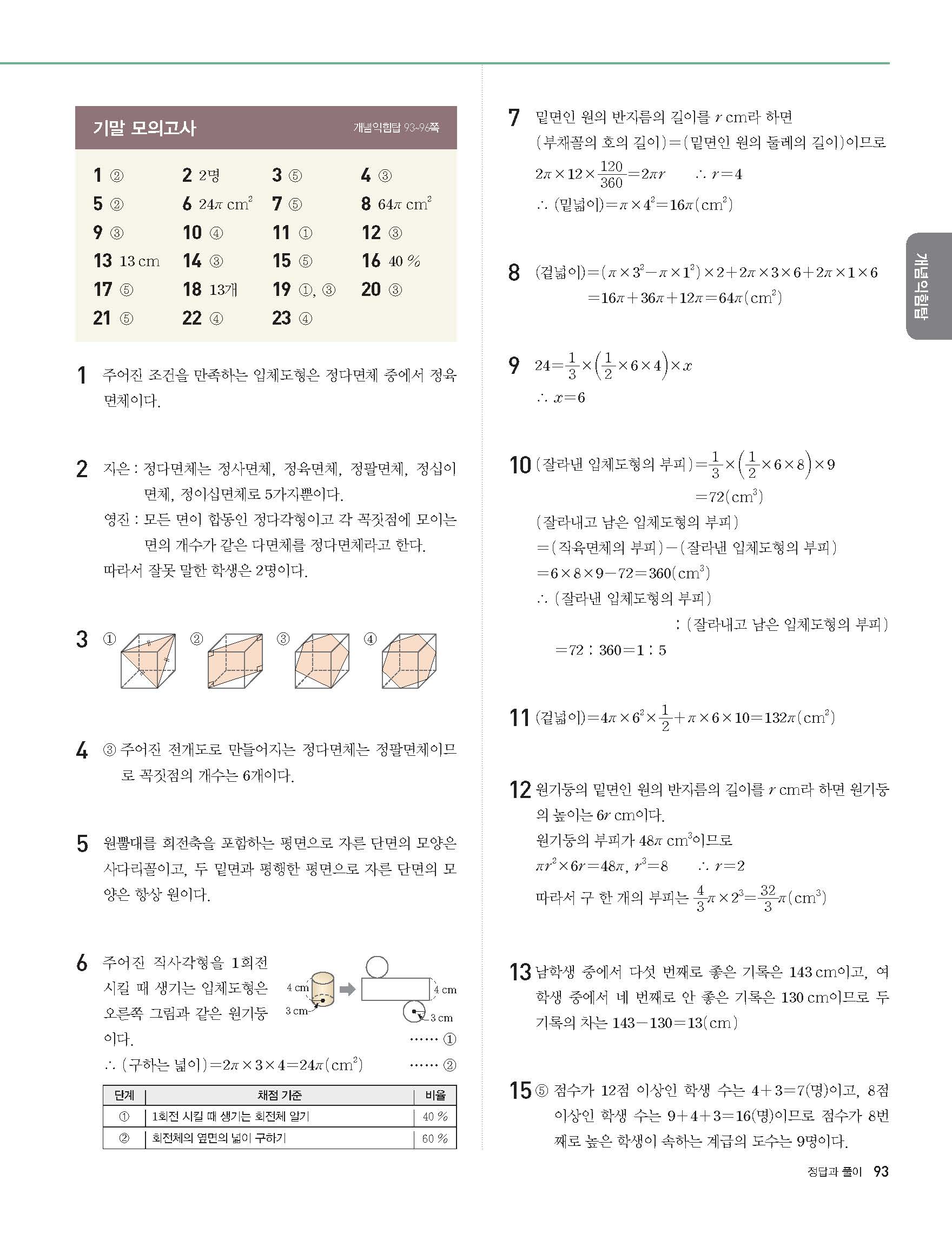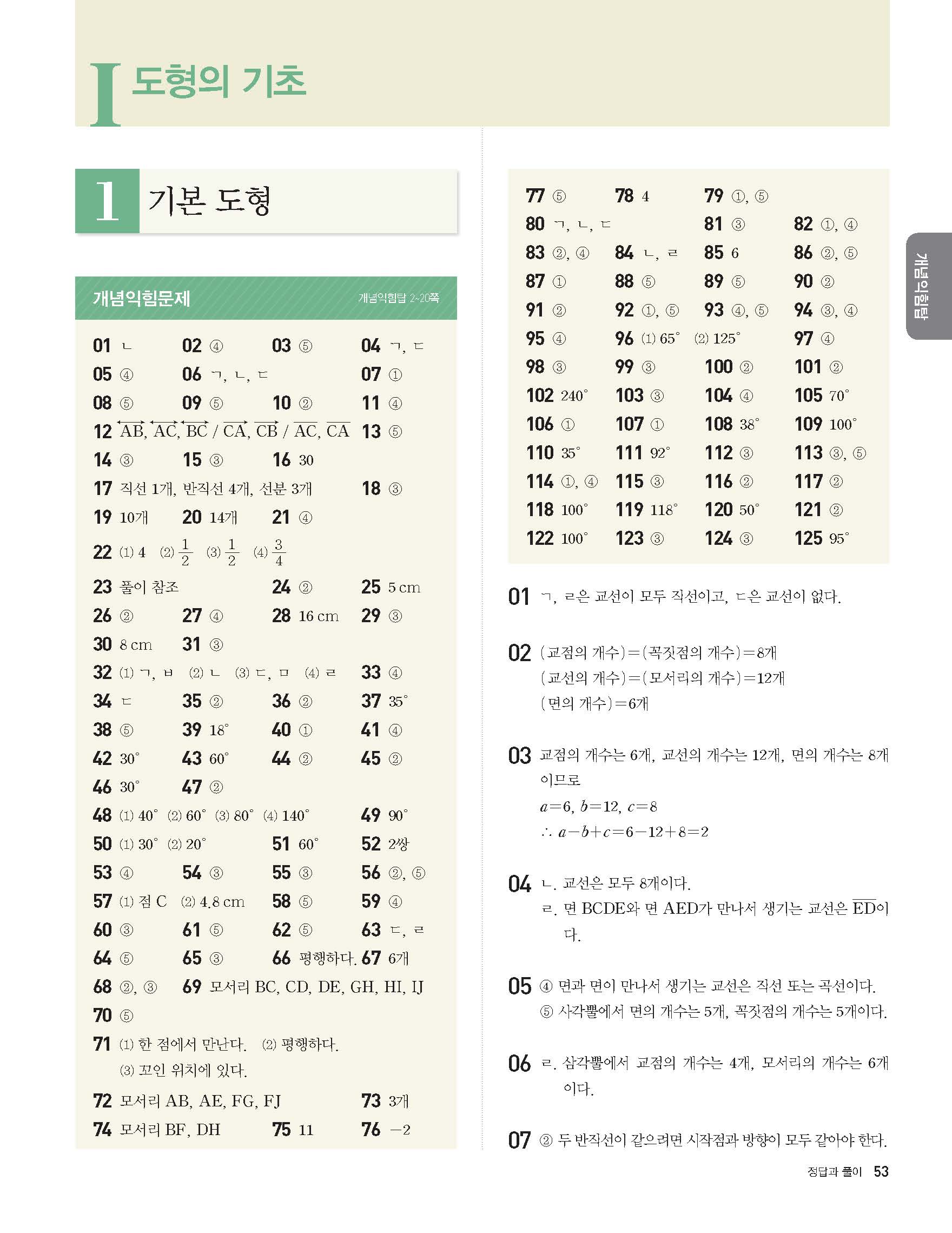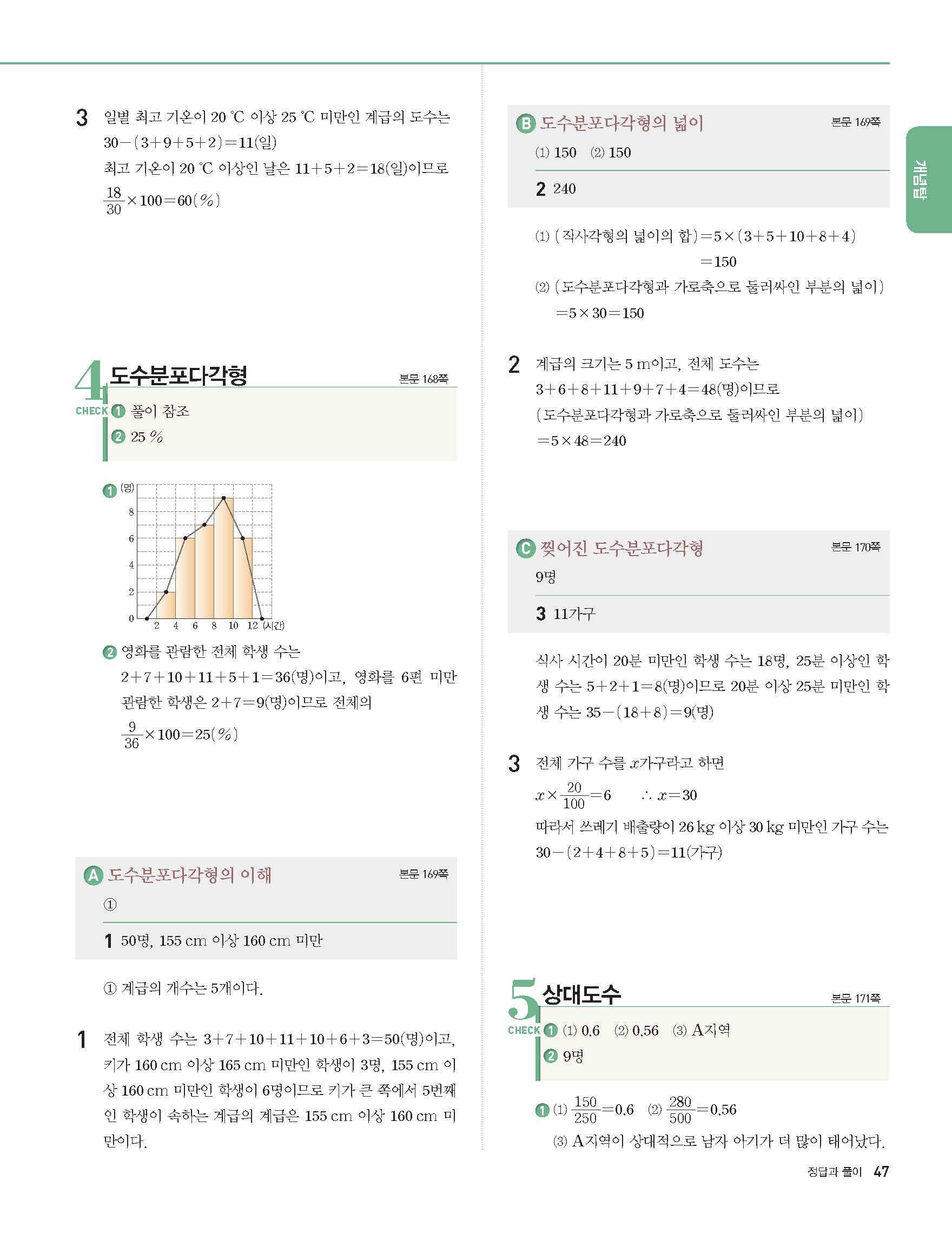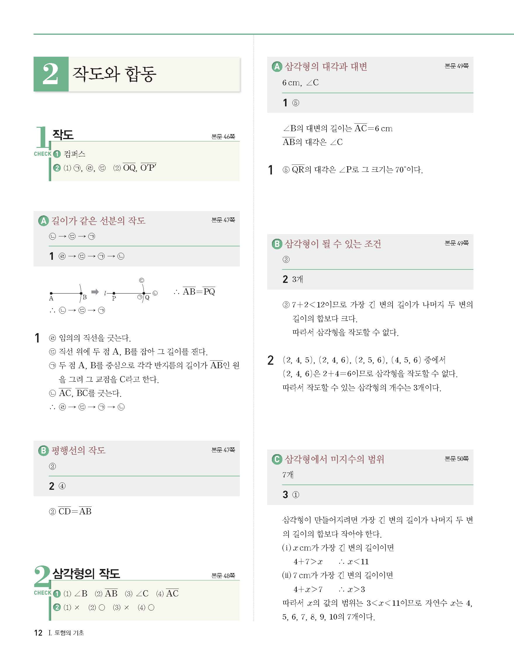 투탑 중등수학 중1하 1-2 답지 해설 사진답지 빠른답지 모바일최적화