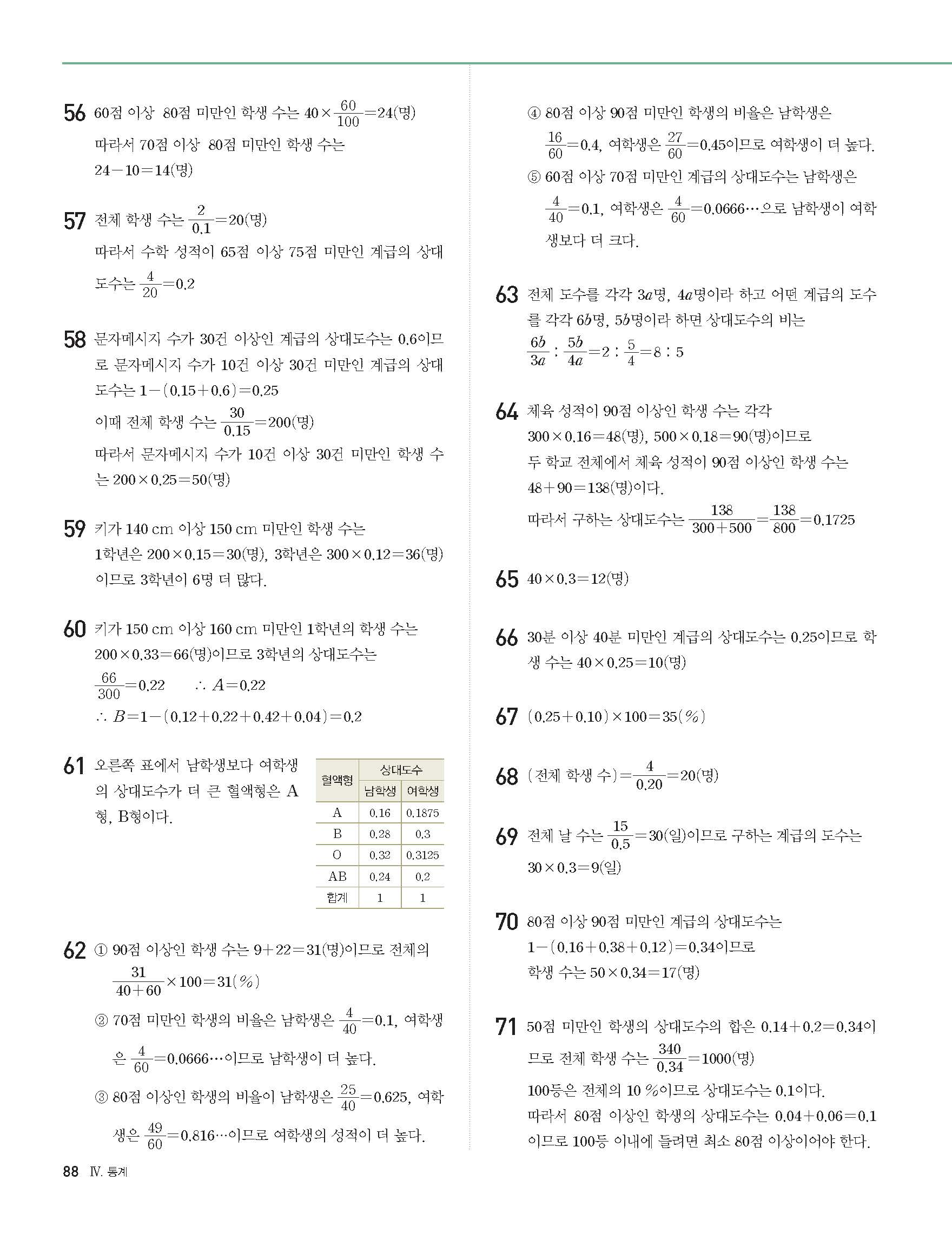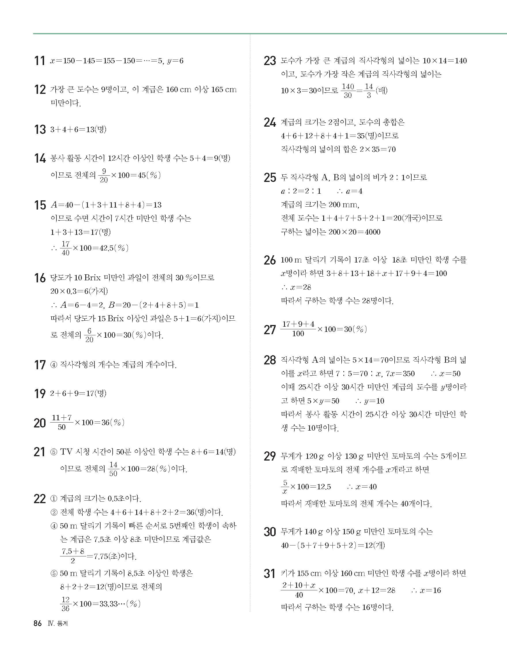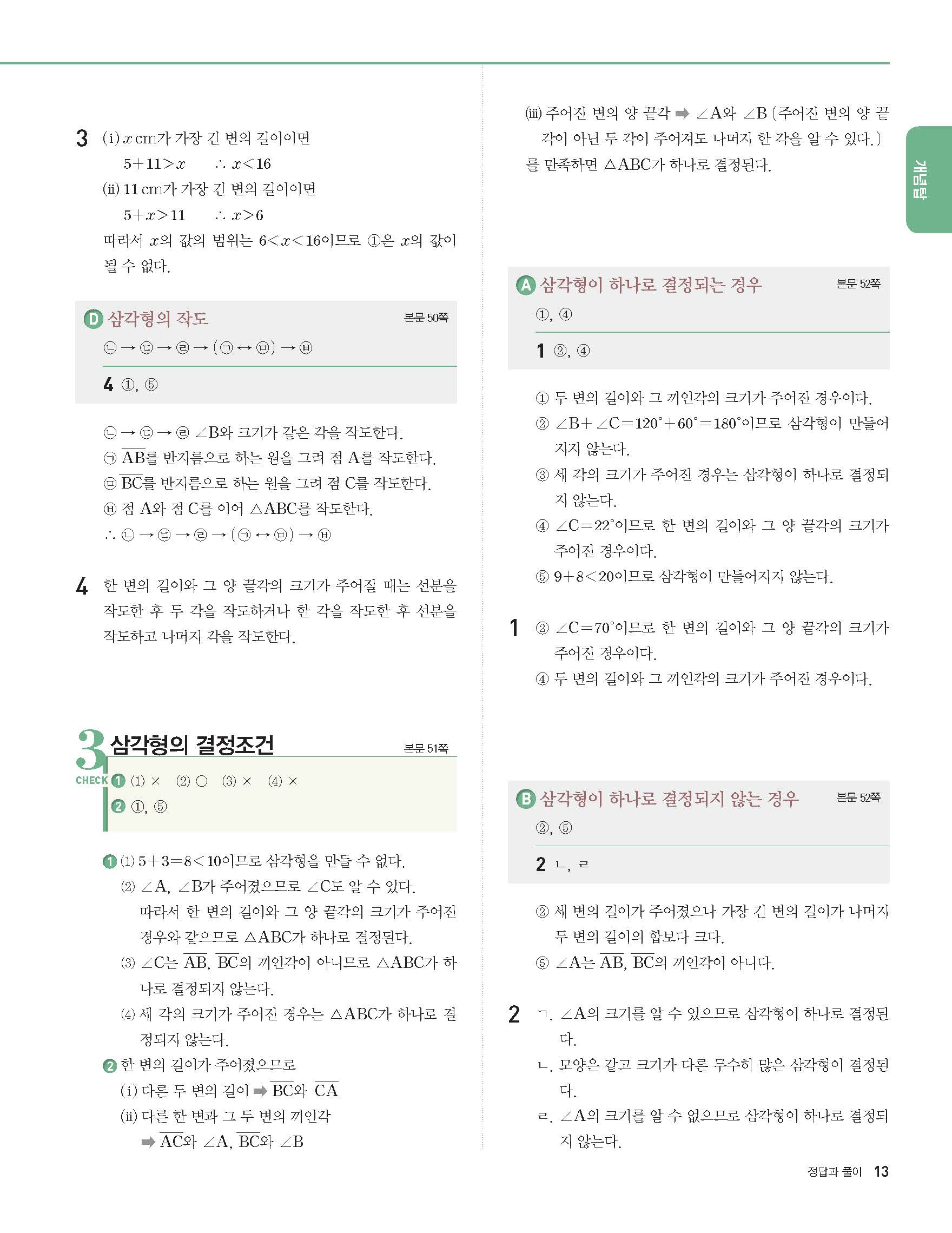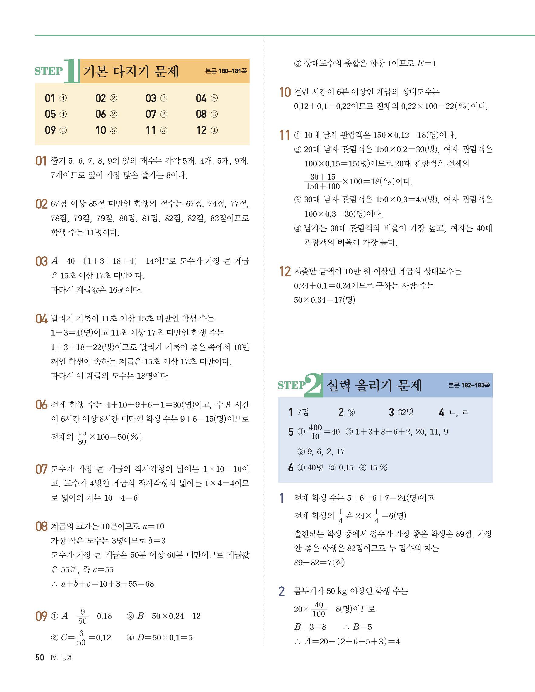 투탑 중등수학 중1하 1-2 답지 해설 사진답지 빠른답지 모바일최적화