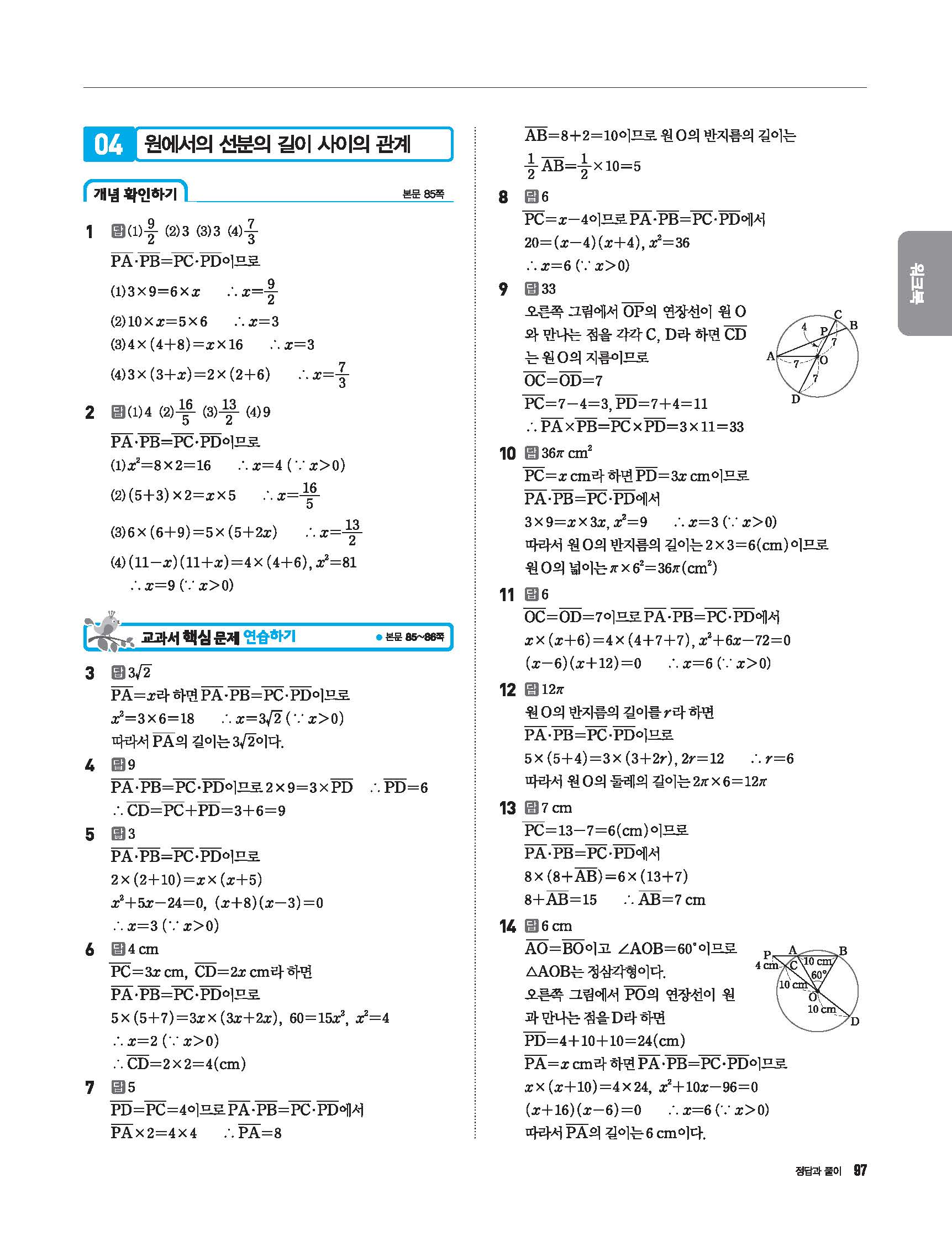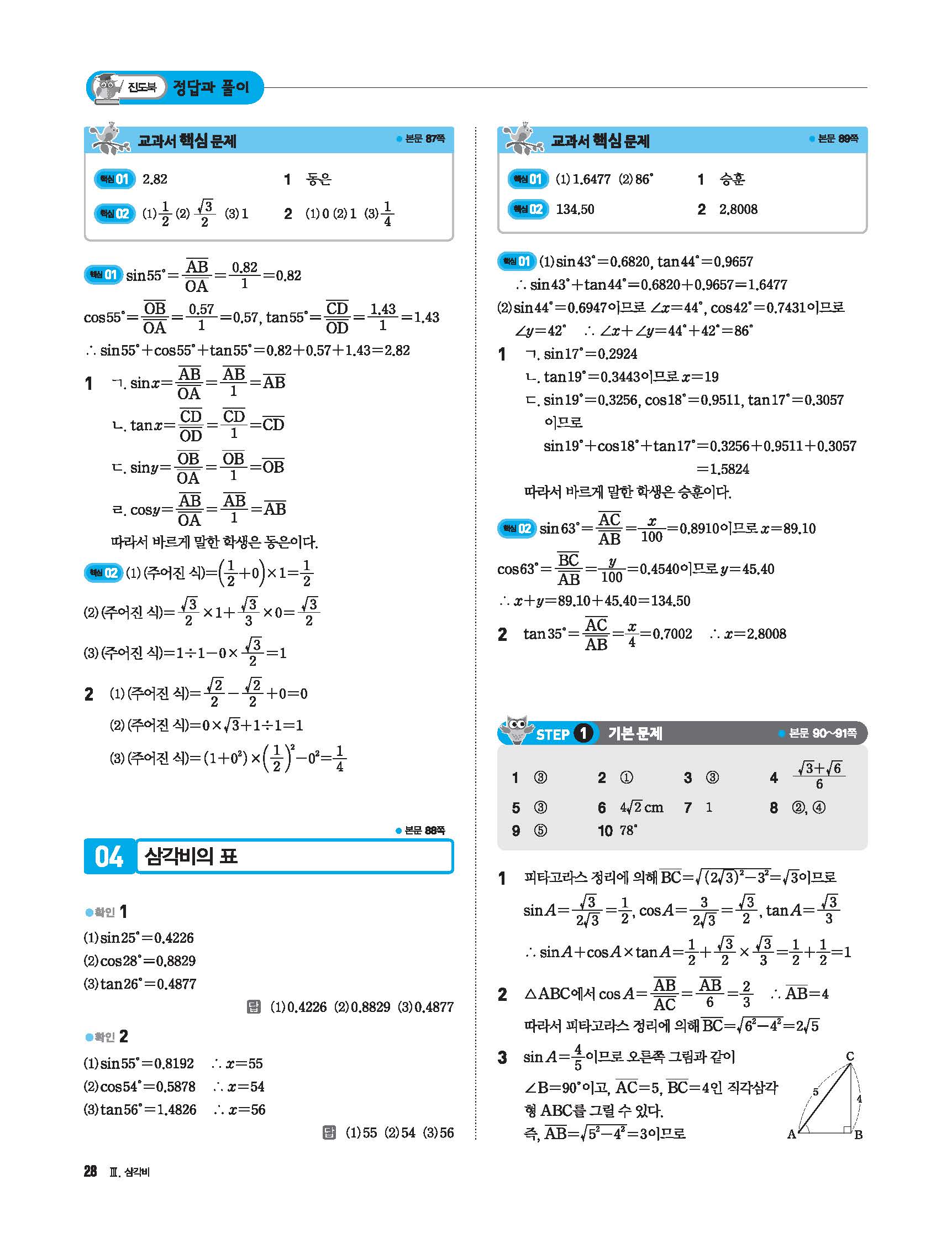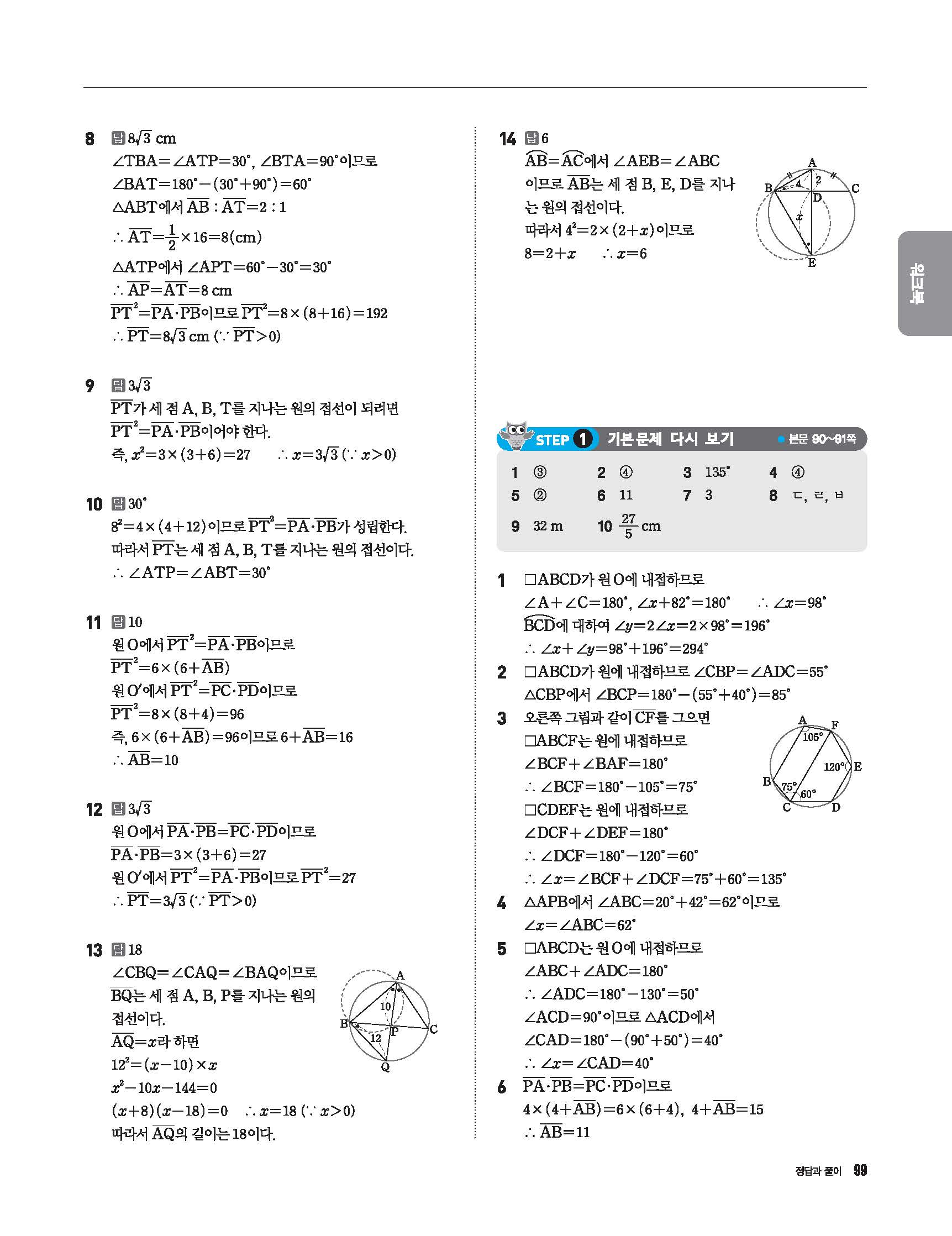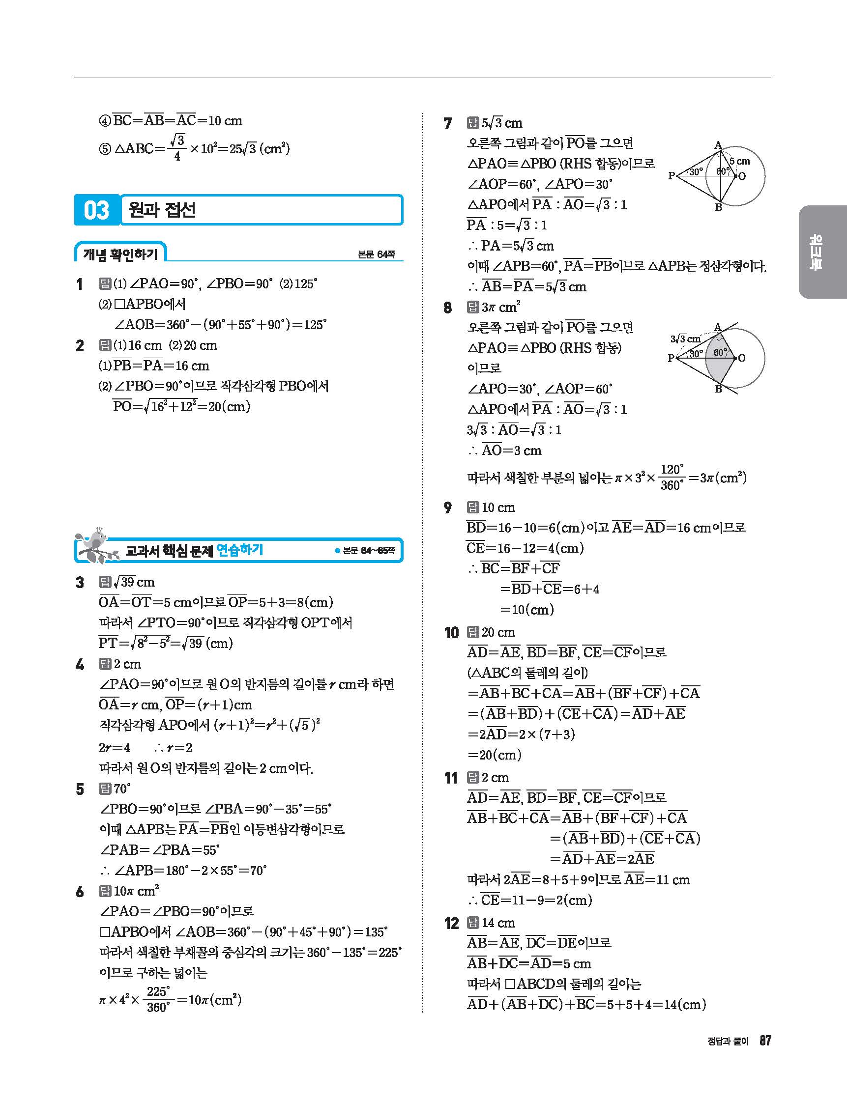 투탑 중등수학 중3하 3-2 답지 해설 사진답지 빠른답지 모바일최적화