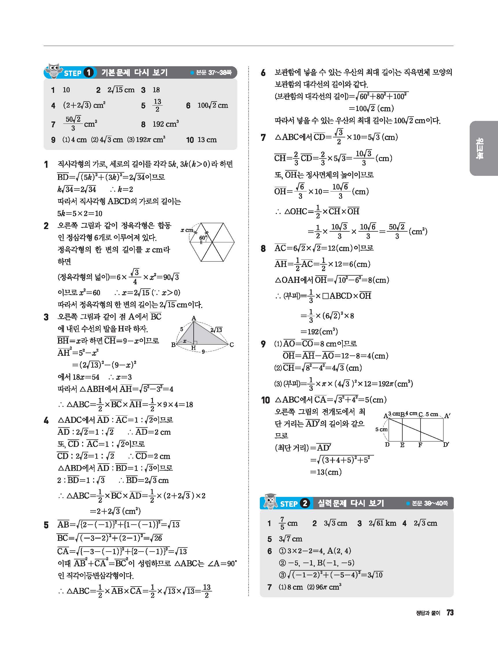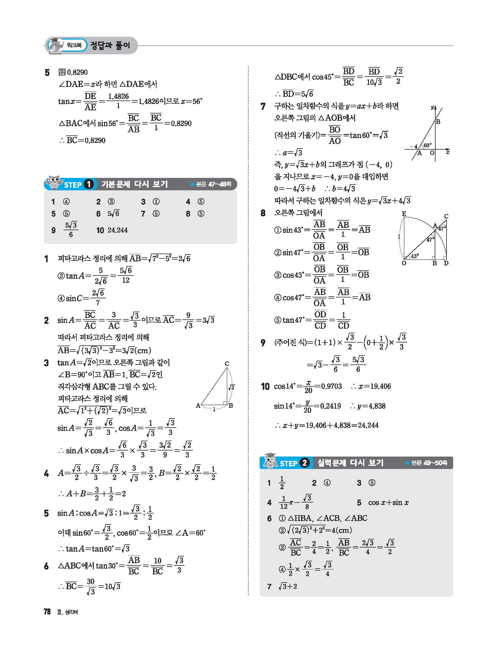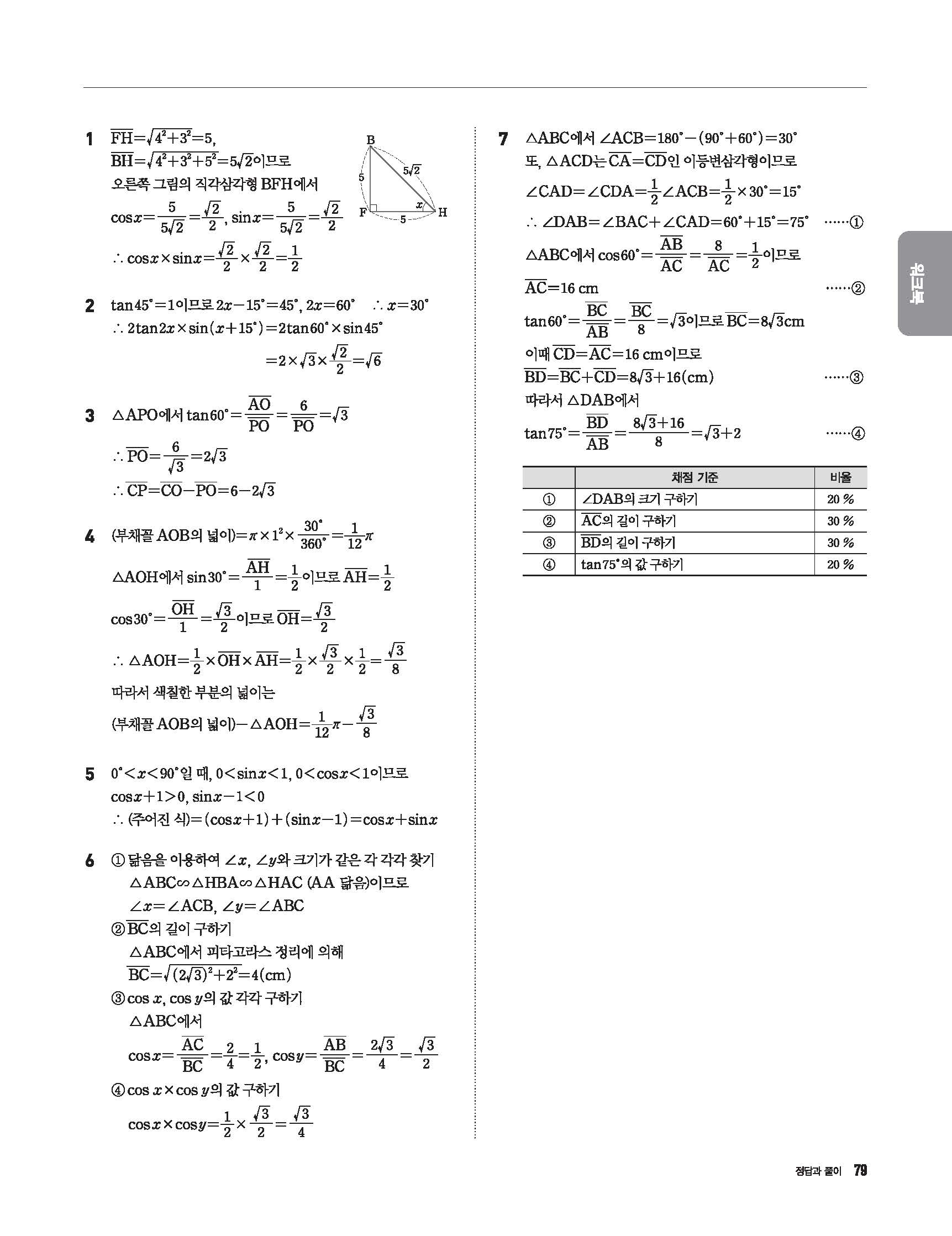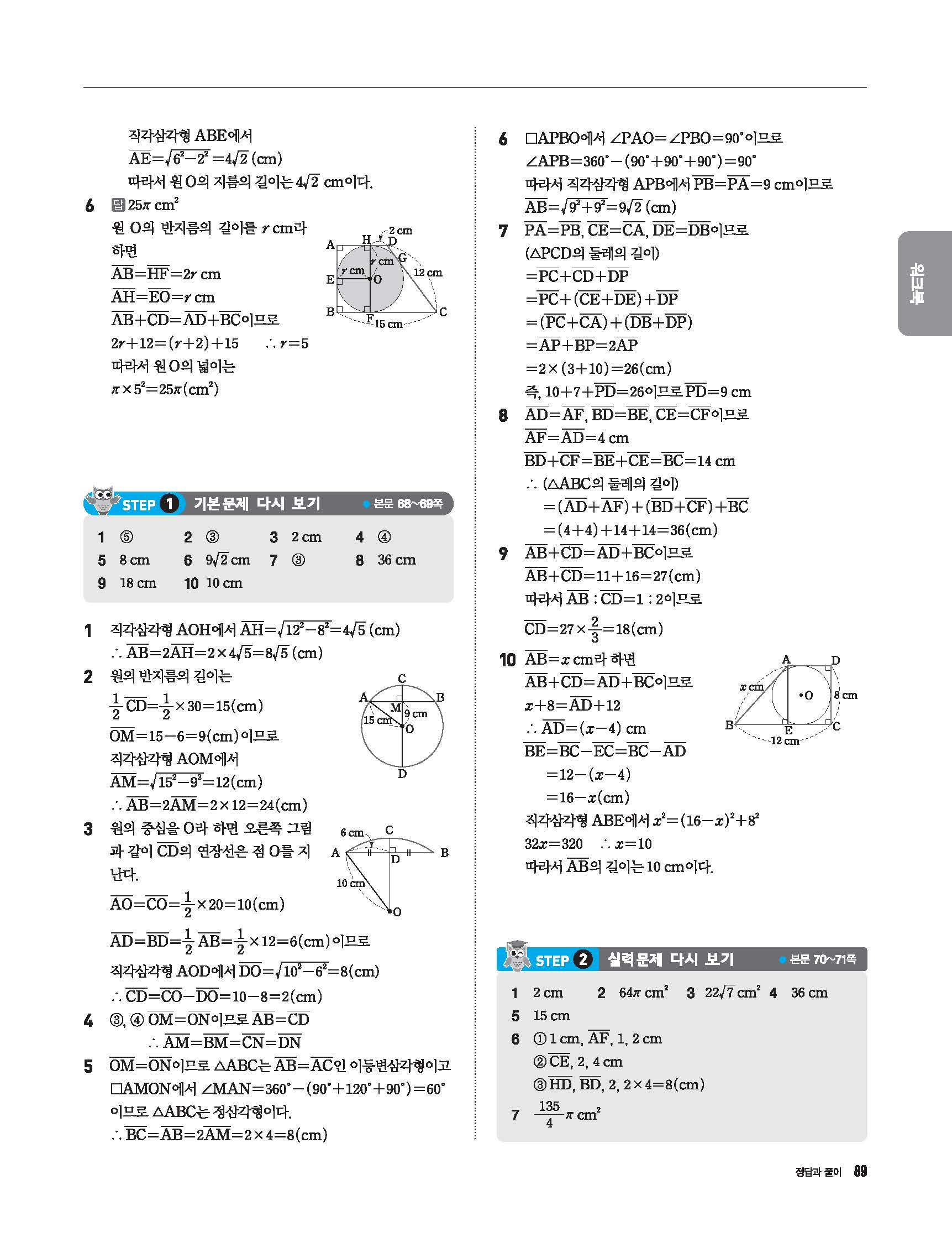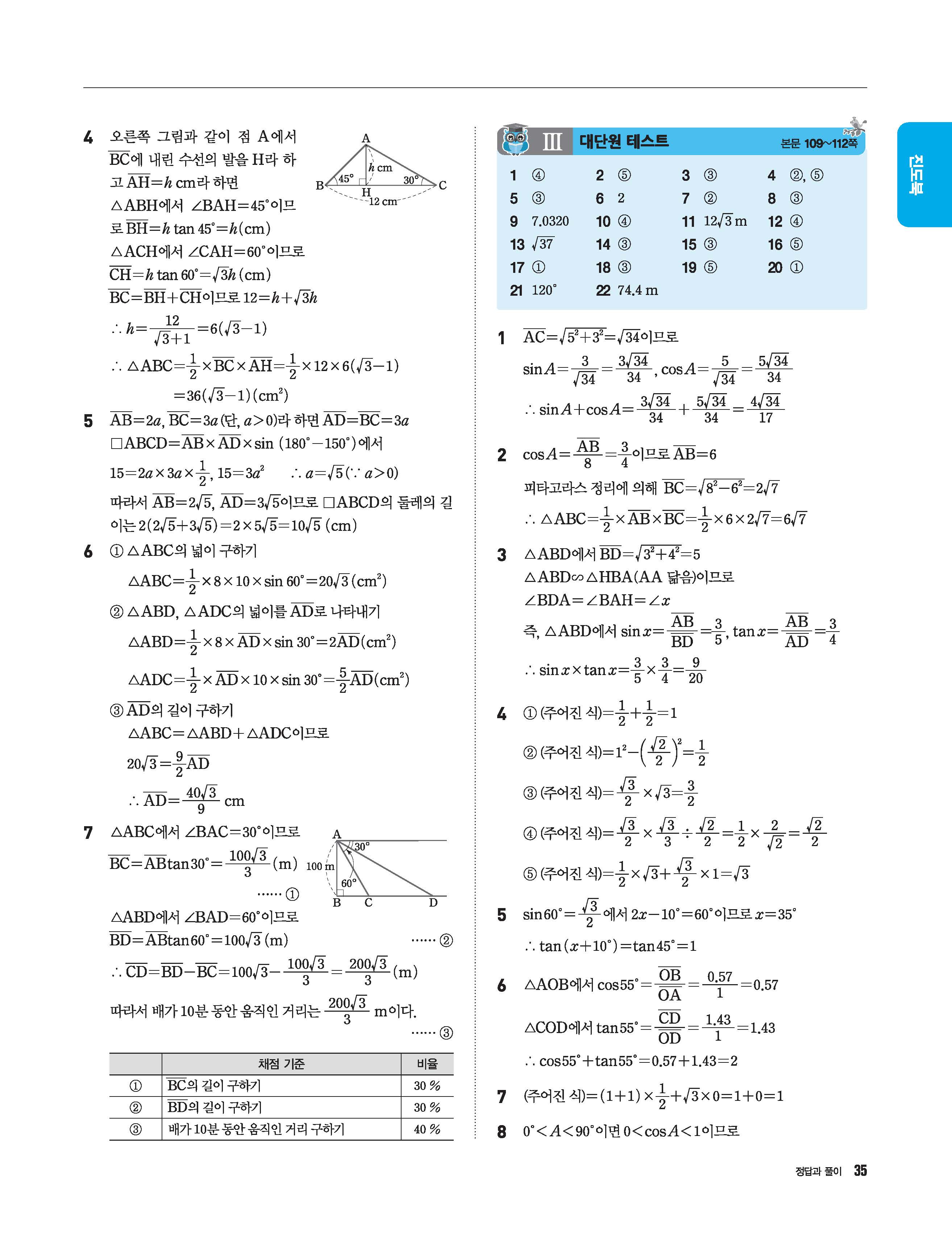 투탑 중등수학 중3하 3-2 답지 해설 사진답지 빠른답지 모바일최적화
