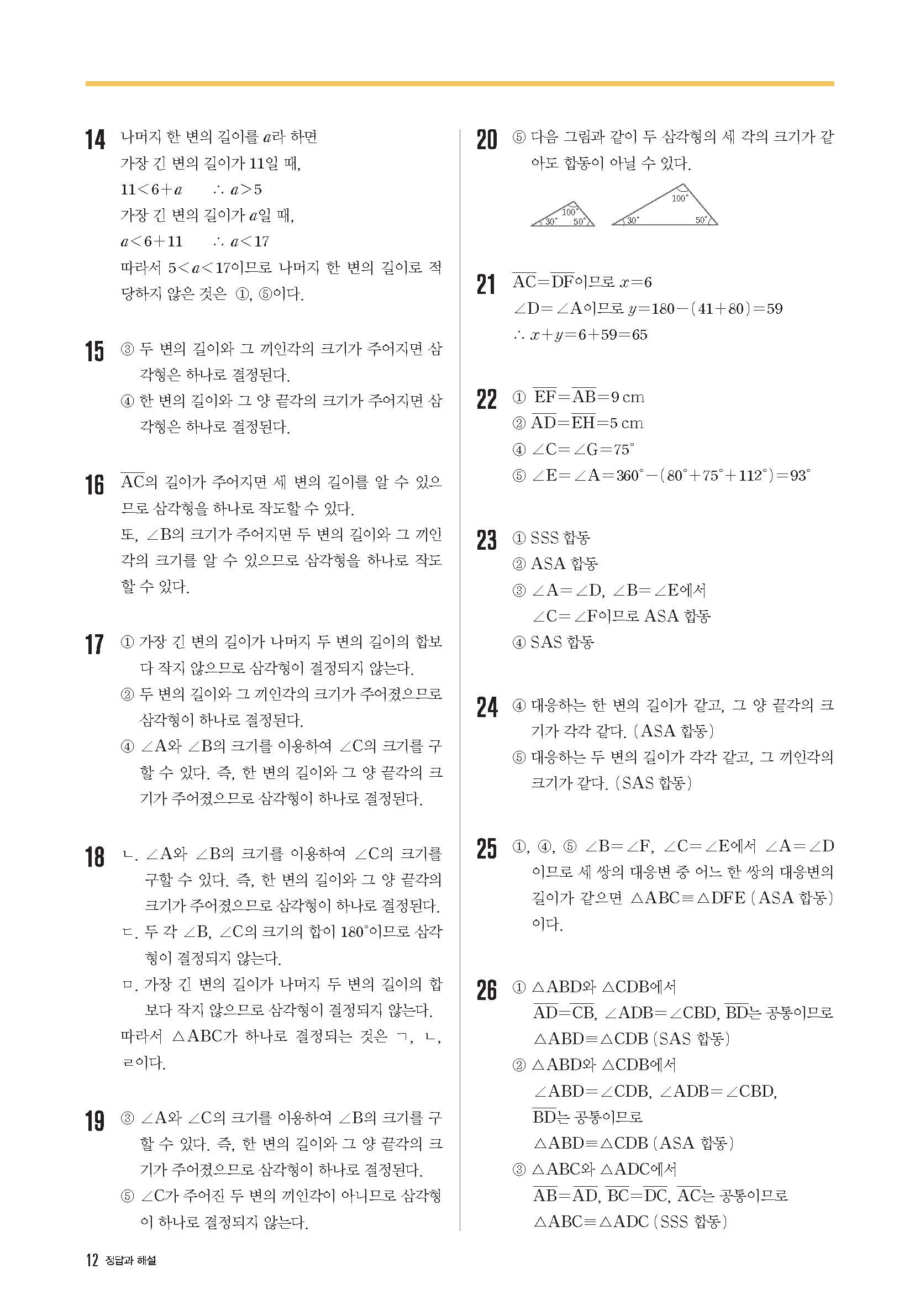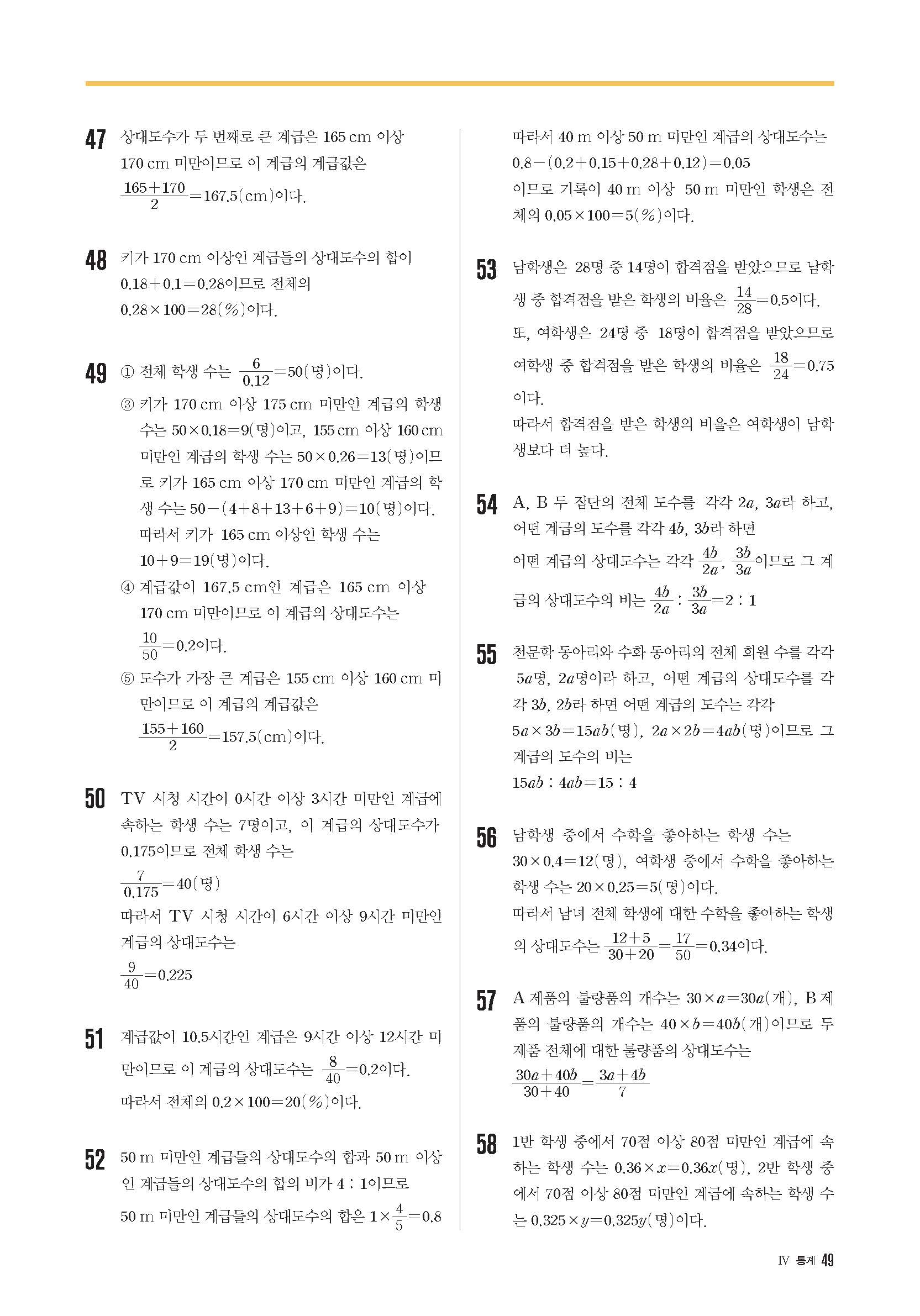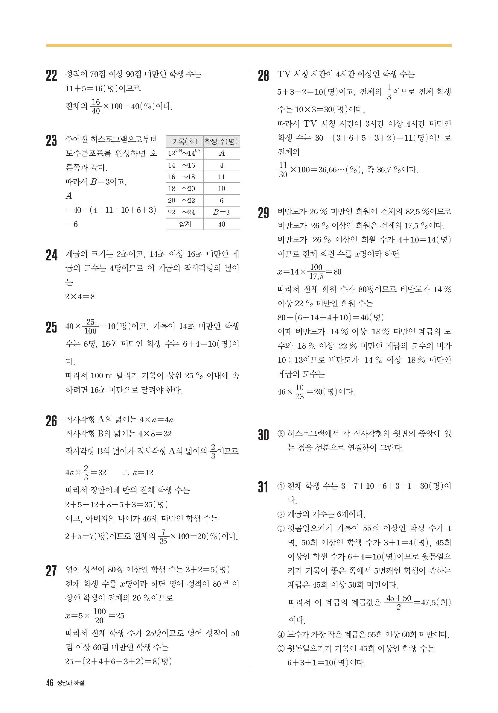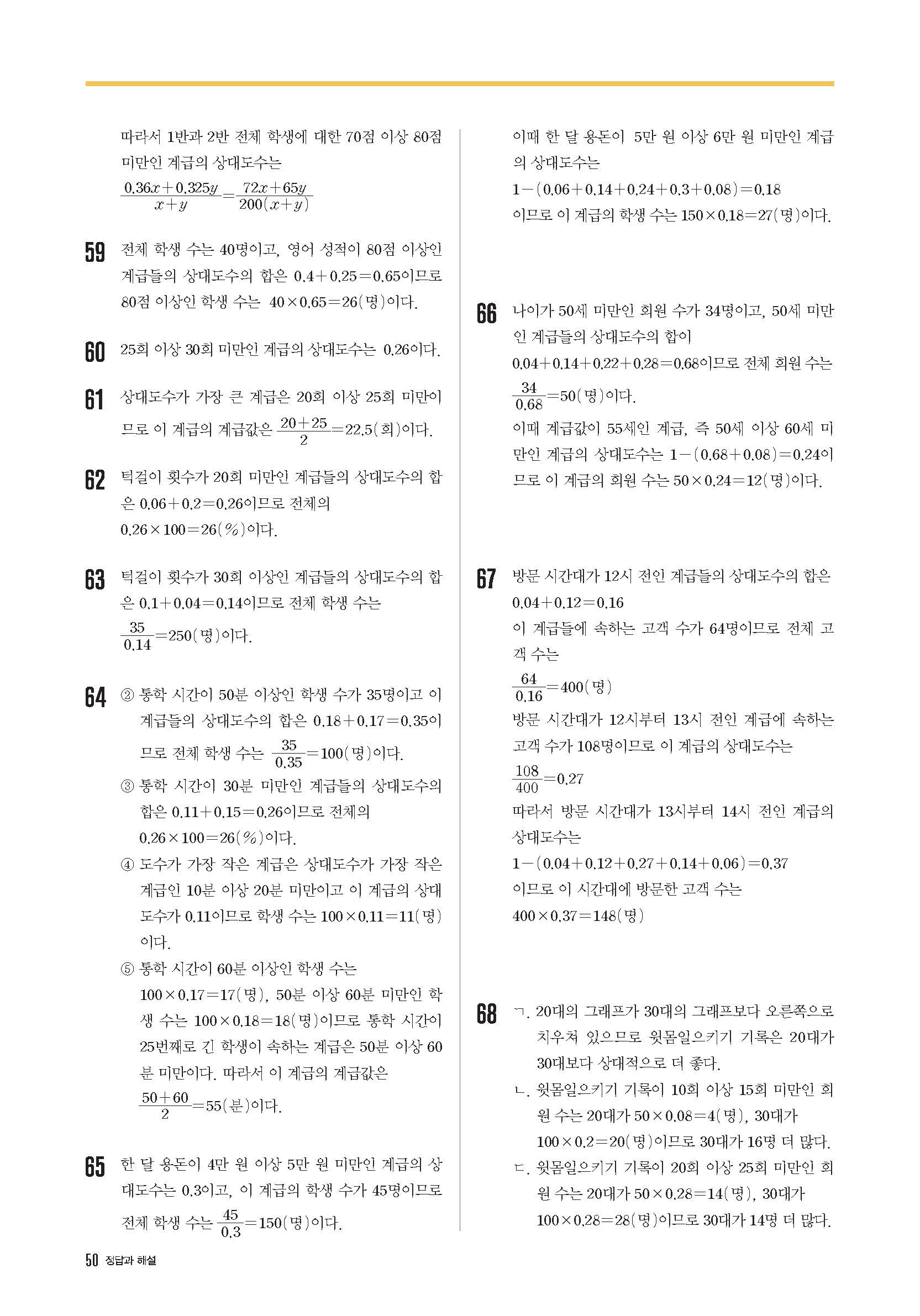 최상위 수학라이트 중1하 답지 해설 사진답지 빠른답지 모바일최적화 디딤돌 1-2