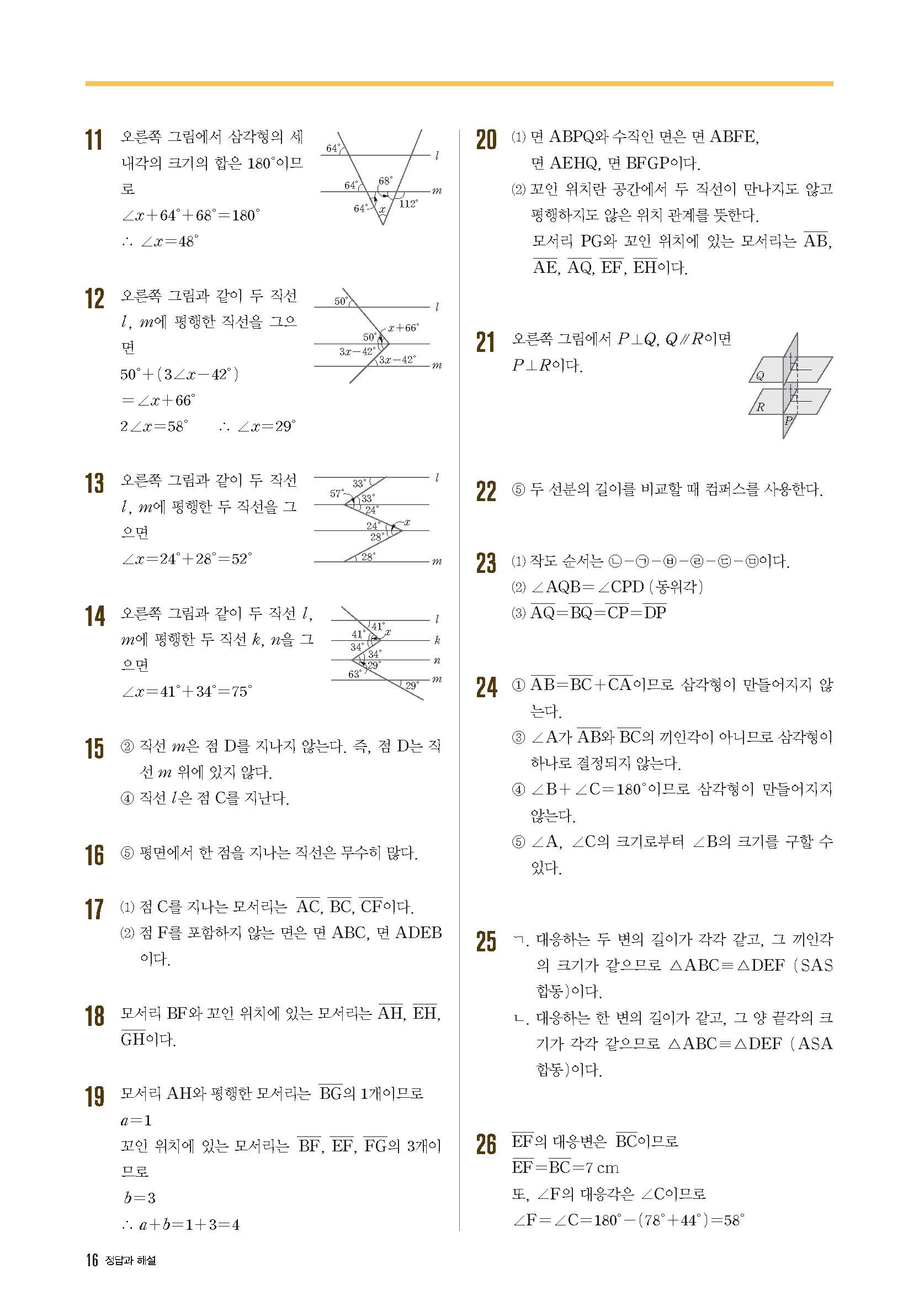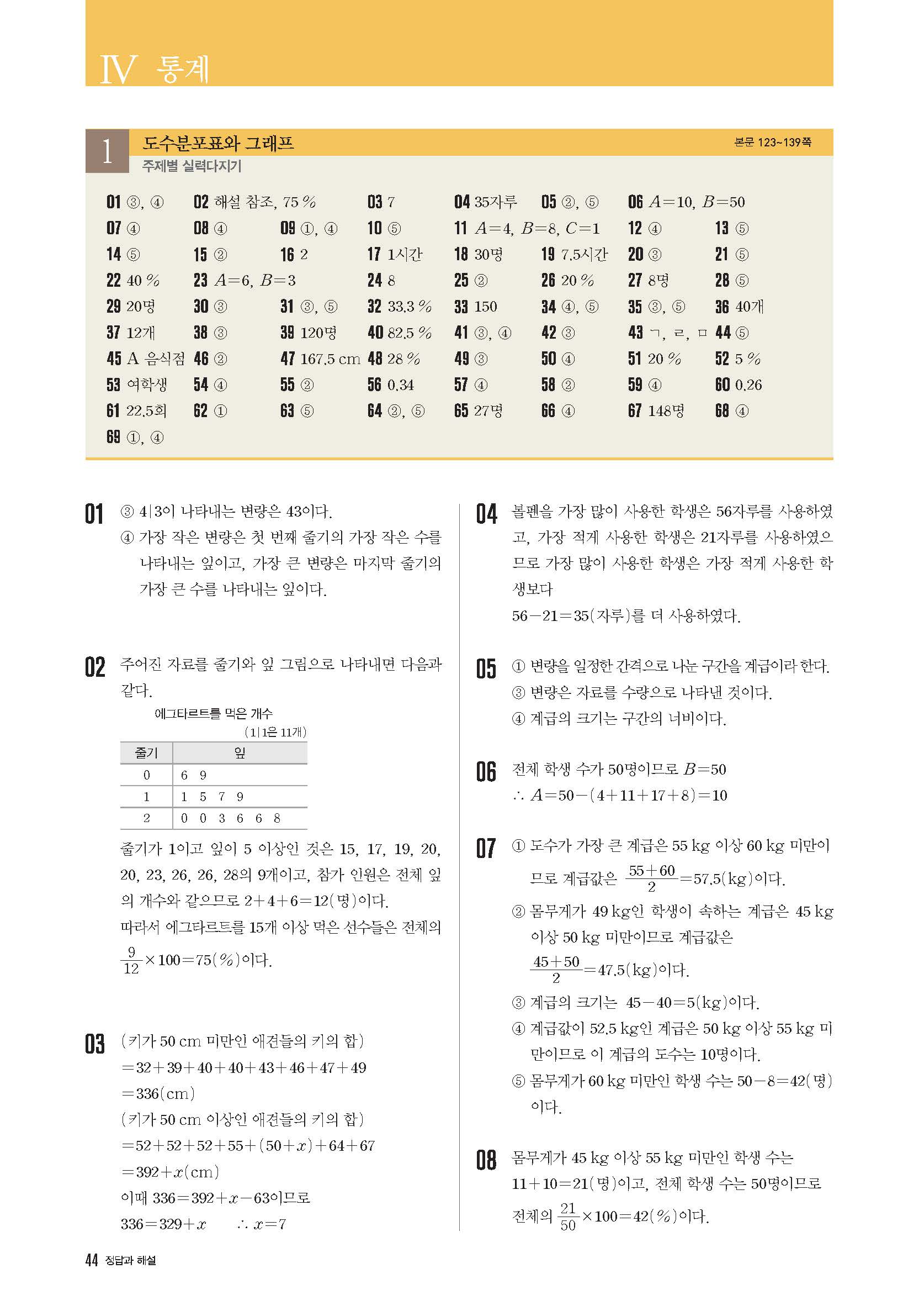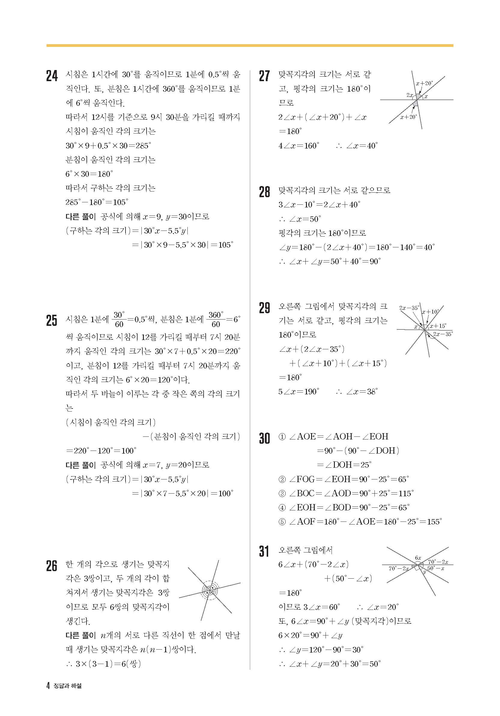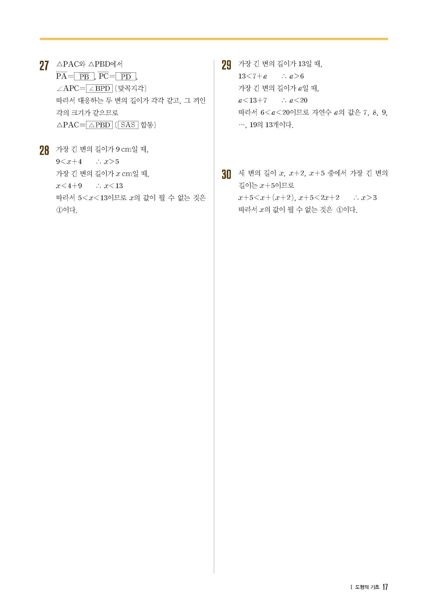 최상위 수학라이트 중1하 답지 해설 사진답지 빠른답지 모바일최적화 디딤돌 1-2