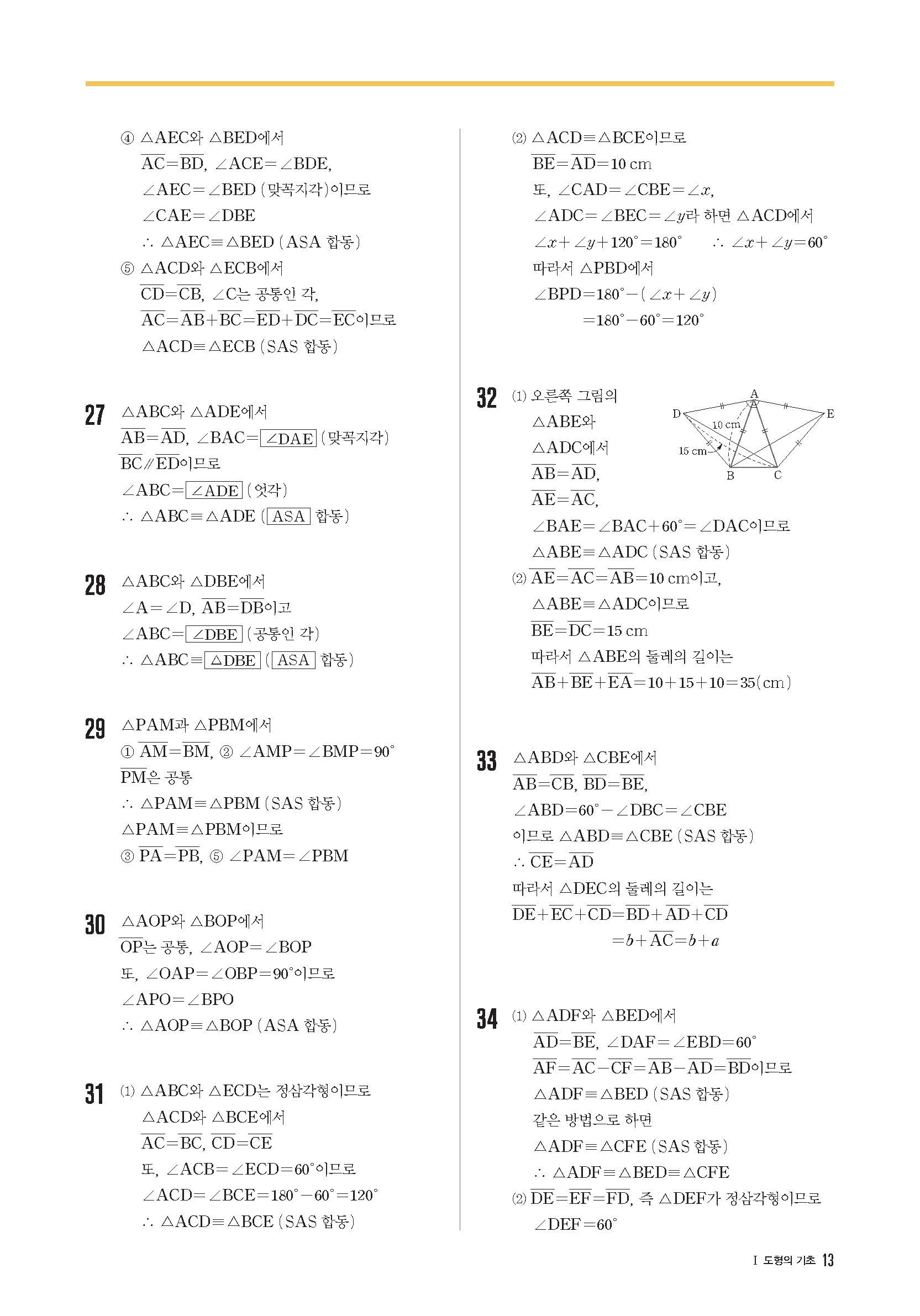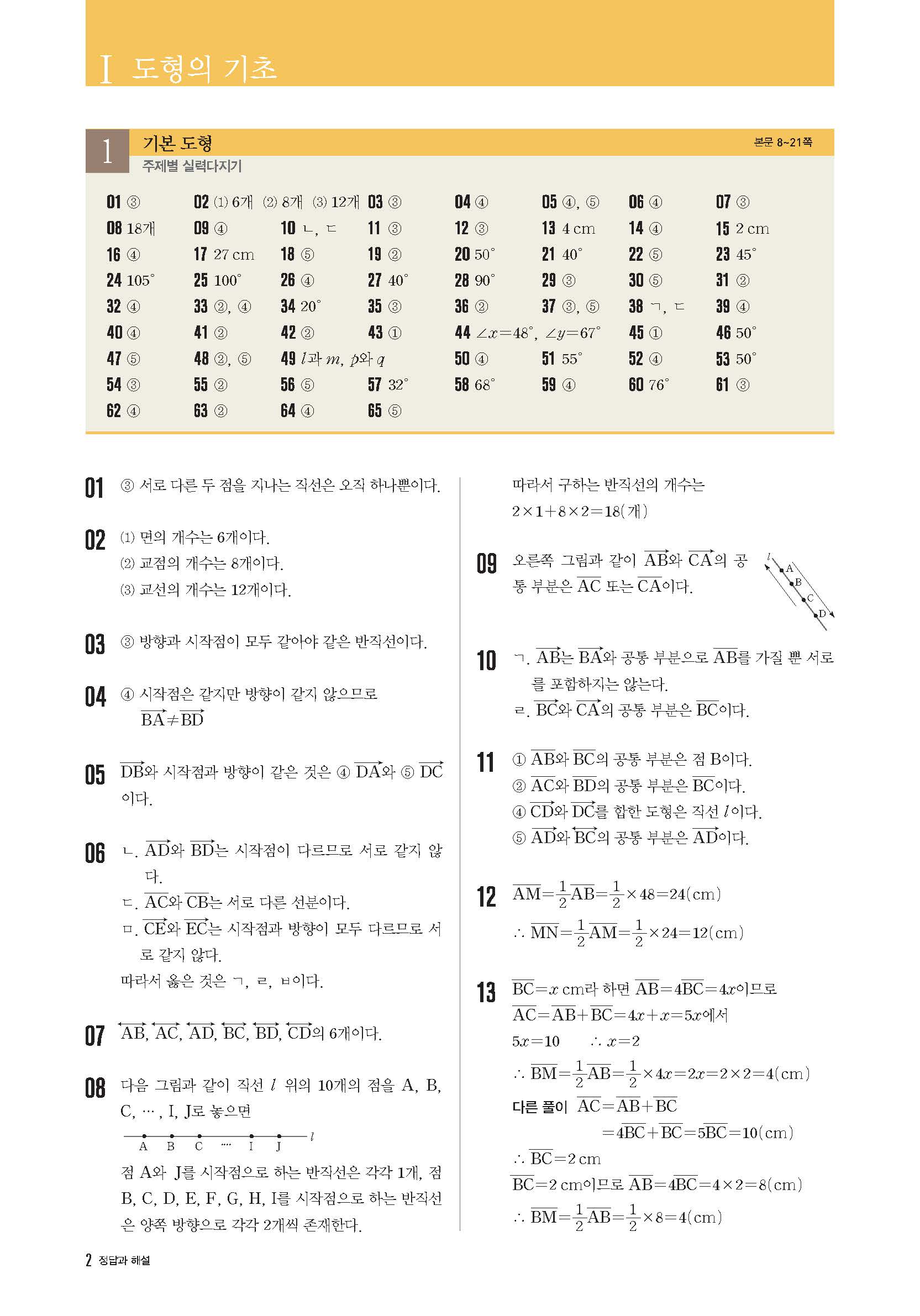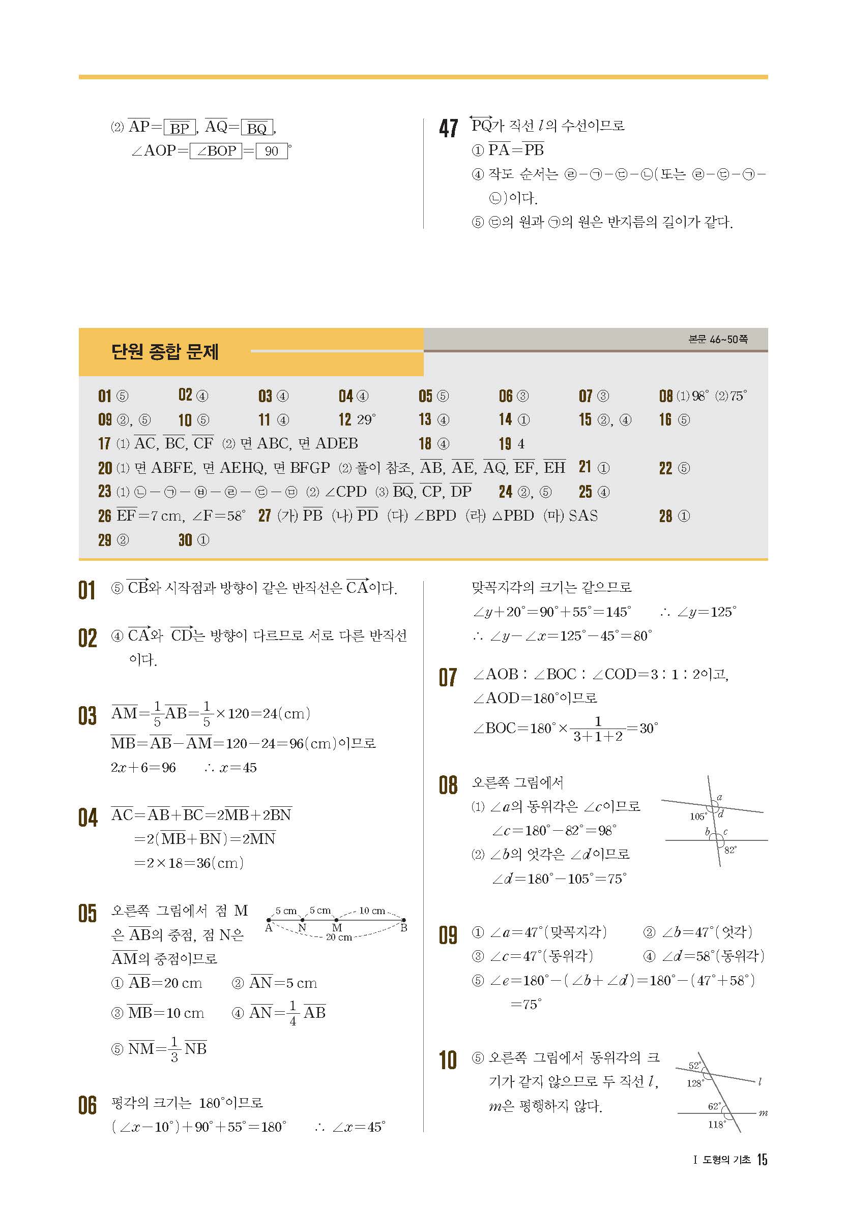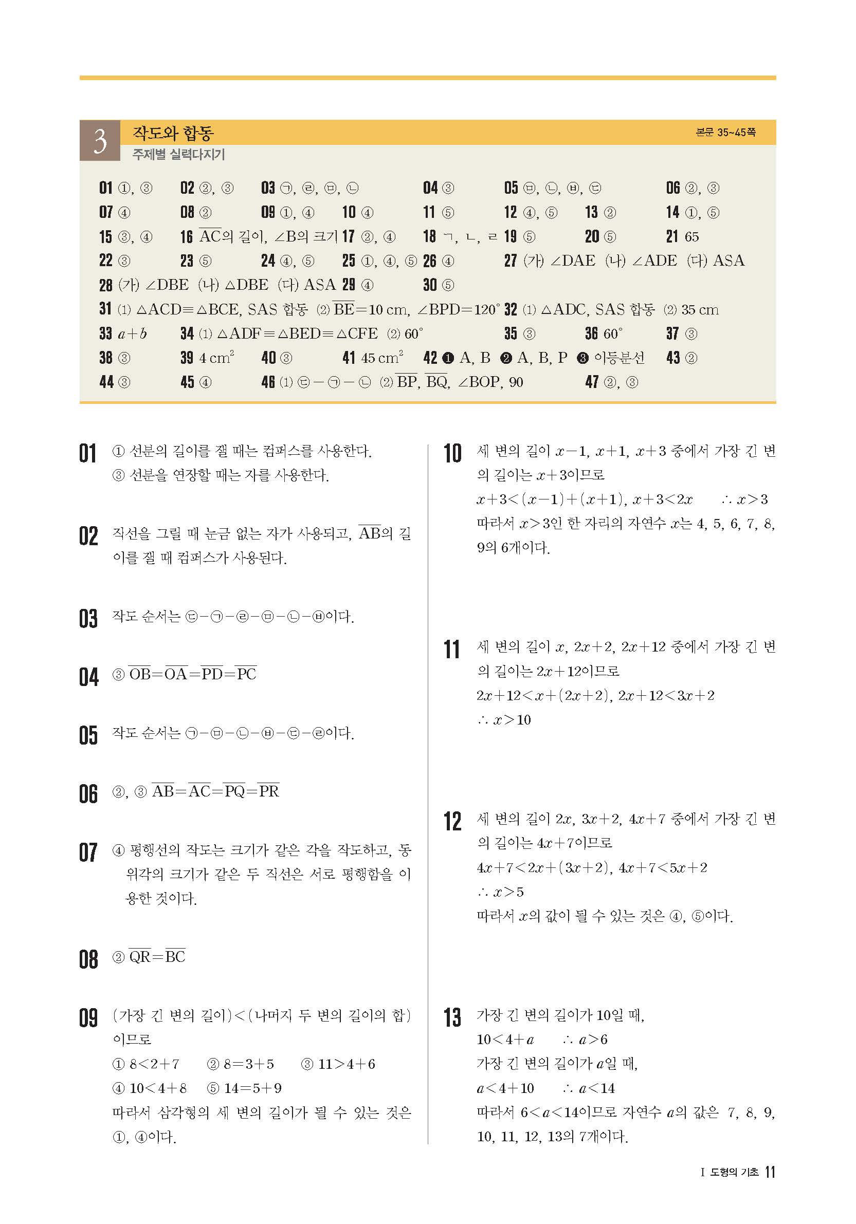 최상위 수학라이트 중1하 답지 해설 사진답지 빠른답지 모바일최적화 디딤돌 1-2