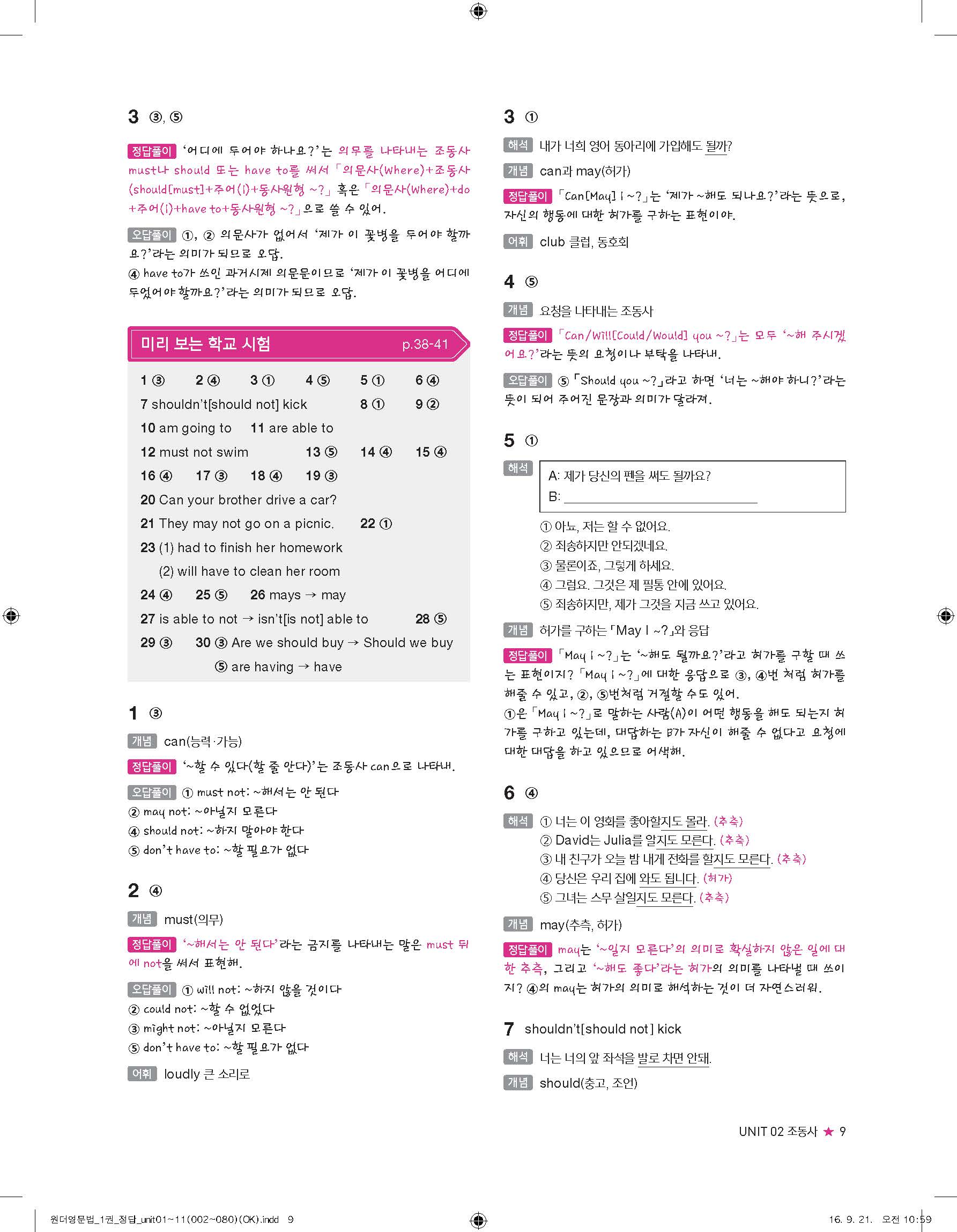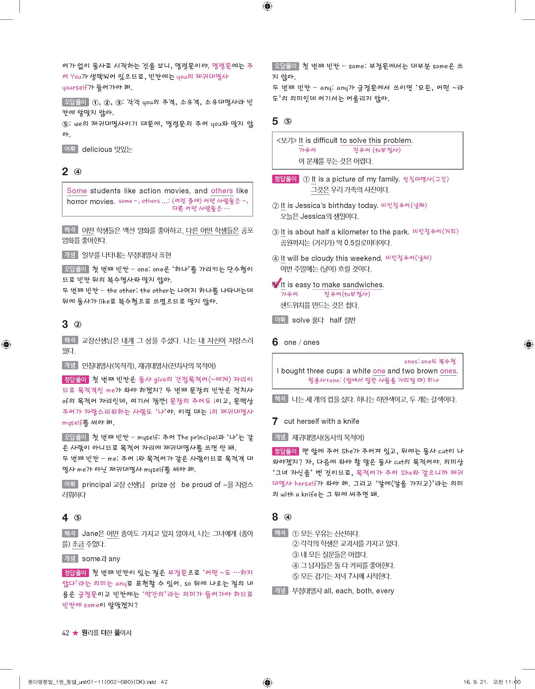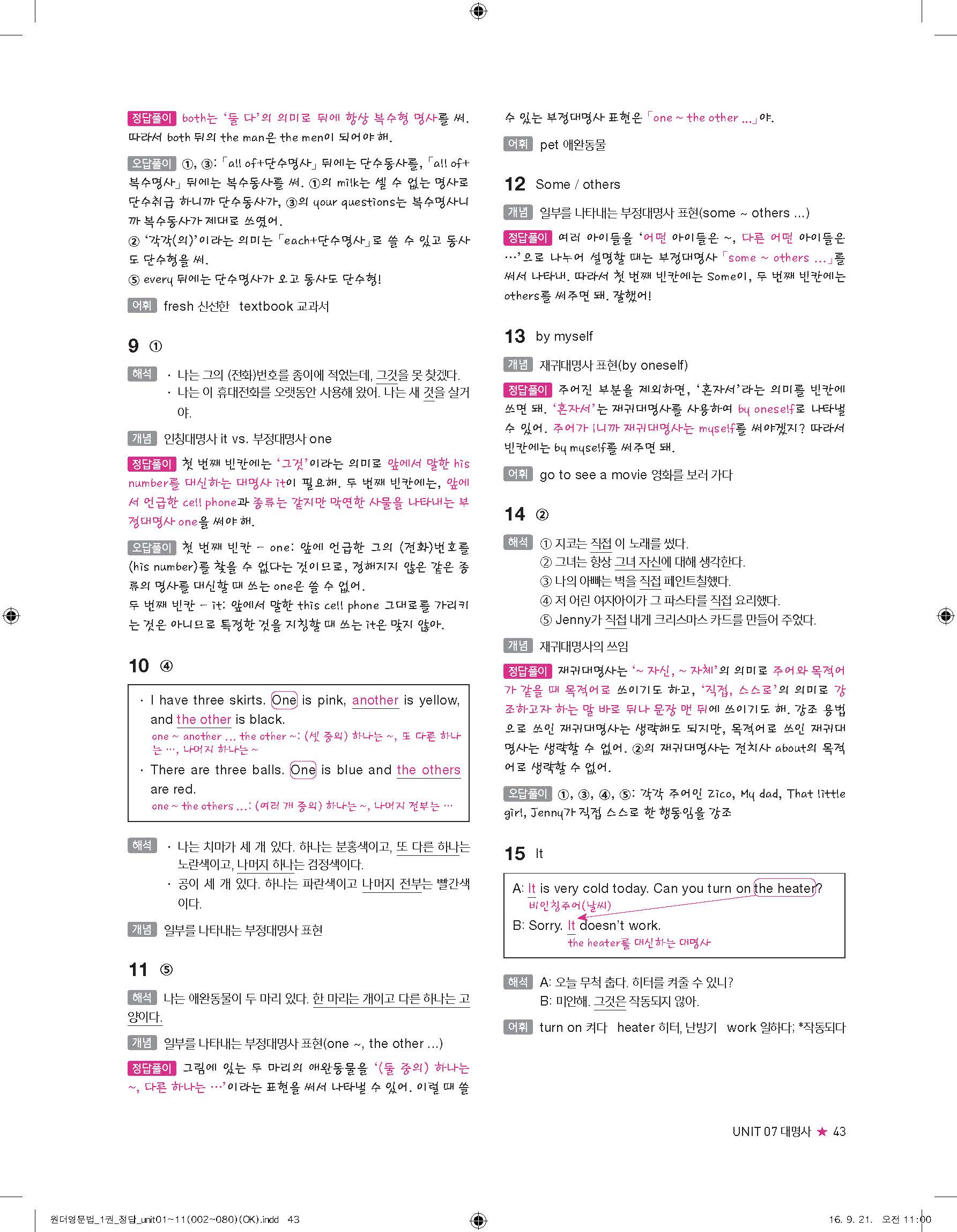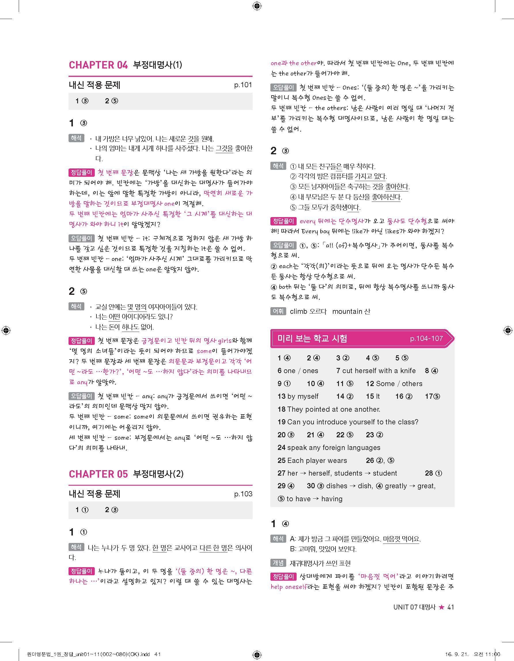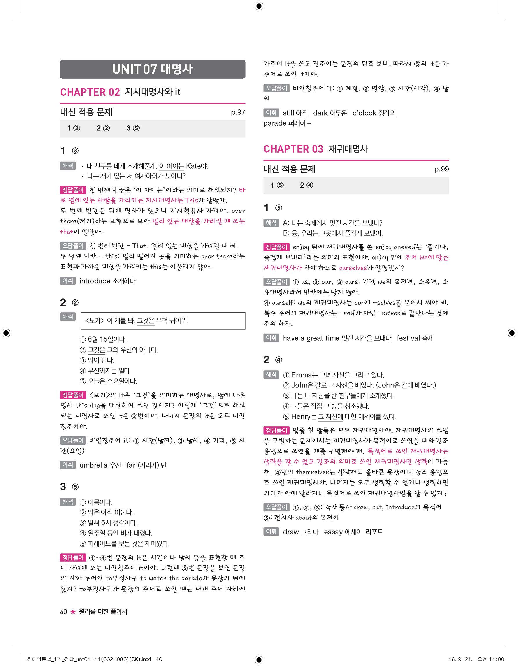 능률 원더영문법1권 답지 사진답지 빠른답지 모바일최적화
