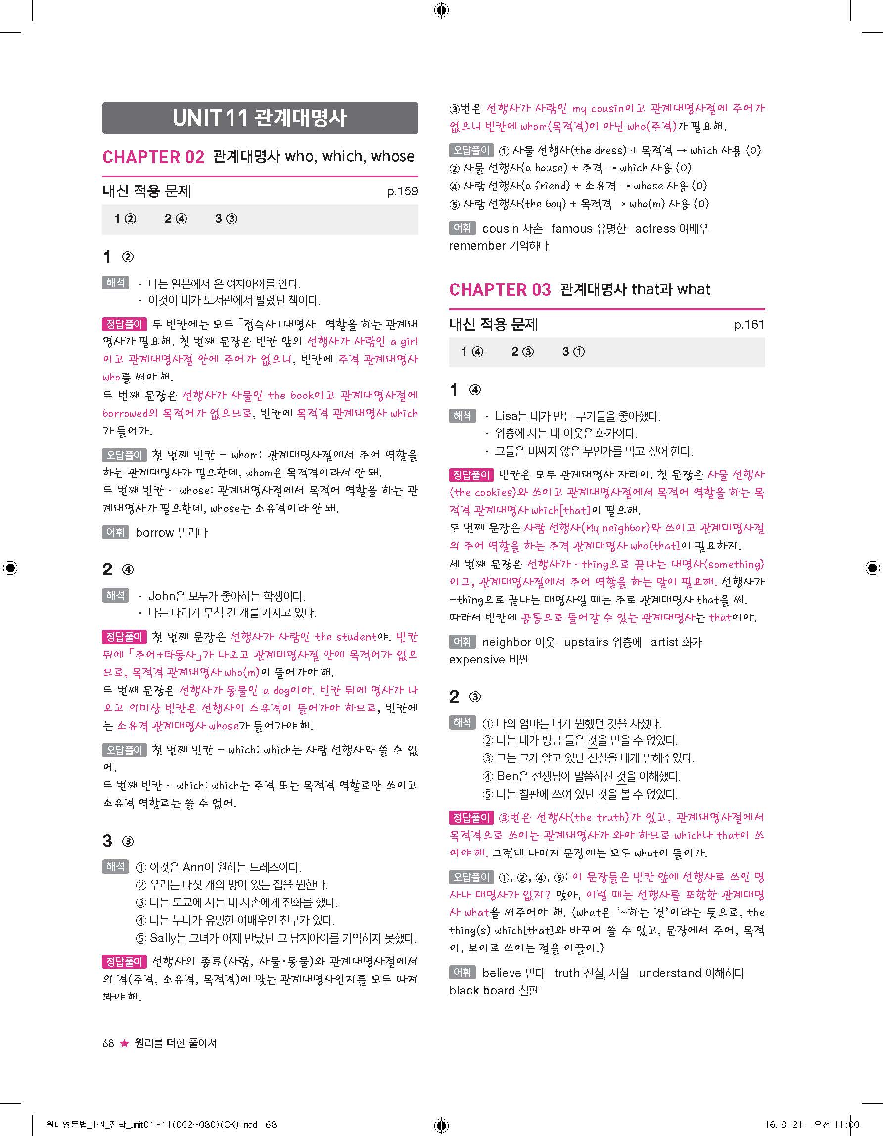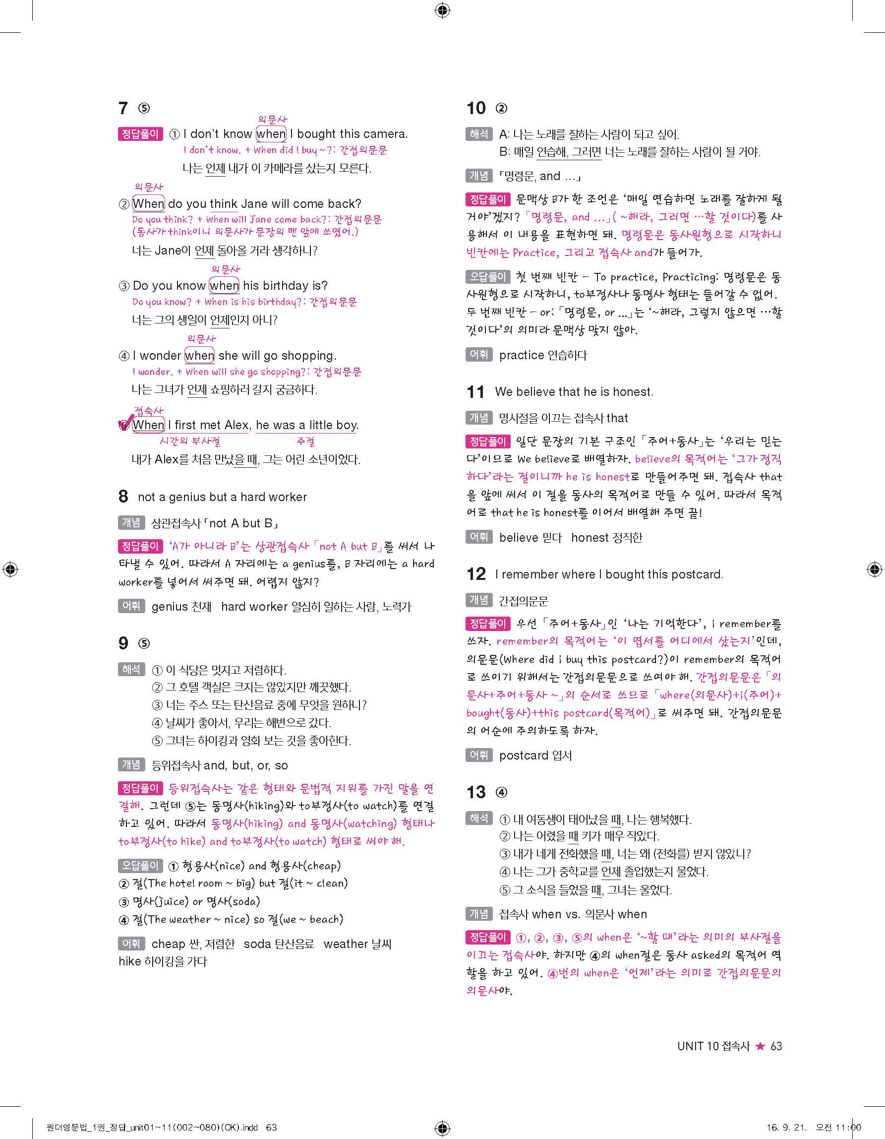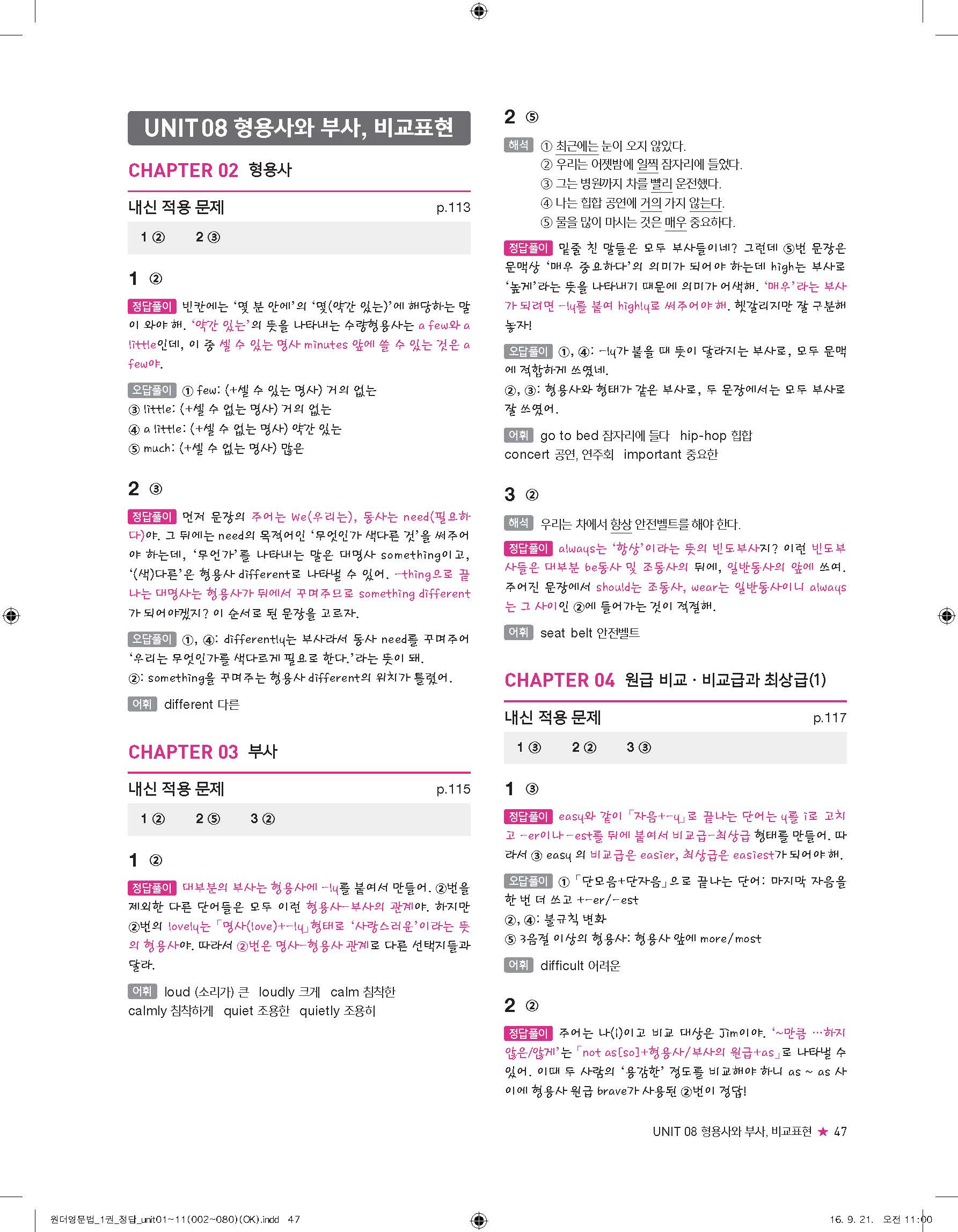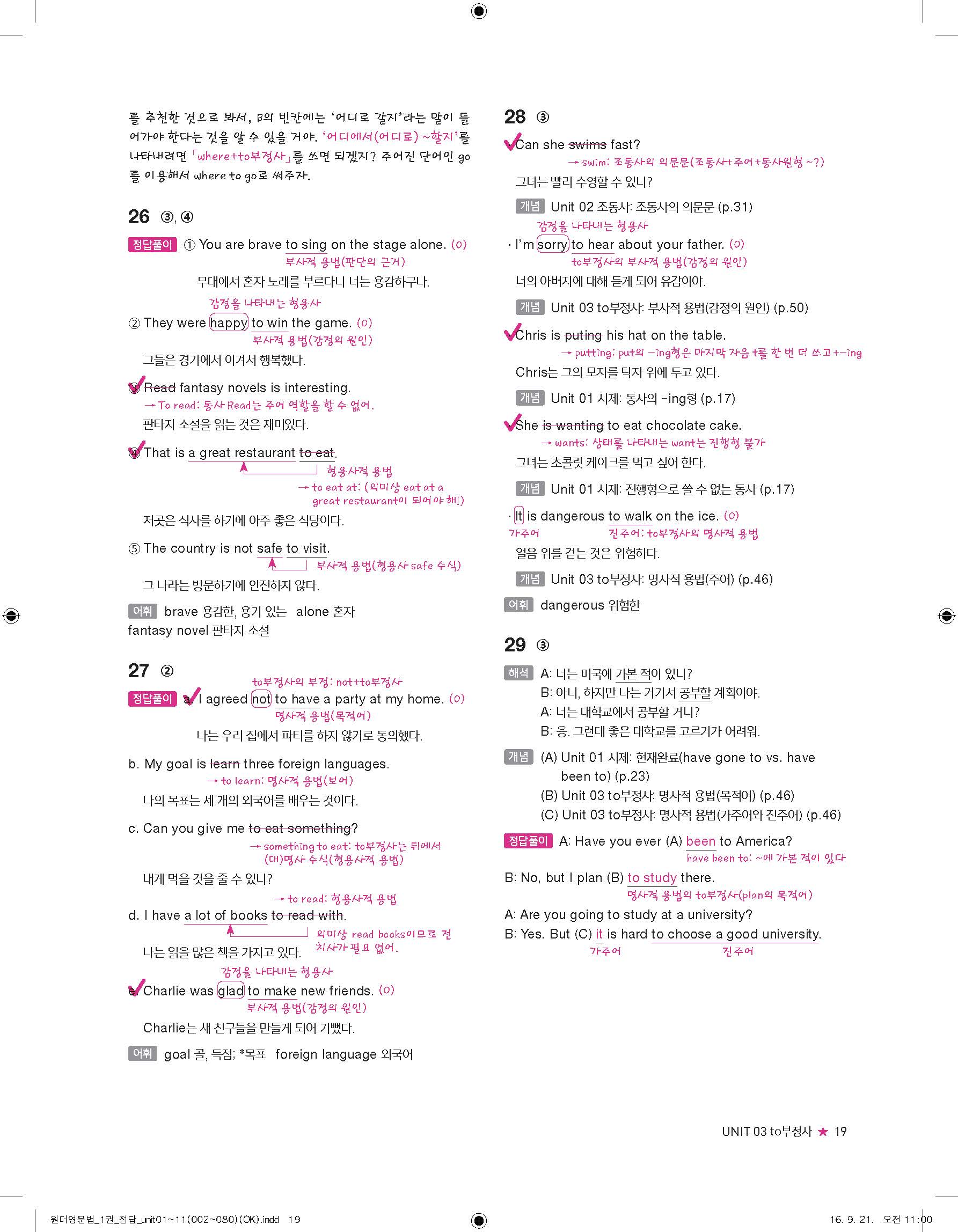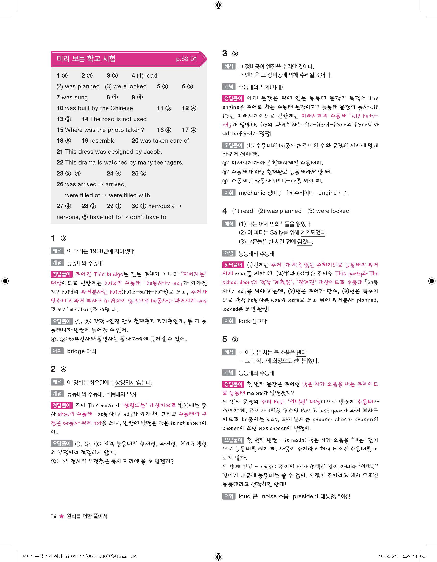 능률 원더영문법1권 답지 사진답지 빠른답지 모바일최적화