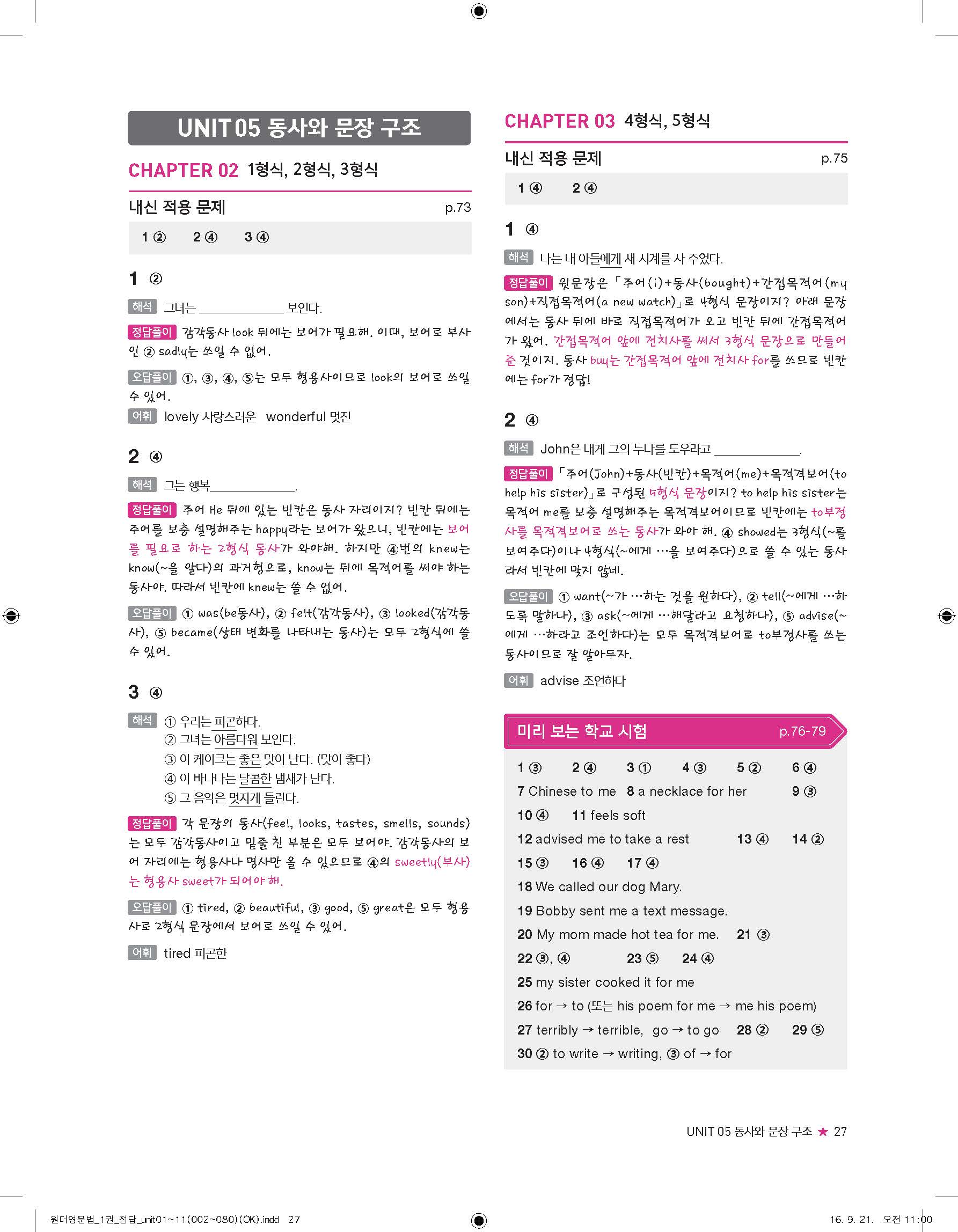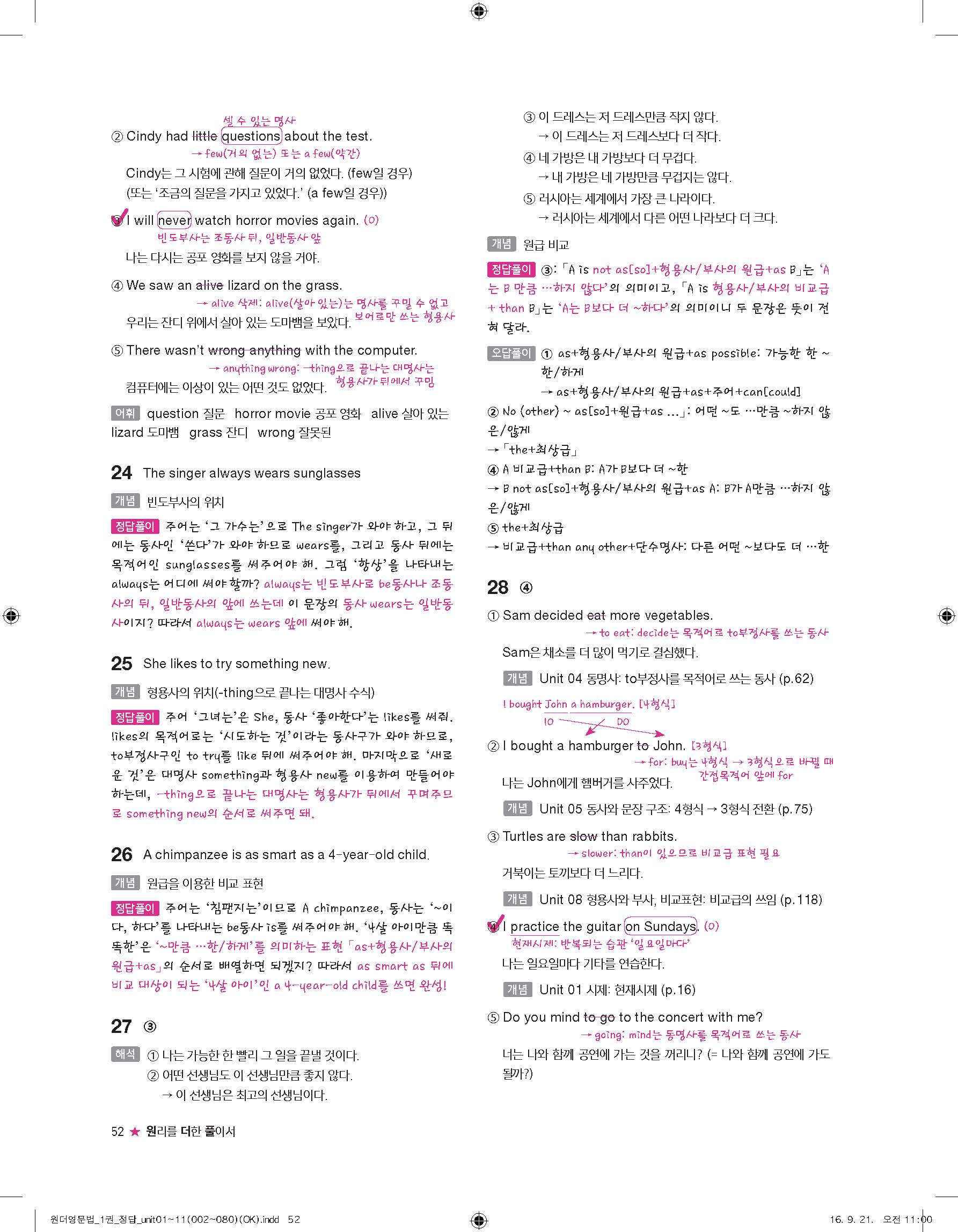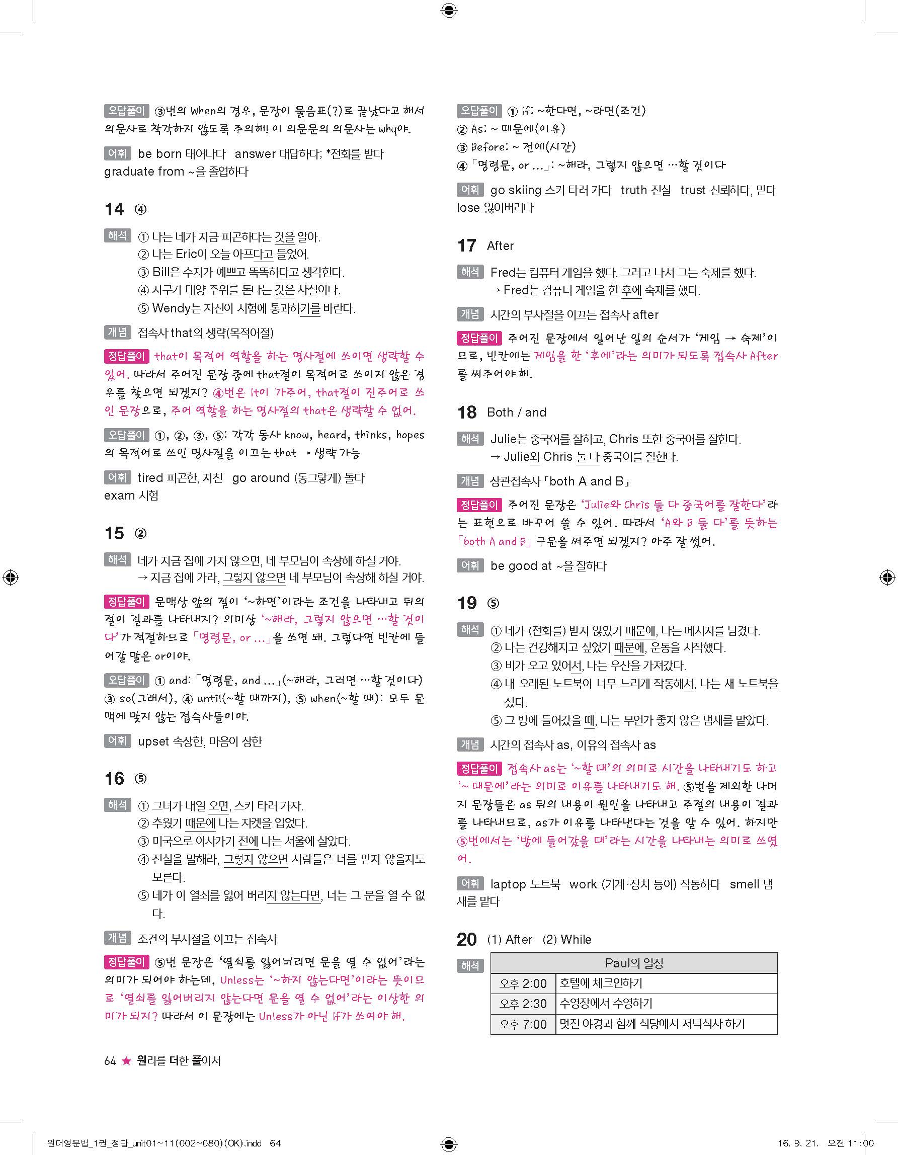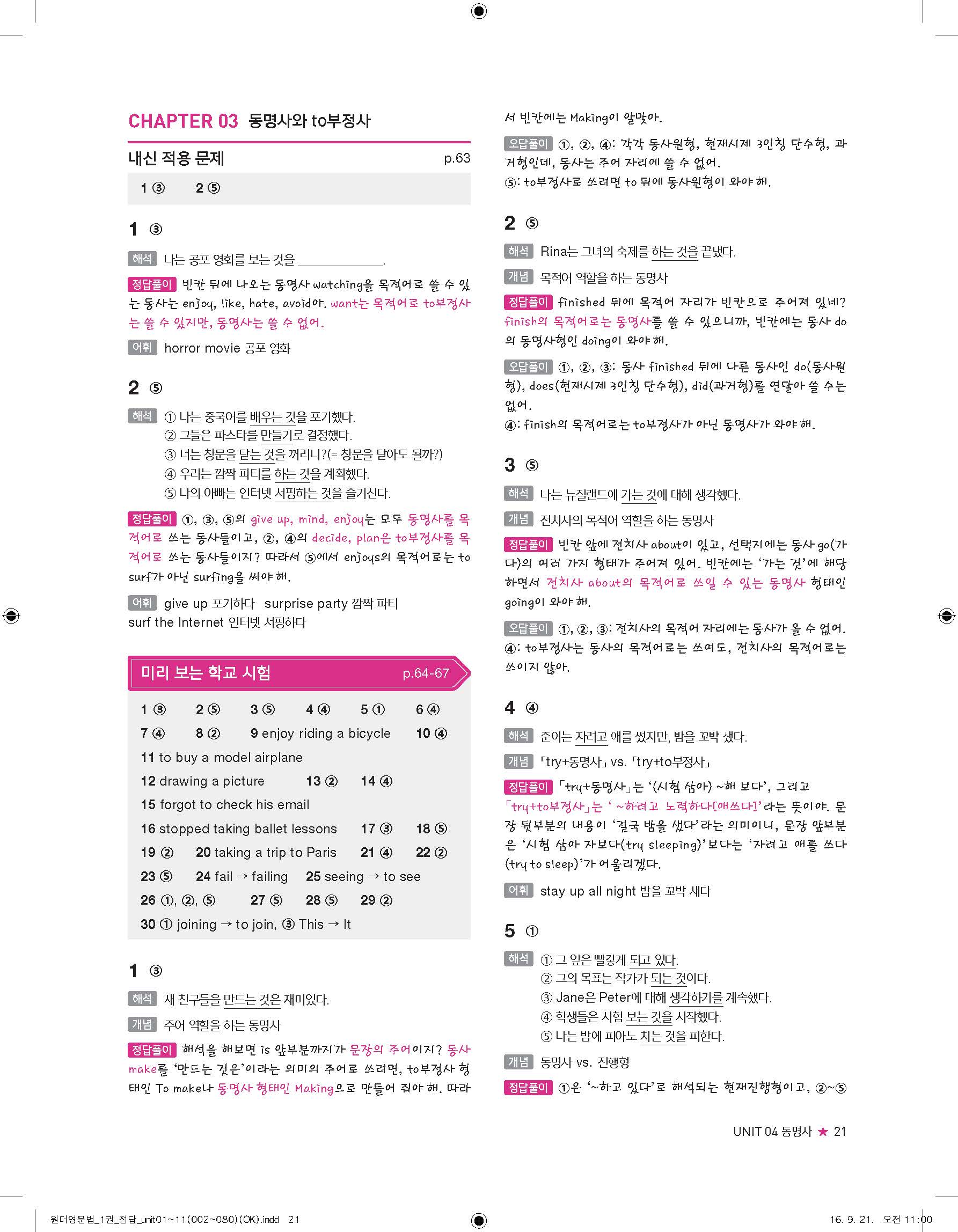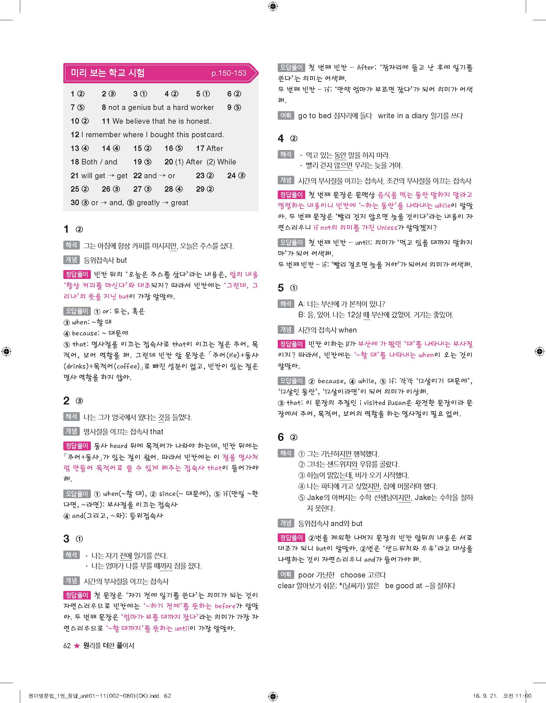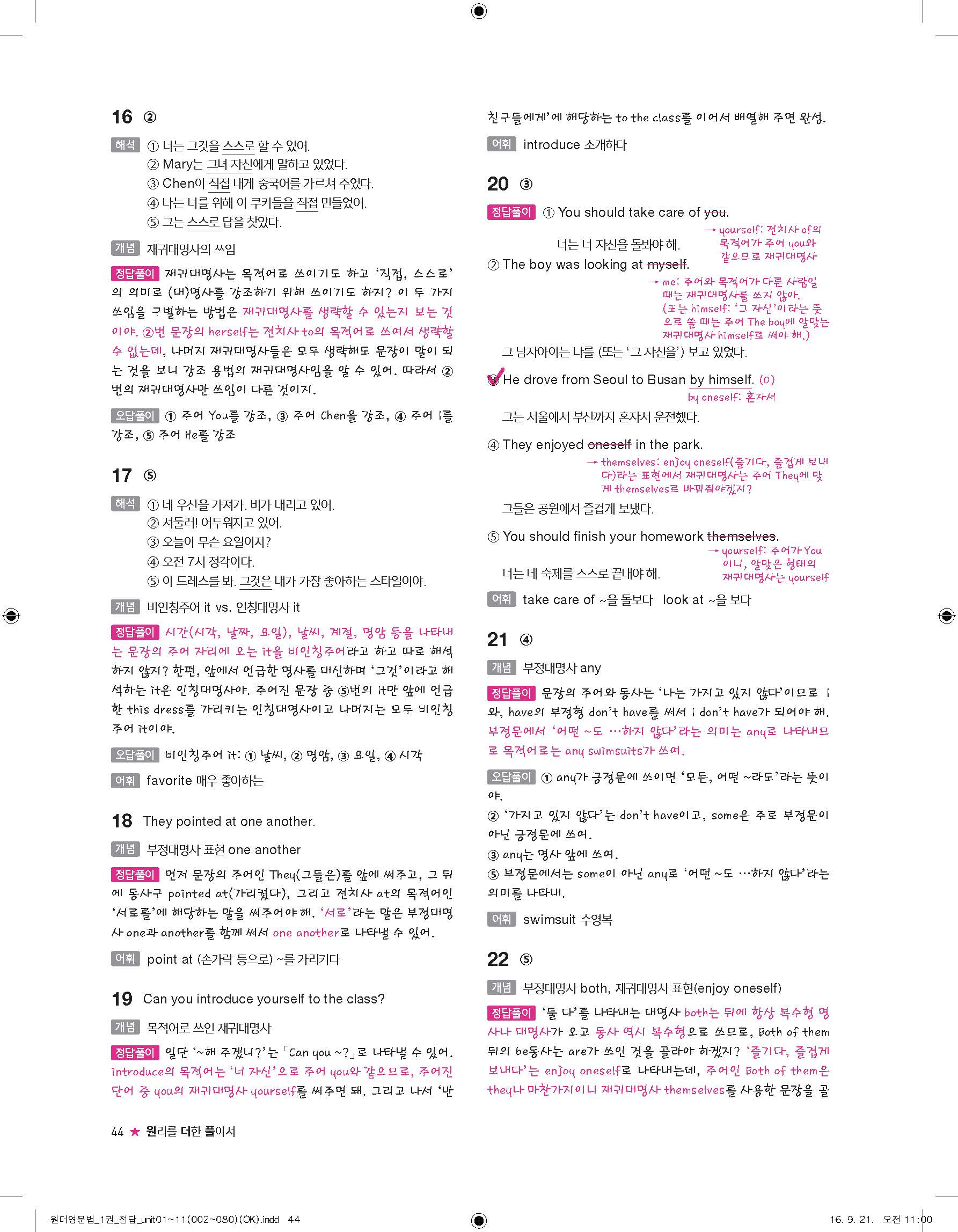 능률 원더영문법1권 답지 사진답지 빠른답지 모바일최적화