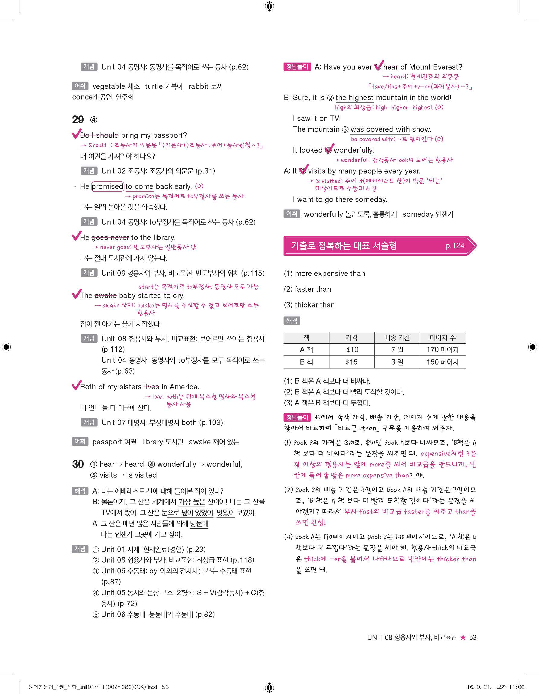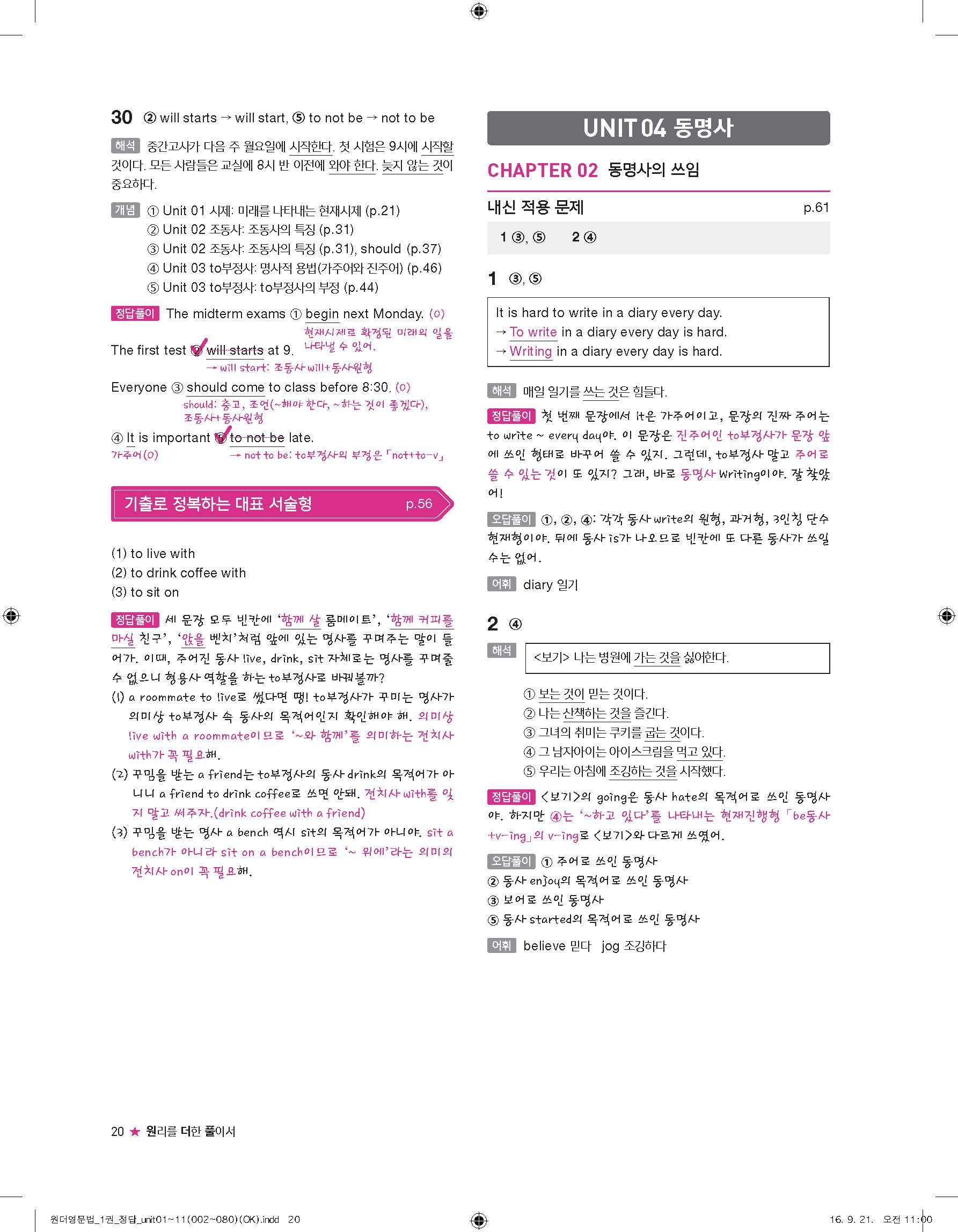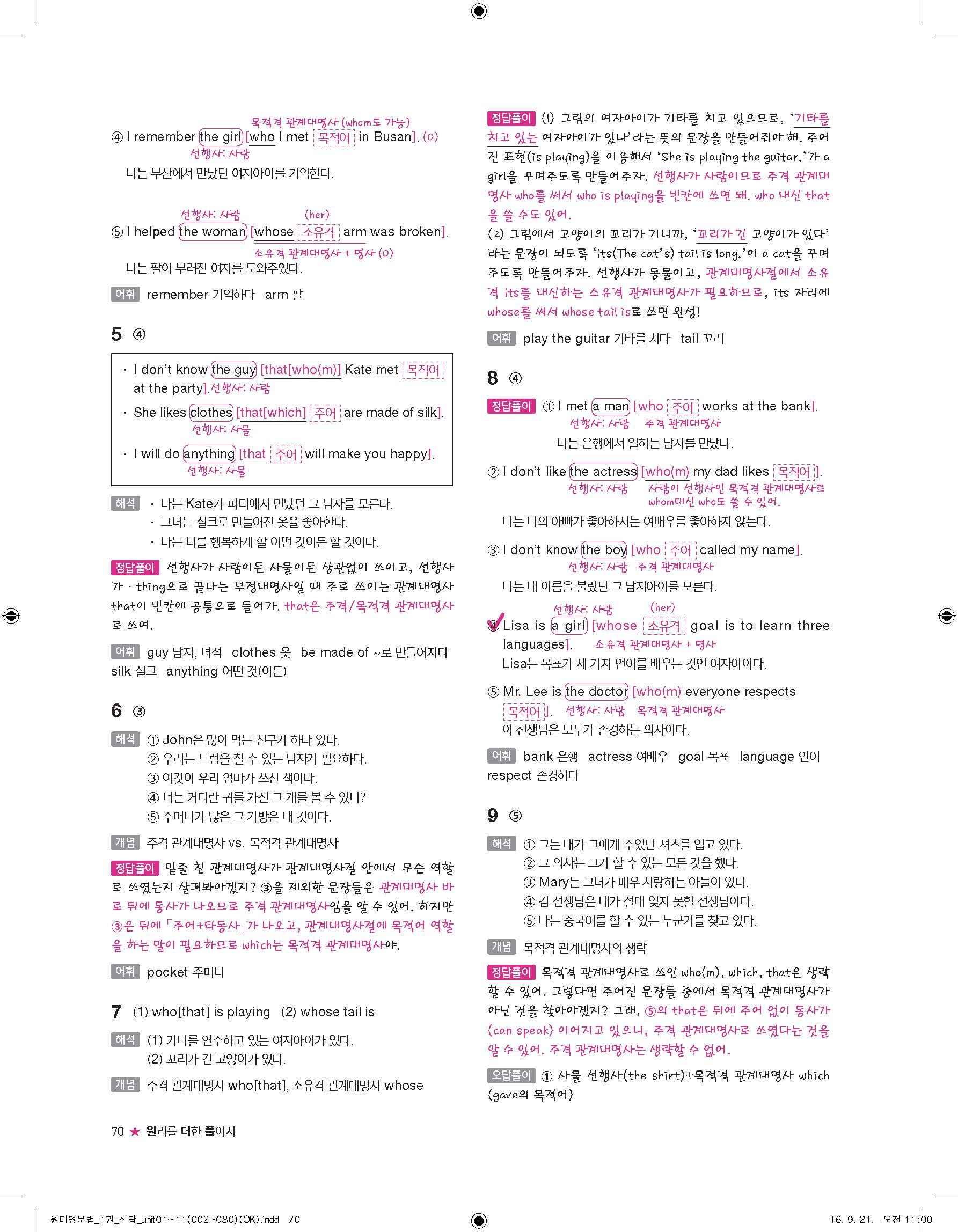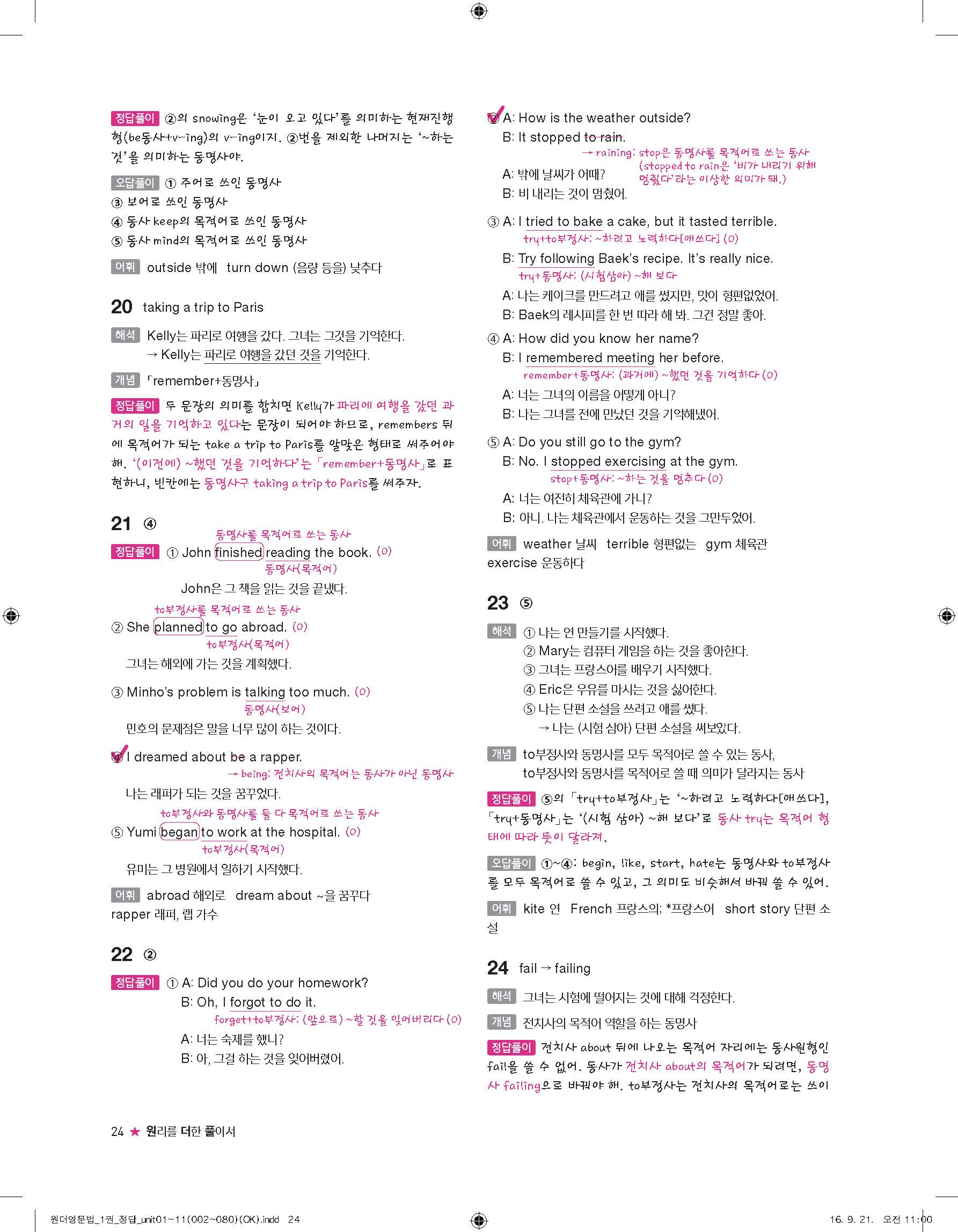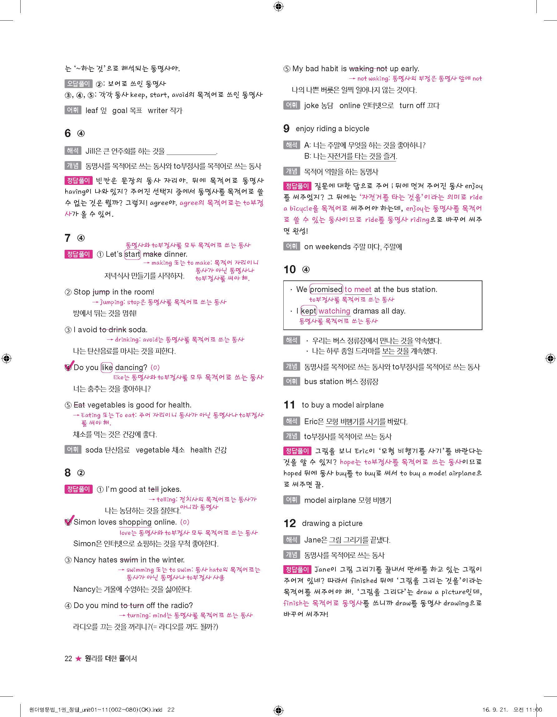 능률 원더영문법1권 답지 사진답지 빠른답지 모바일최적화