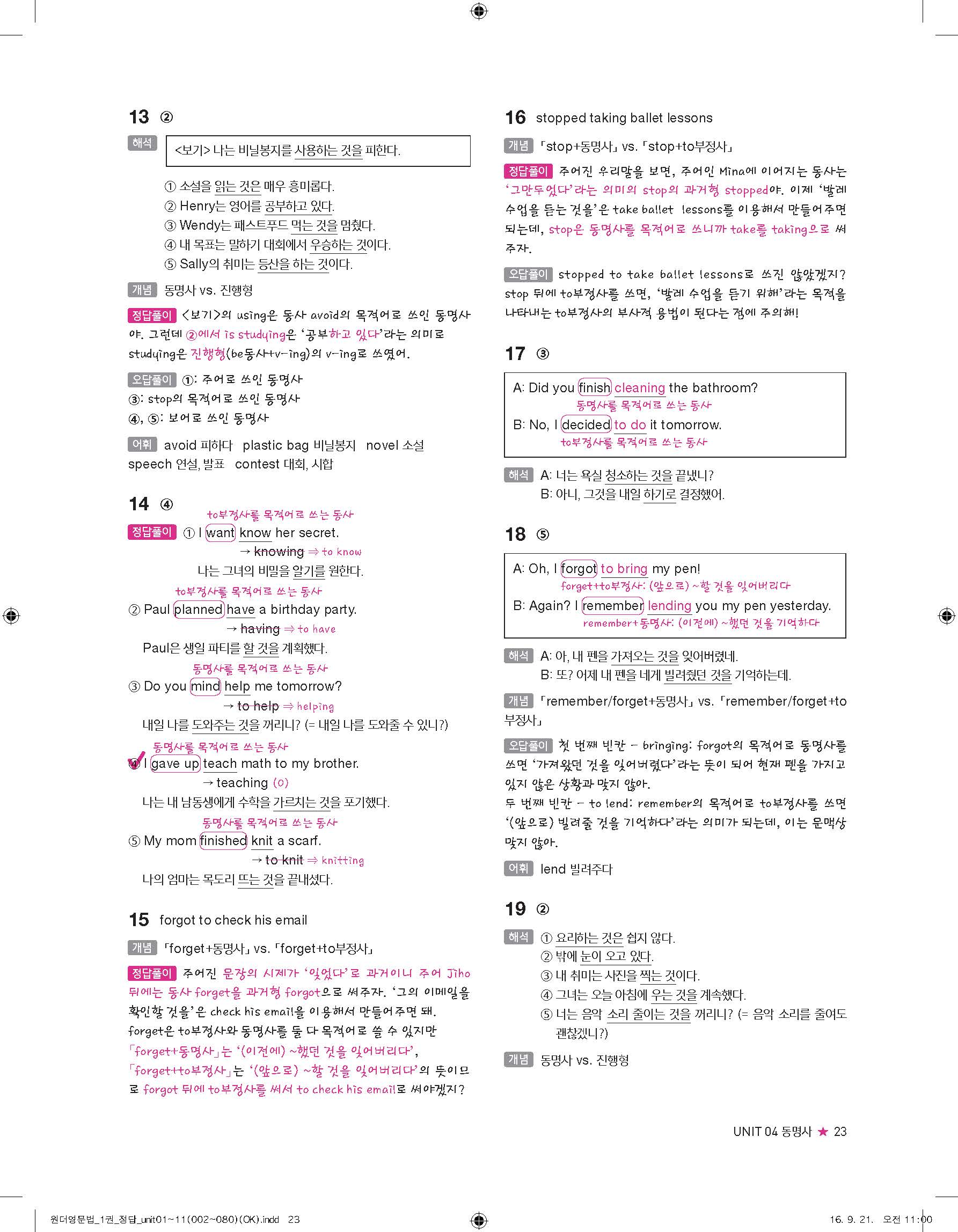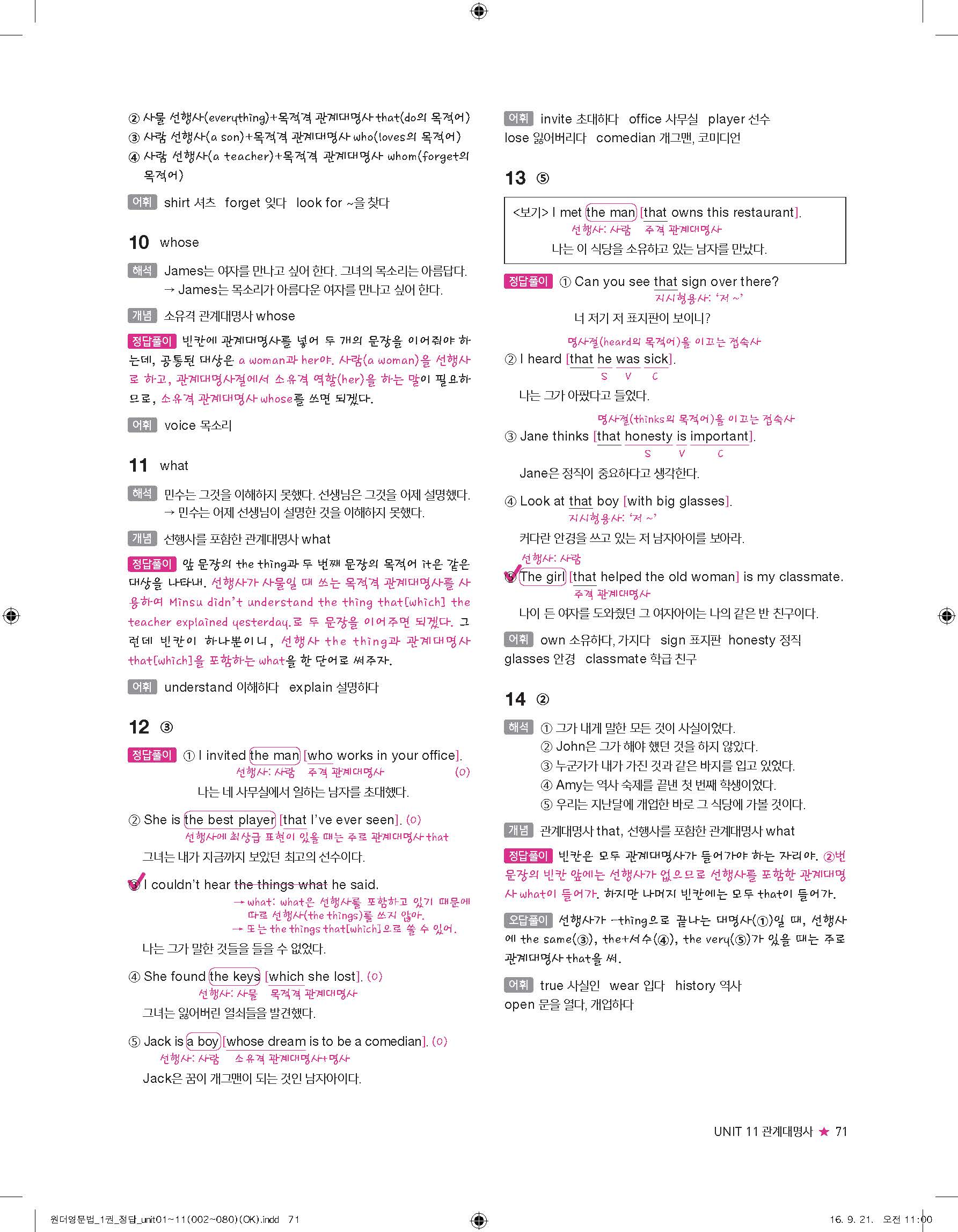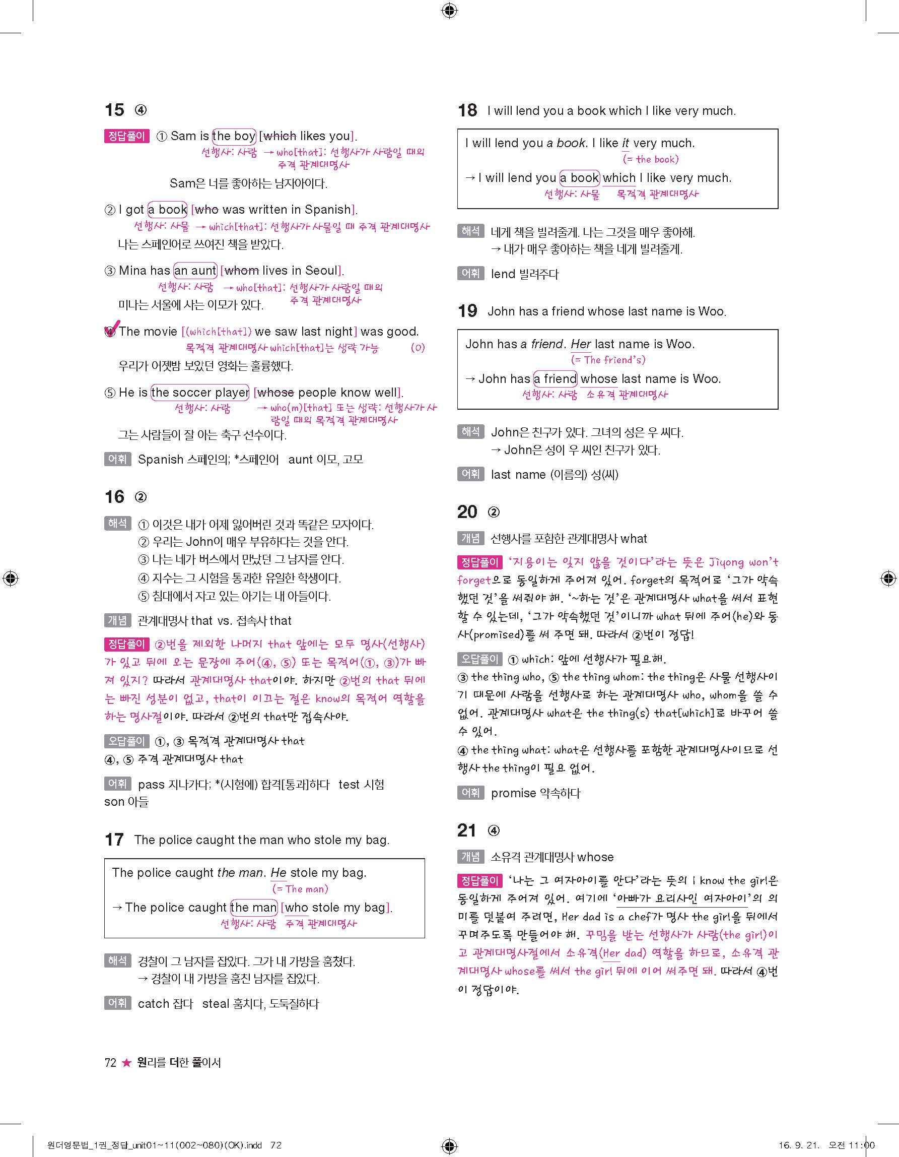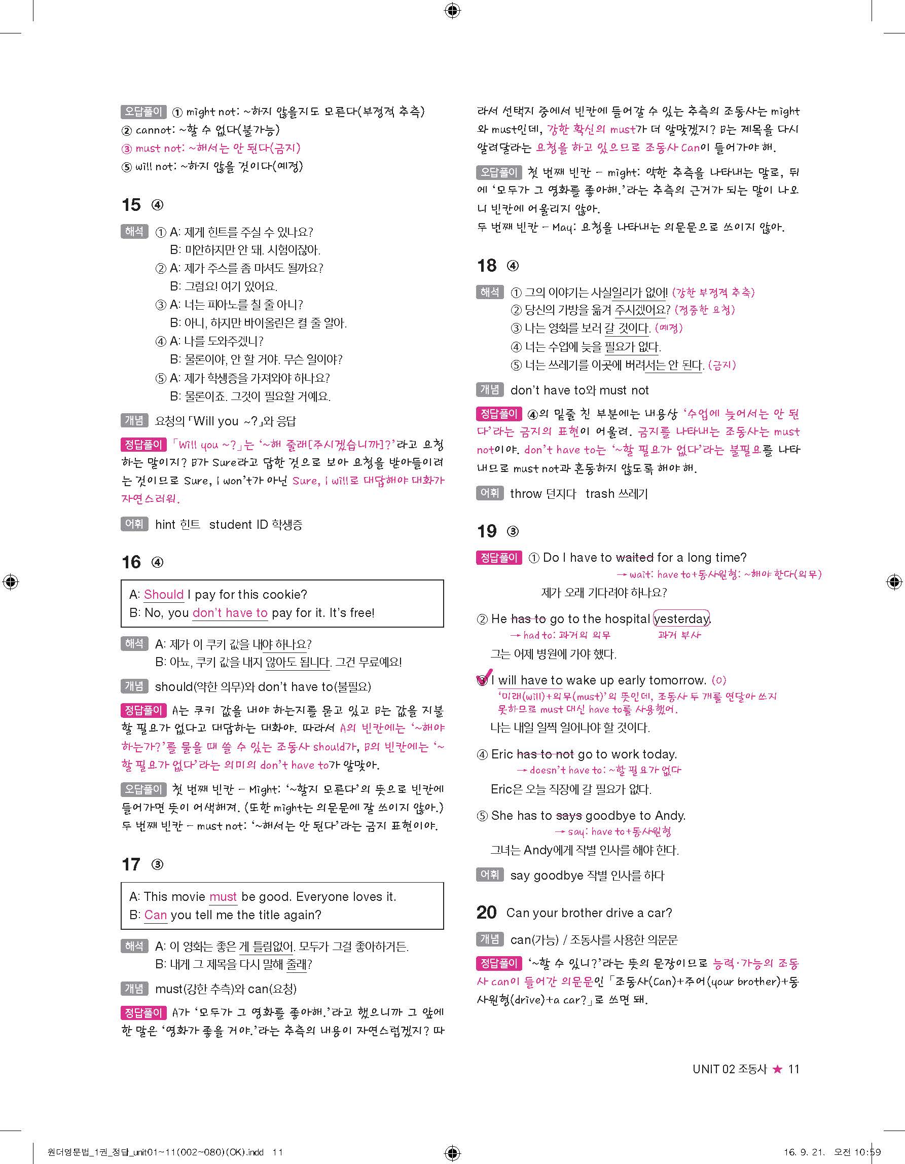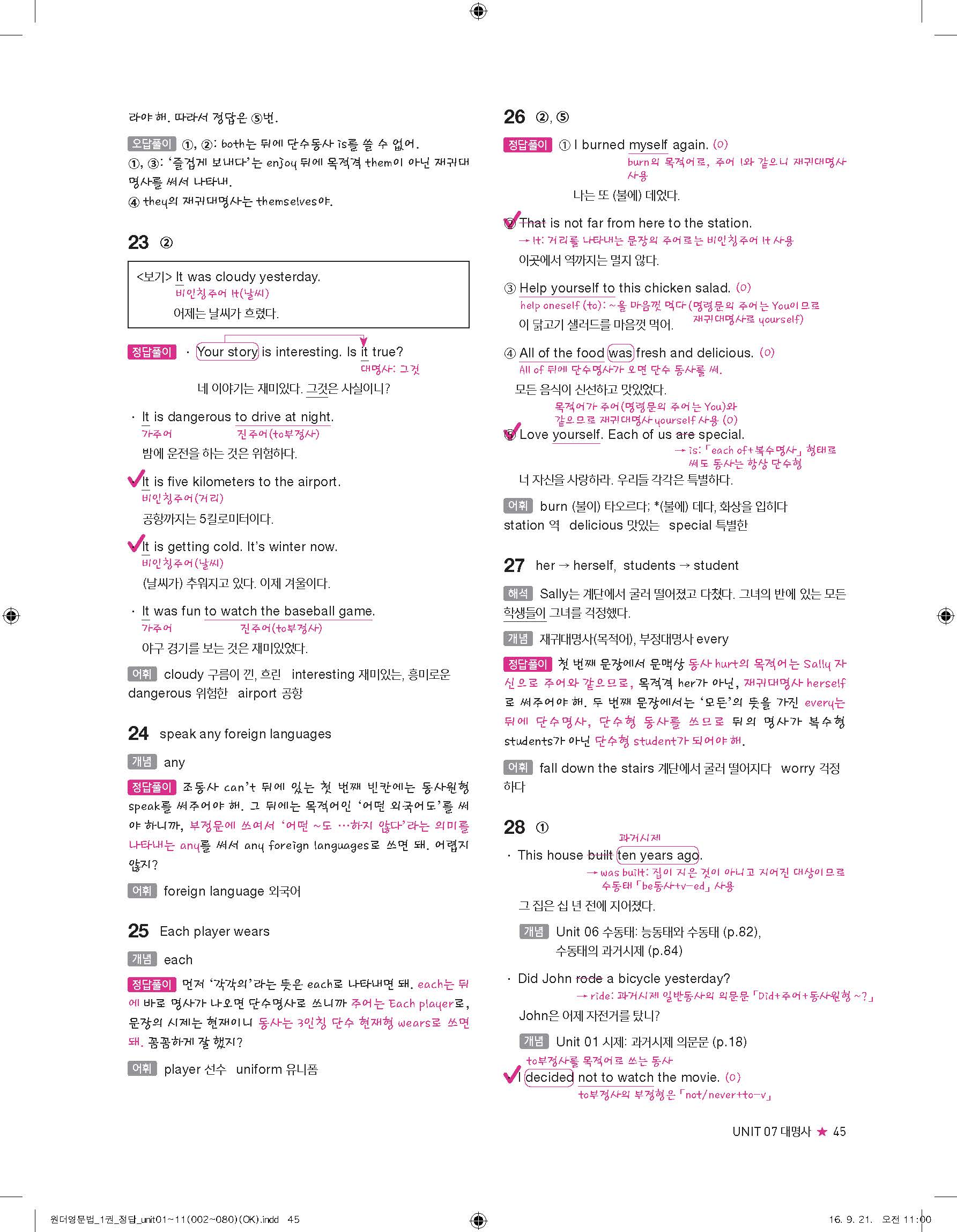 능률 원더영문법1권 답지 사진답지 빠른답지 모바일최적화