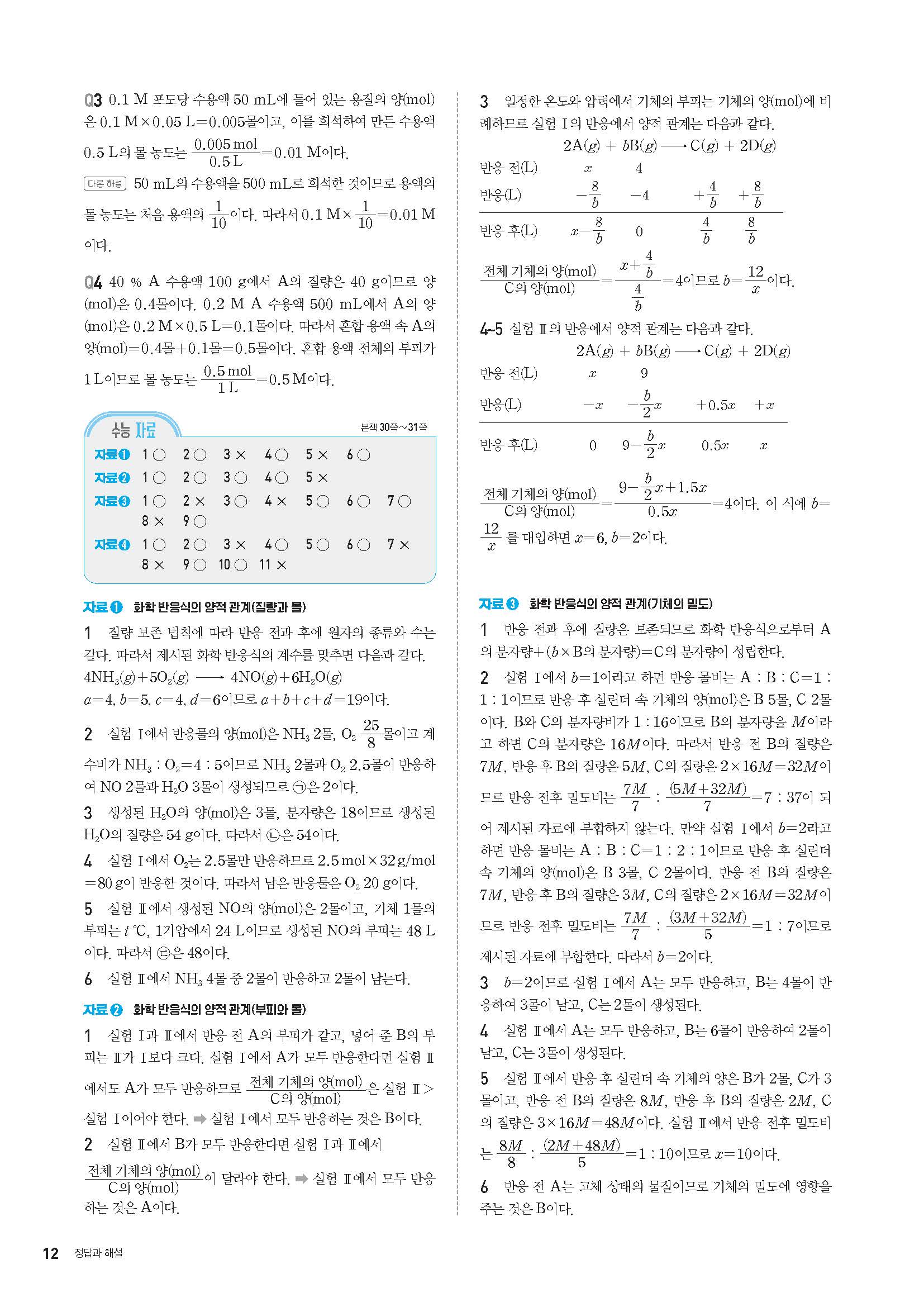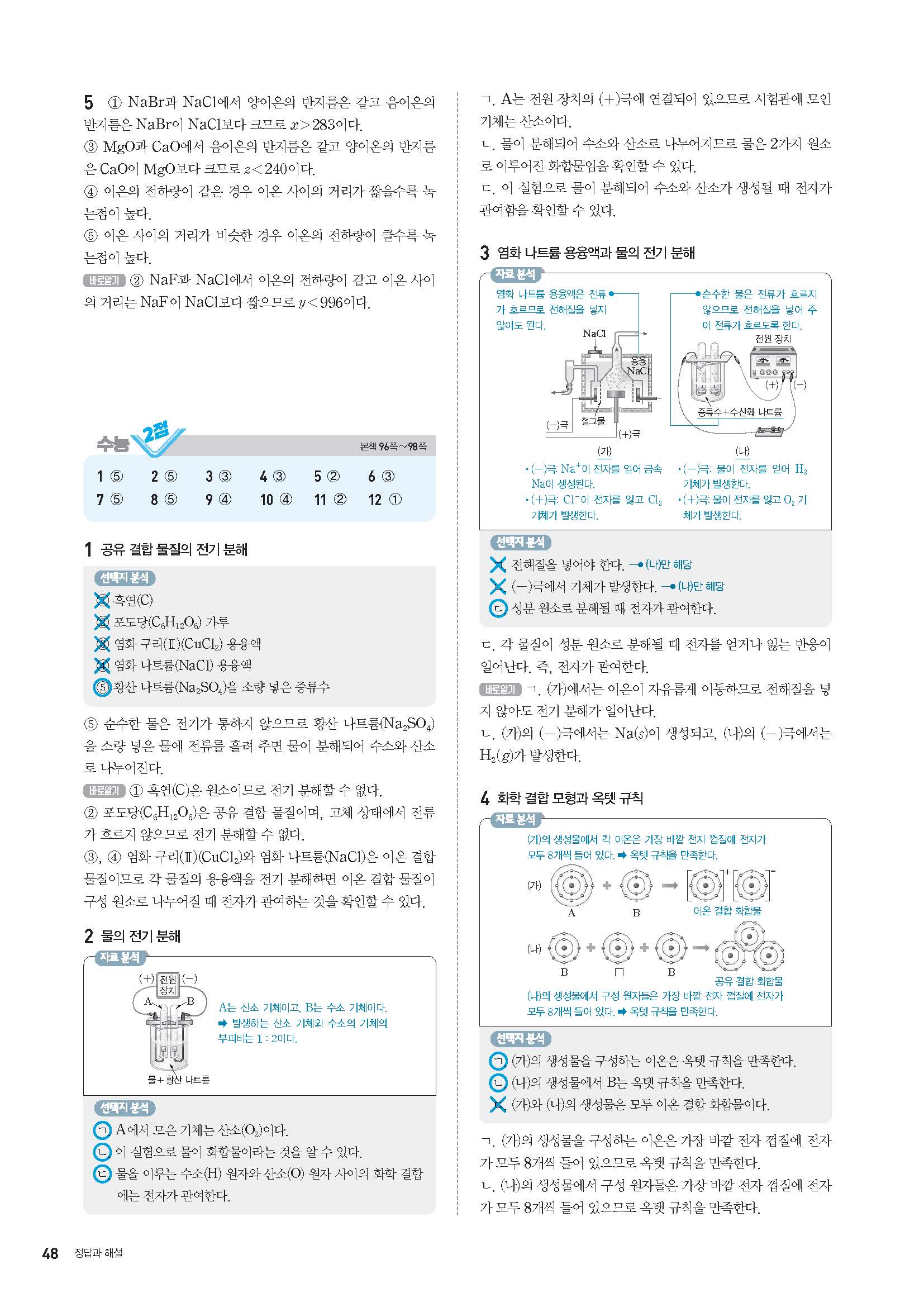 오투 화학1 답지 해설 사진답지 빠른답지 모바일최적화