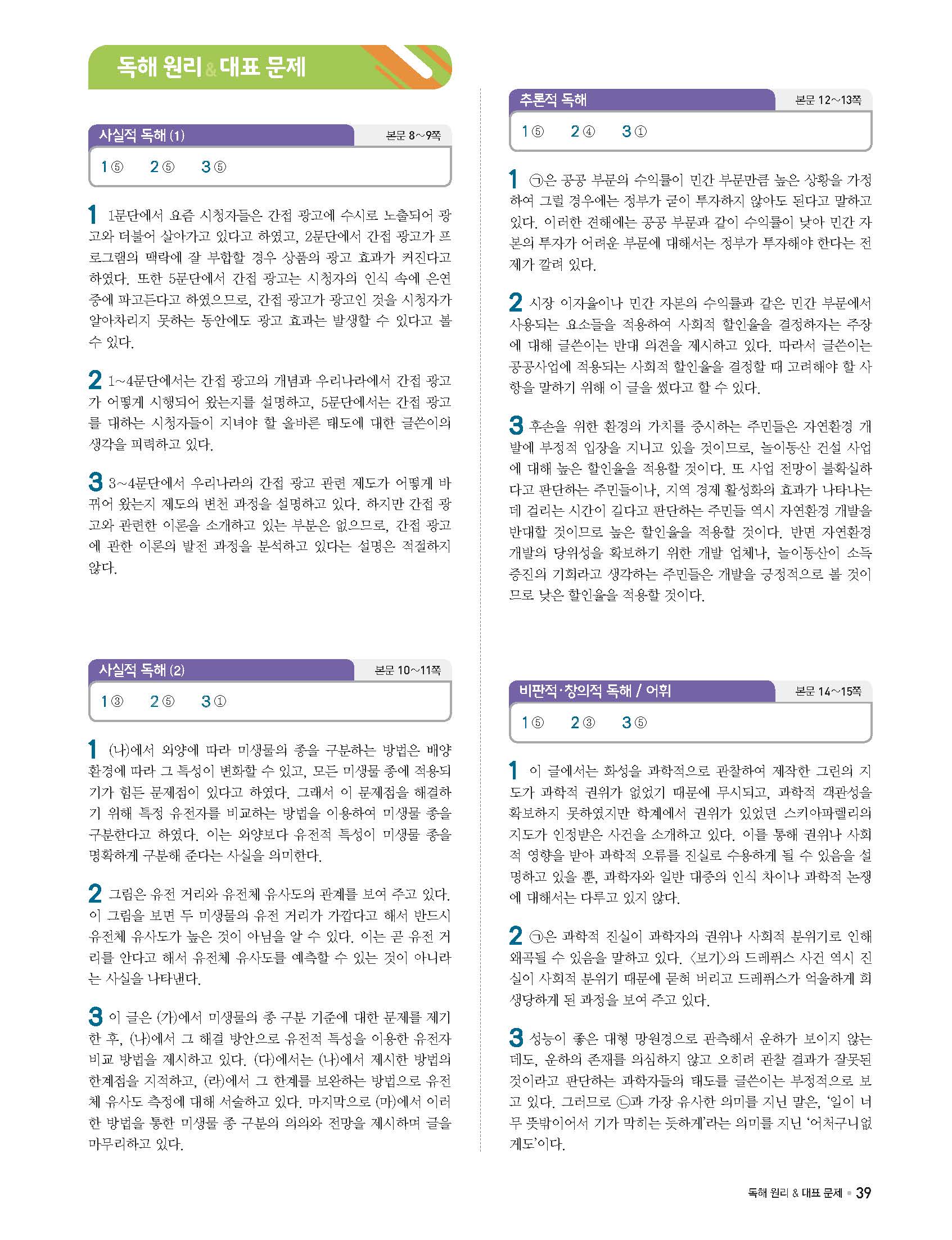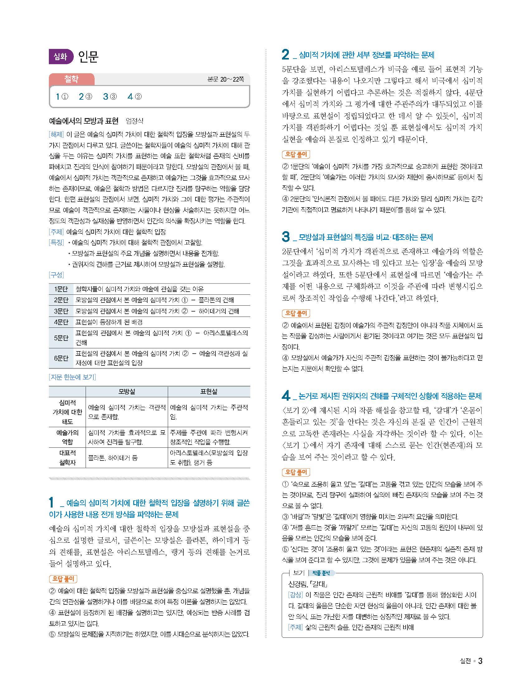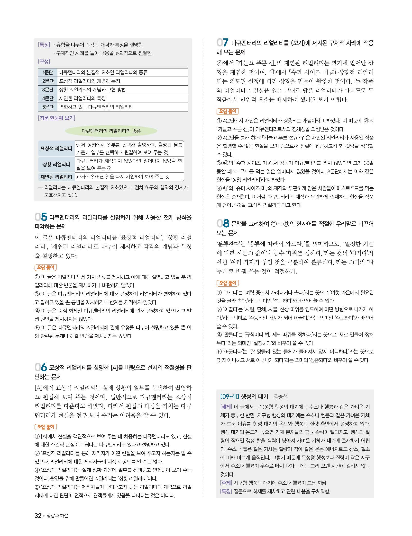 단기특강 국어영역 비문학독서 답지 해설 사진답지 빠른답지 모바일최적화