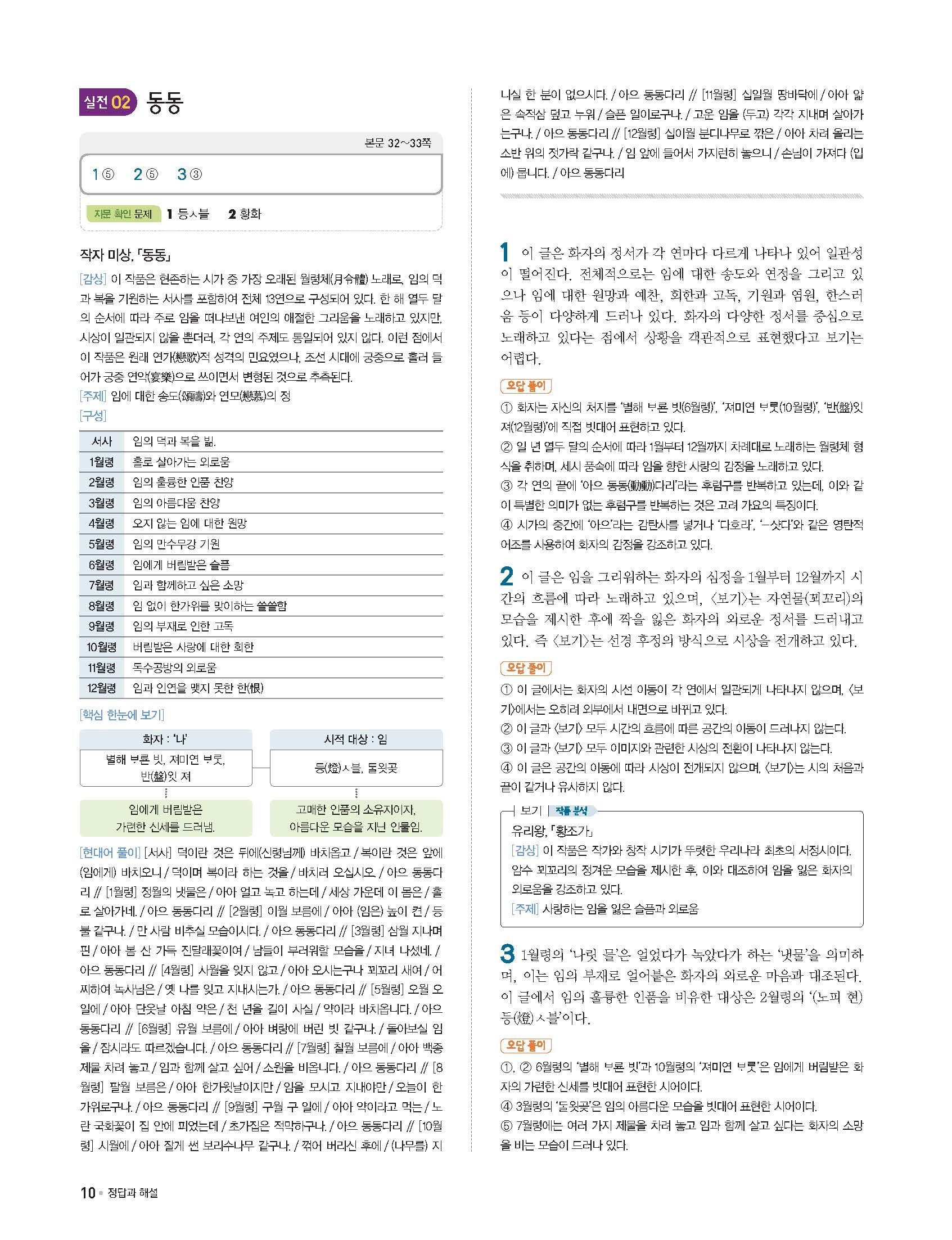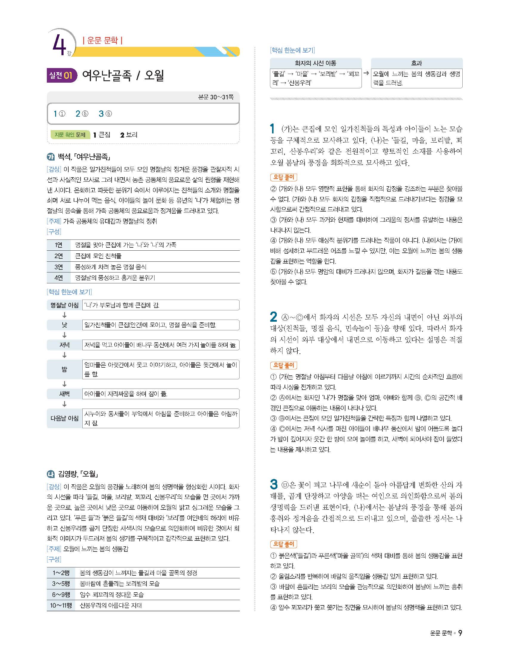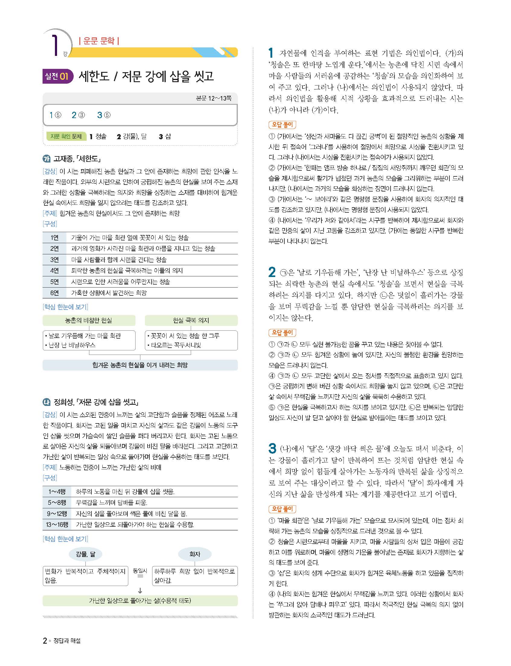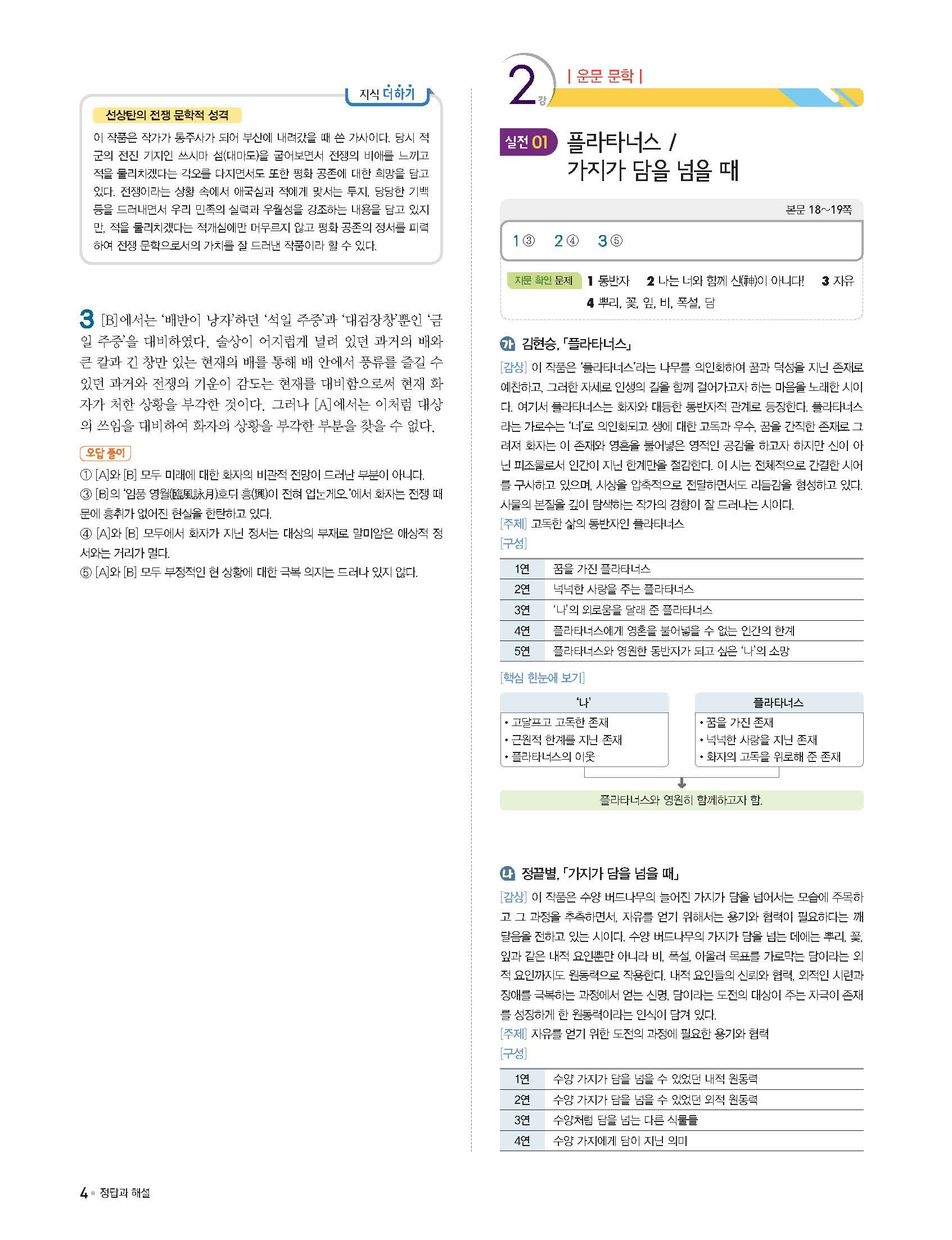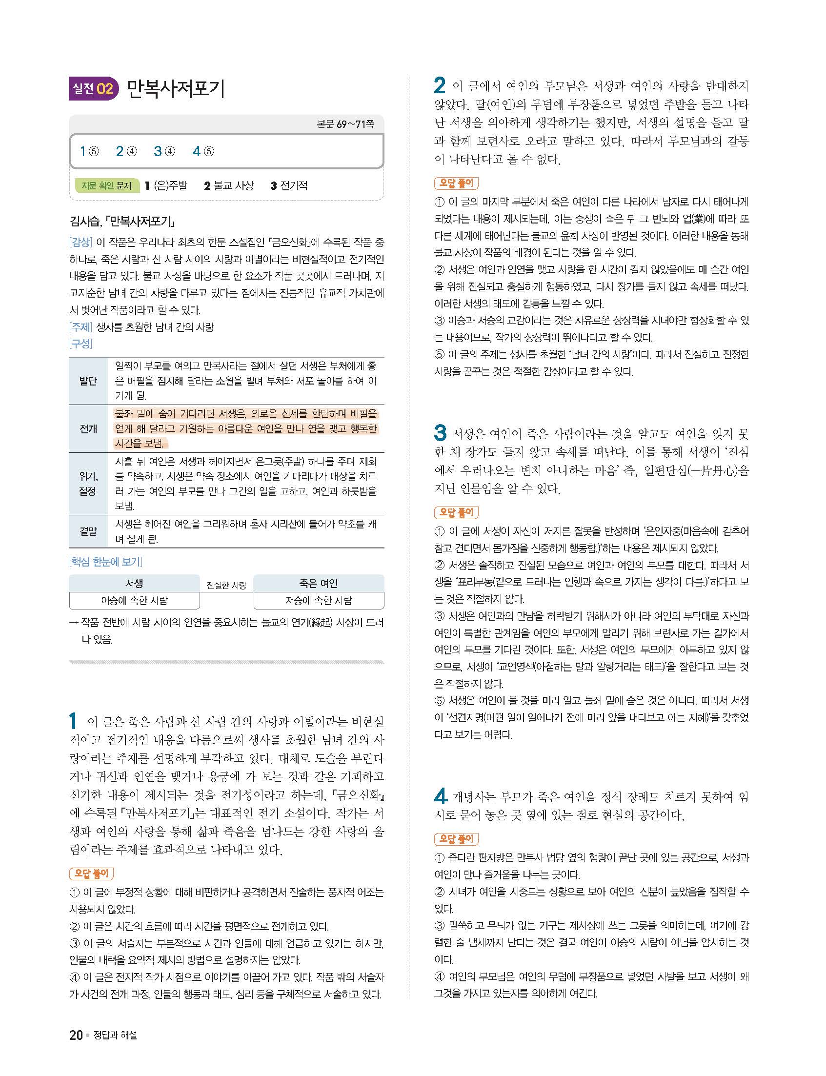 단기특강 국어영역 문학 답지 해설 사진답지 빠른답지 모바일최적화