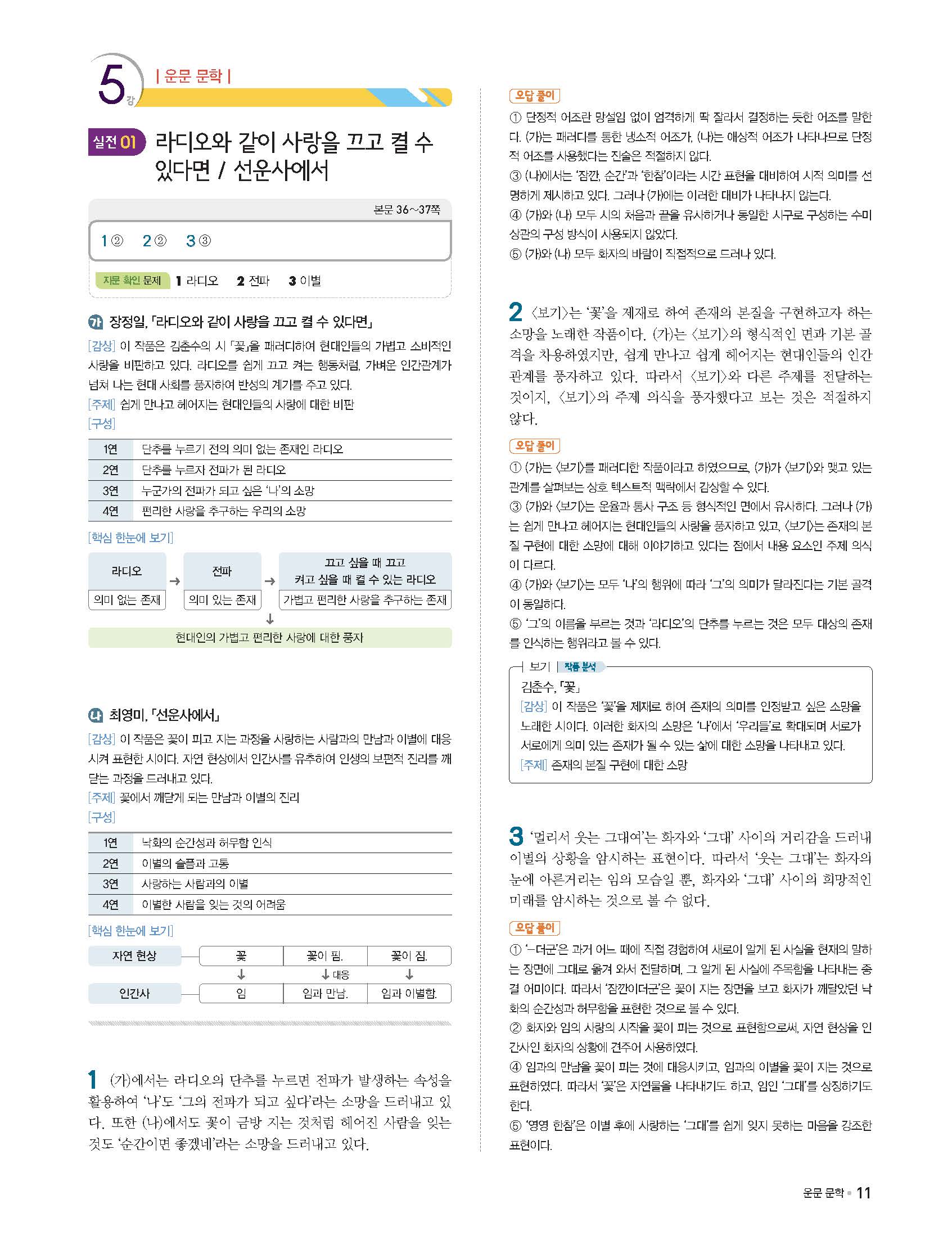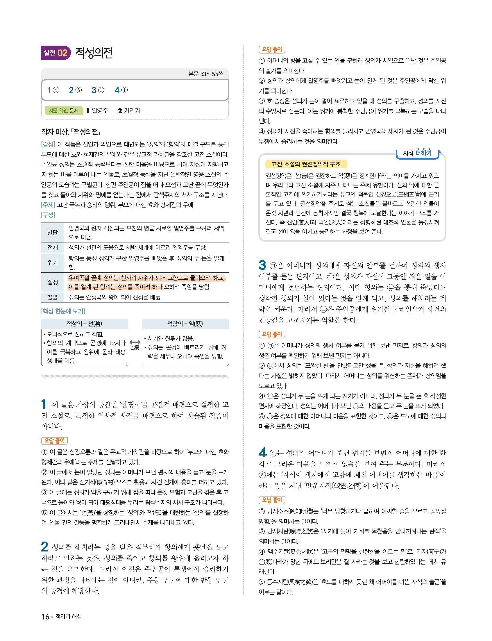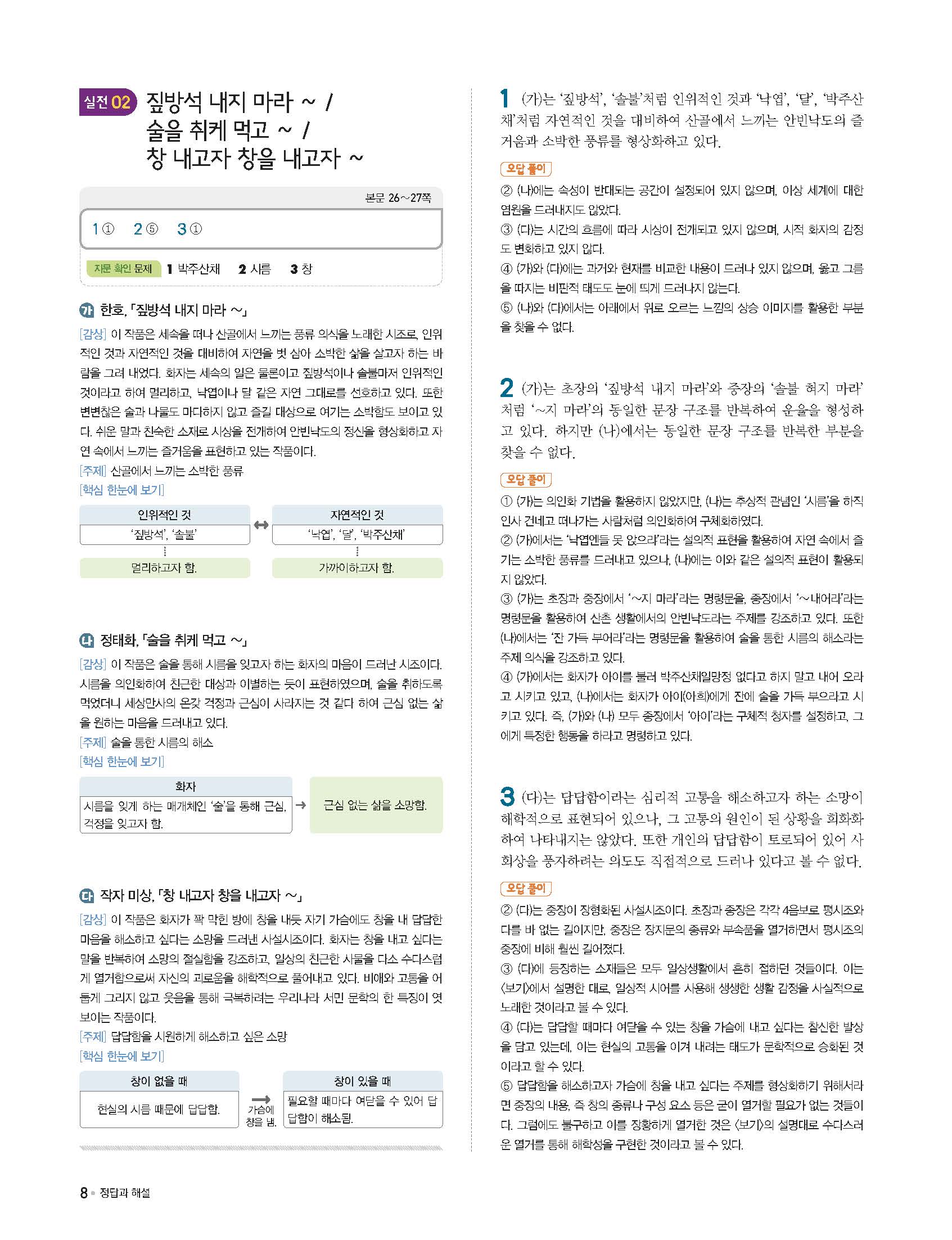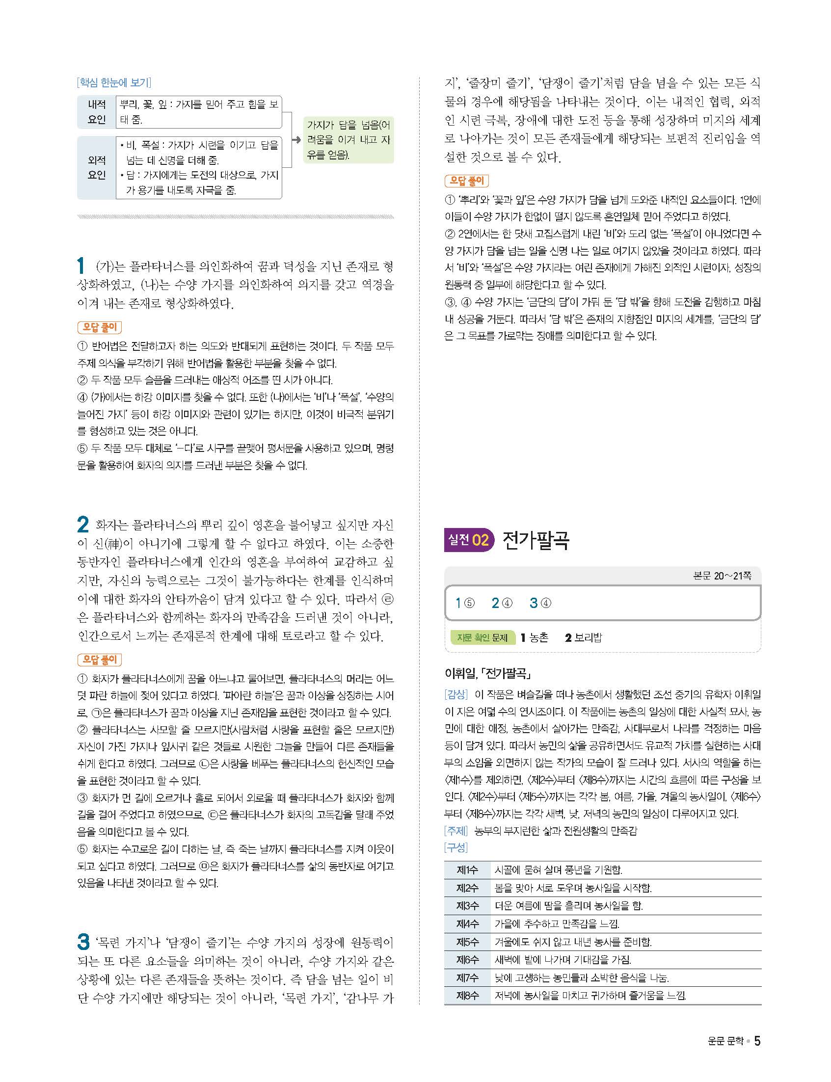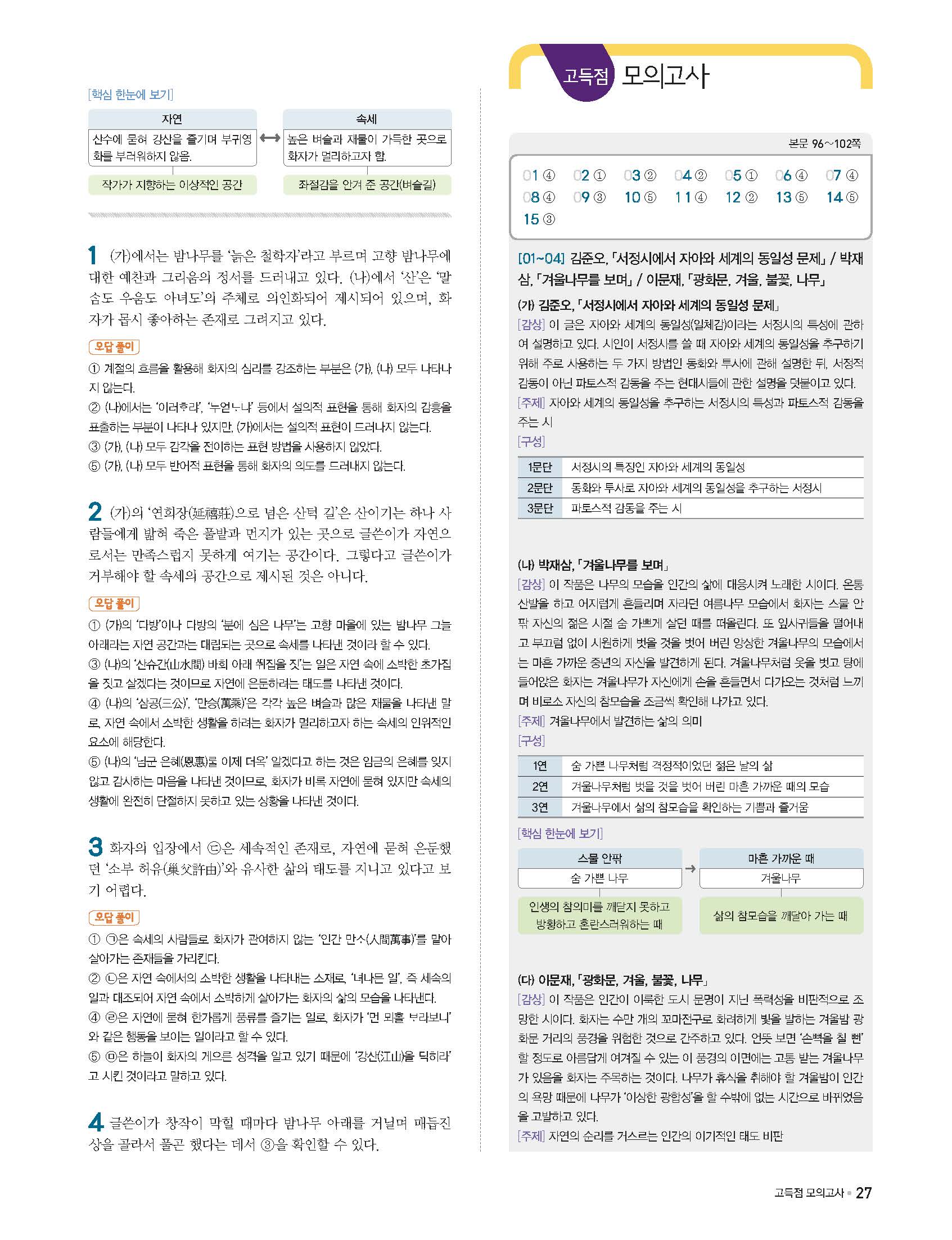 단기특강 국어영역 문학 답지 해설 사진답지 빠른답지 모바일최적화