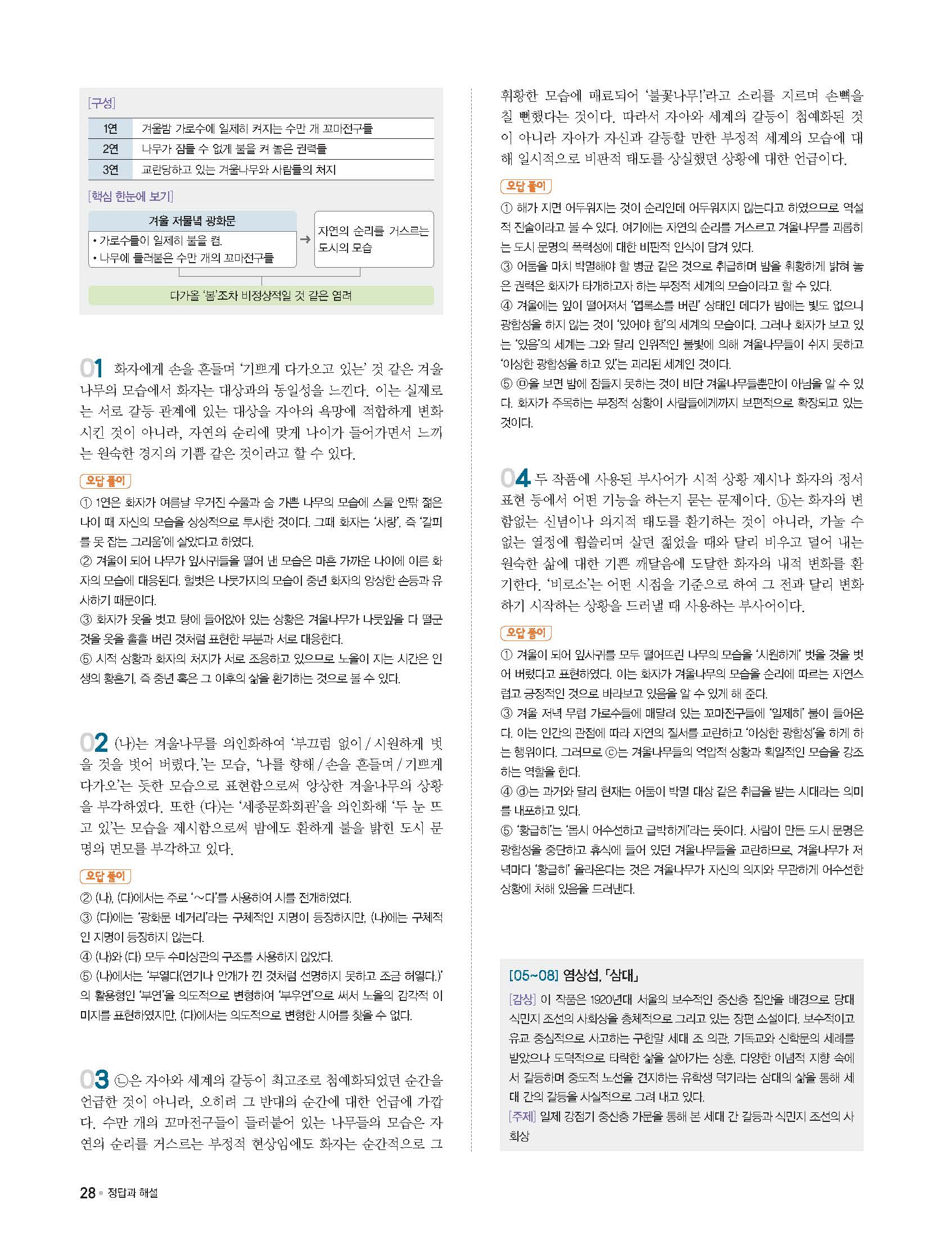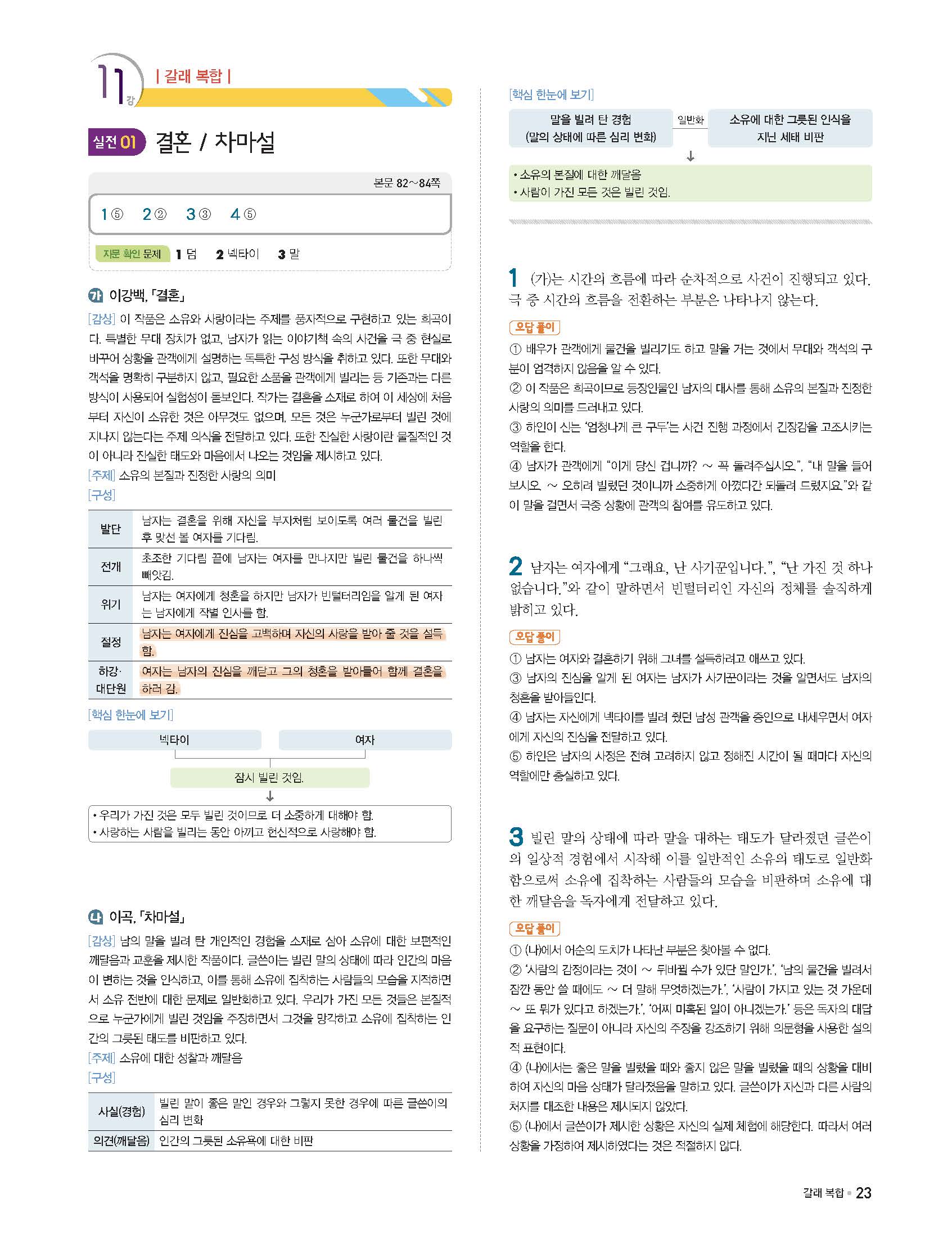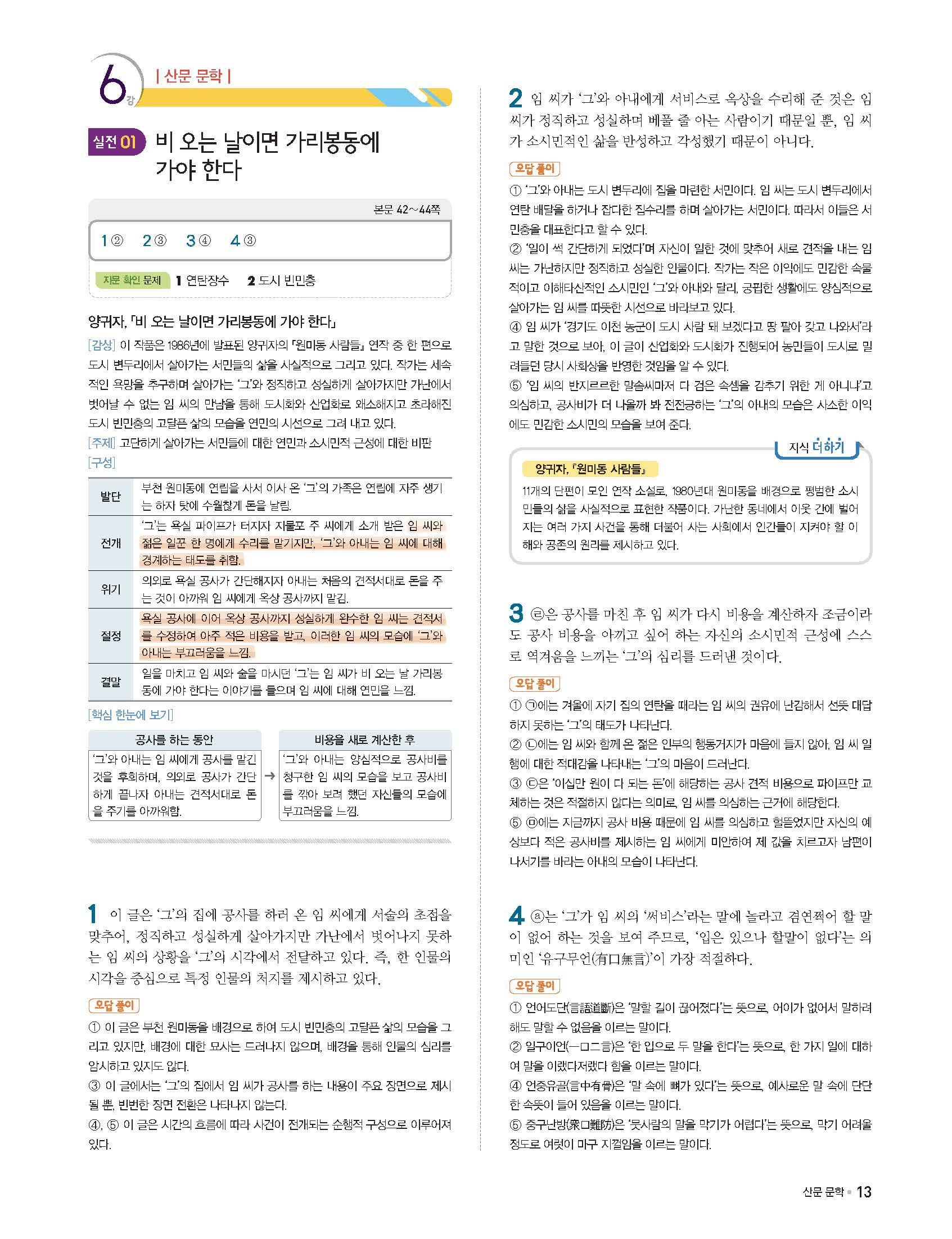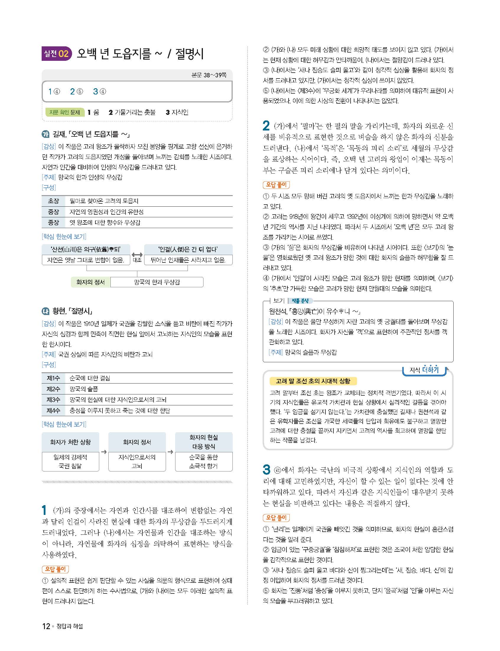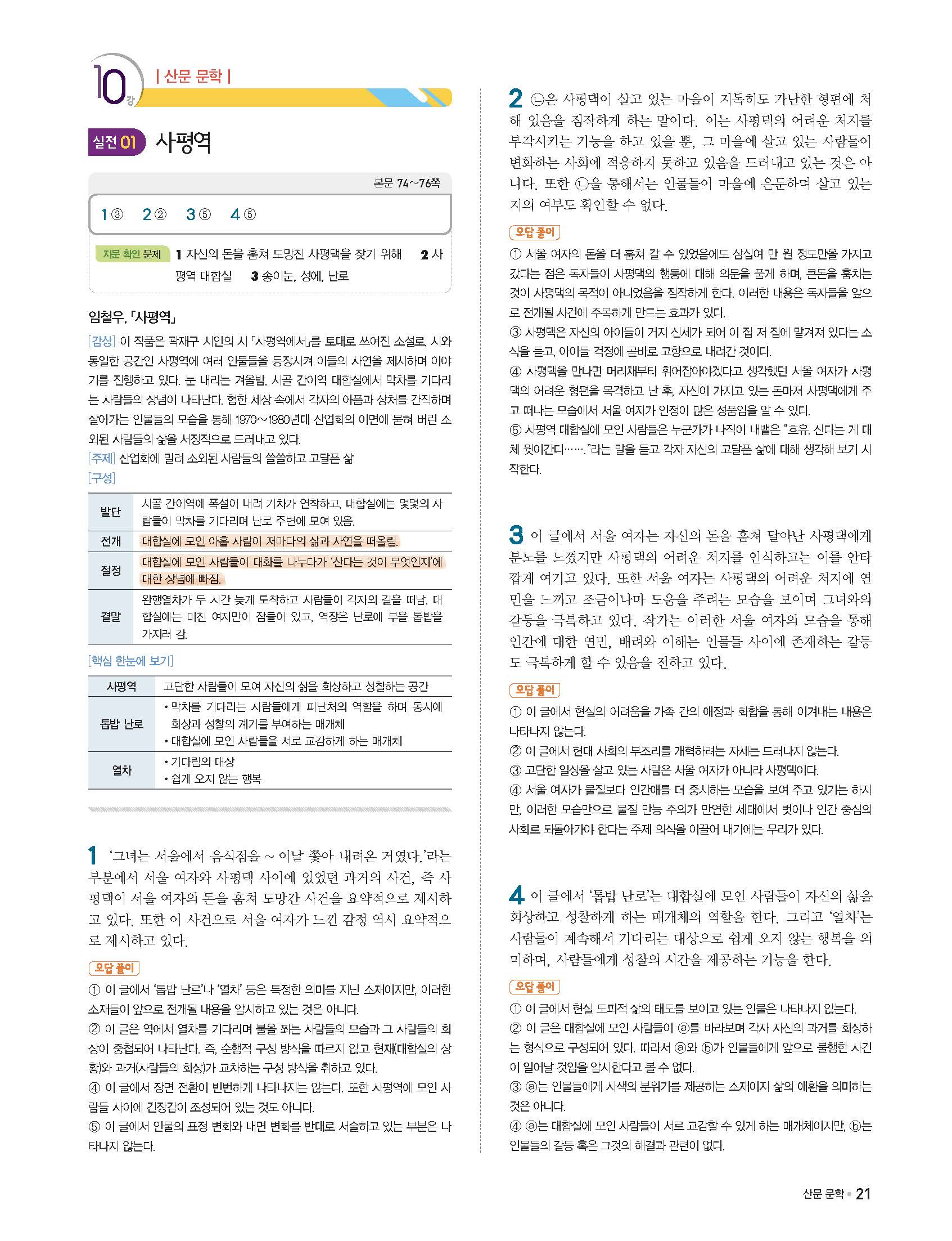 단기특강 국어영역 문학 답지 해설 사진답지 빠른답지 모바일최적화