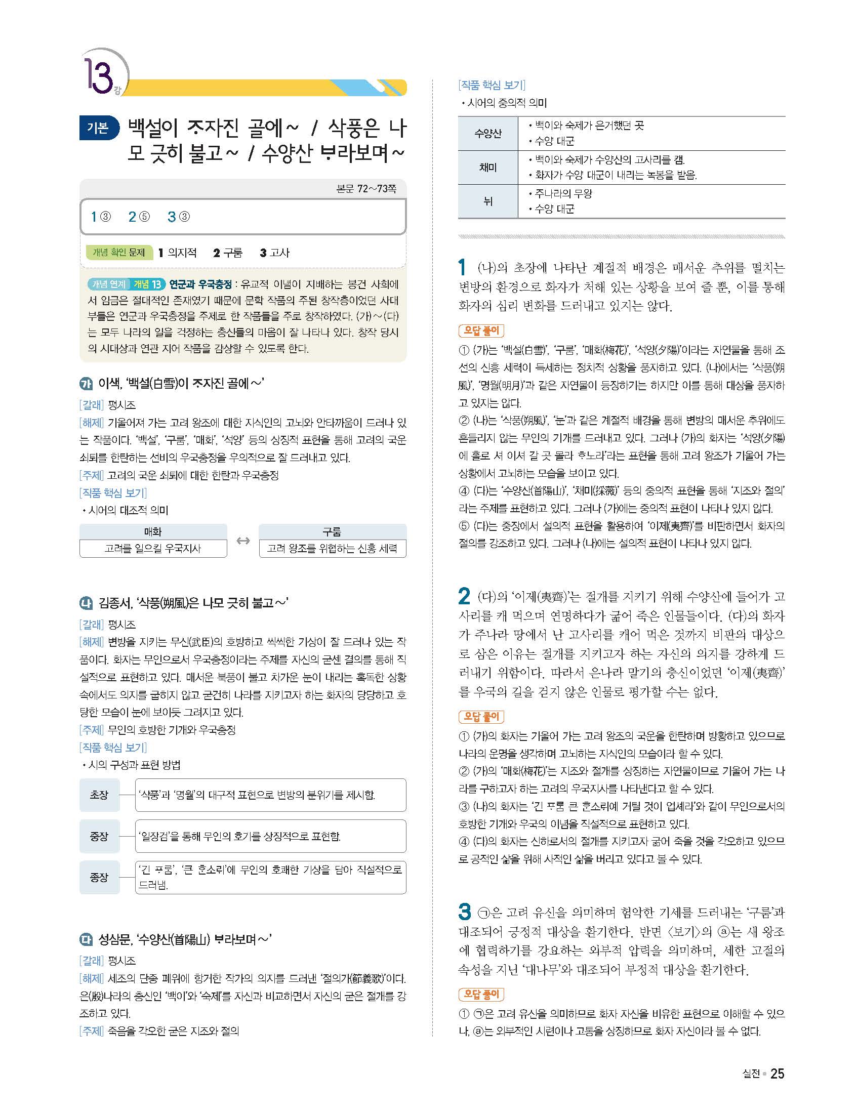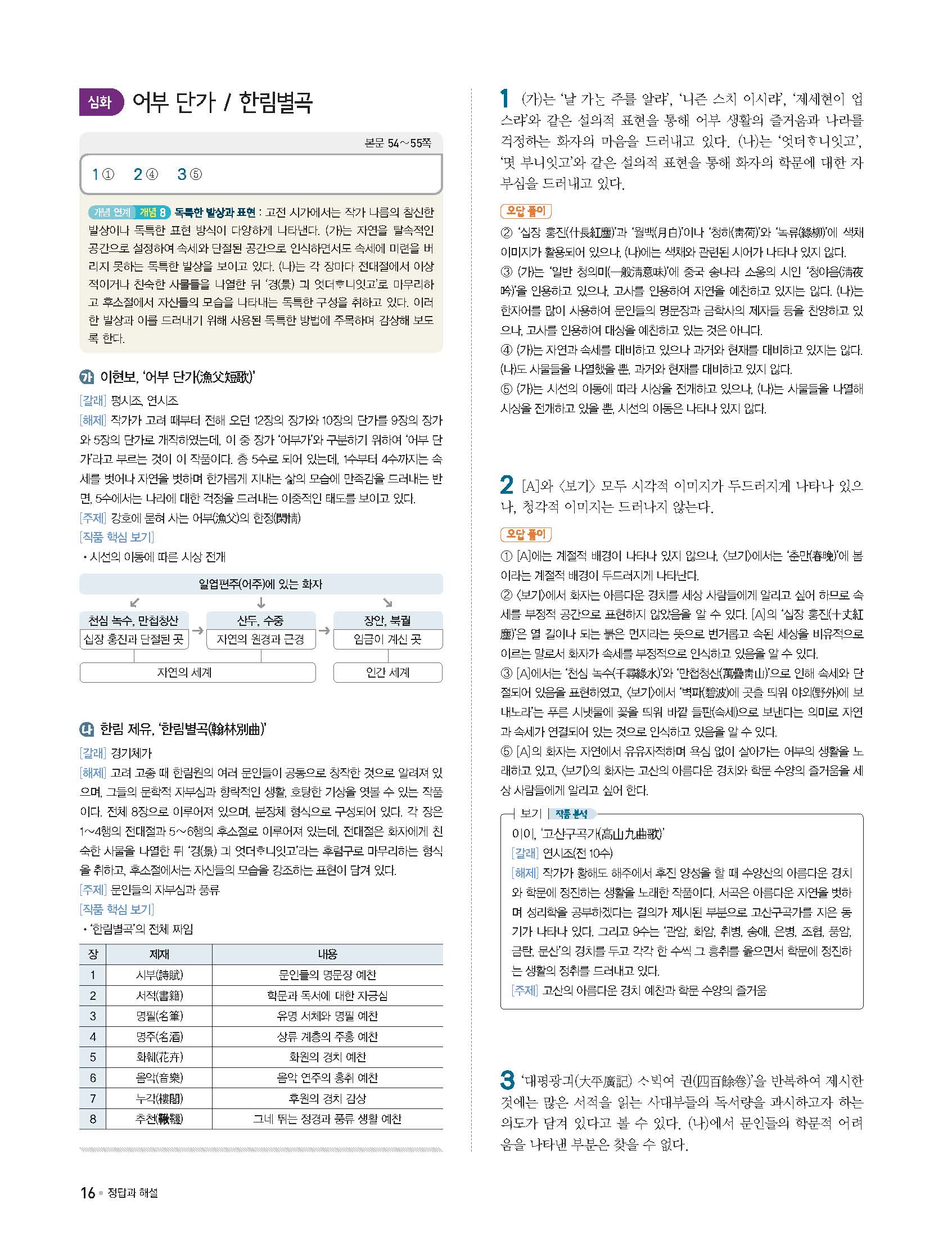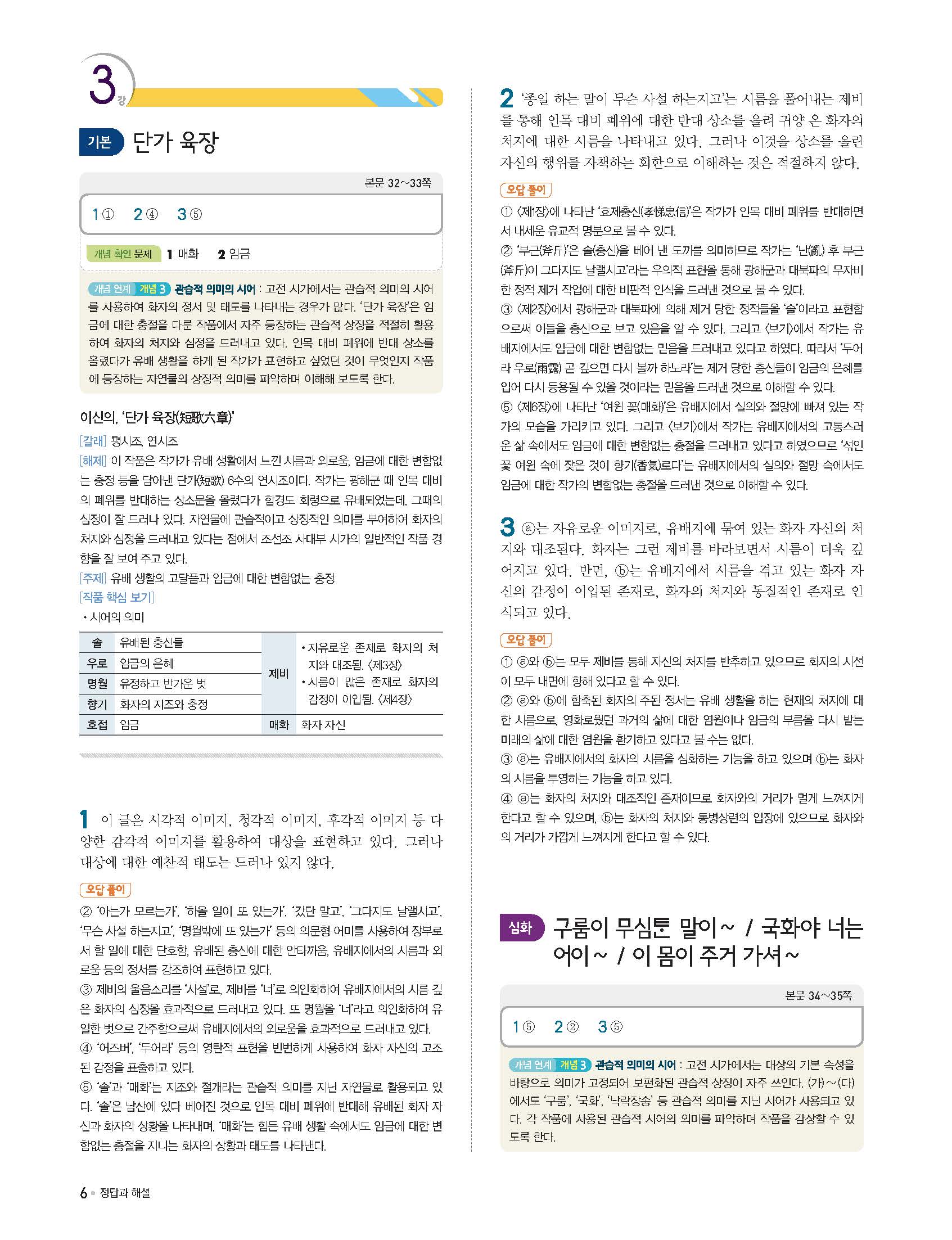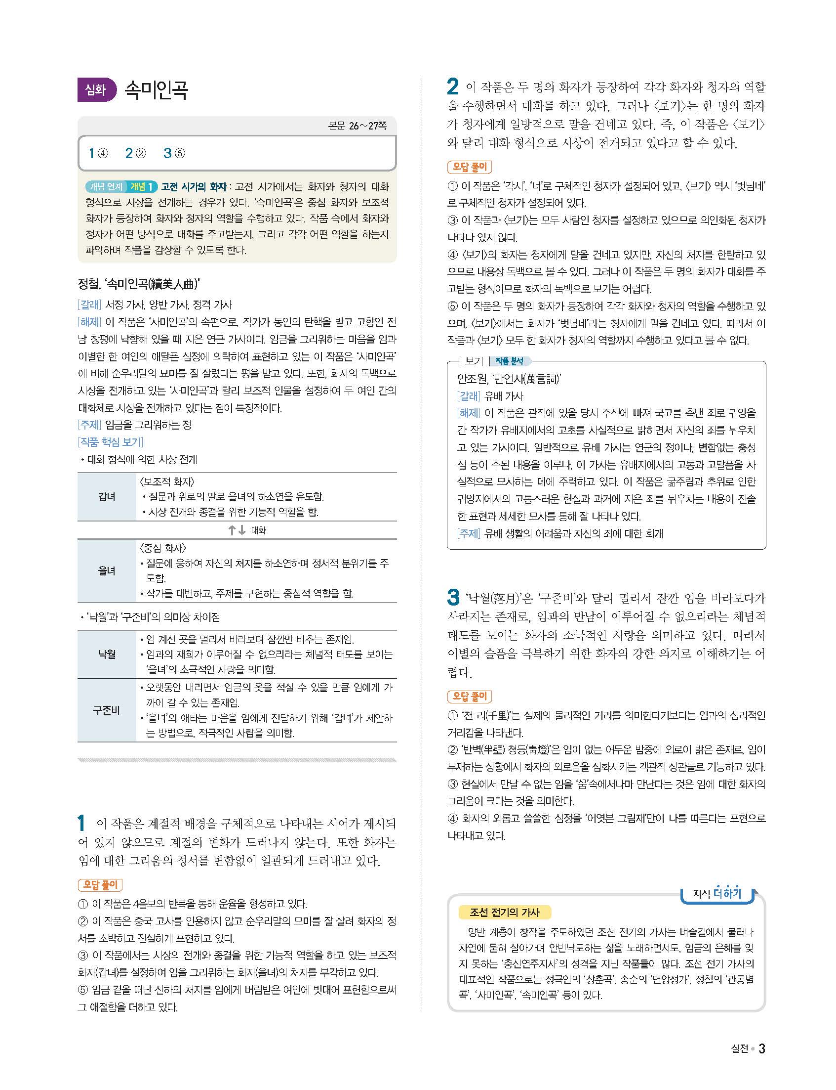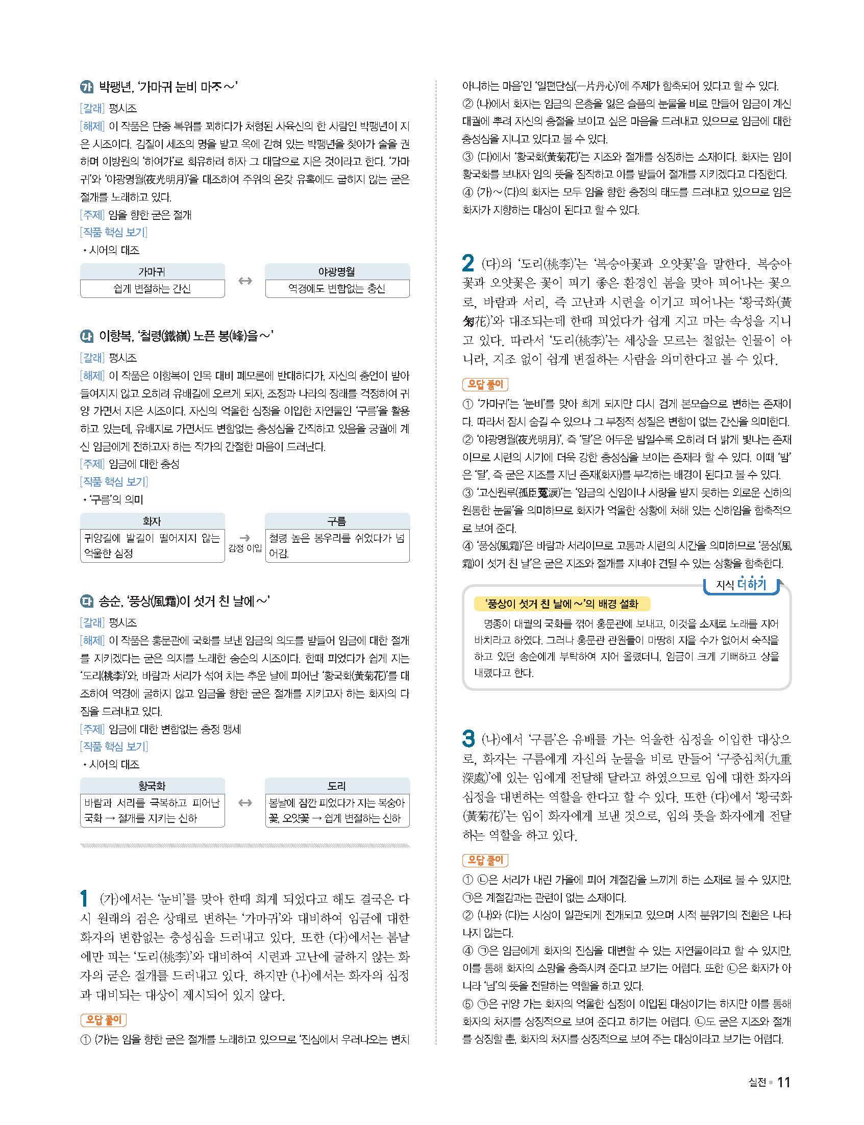 단기특강 국어영역 고전시가 답지 해설 사진답지 빠른답지 모바일최적화